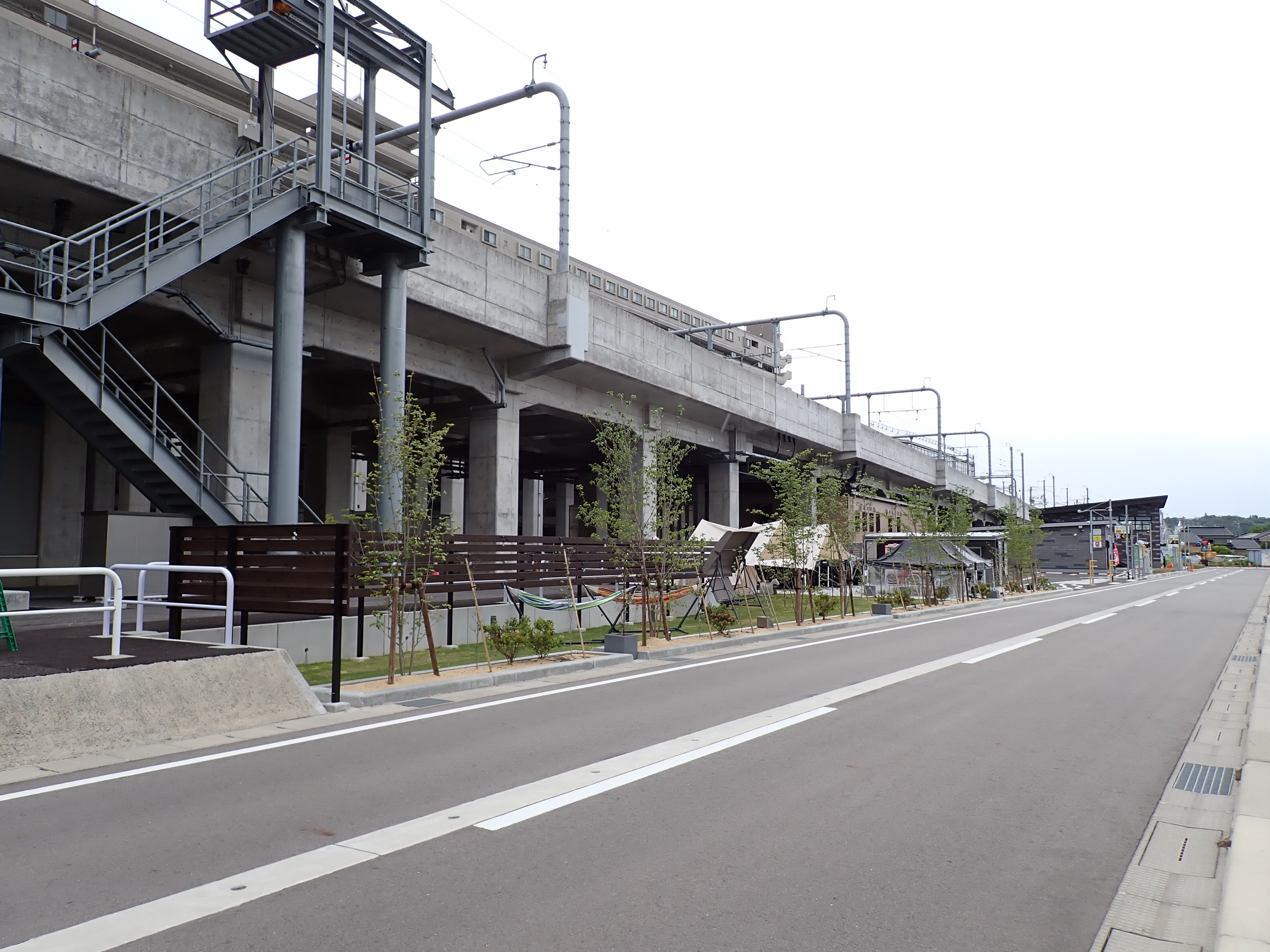 仮設線路跡地に商業施設(牛島パークウエスト)の建設が進んでいて、4月26日にオープンしました。その後はしばらくこの駅の動きが少なくなりますが、その後動くところを少し撮っています。