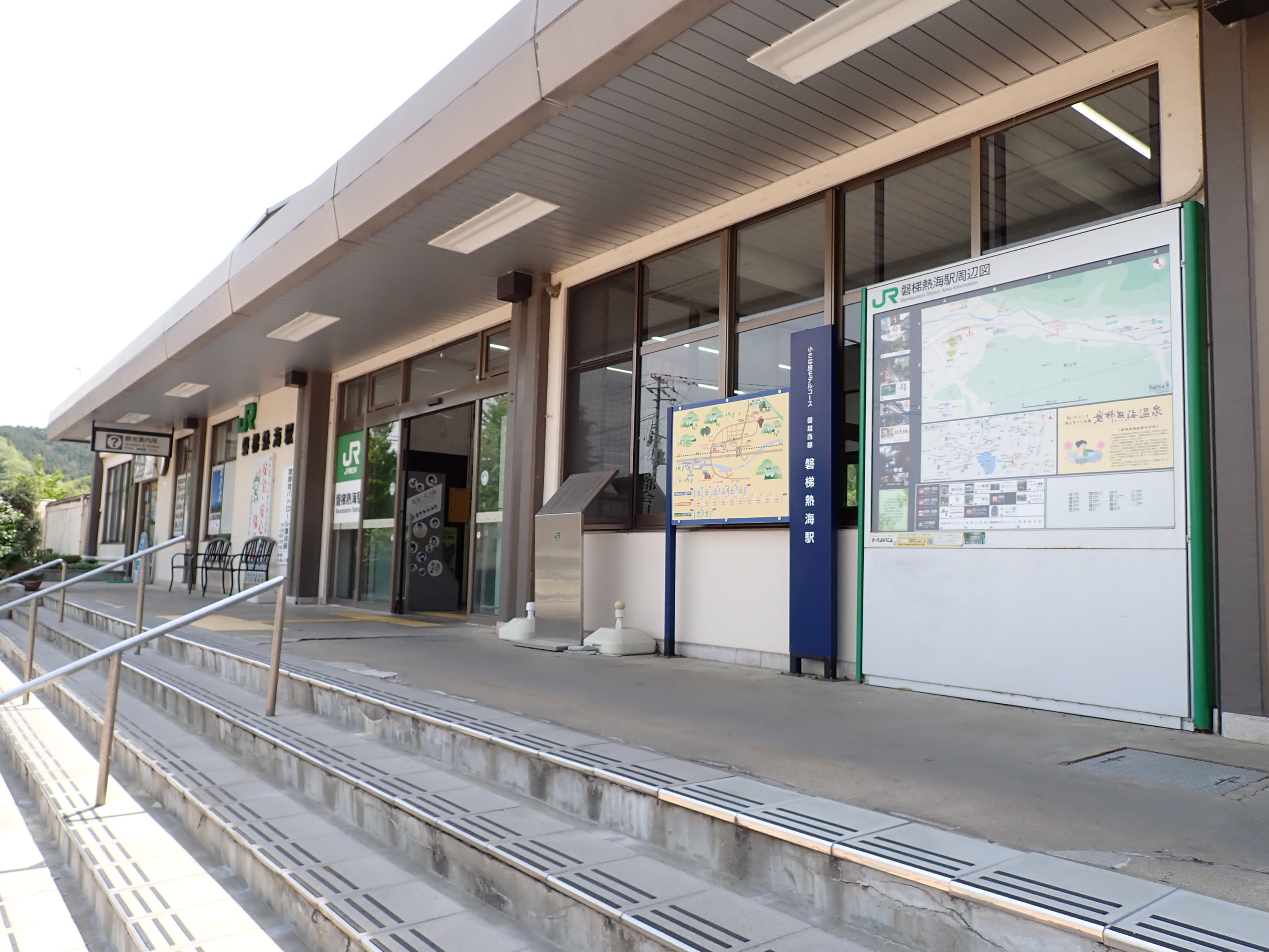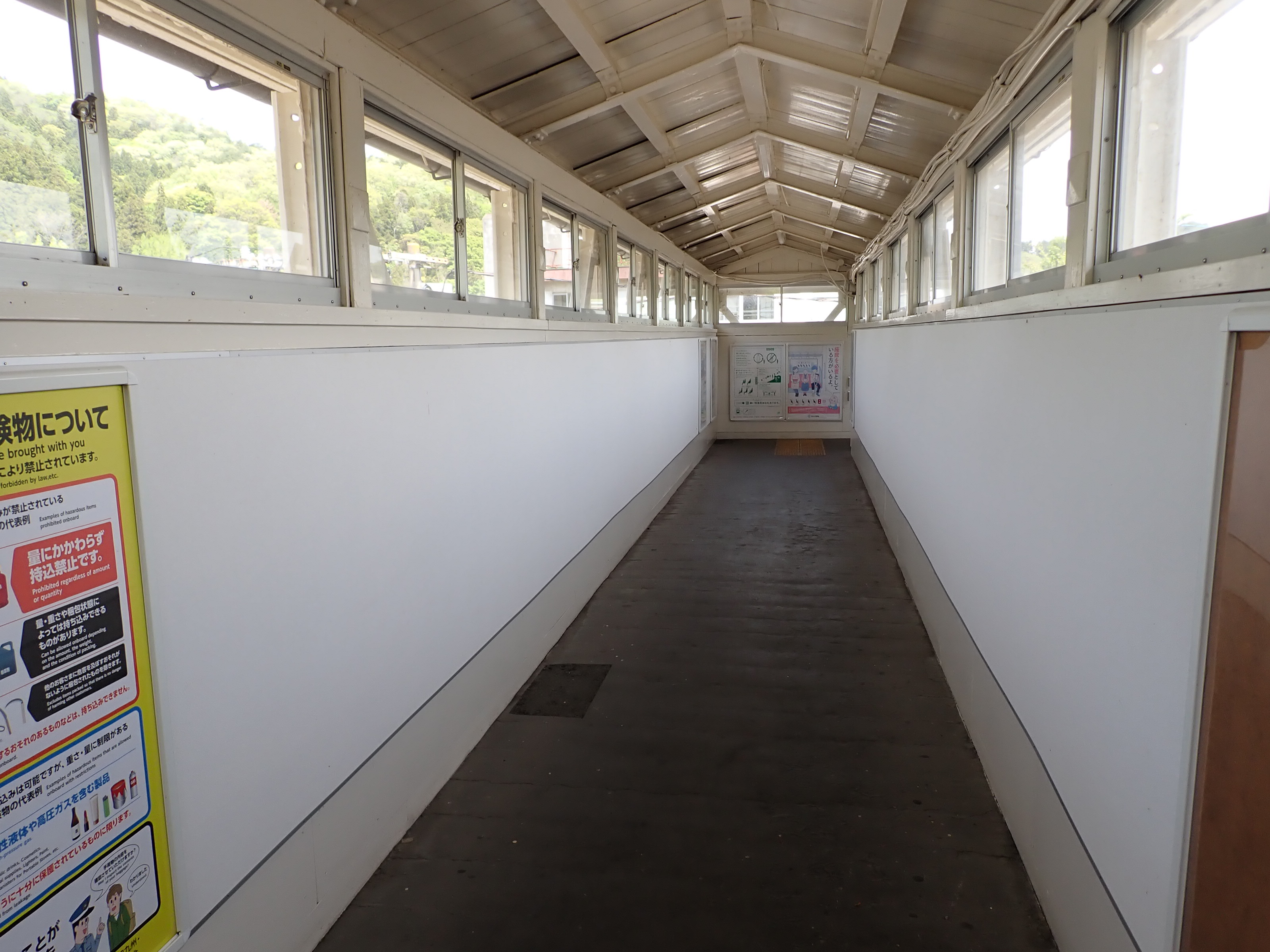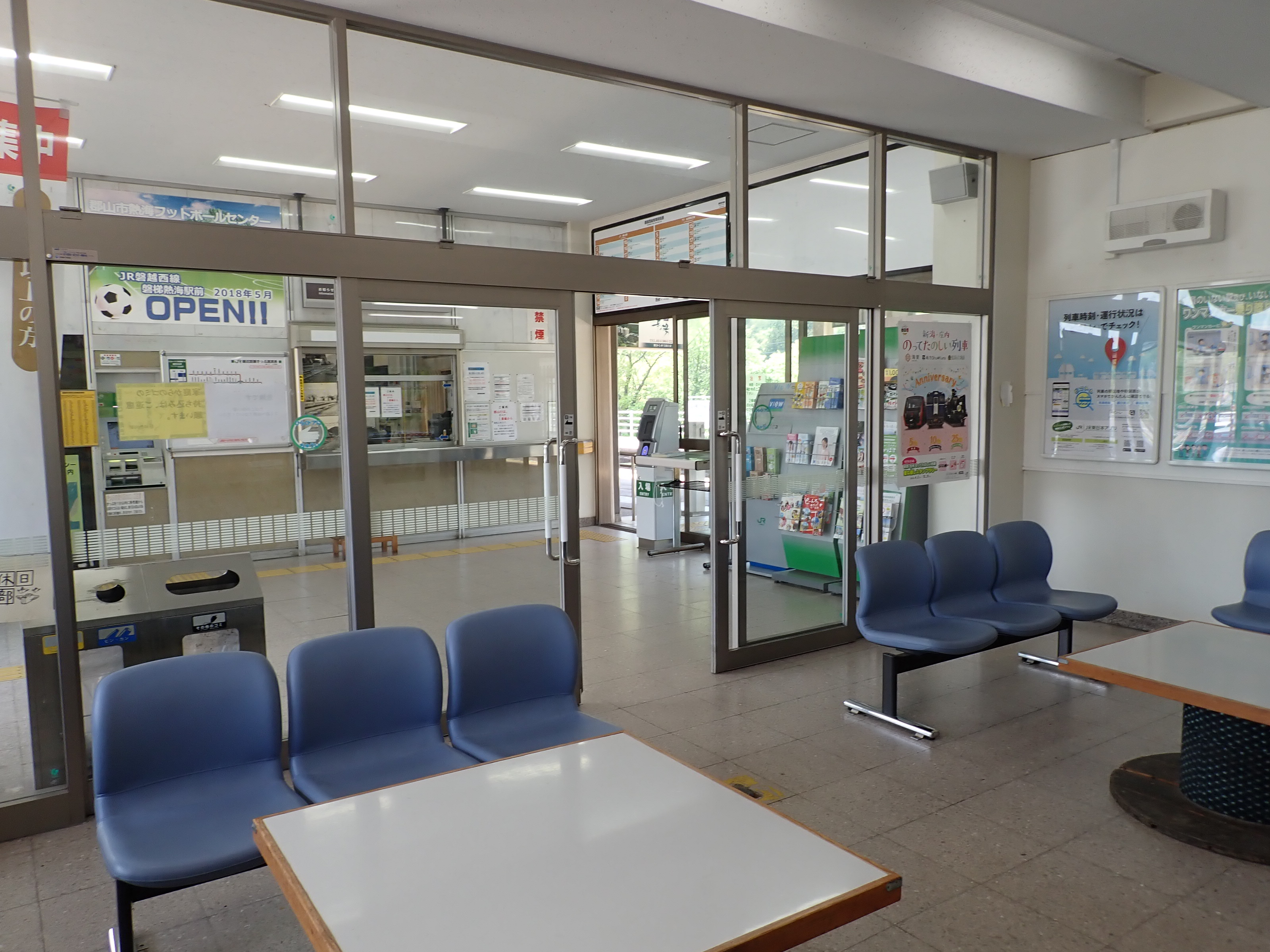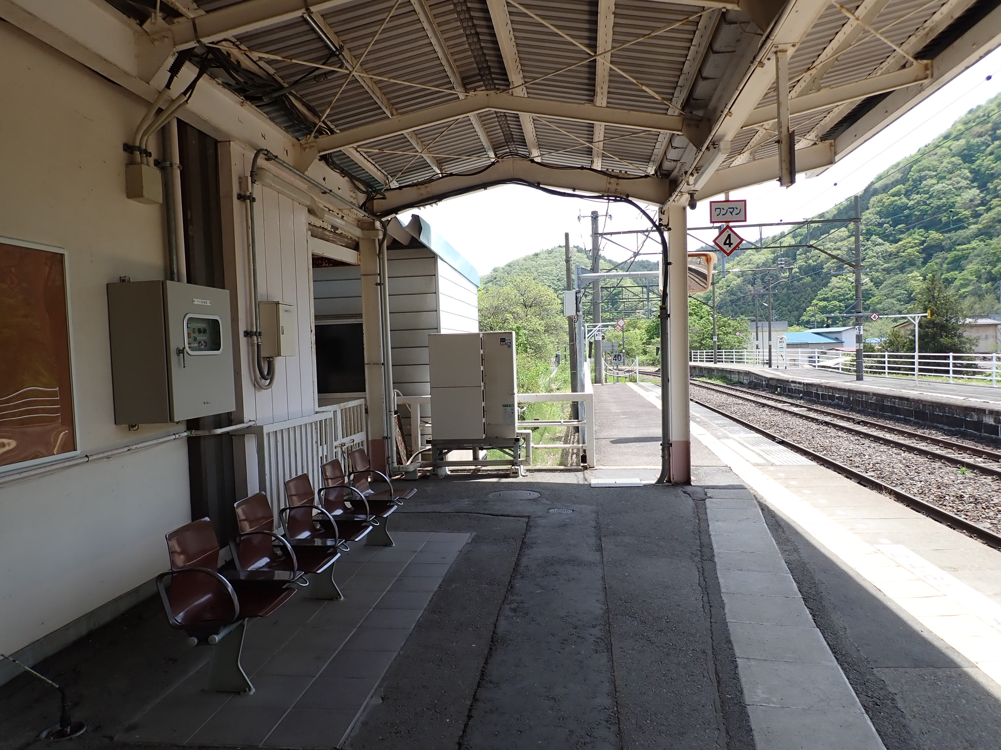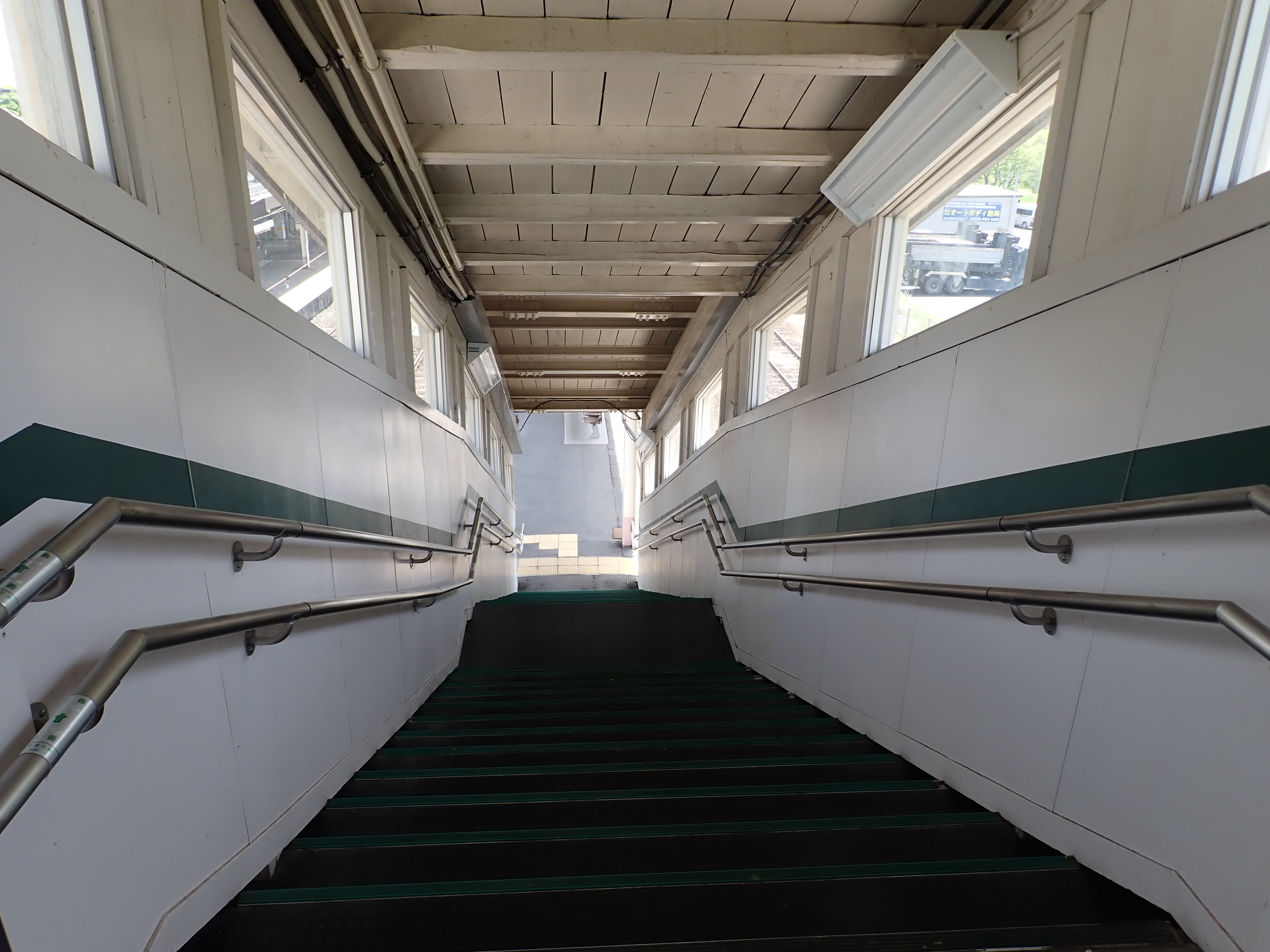 会津若松駅から来ると、この駅近くから開けてきて、この駅を過ぎると急激に広がってくる印象です。駅のそばに磐梯熱海温泉の温泉街が少しありますが、さらに中山宿駅側に進んだ五百川沿いに温泉街が広がっています。跨線橋が印象的な駅です。