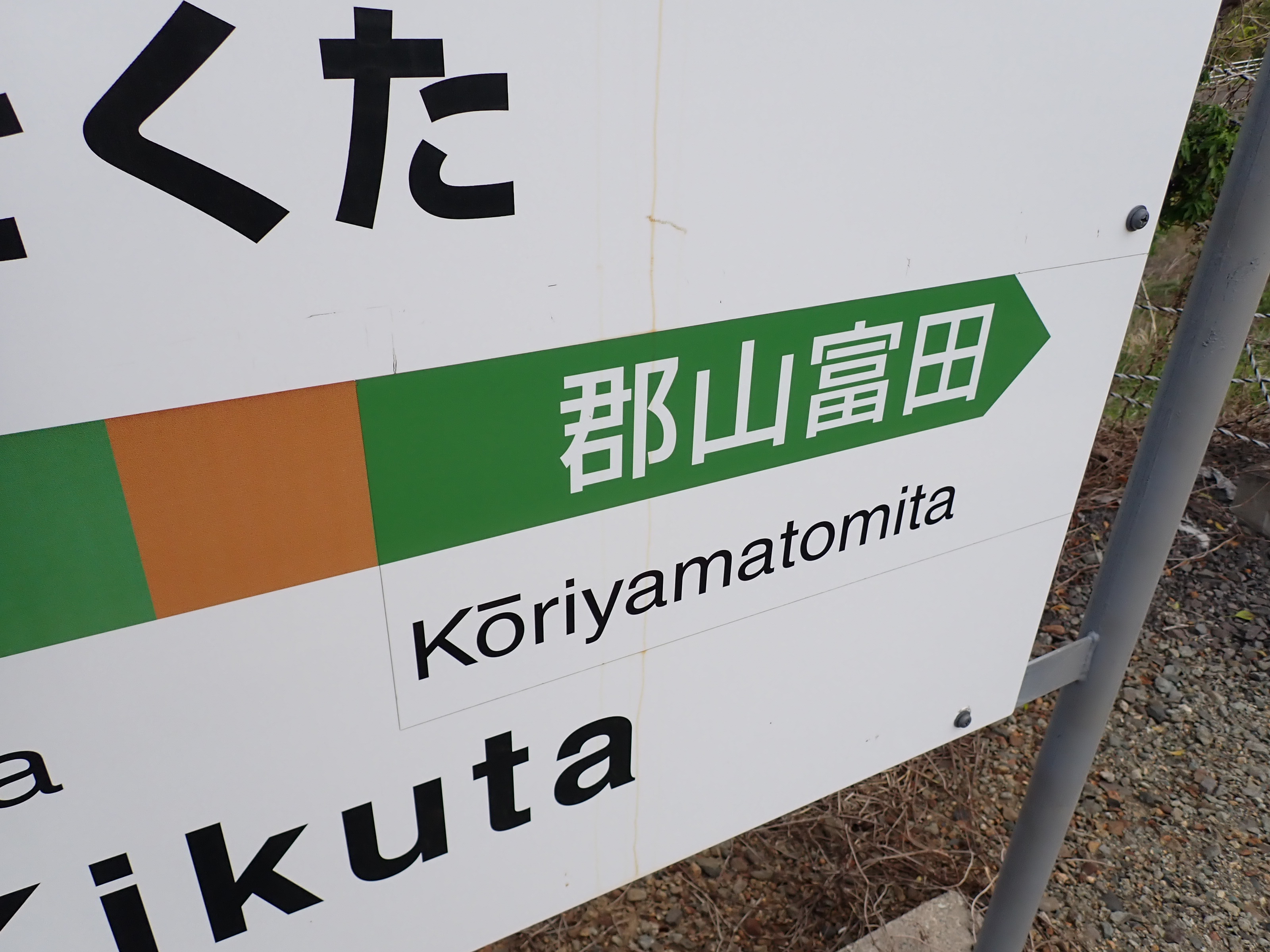 郡山富田の隣駅表示がシールでの対応になっています。