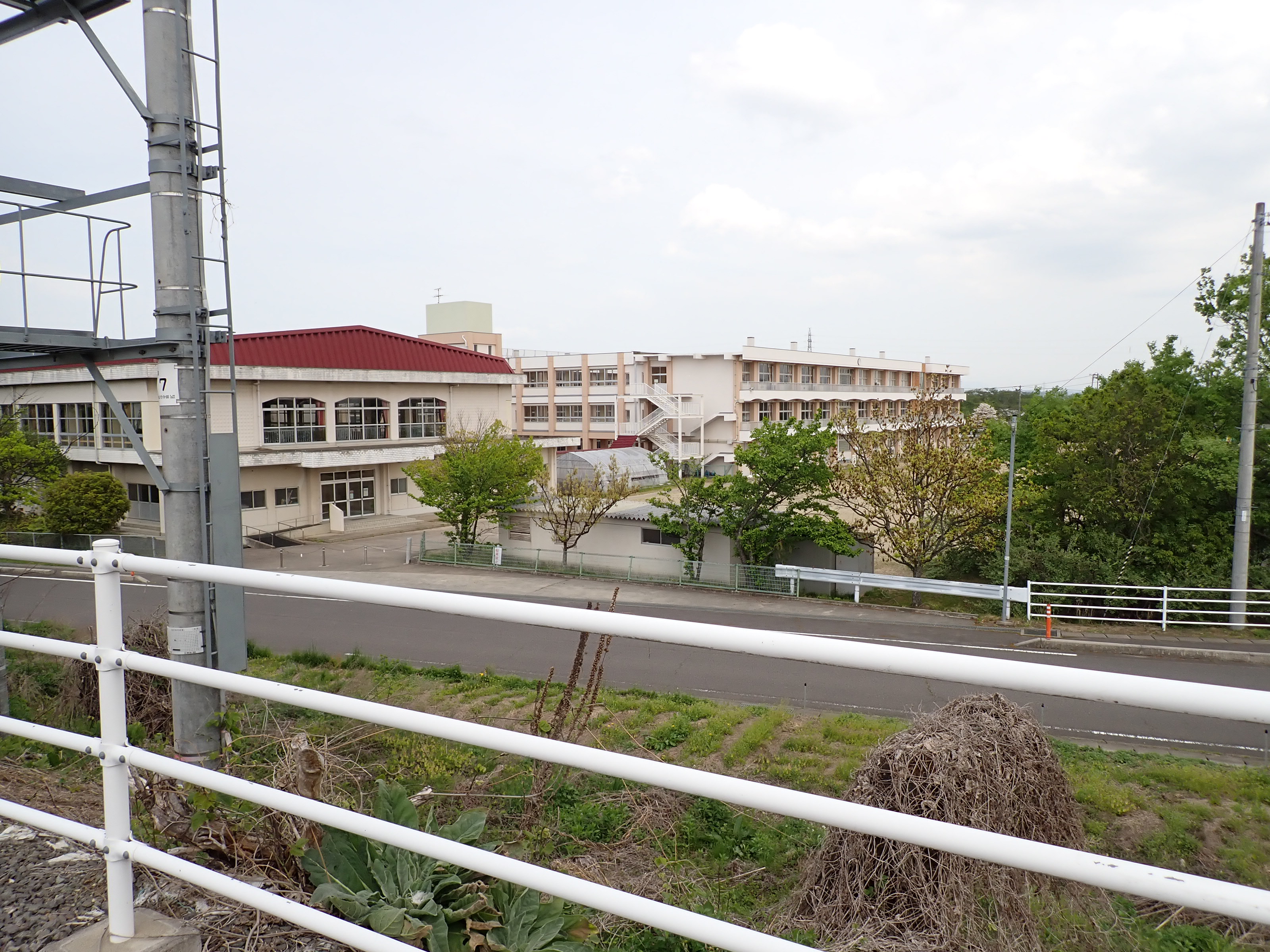 2番線の向こう側に見える学校。