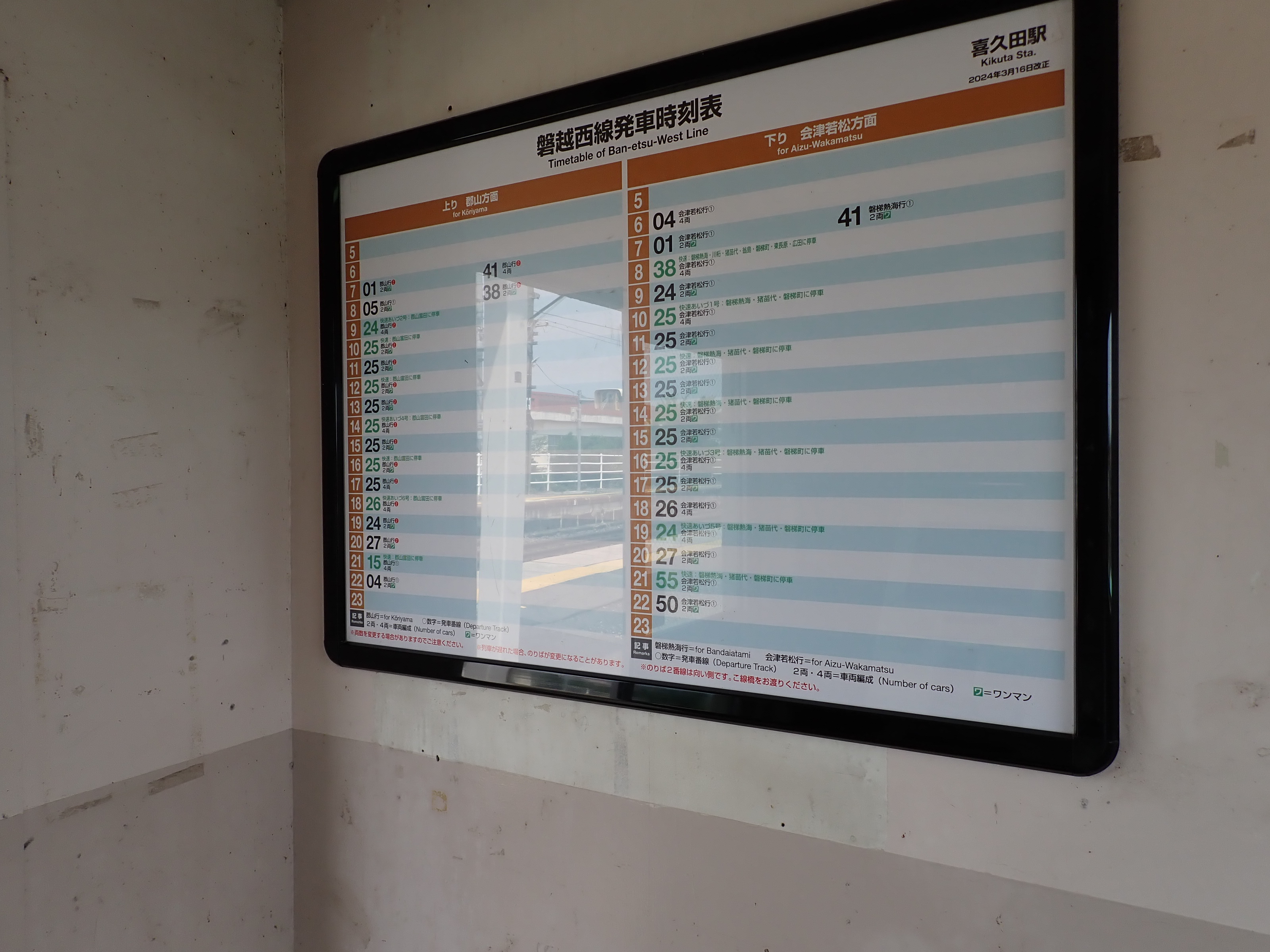 住宅地の中にある駅ですが、しばらく進むと交通量の多い国道49号が通っています。郡山インターも近くにあります。駅舎はコンパクトながらも必要なものが揃っている感じがします。