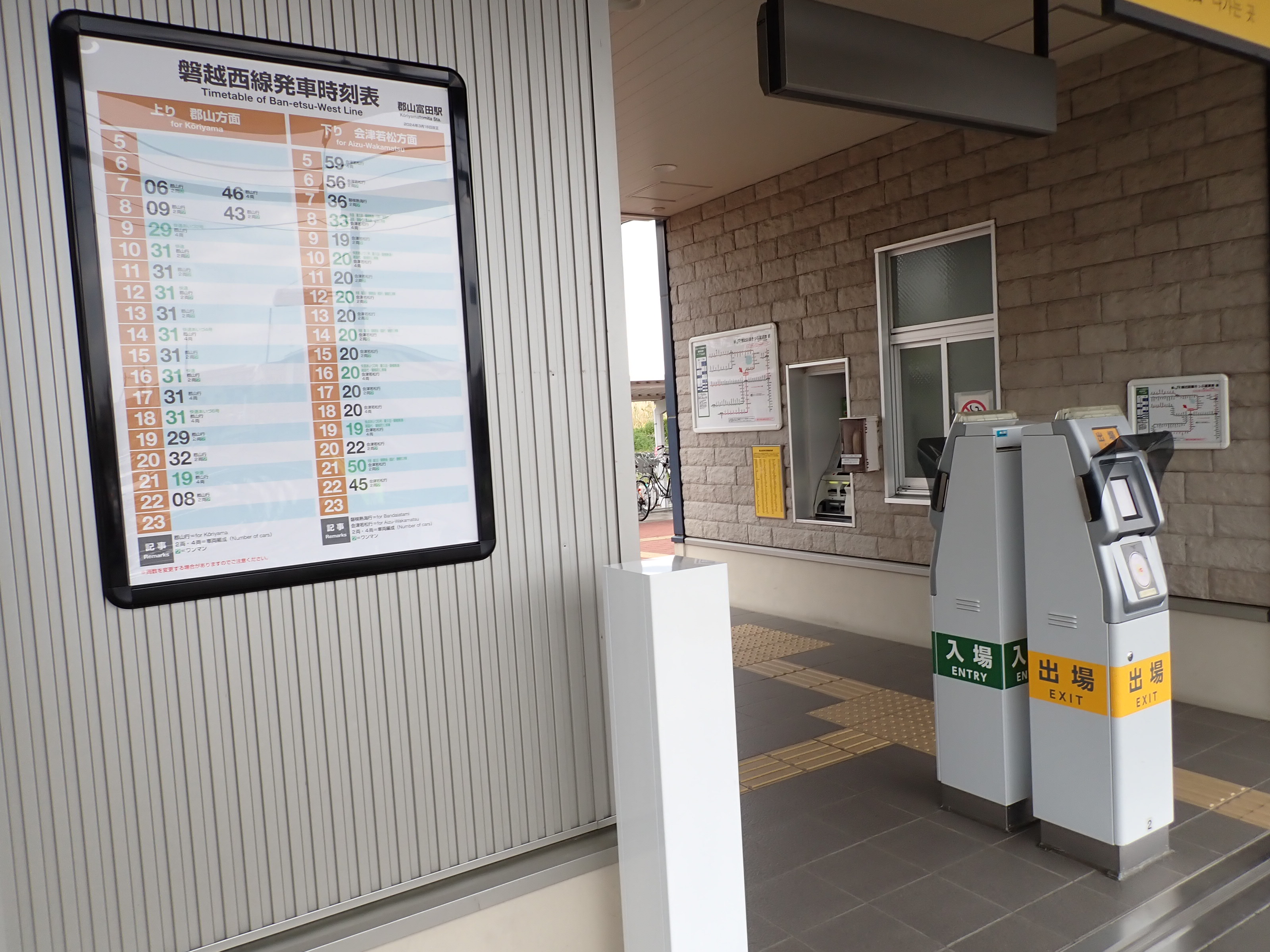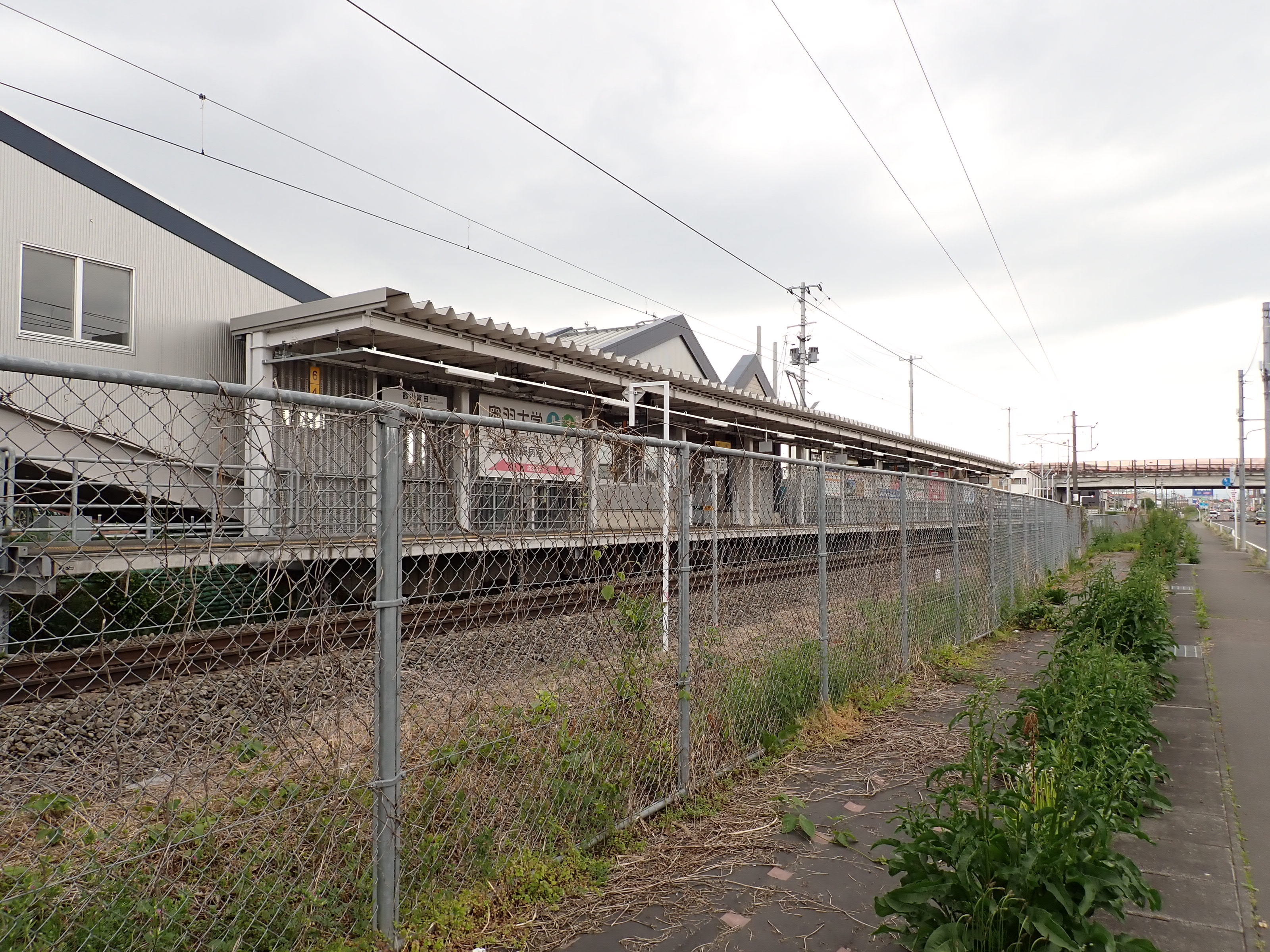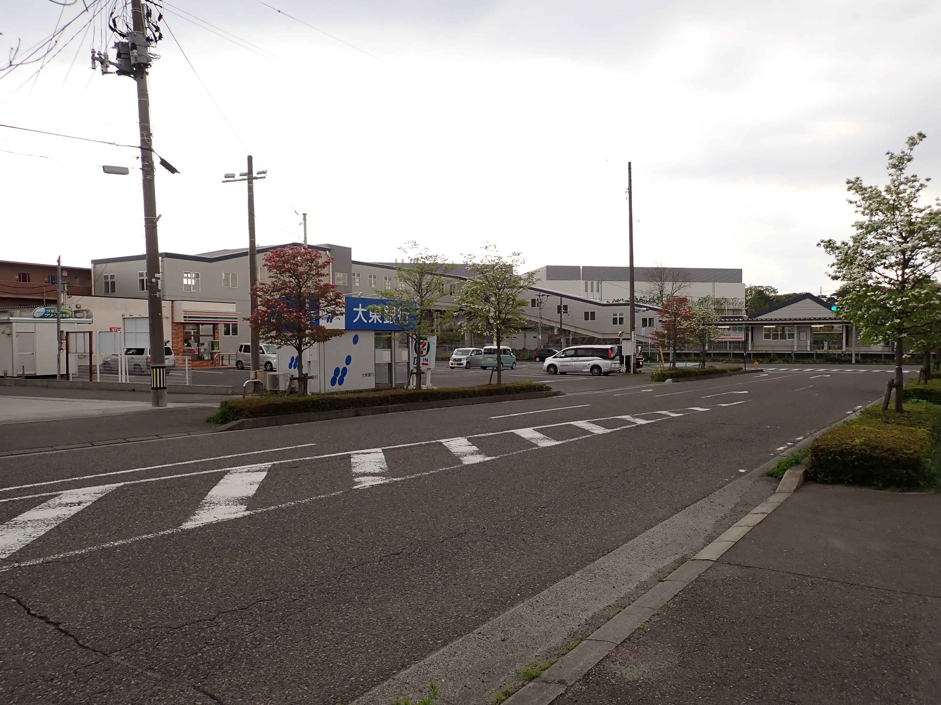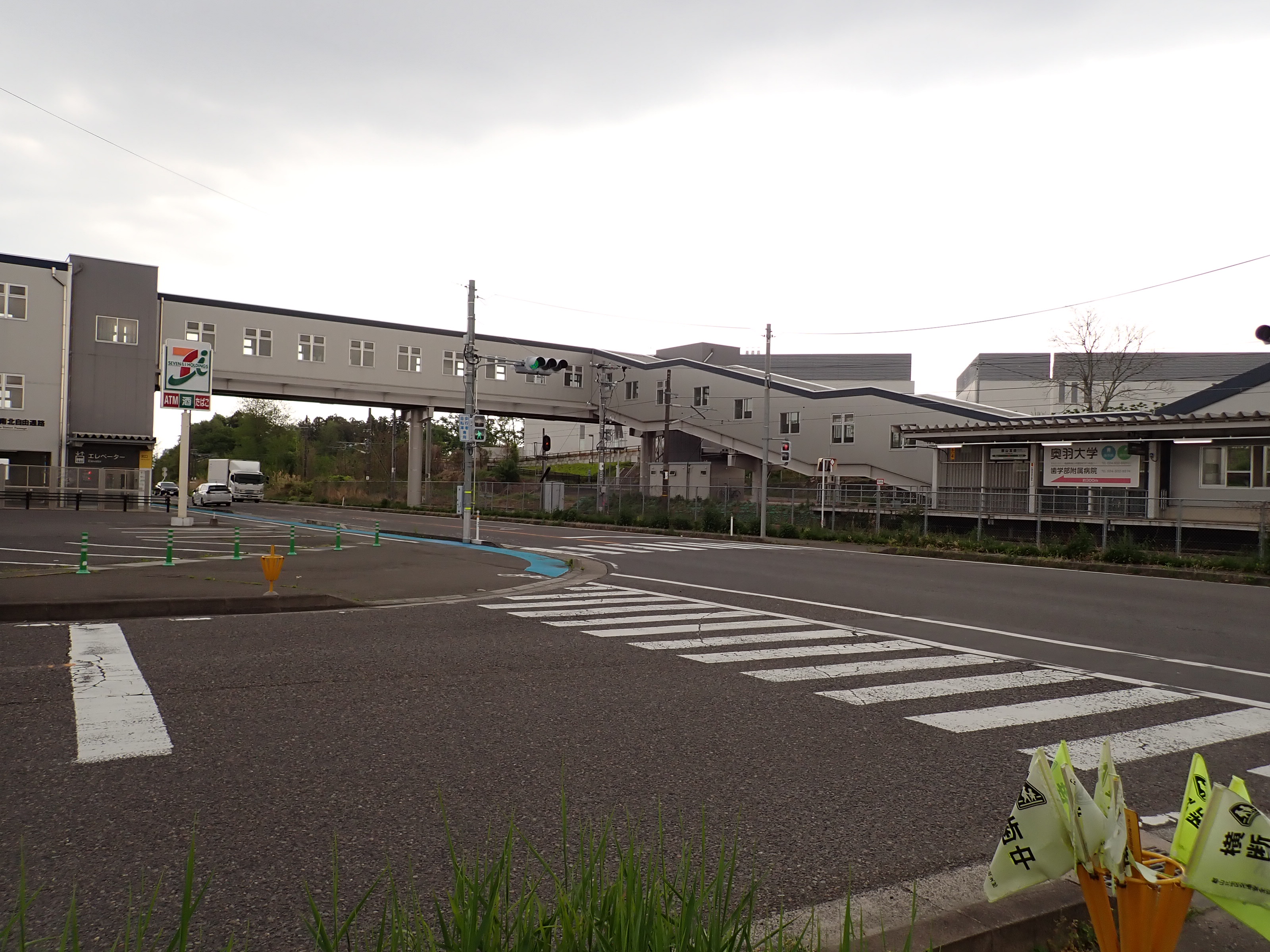 北口側に出てきてホームと反対側の県道から見た郡山富田駅のホーム。