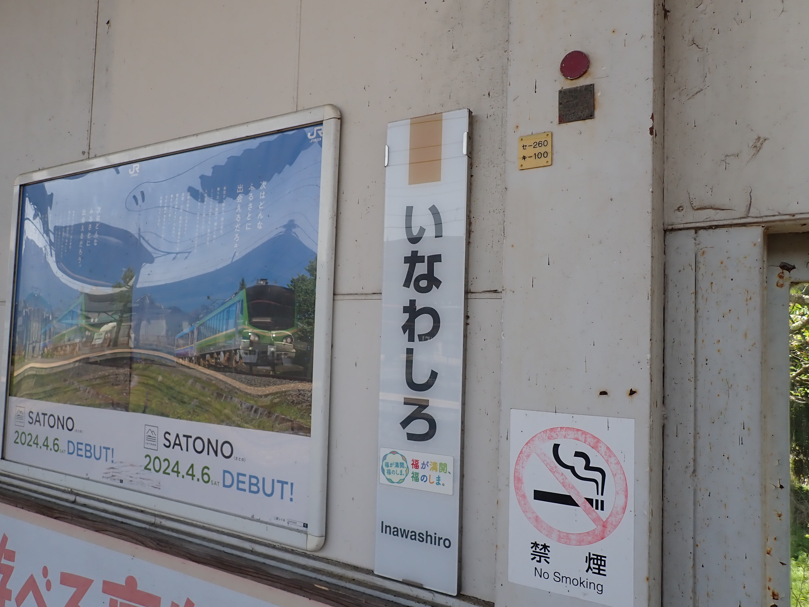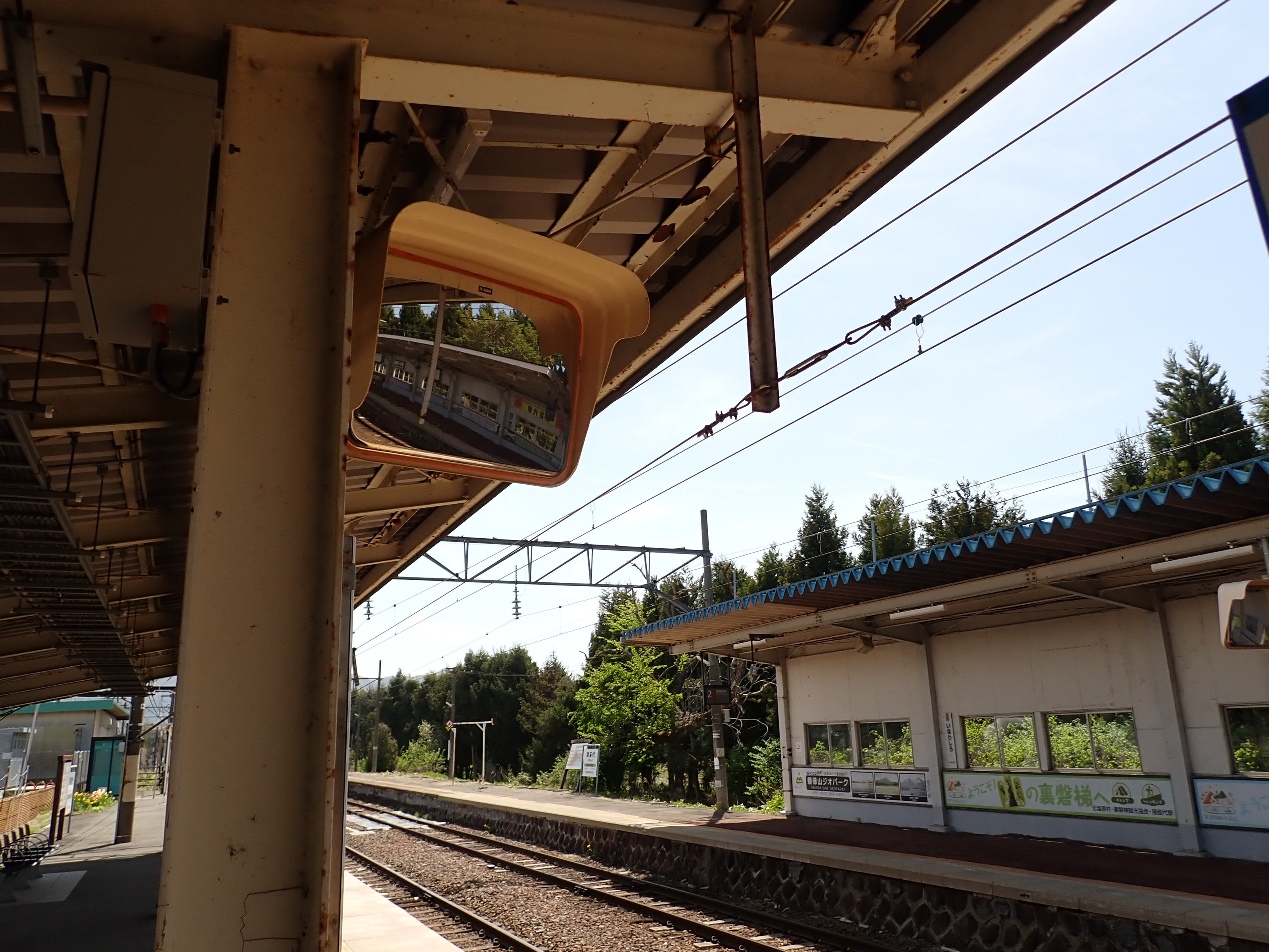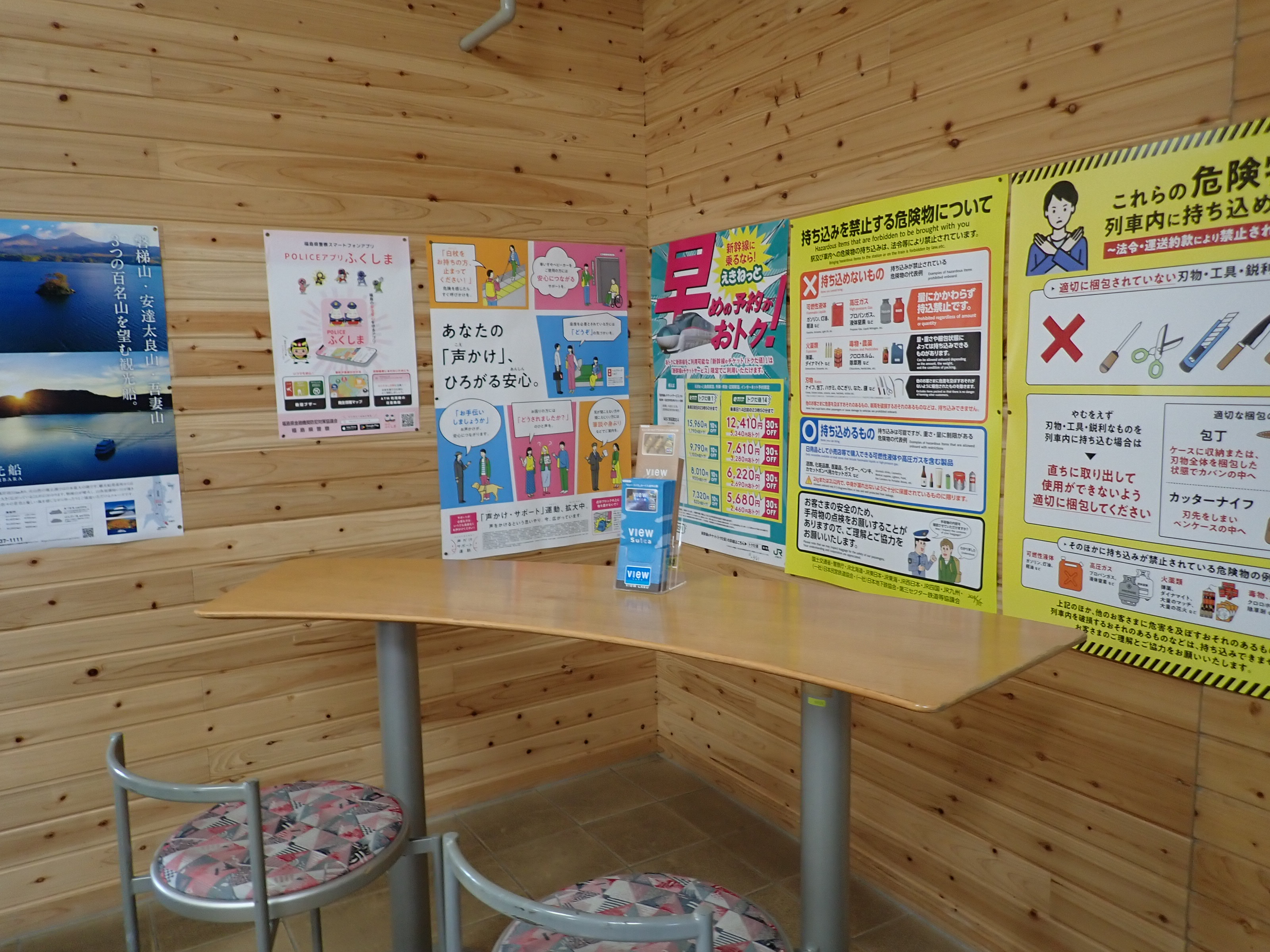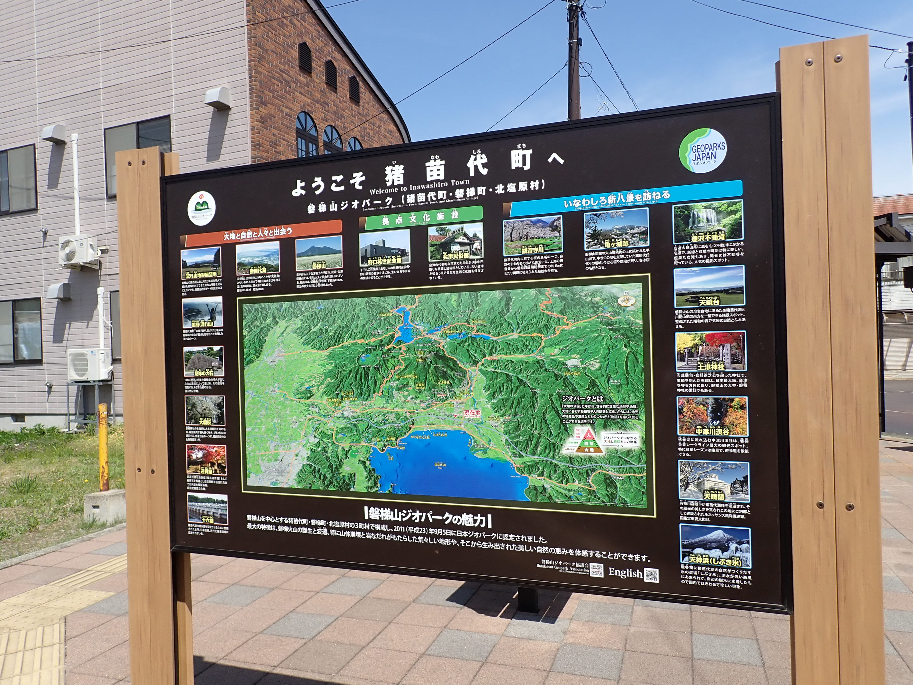 猪苗代湖に近く、また、磐梯朝日国立公園・磐梯高原・磐梯山などへの多くの観光客で賑わう駅です。駅前は観光地らしい佇まいです。両ホームとも上屋と跨線橋の接続部分に特徴がある造りです。