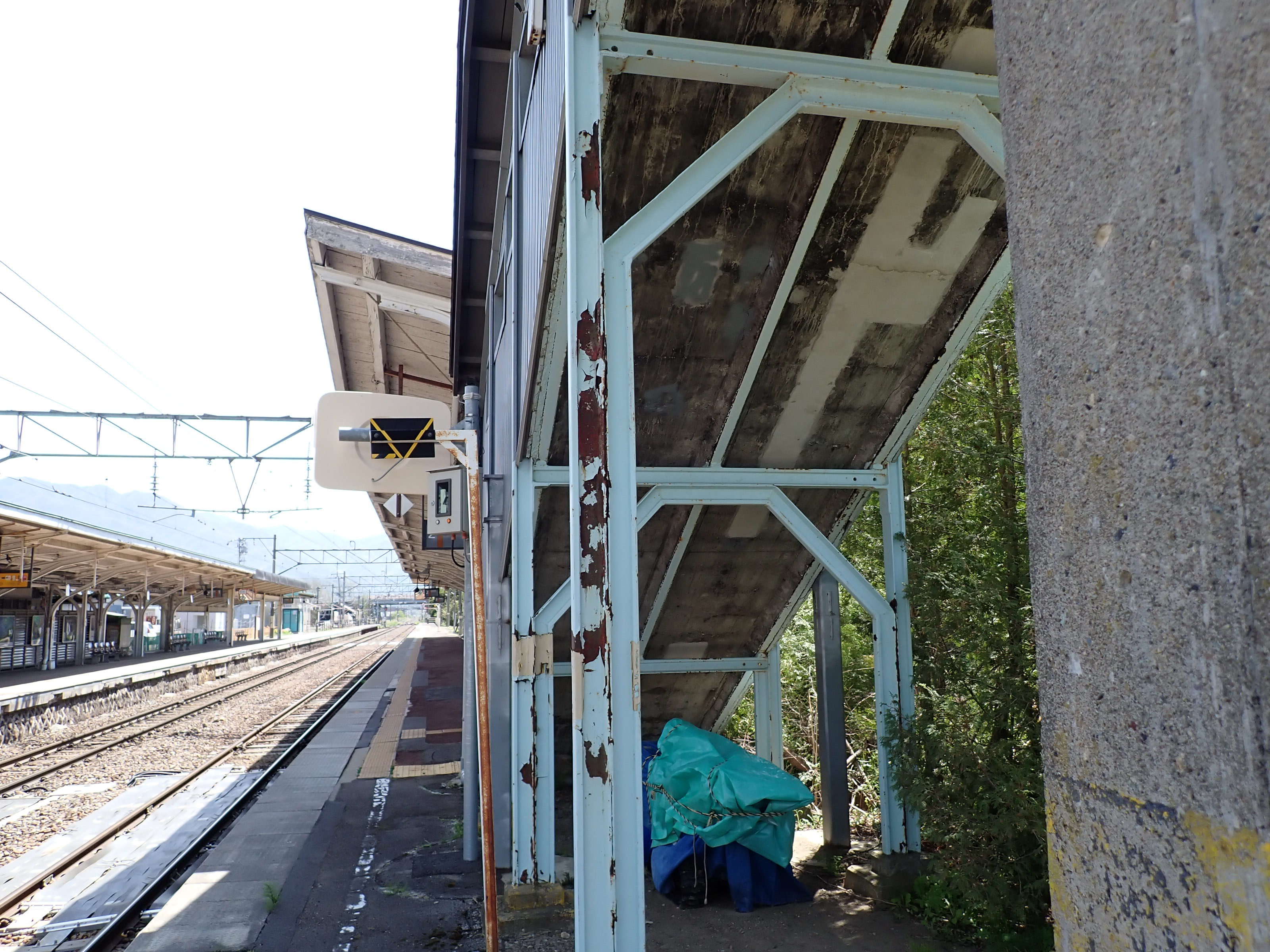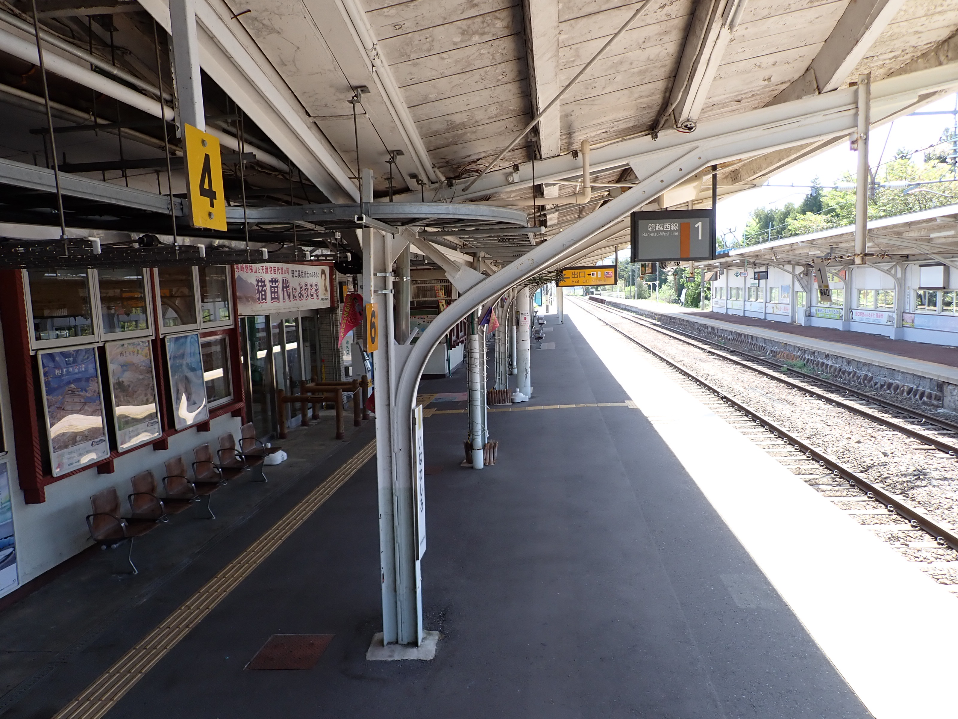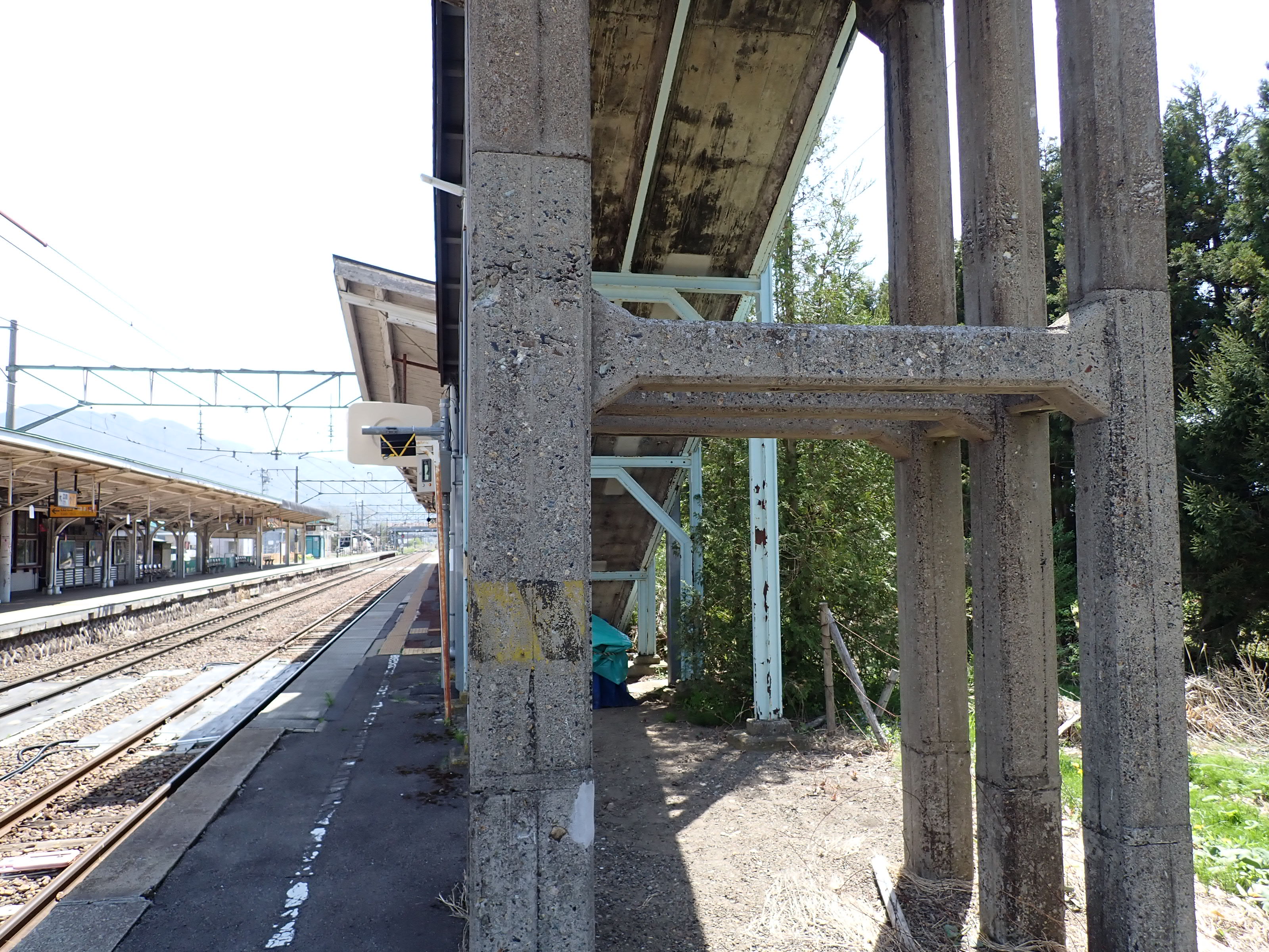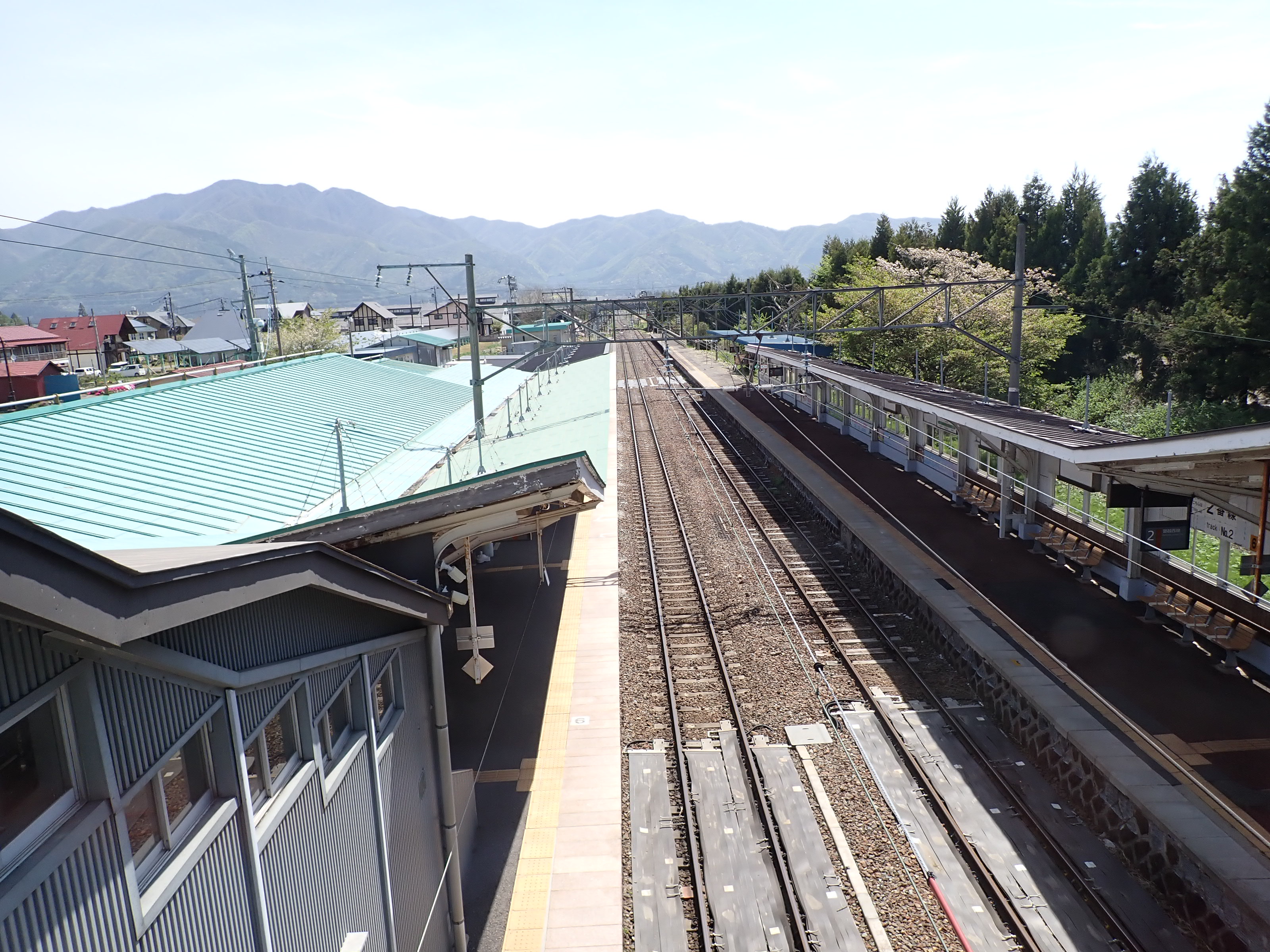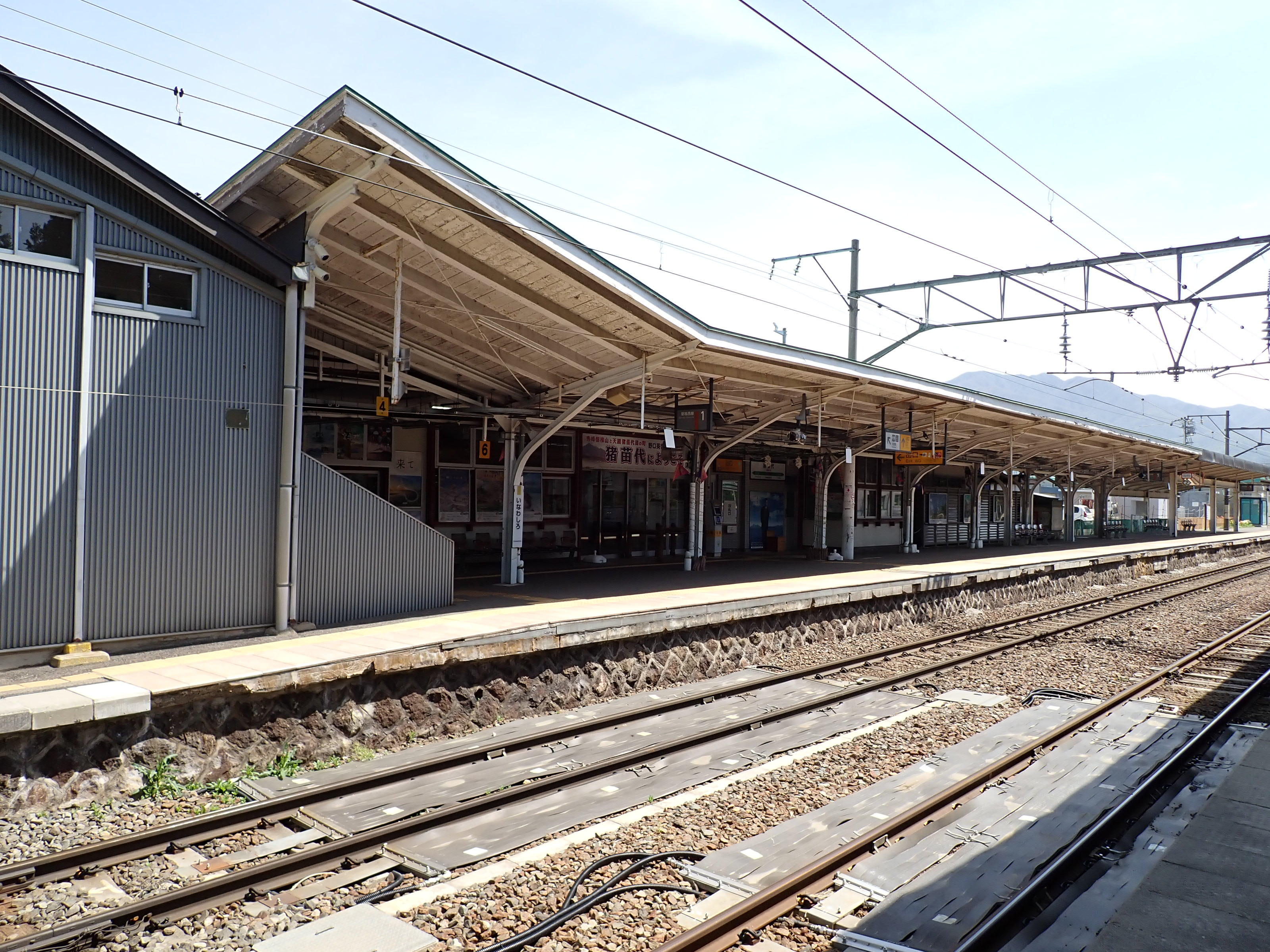 猪苗代湖に近く、また、磐梯朝日国立公園・磐梯高原・磐梯山などへの多くの観光客で賑わう駅です。駅前は観光地らしい佇まいです。両ホームとも上屋と跨線橋の接続部分に特徴がある造りです。