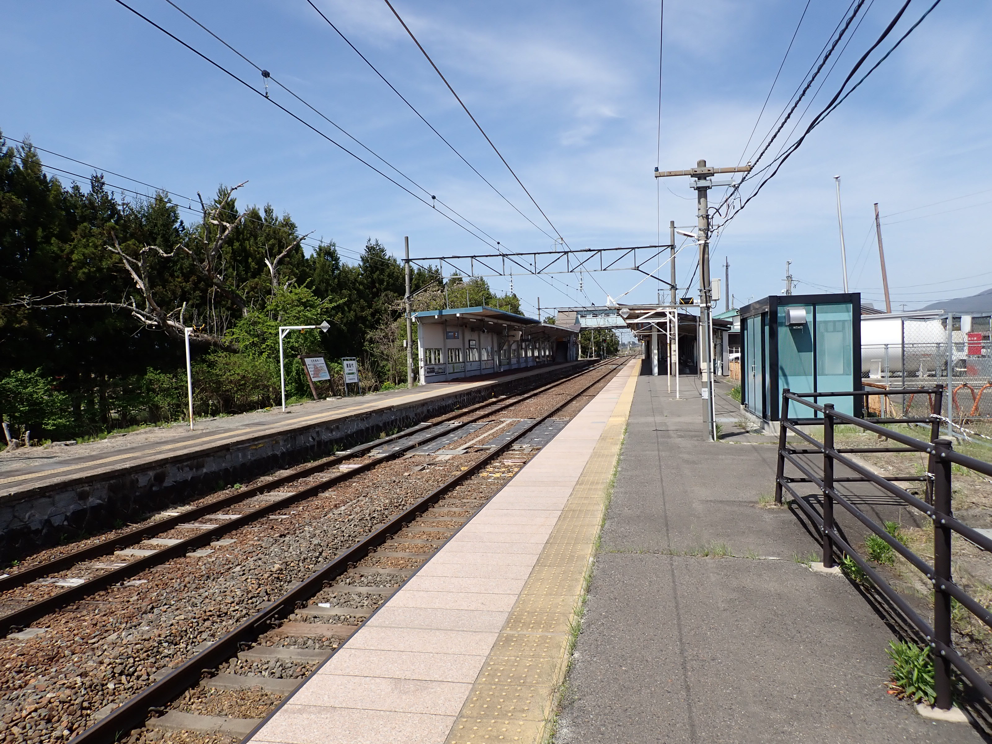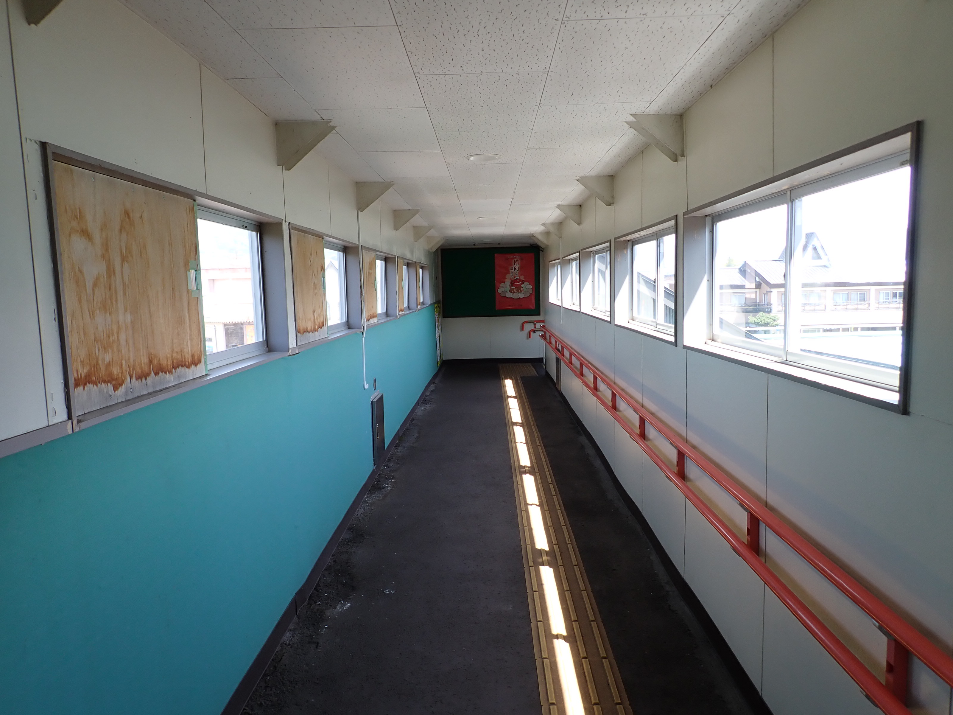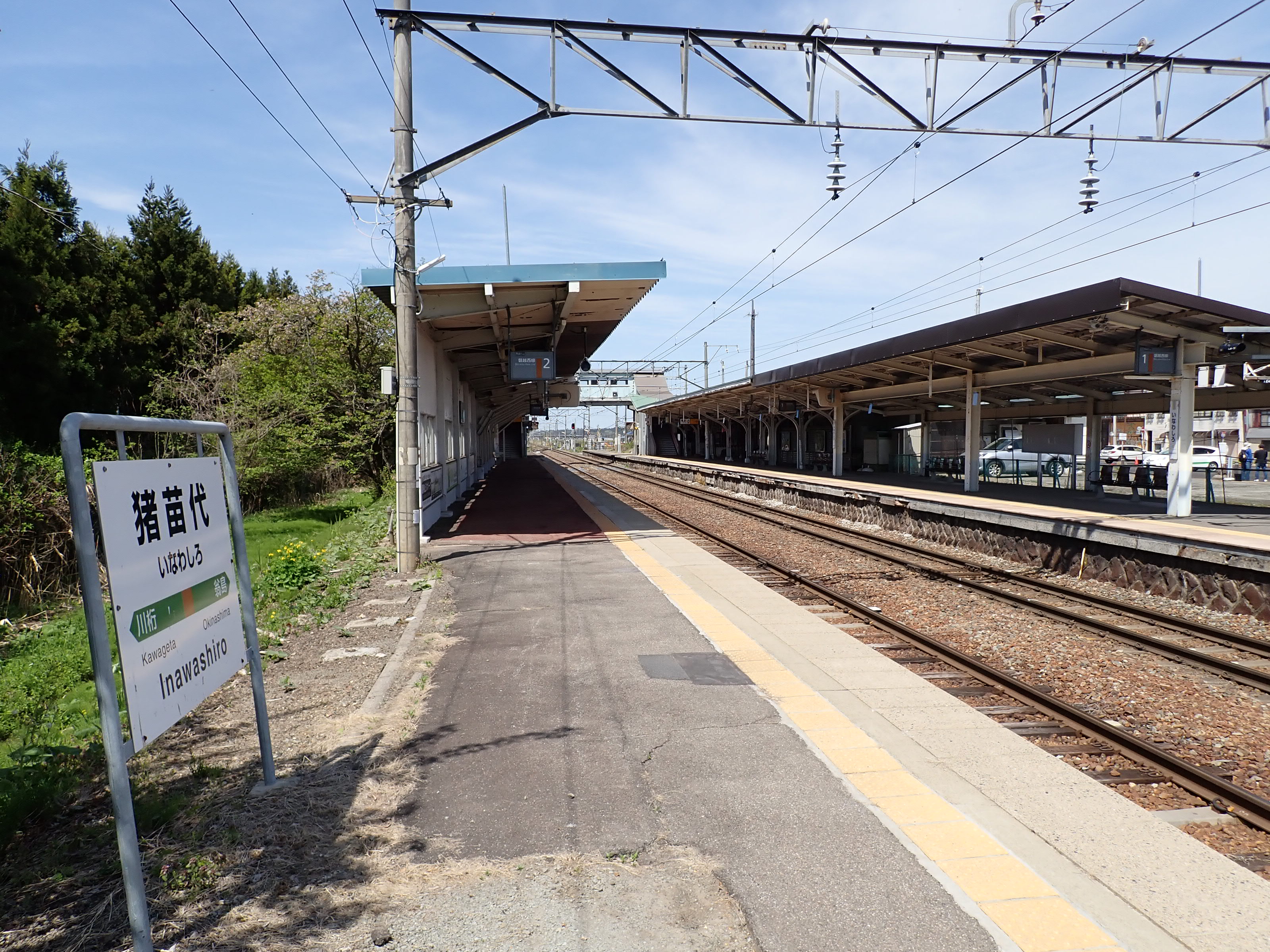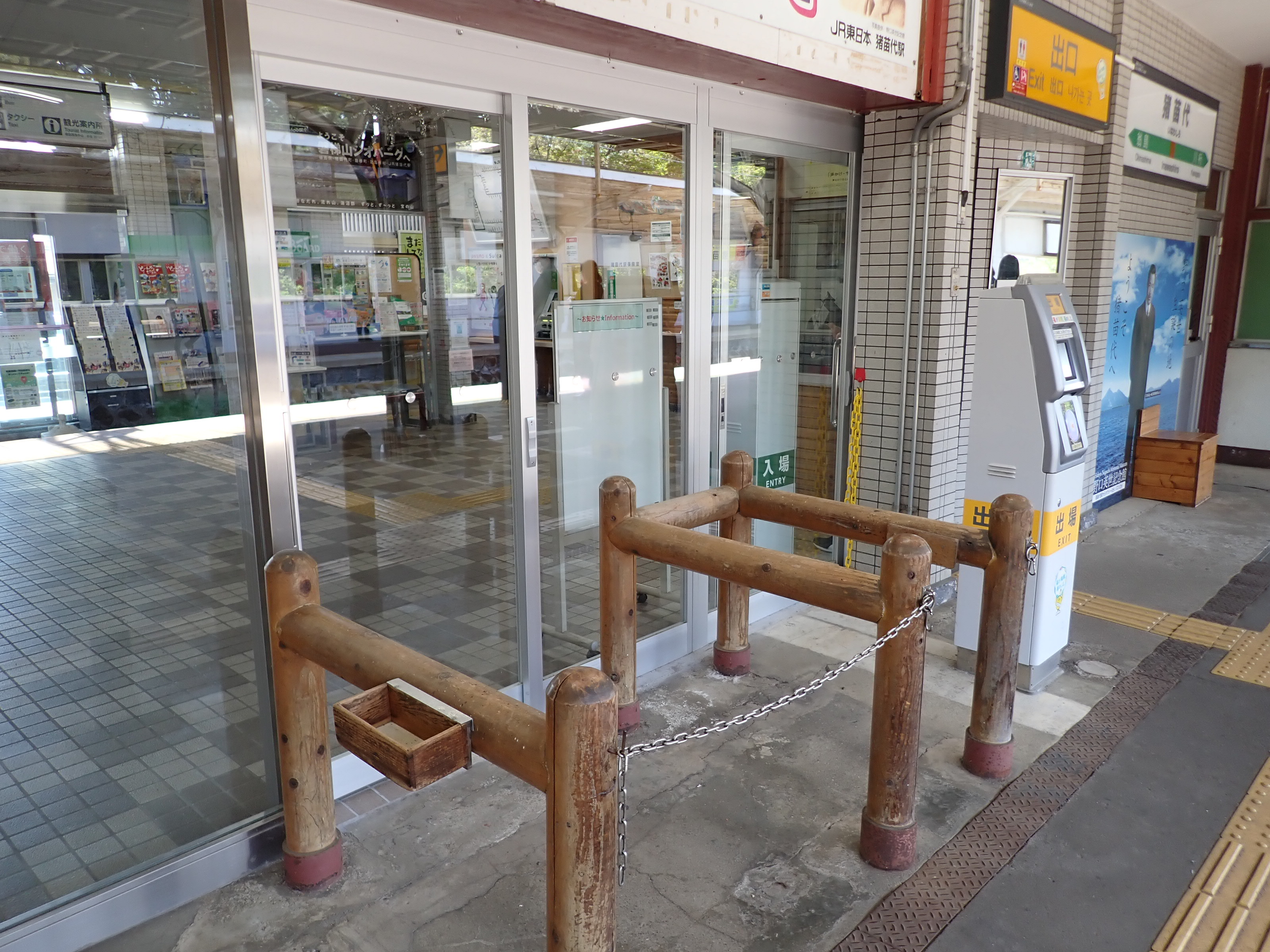 猪苗代湖に近く、また、磐梯朝日国立公園・磐梯高原・磐梯山などへの多くの観光客で賑わう駅です。駅前は観光地らしい佇まいです。両ホームとも上屋と跨線橋の接続部分に特徴がある造りです。