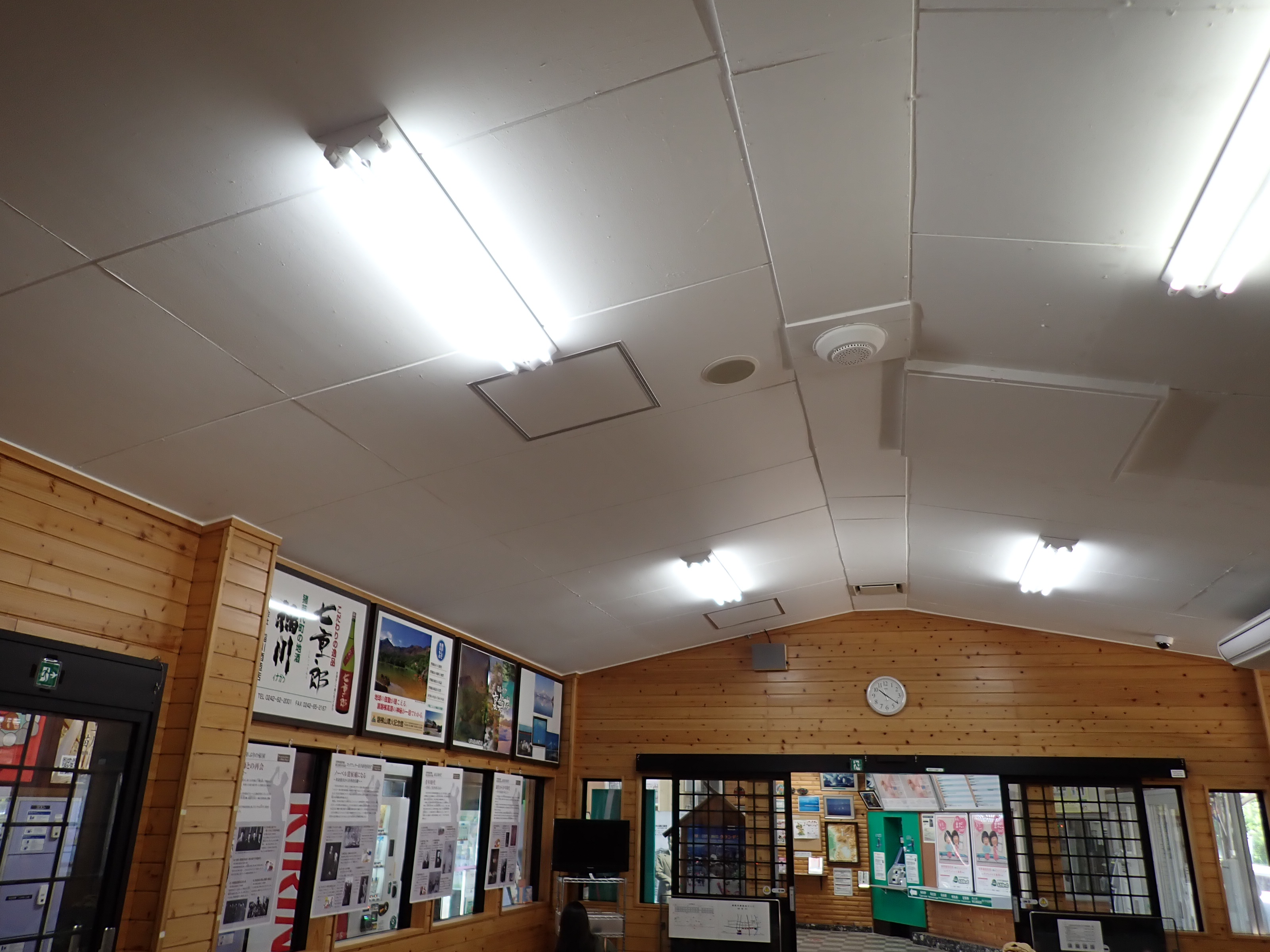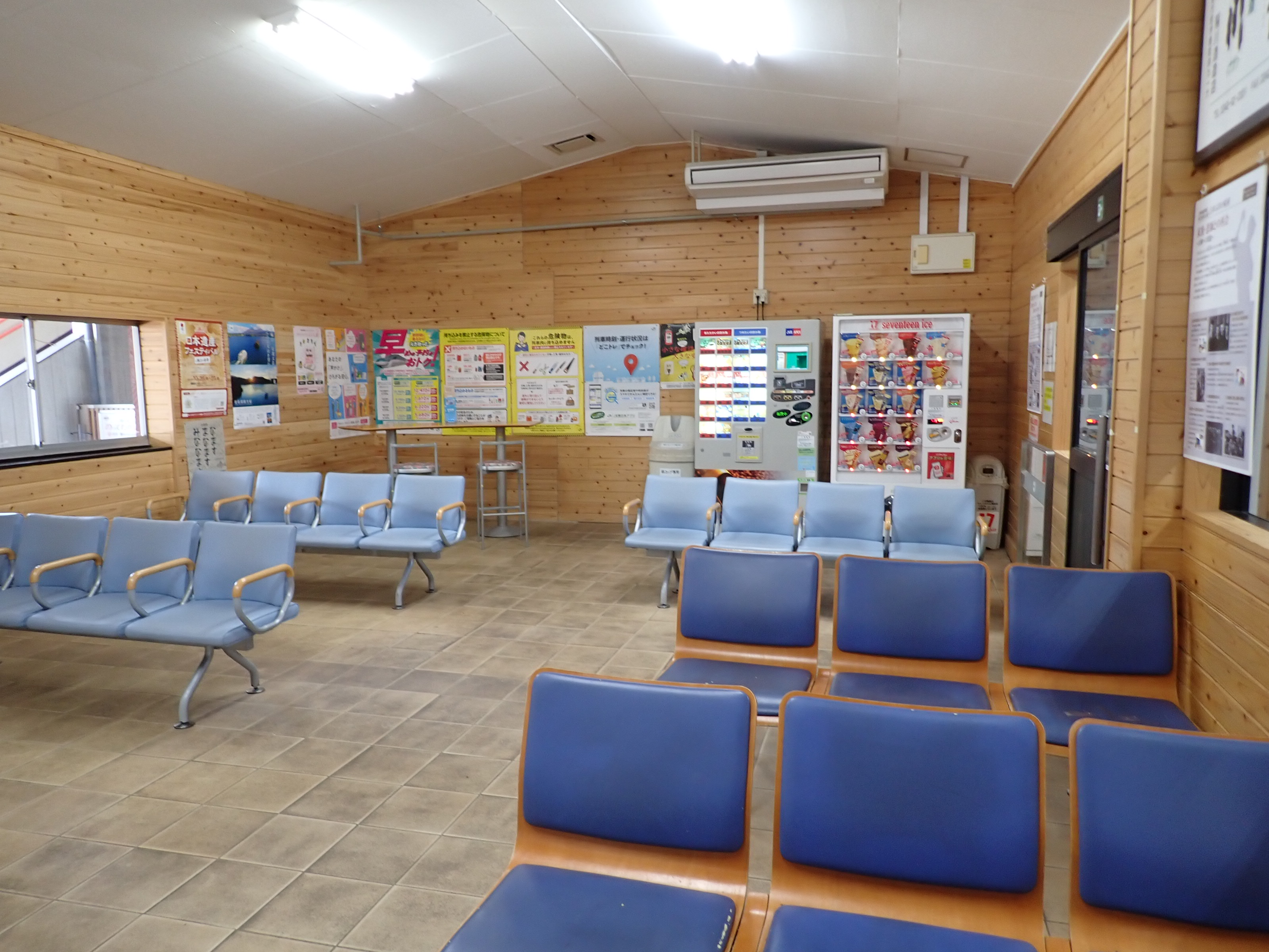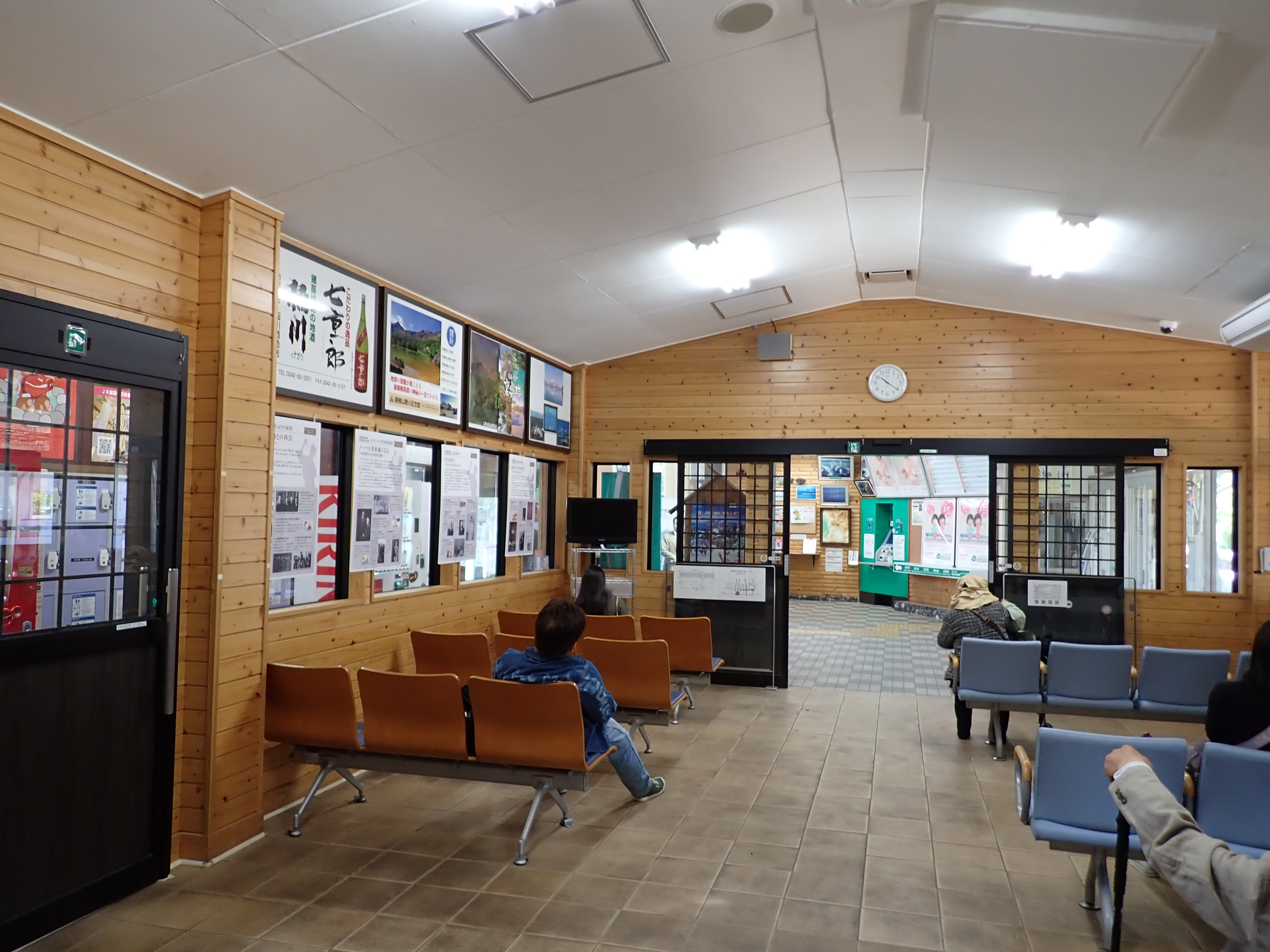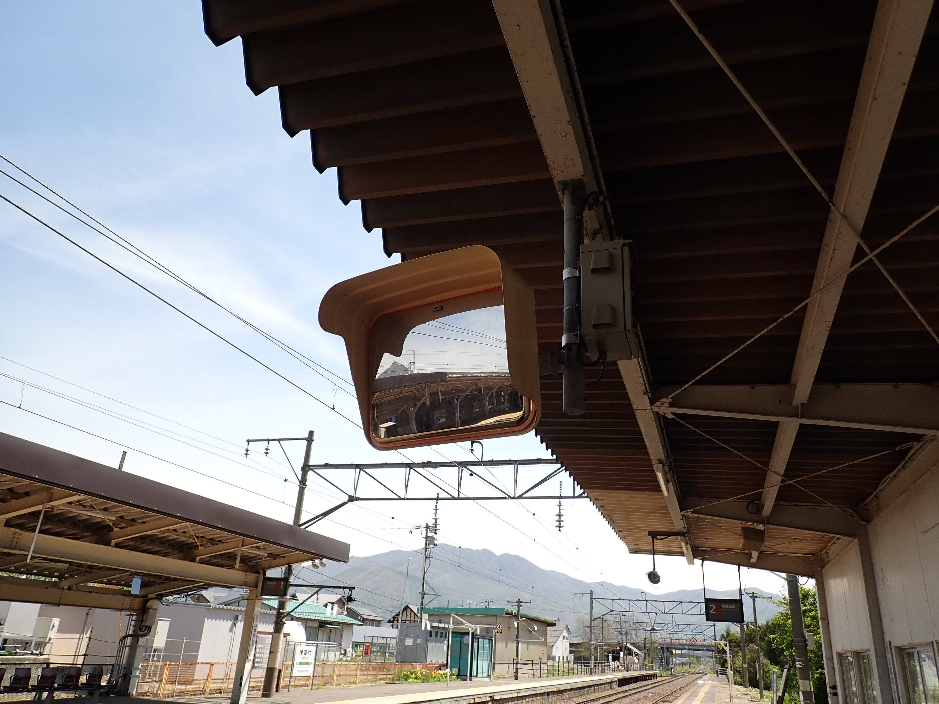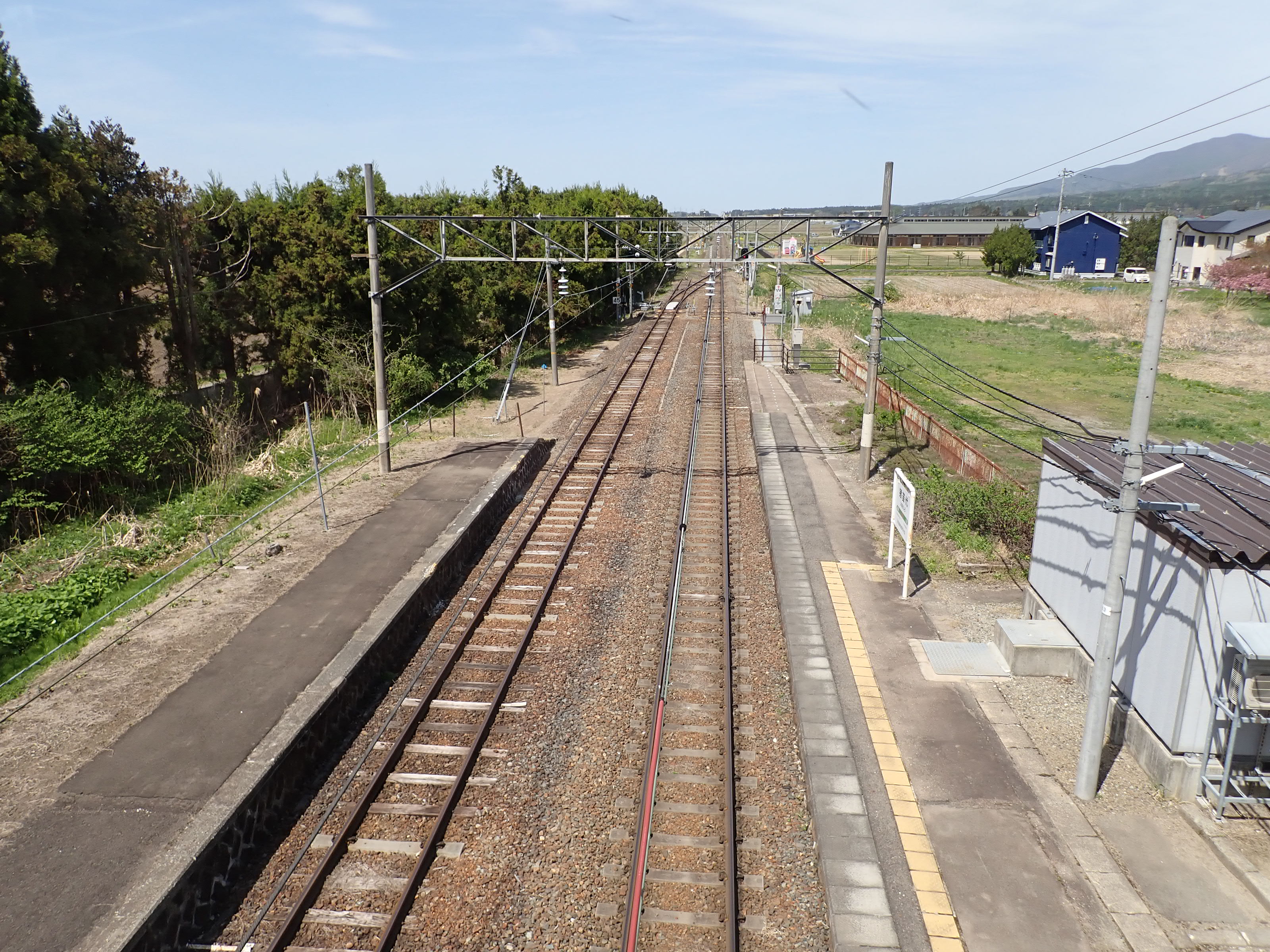 猪苗代湖に近く、また、磐梯朝日国立公園・磐梯高原・磐梯山などへの多くの観光客で賑わう駅です。駅前は観光地らしい佇まいです。両ホームとも上屋と跨線橋の接続部分に特徴がある造りです。