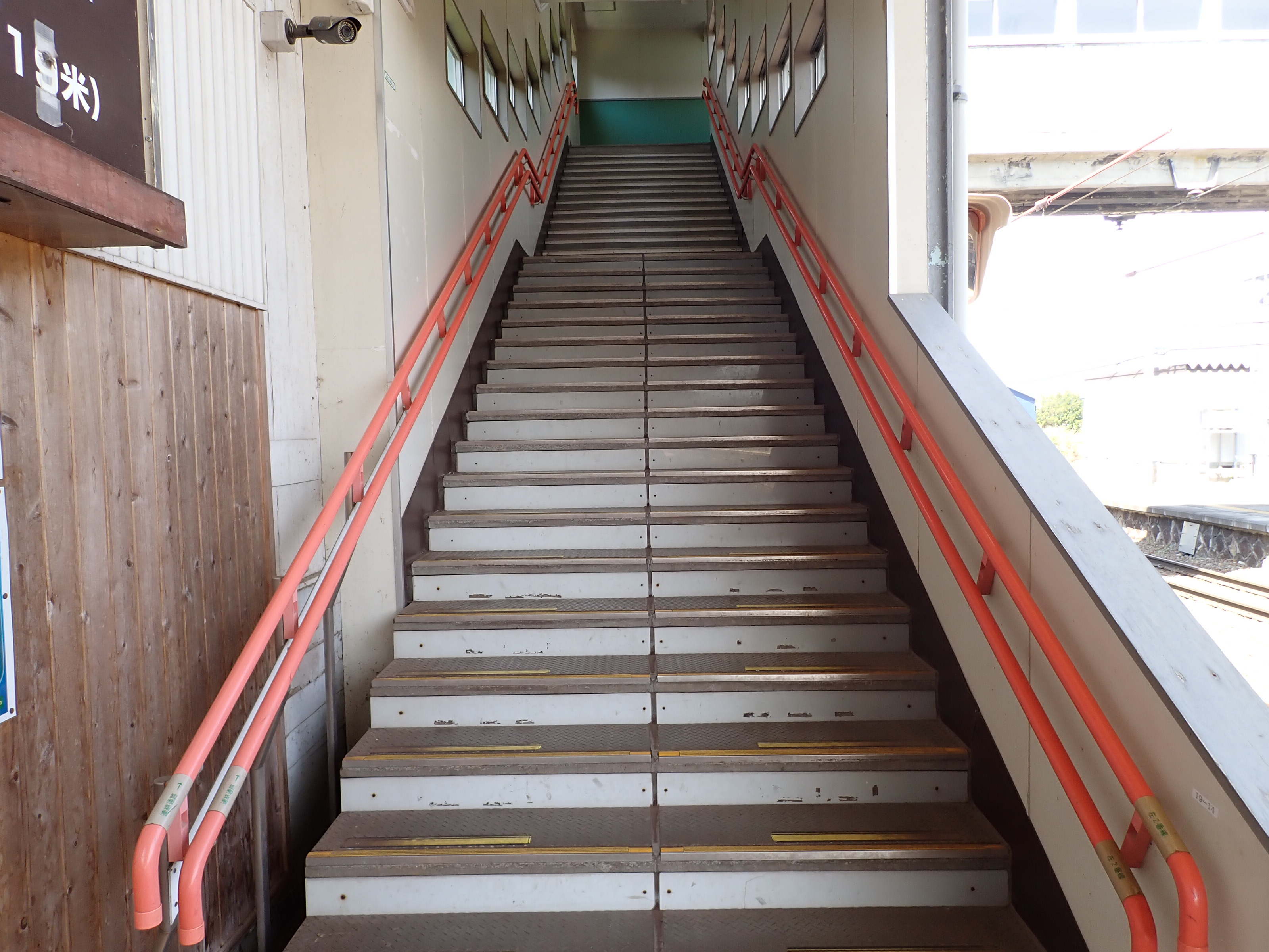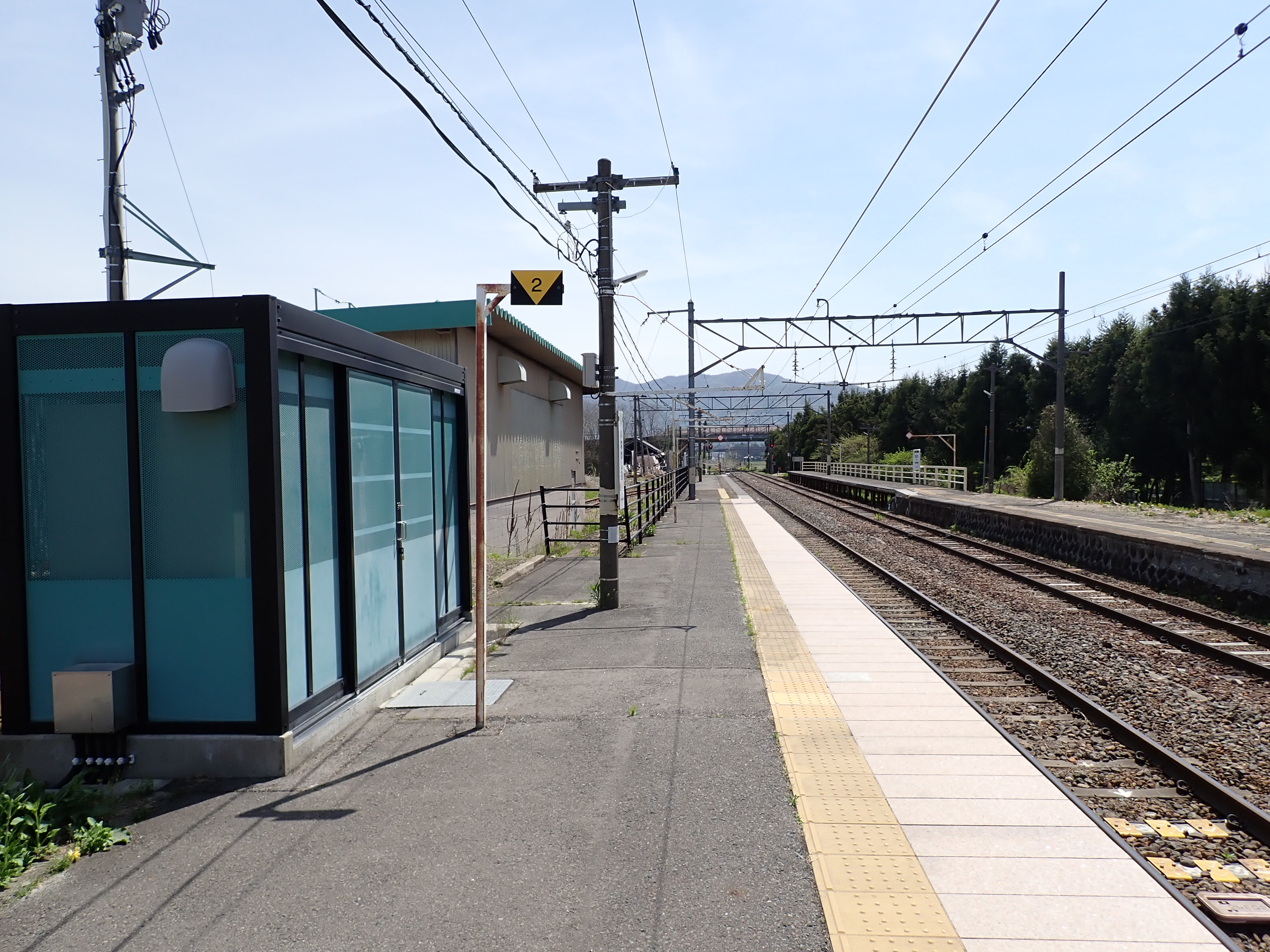 1番線階段付近から見た2番線。こちらも跨線橋に向けて上屋が高くなっています。