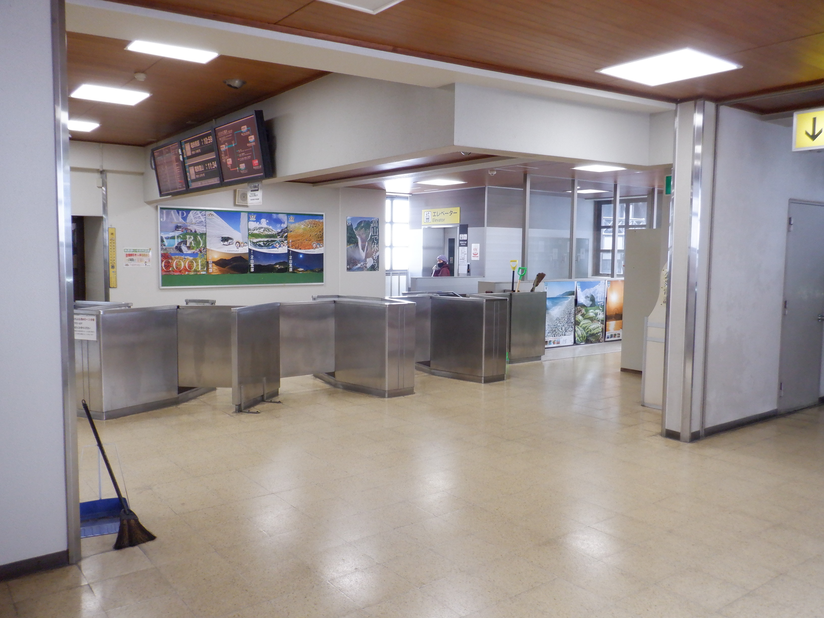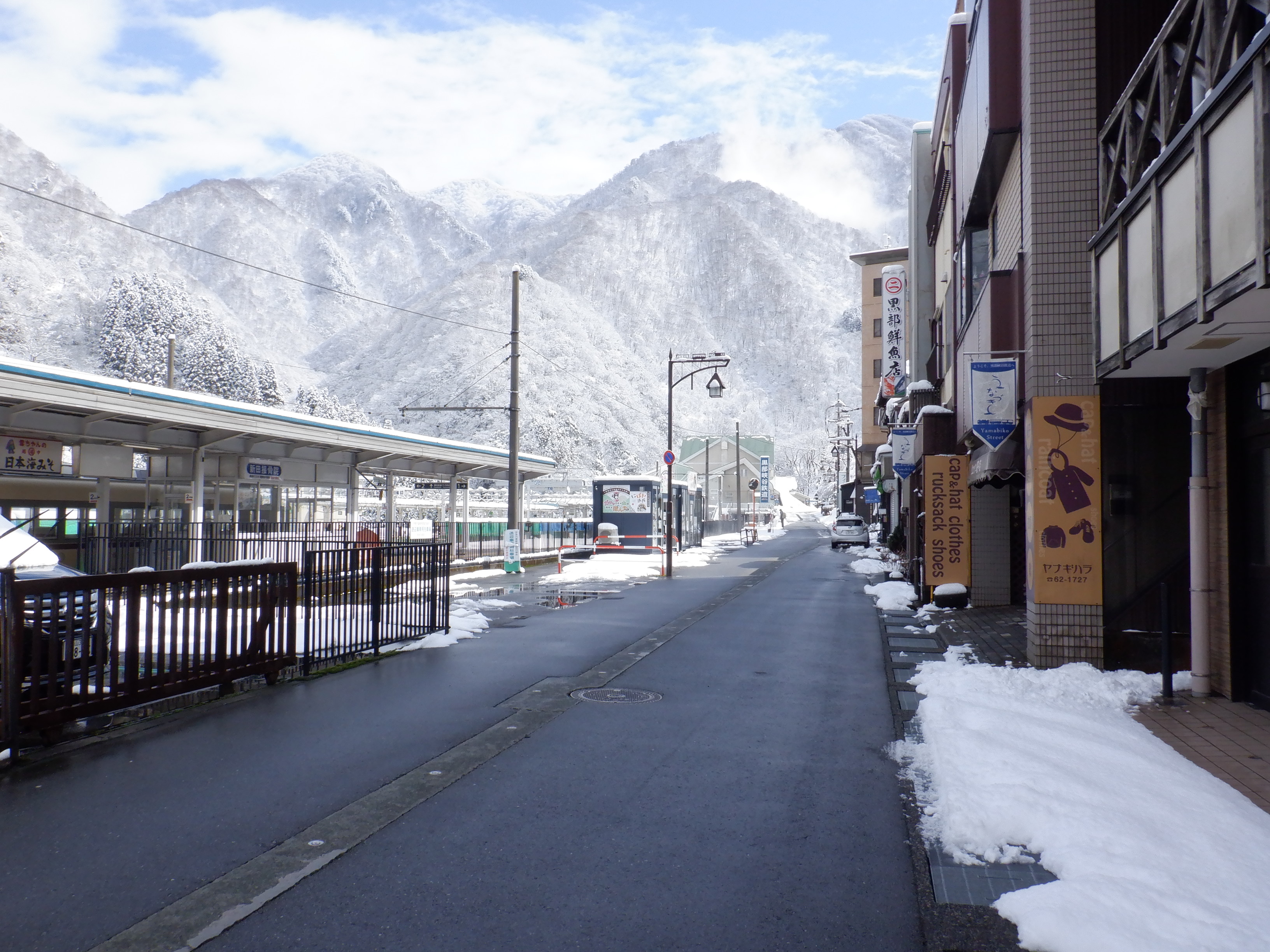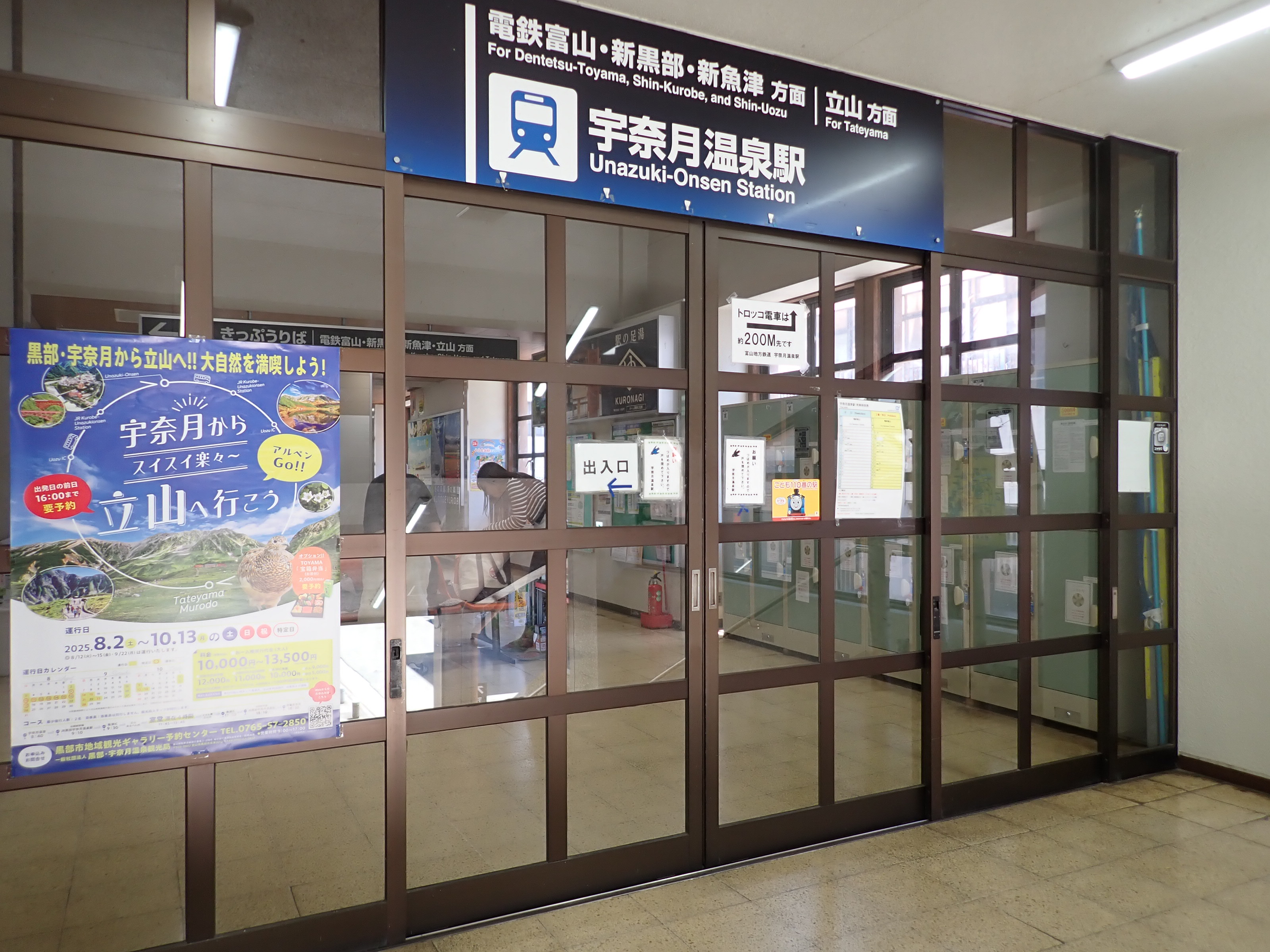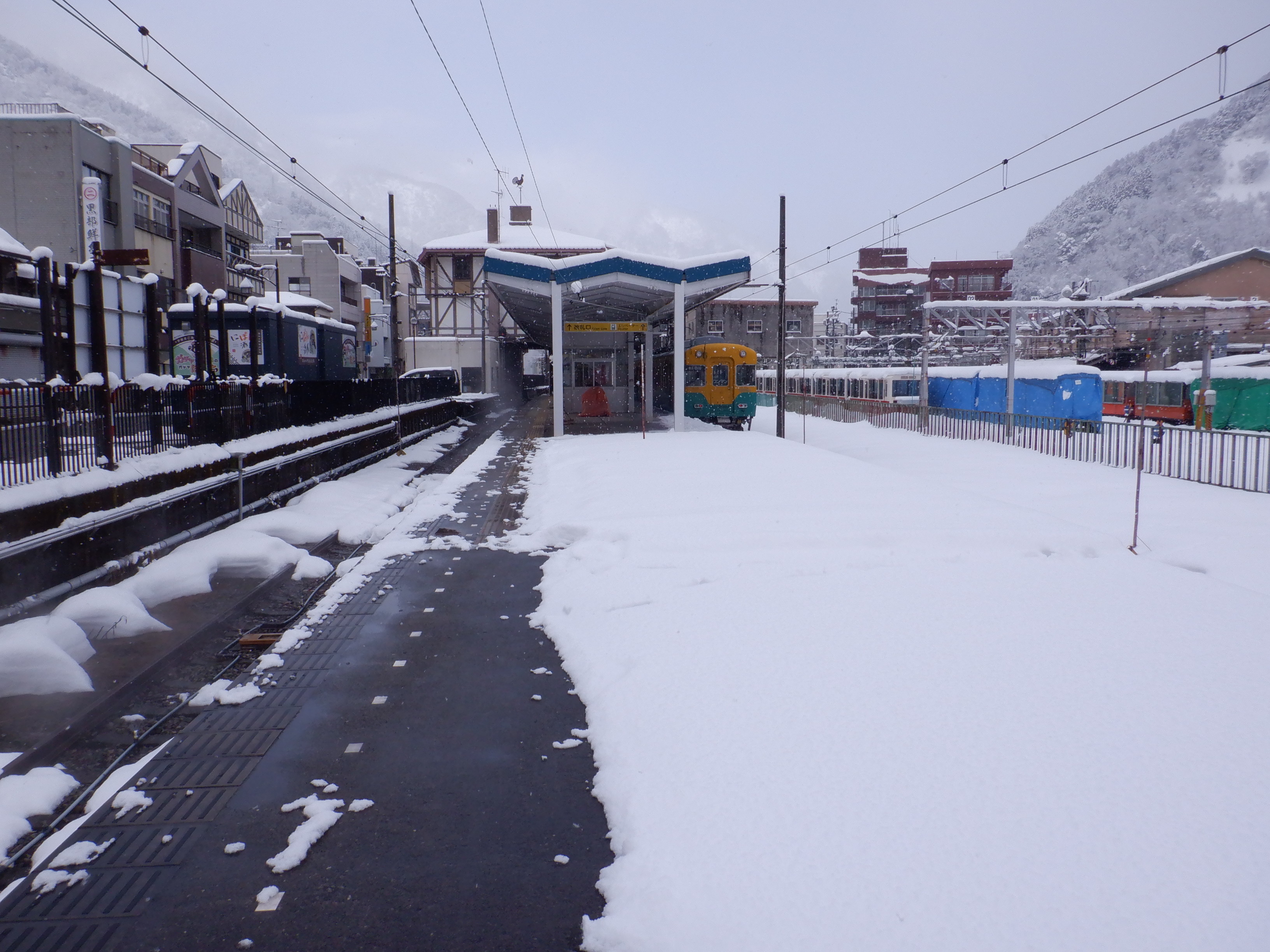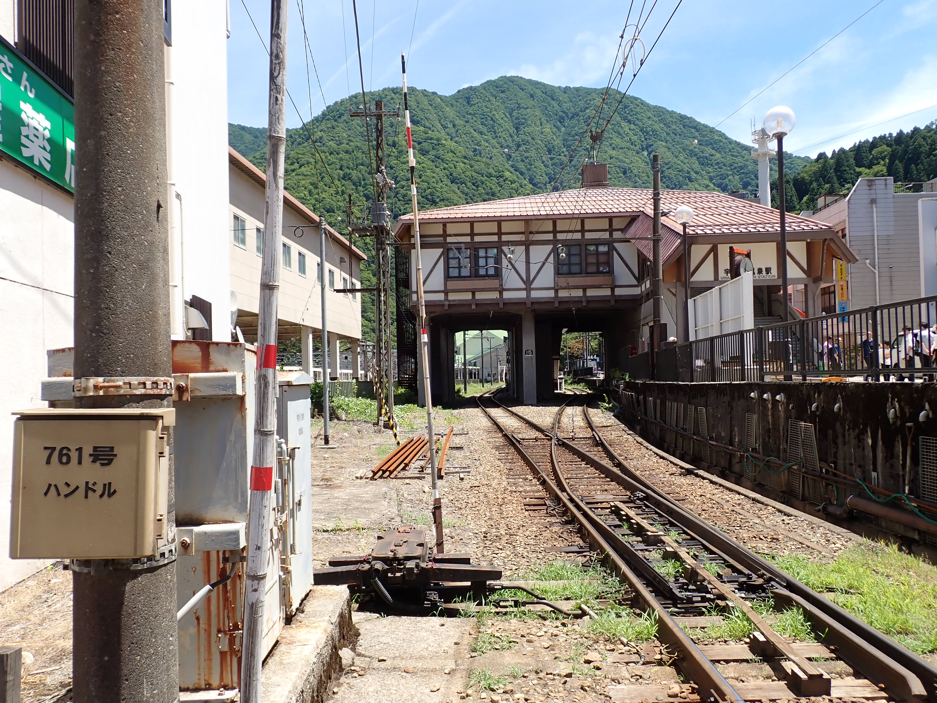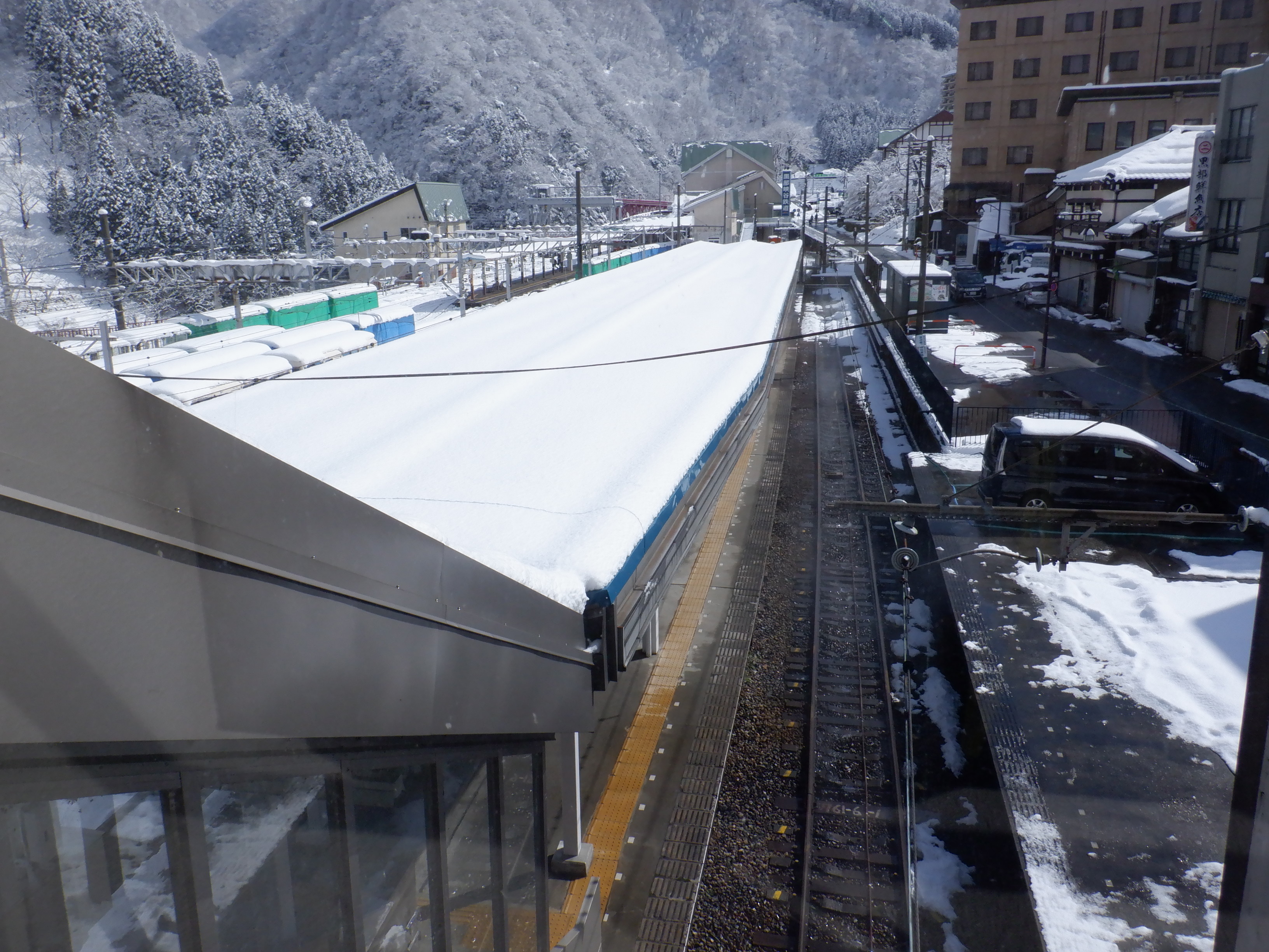 富山地方鉄道本線としては終点であり、この先黒部峡谷鉄道への乗り換えの駅です。駅は階段・エレベーターを上がって行ったところに改札等があり、橋上駅の構造です。駅前は温泉街としての趣があります。