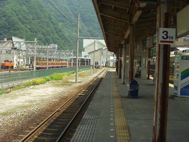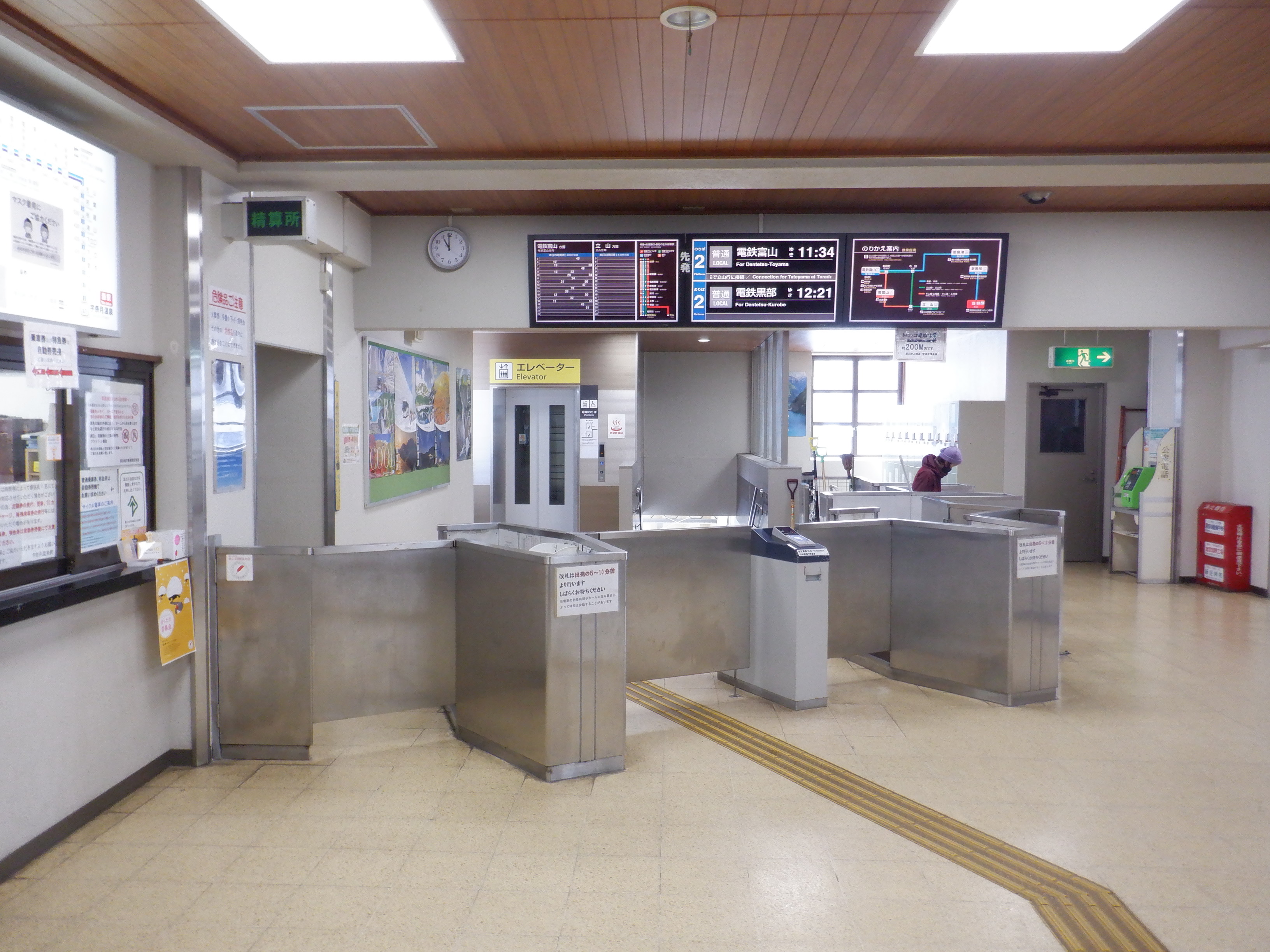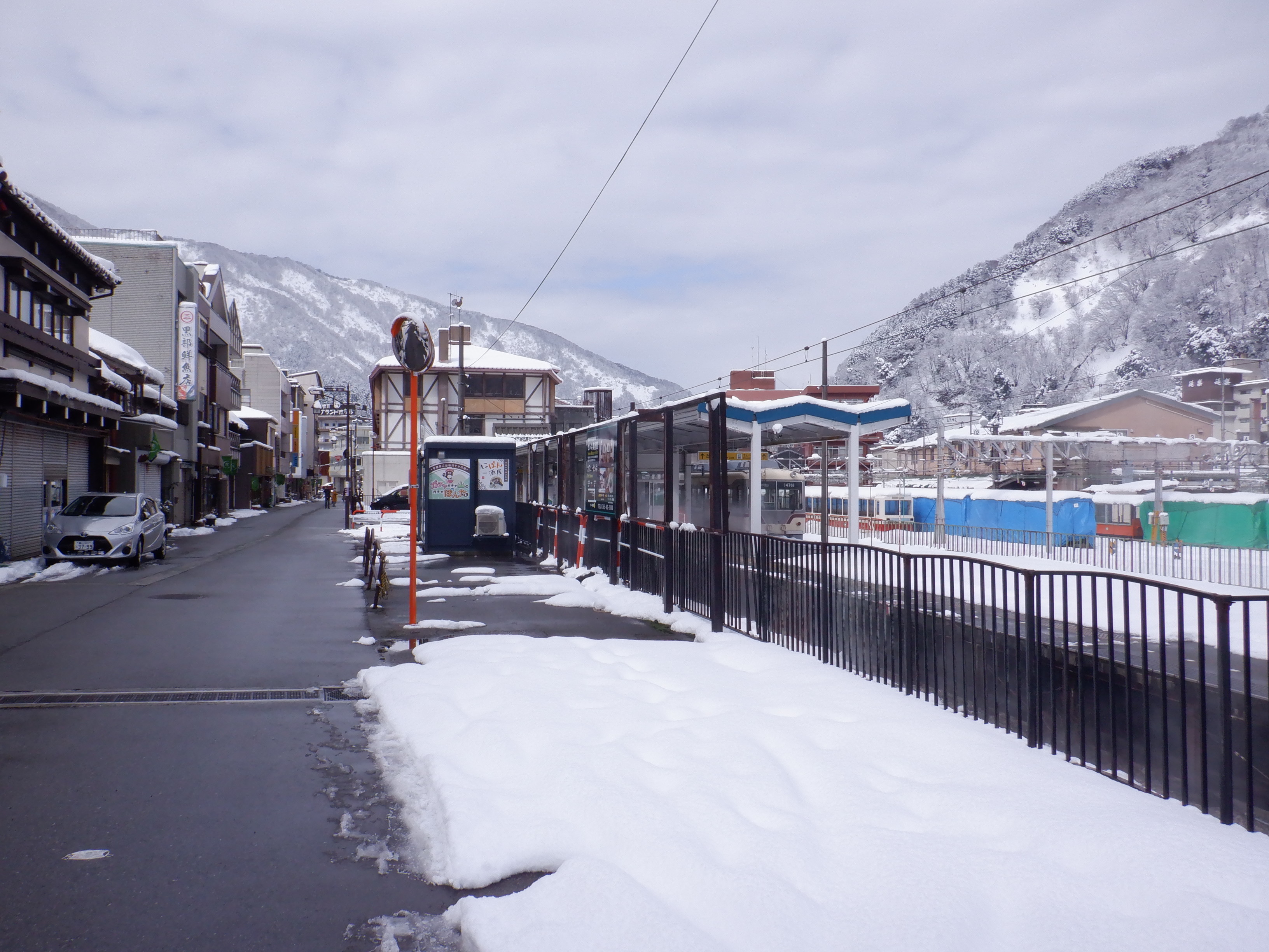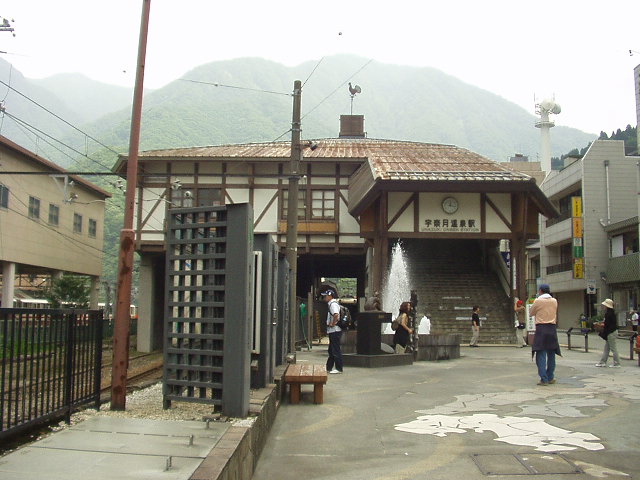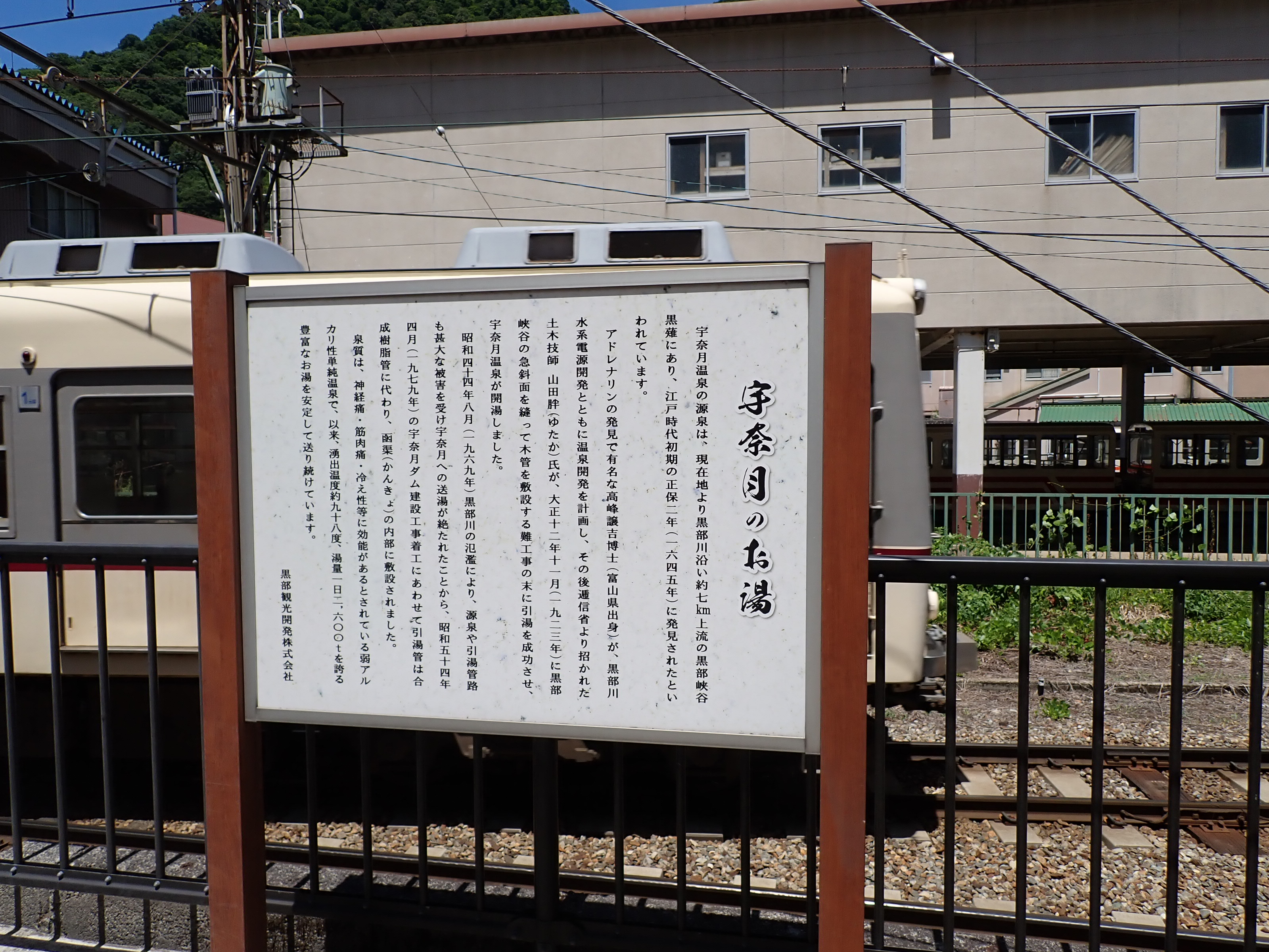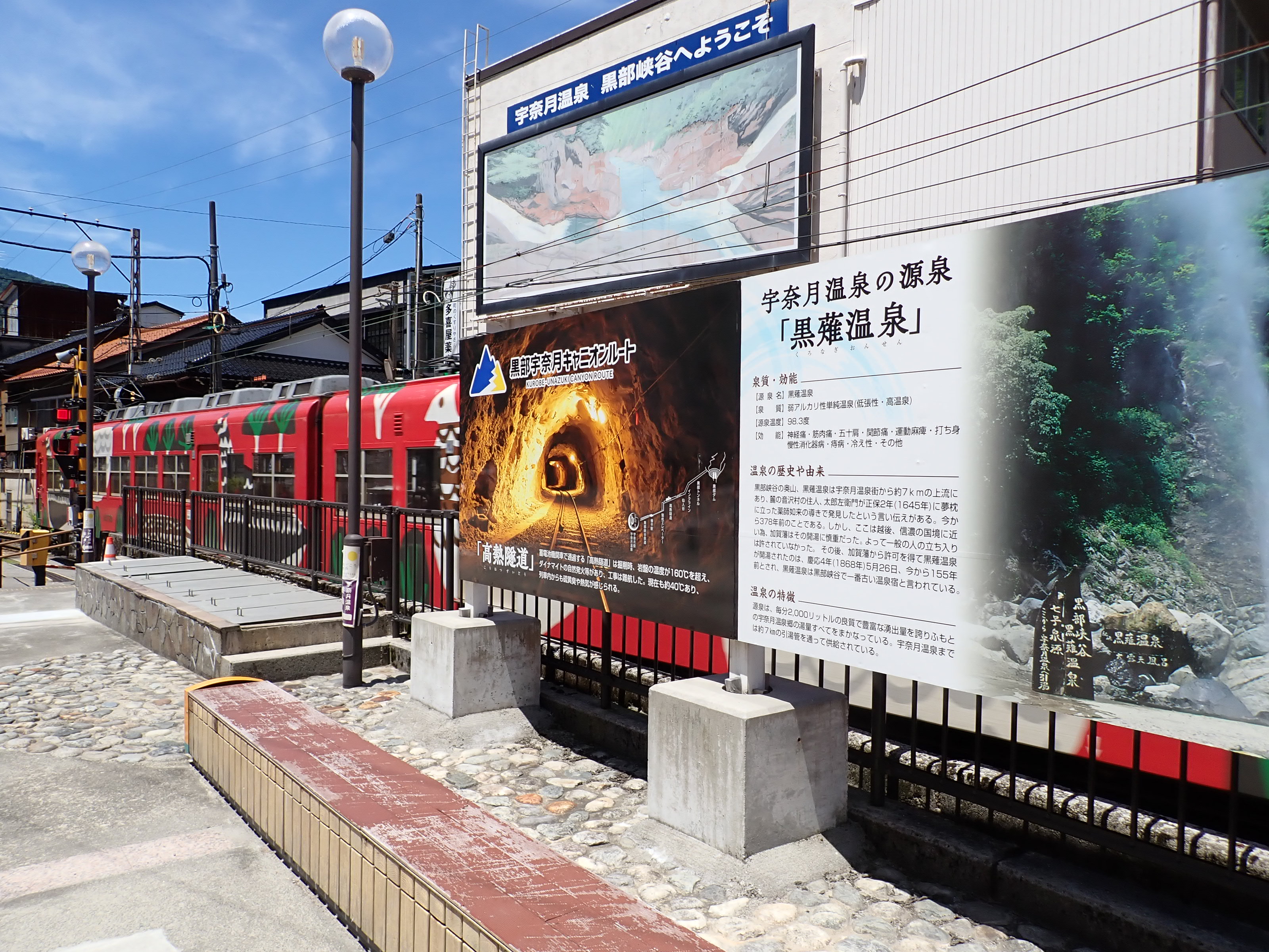 富山地方鉄道本線としては終点であり、この先黒部峡谷鉄道への乗り換えの駅です。駅は階段・エレベーターを上がって行ったところに改札等があり、橋上駅の構造です。駅前は温泉街としての趣があります。
