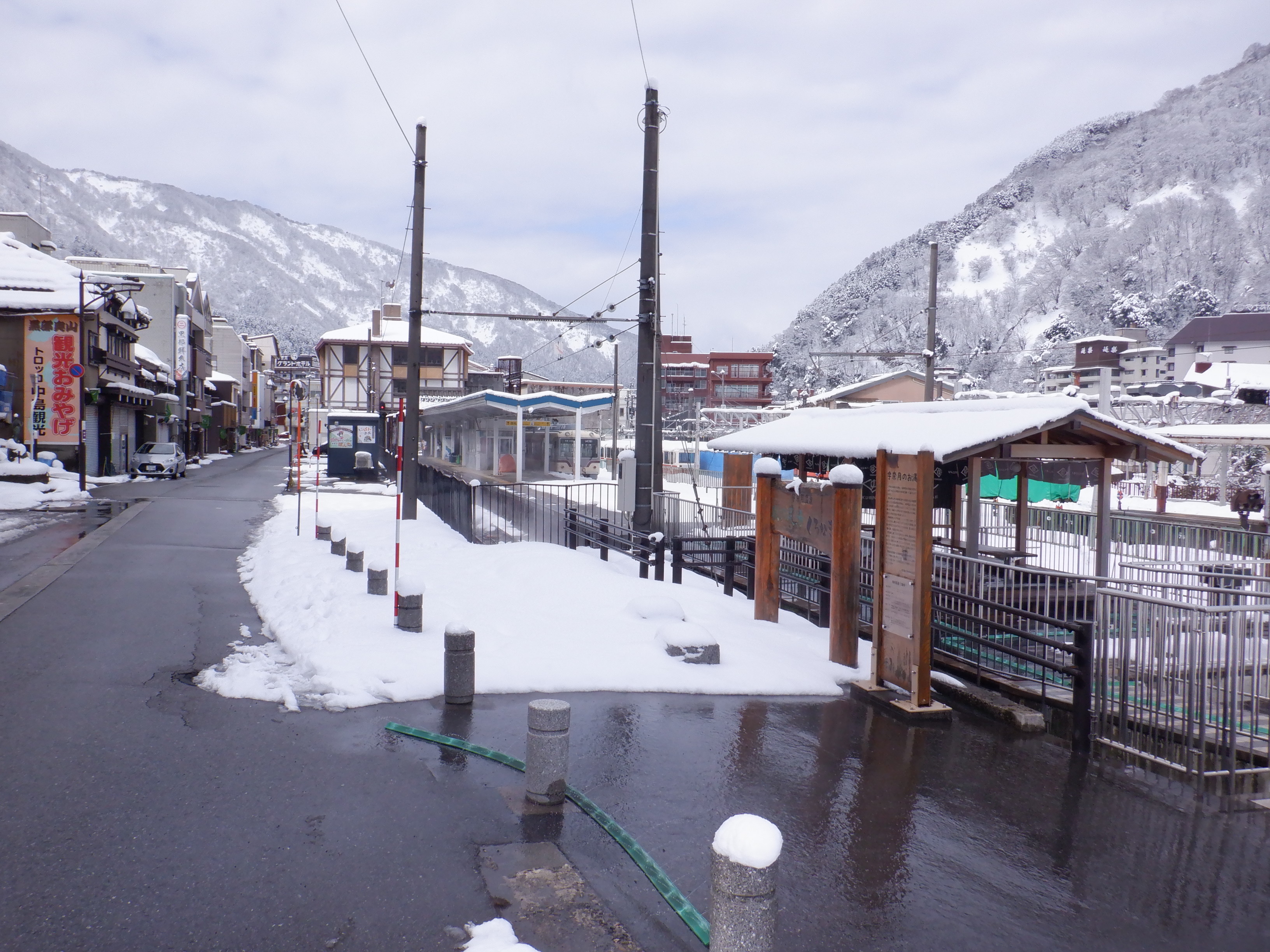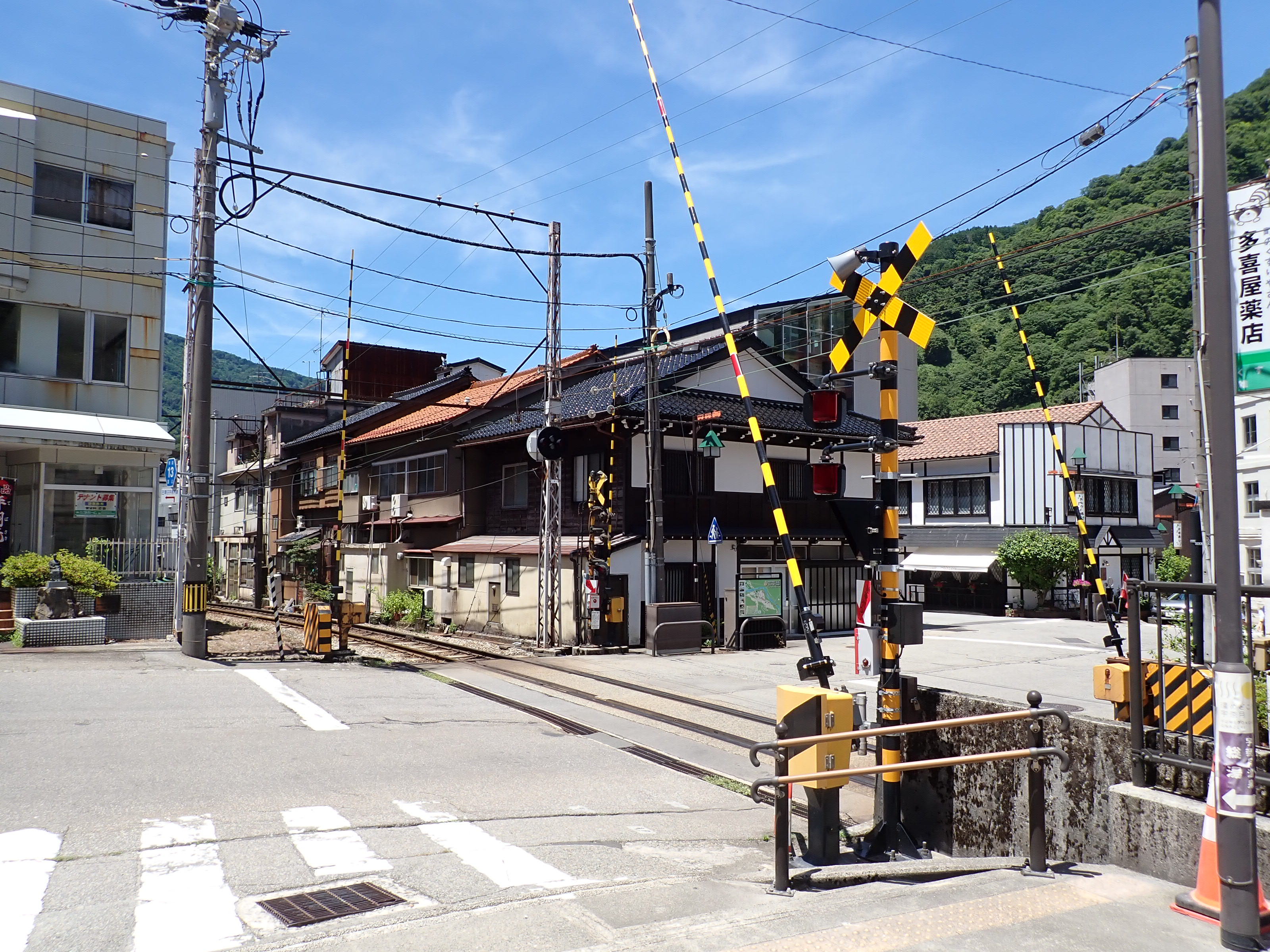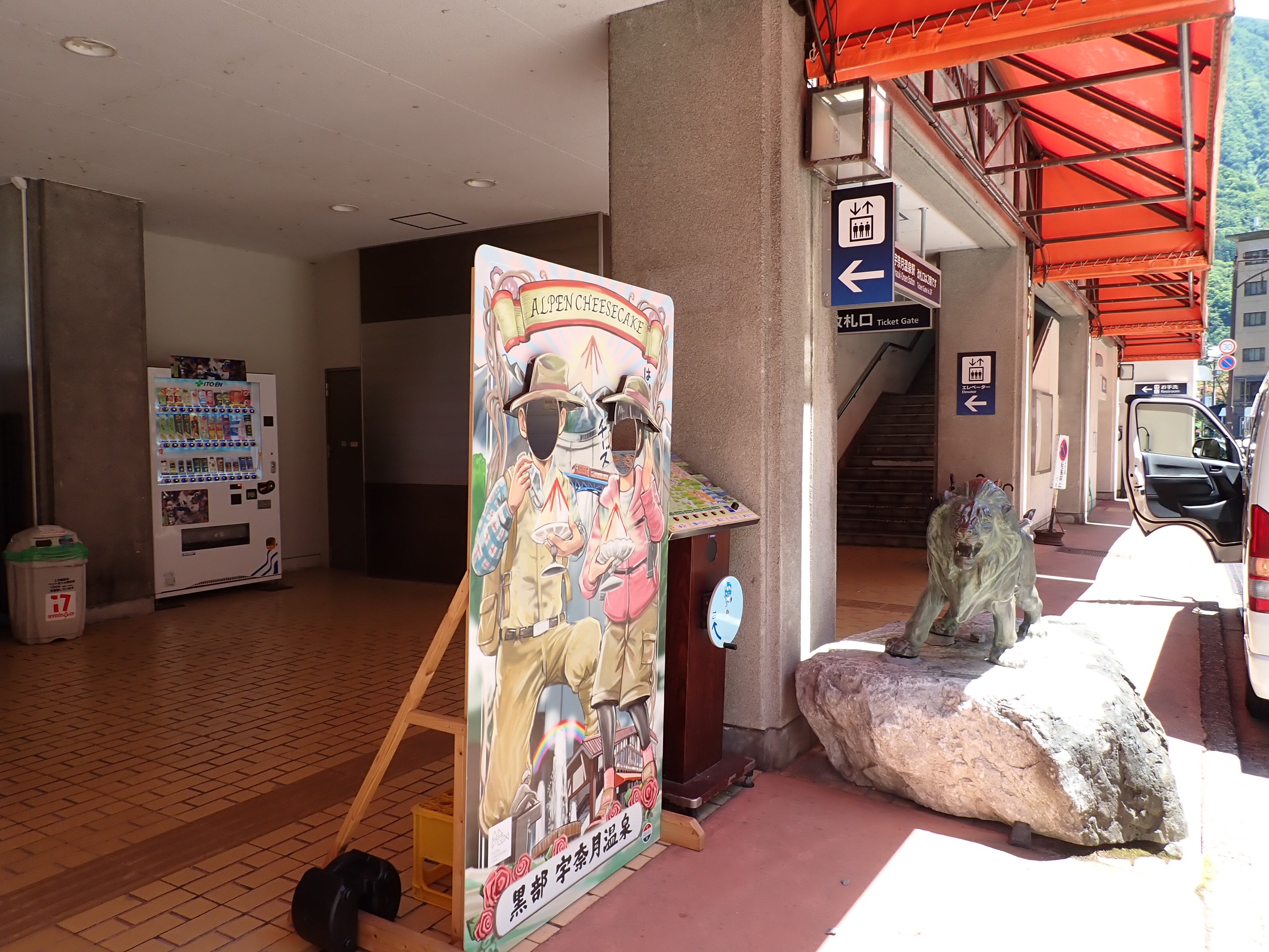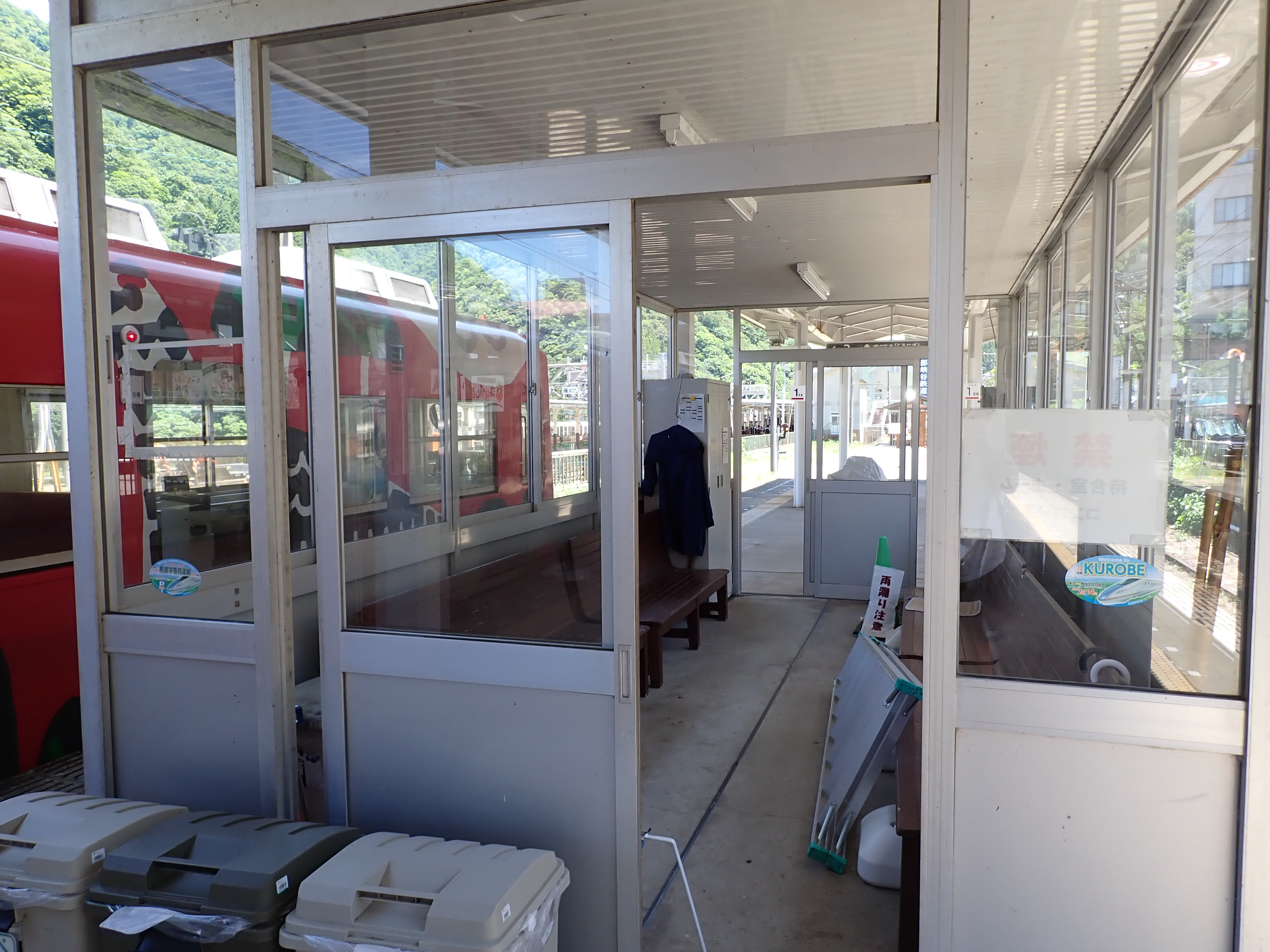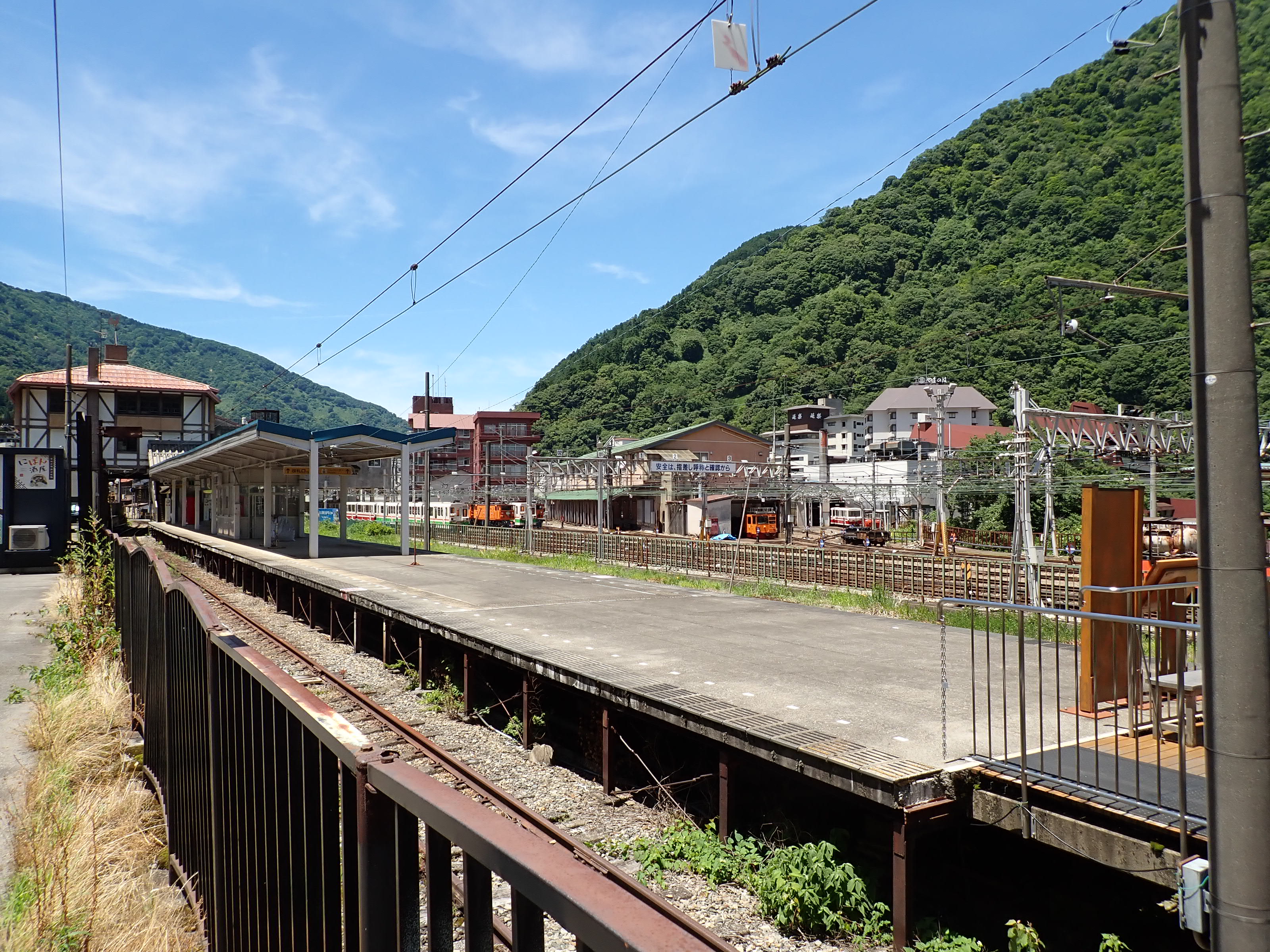 富山地方鉄道本線としては終点であり、この先黒部峡谷鉄道への乗り換えの駅です。駅は階段・エレベーターを上がって行ったところに改札等があり、橋上駅の構造です。駅前は温泉街としての趣があります。