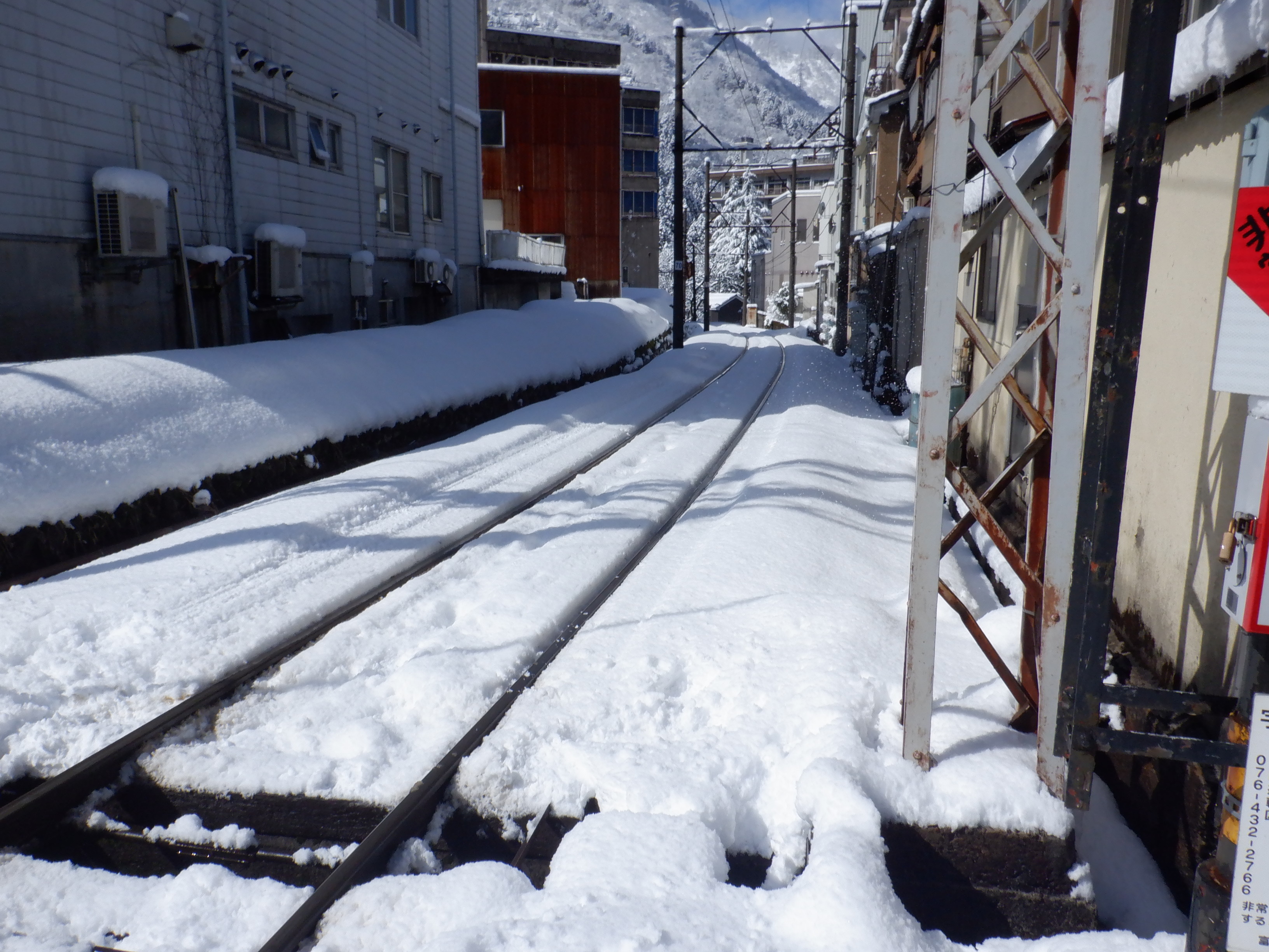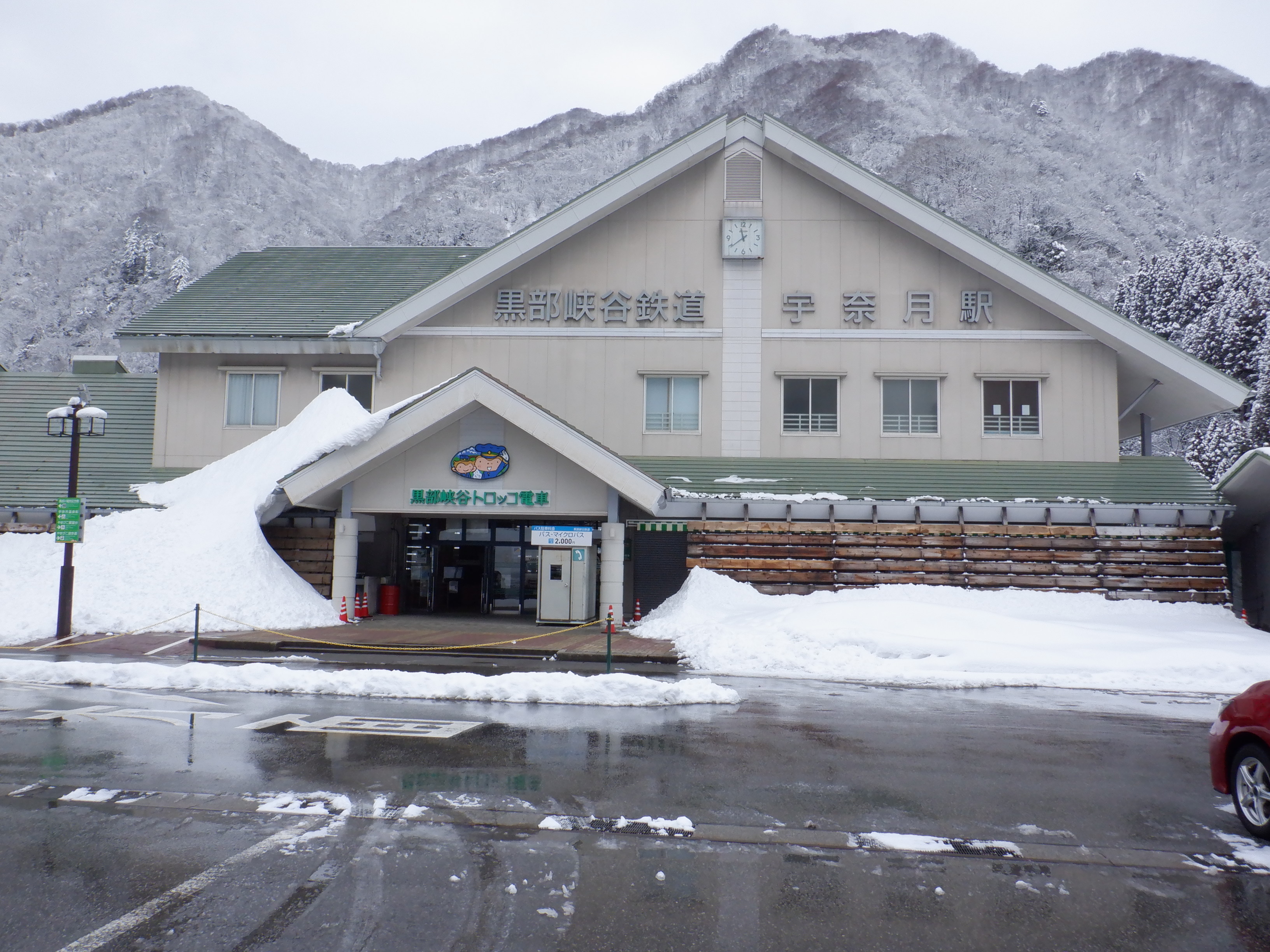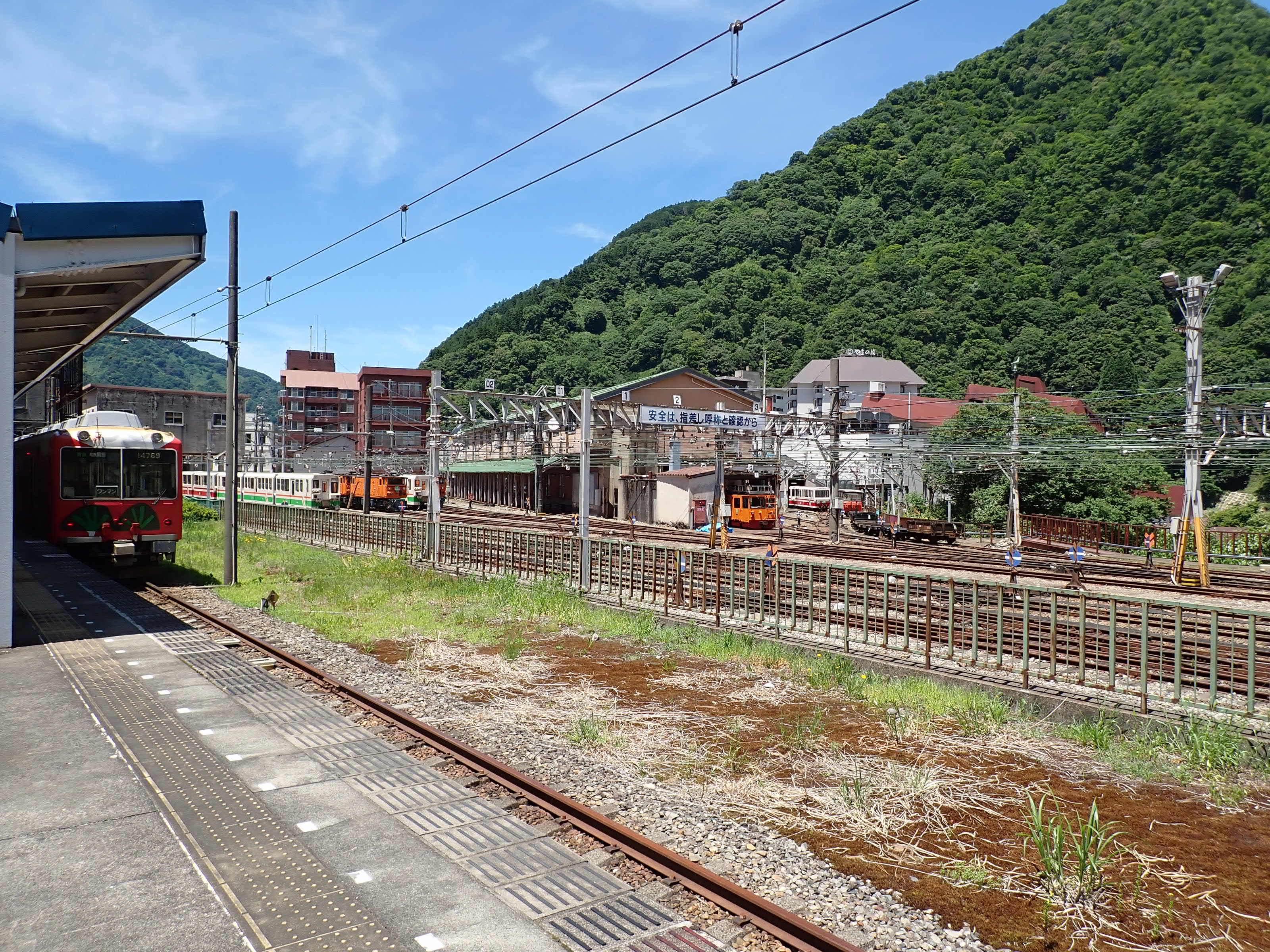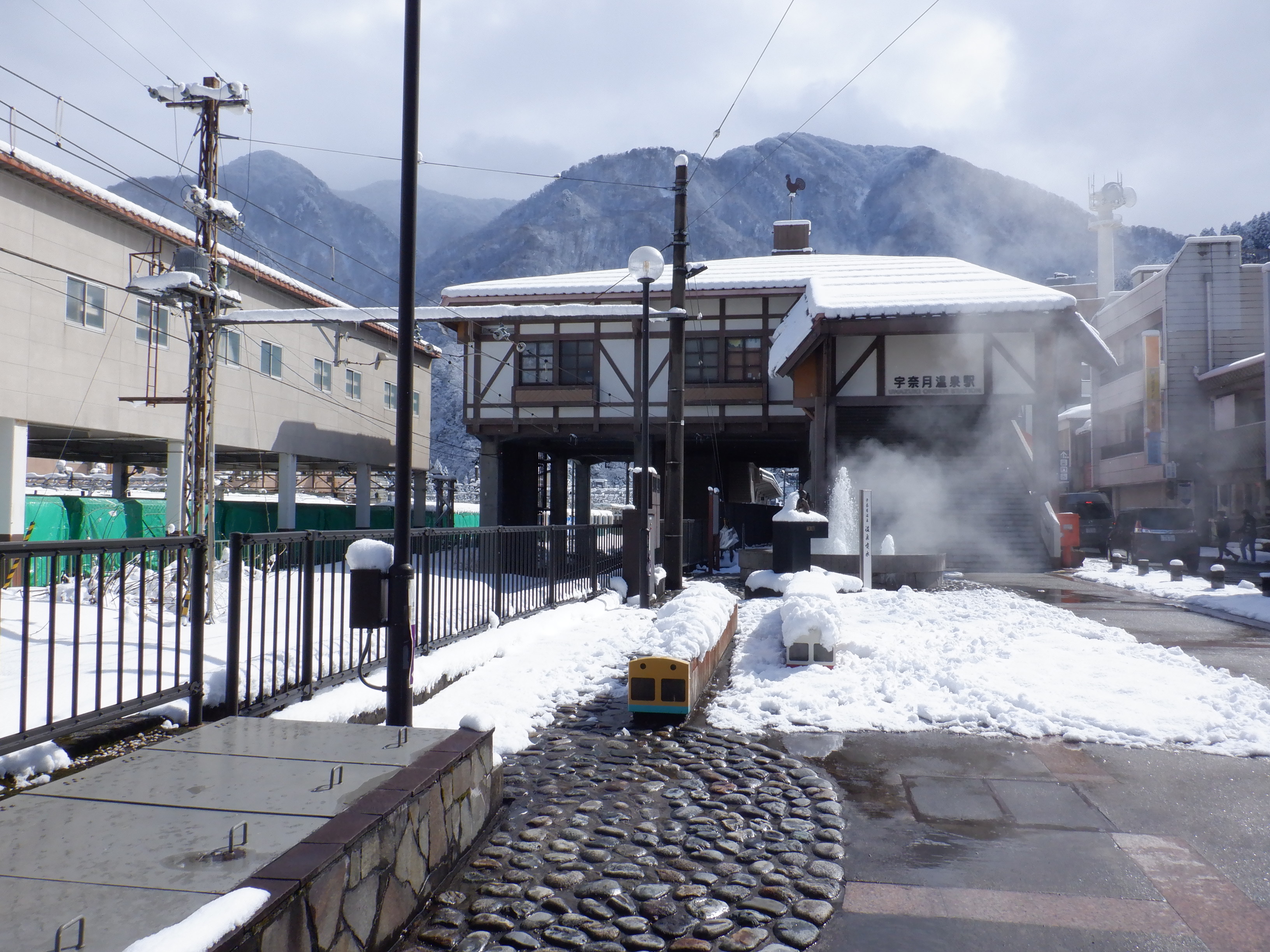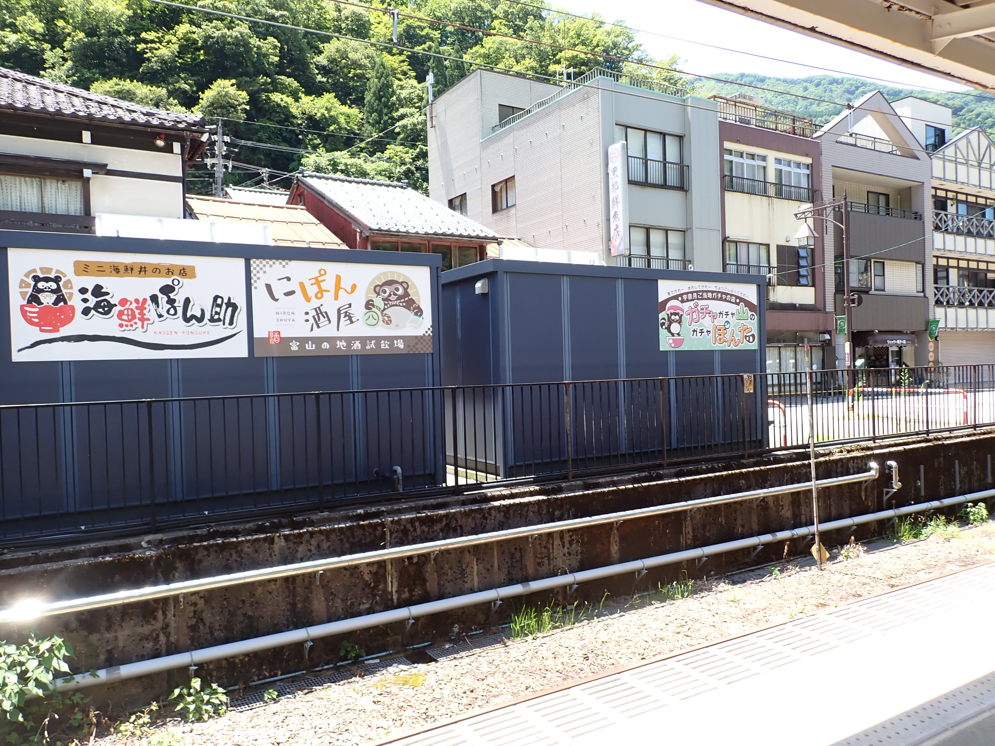 富山地方鉄道本線としては終点であり、この先黒部峡谷鉄道への乗り換えの駅です。駅は階段・エレベーターを上がって行ったところに改札等があり、橋上駅の構造です。駅前は温泉街としての趣があります。
