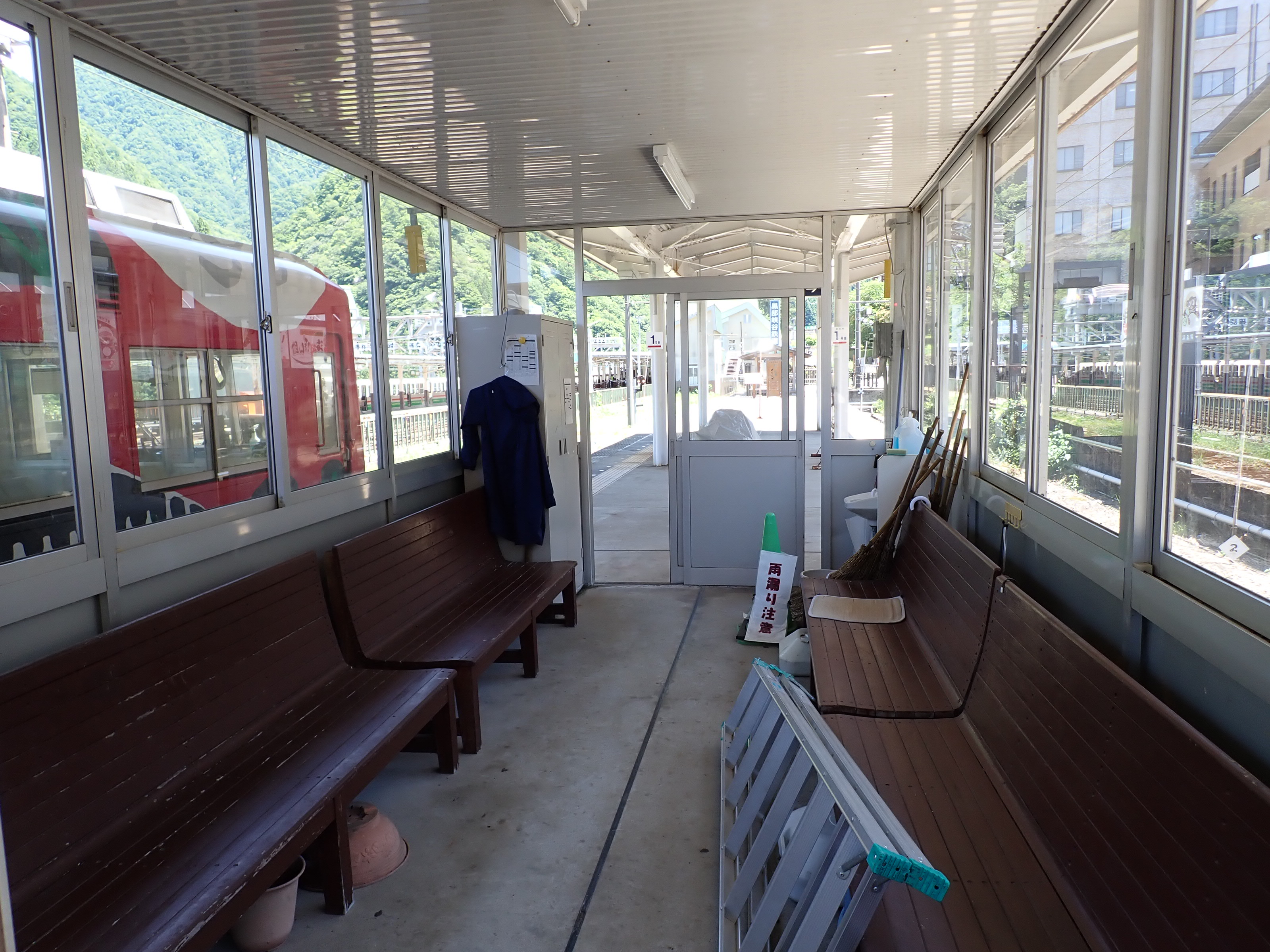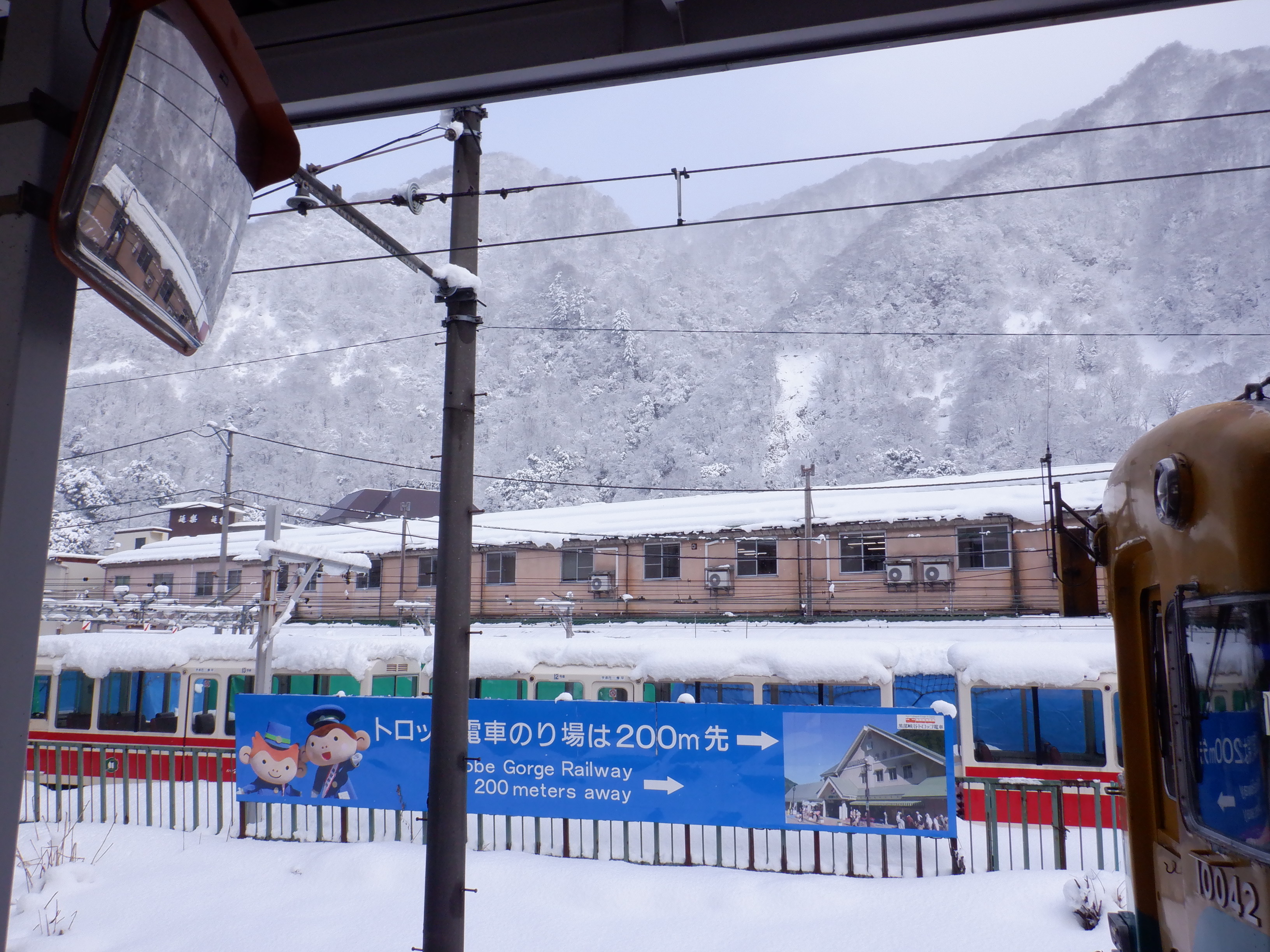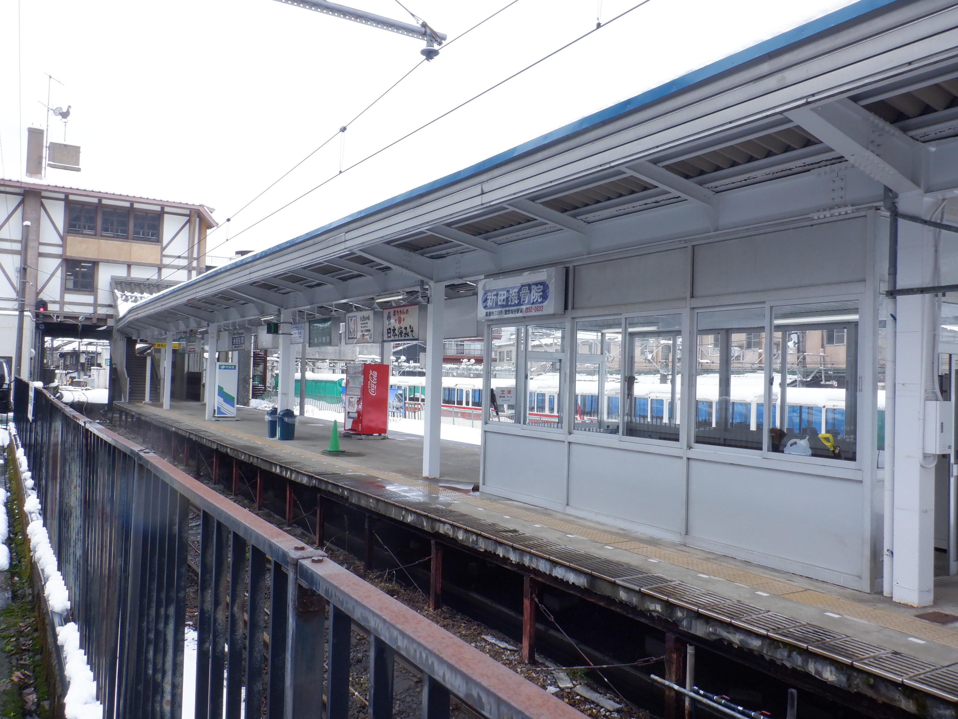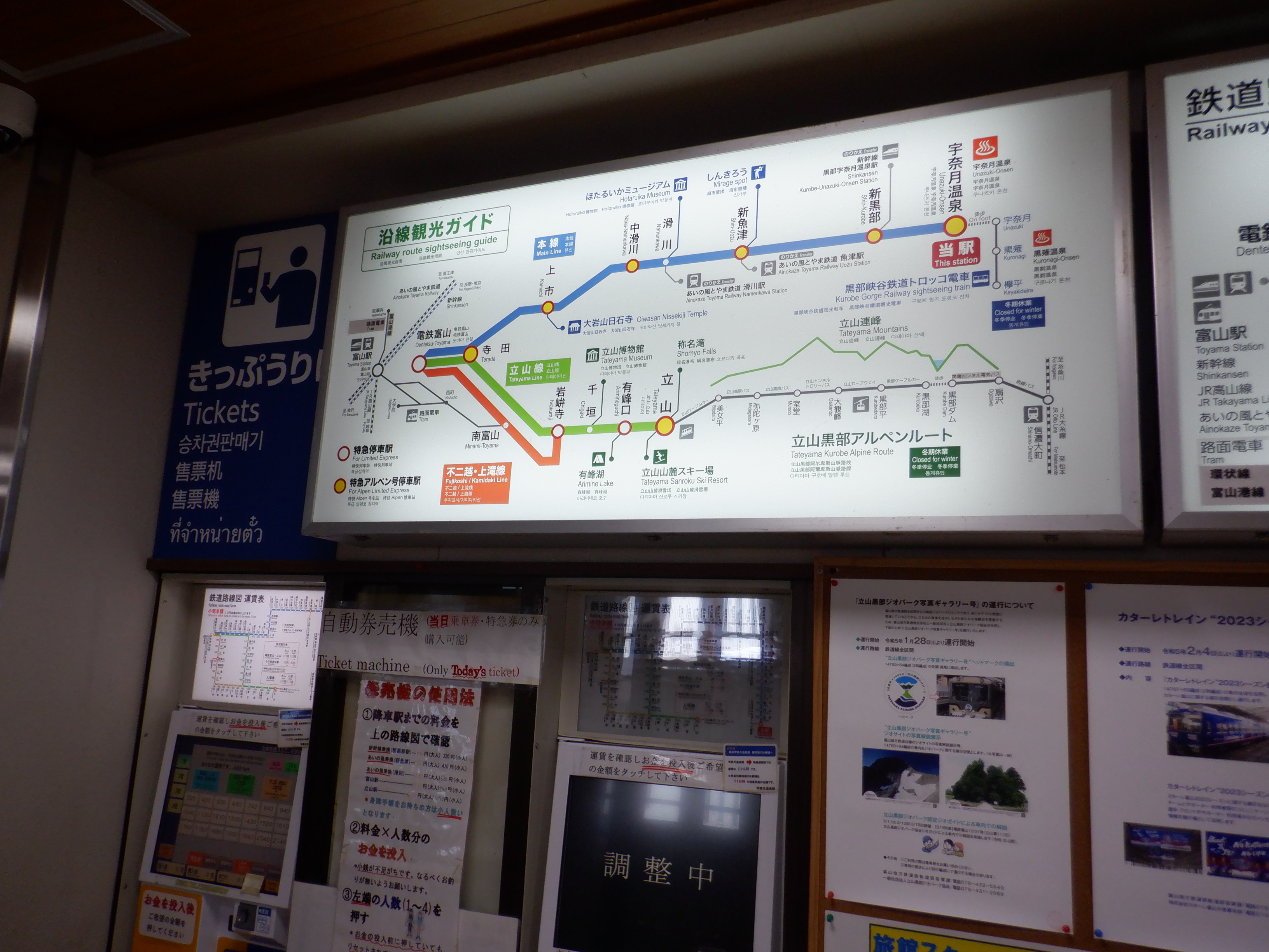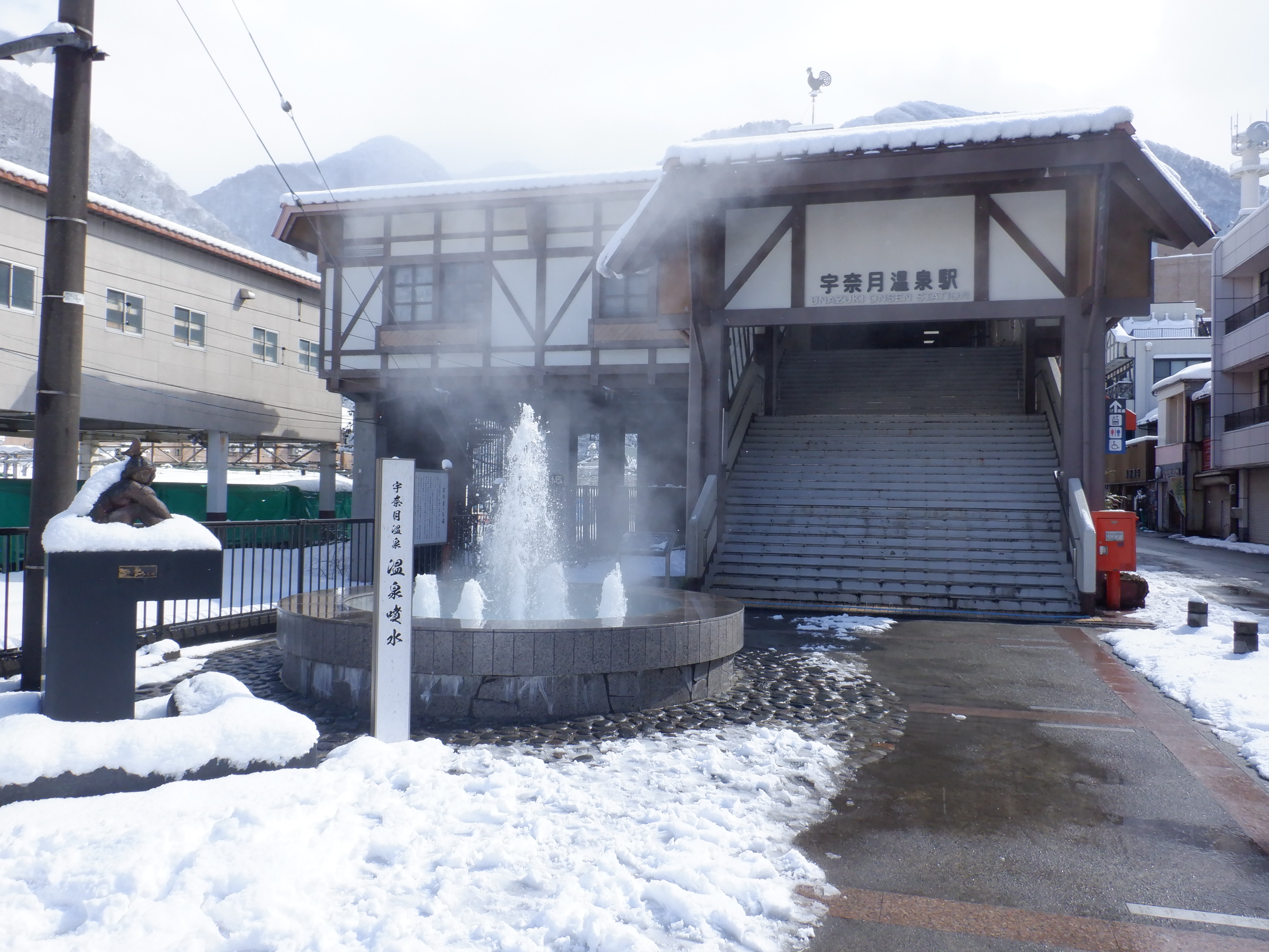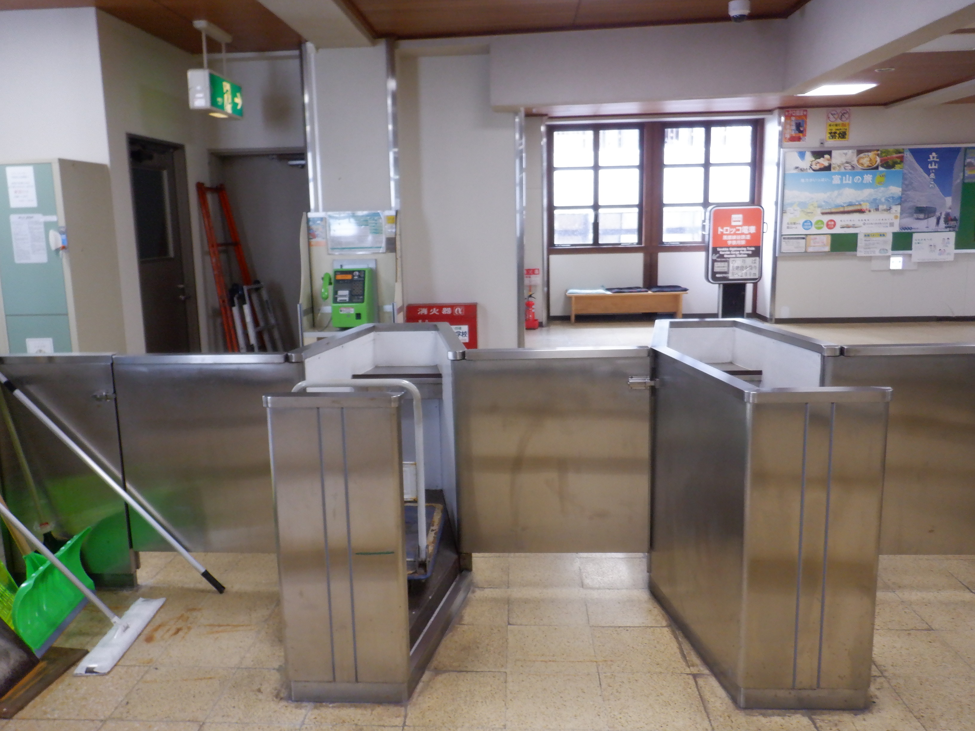 富山地方鉄道本線としては終点であり、この先黒部峡谷鉄道への乗り換えの駅です。駅は階段・エレベーターを上がって行ったところに改札等があり、橋上駅の構造です。駅前は温泉街としての趣があります。