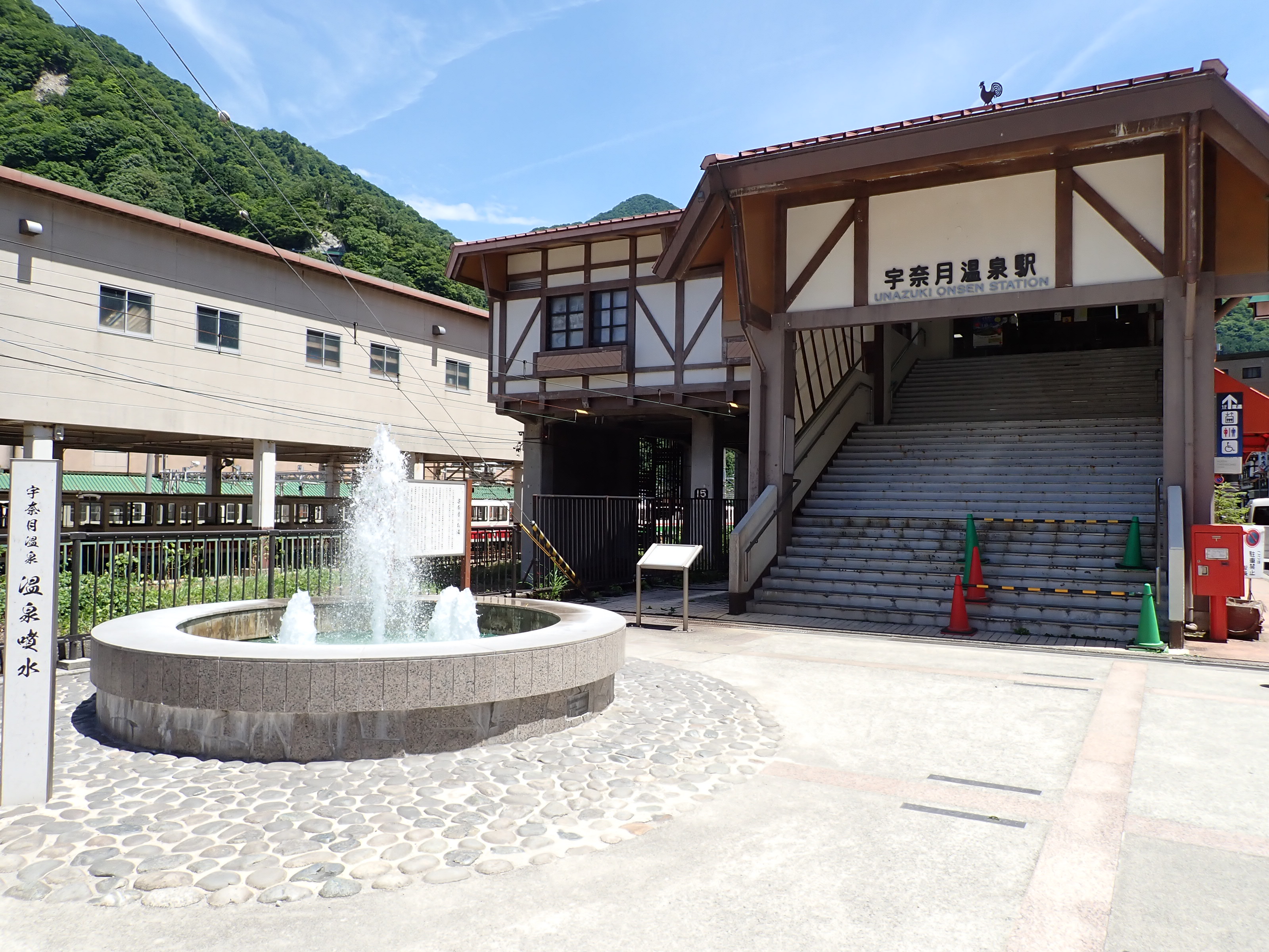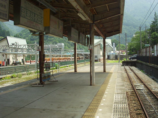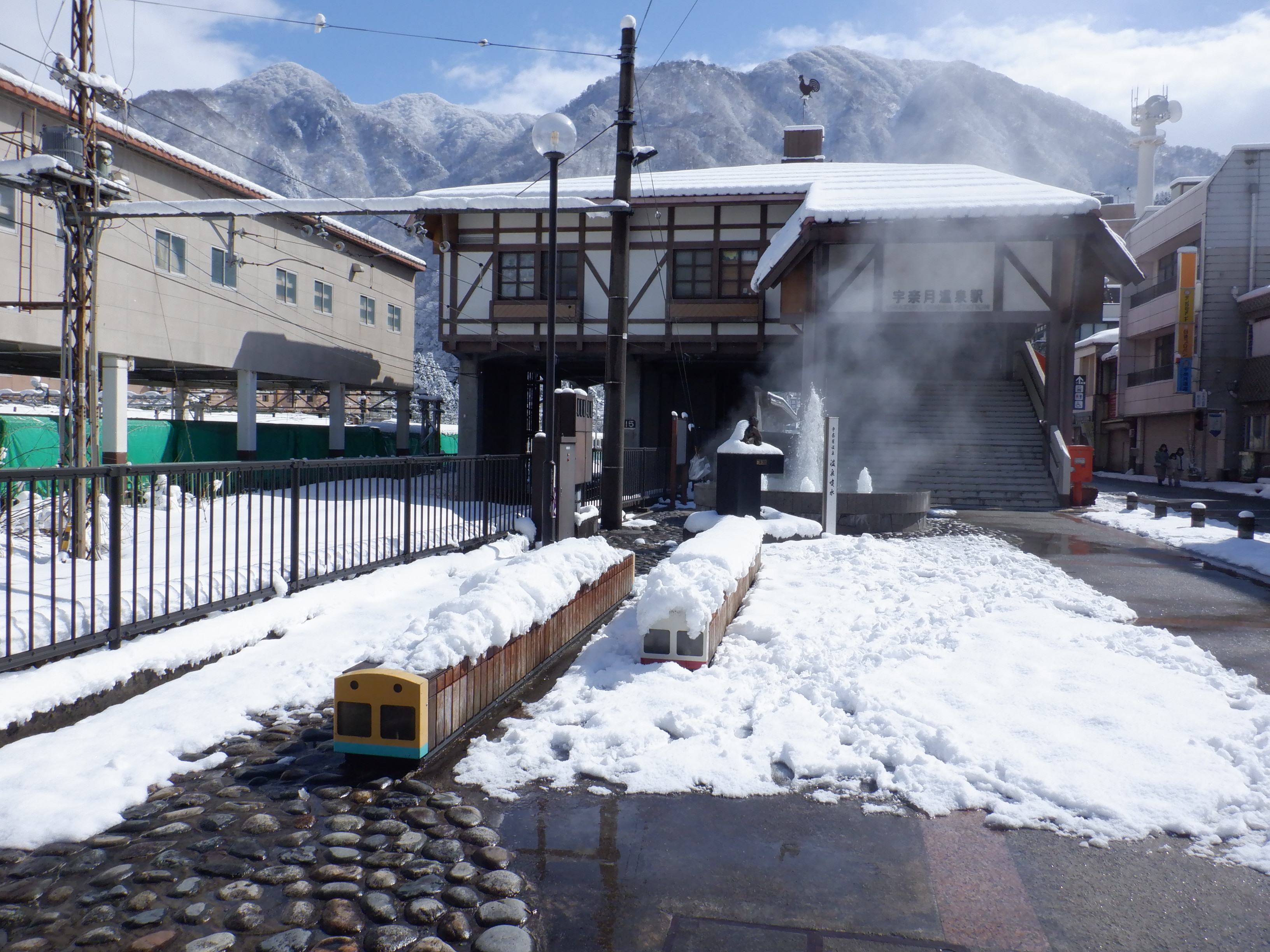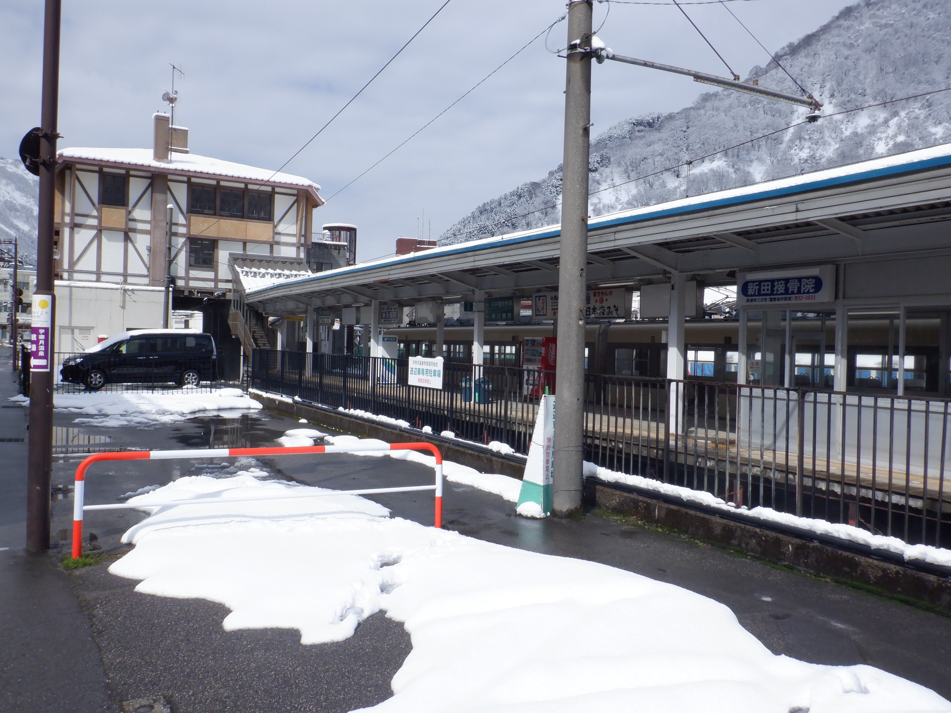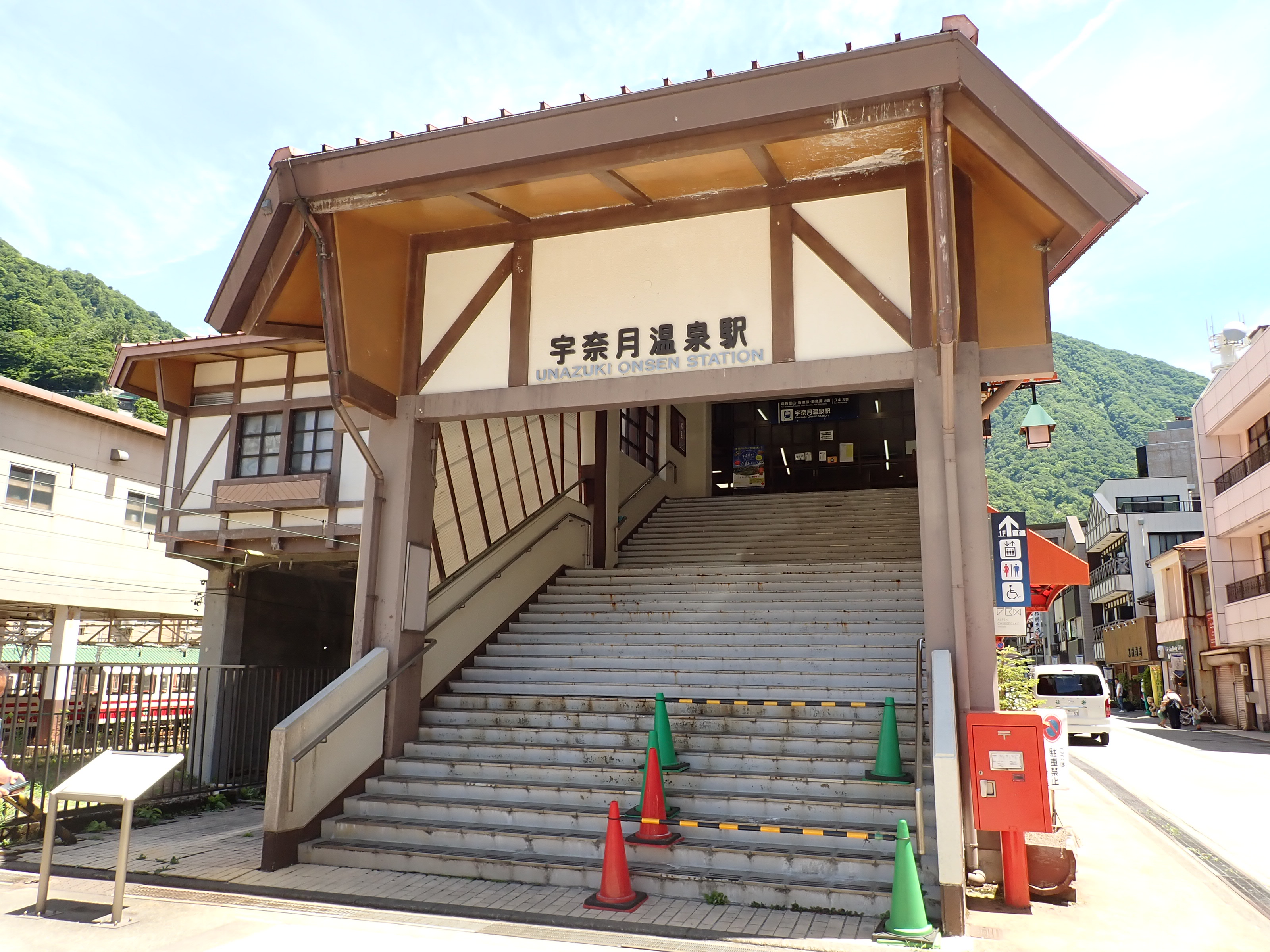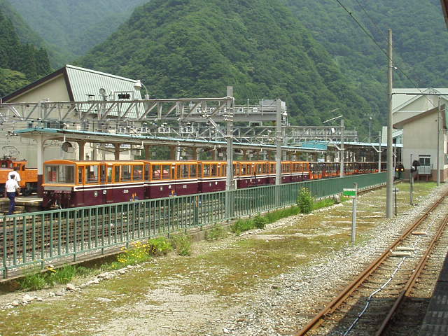 富山地方鉄道本線としては終点であり、この先黒部峡谷鉄道への乗り換えの駅です。駅は階段・エレベーターを上がって行ったところに改札等があり、橋上駅の構造です。駅前は温泉街としての趣があります。