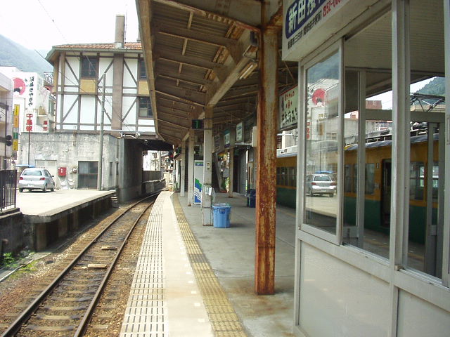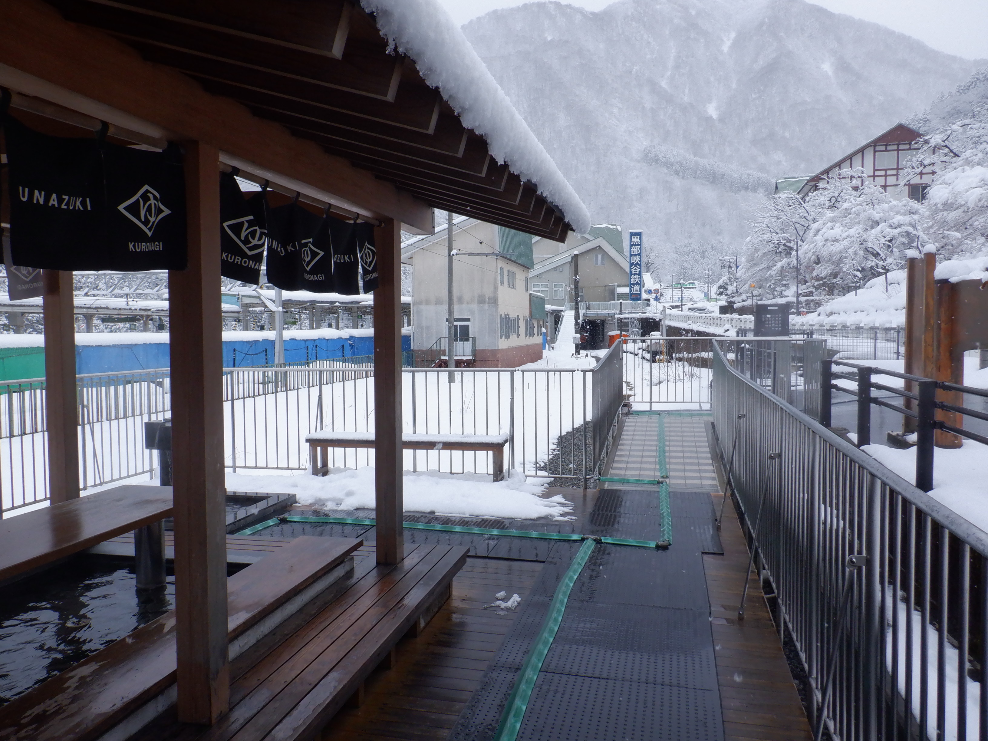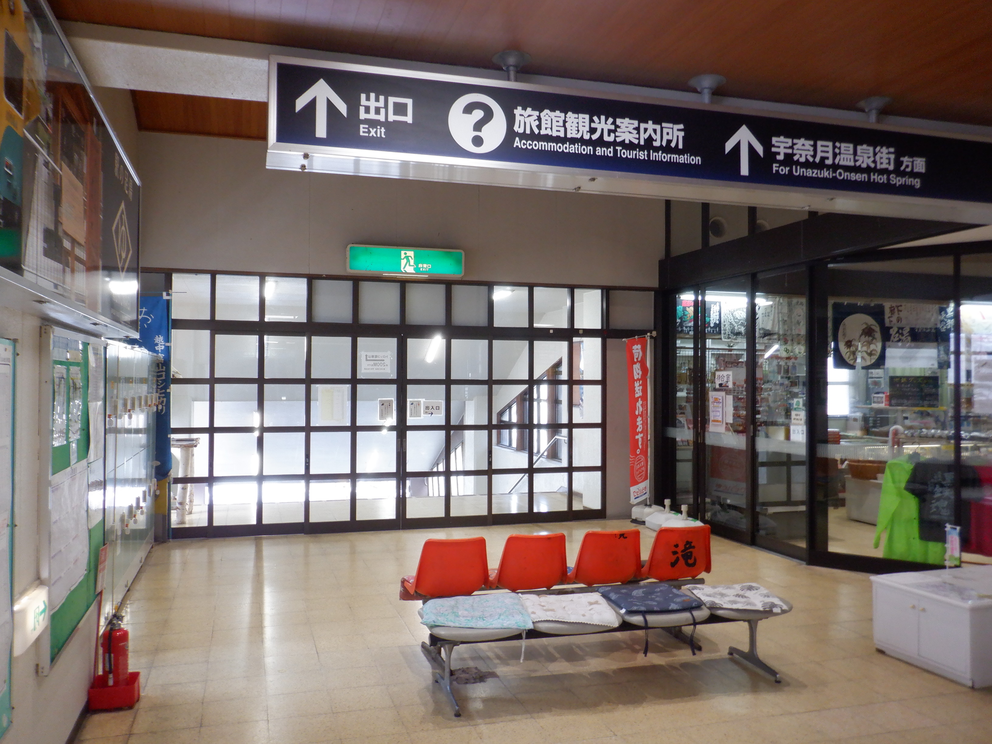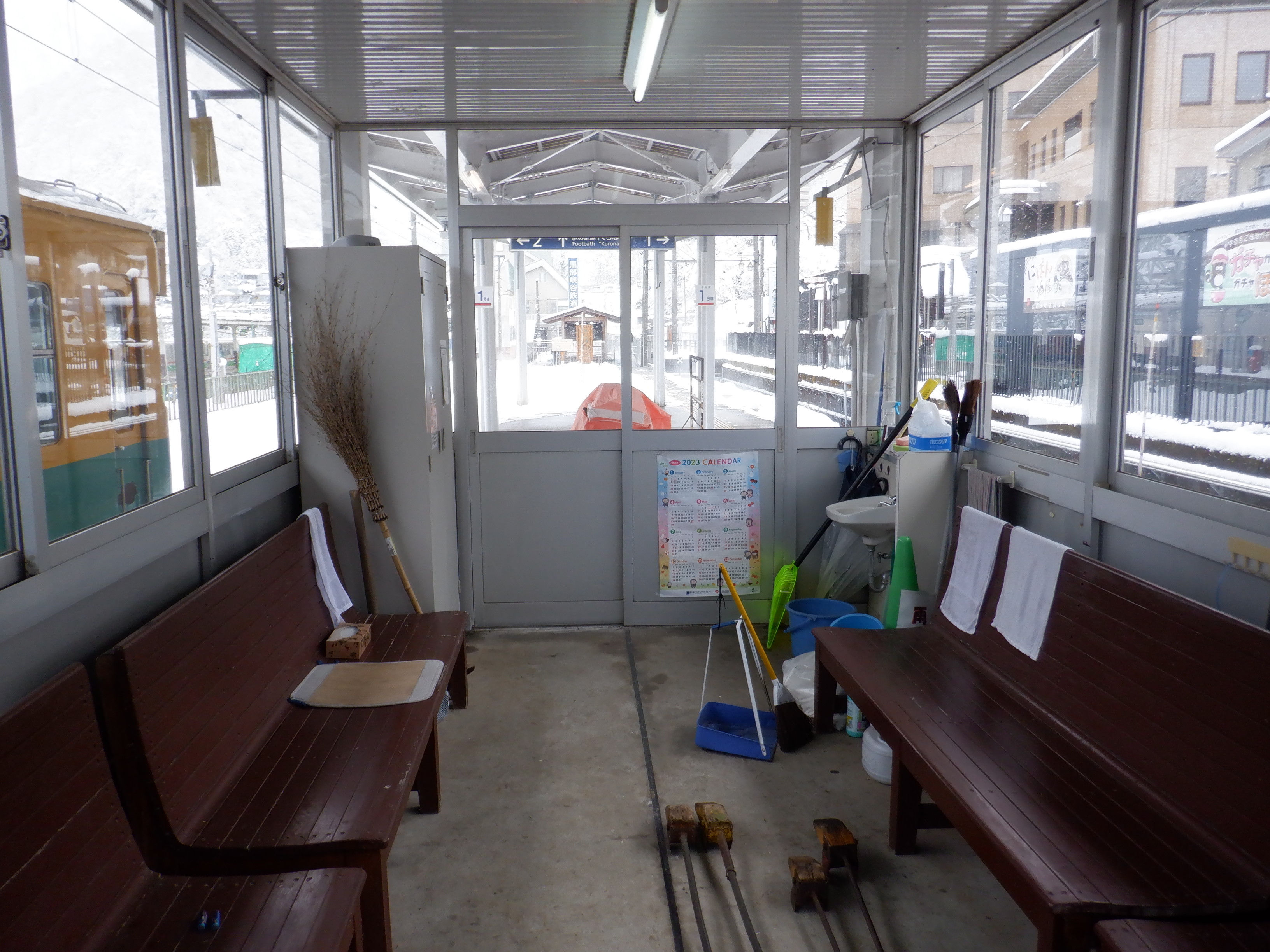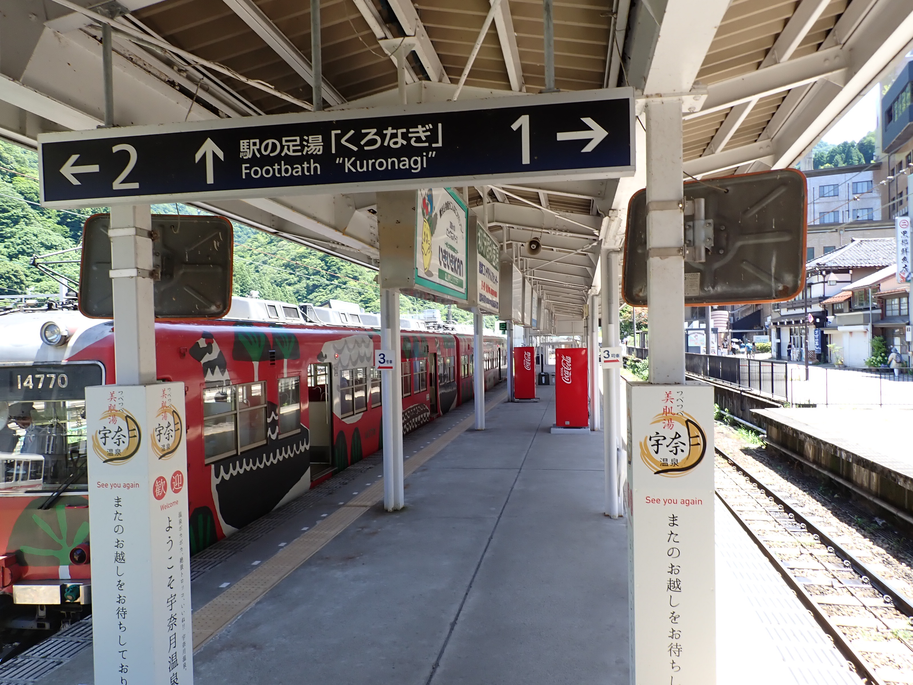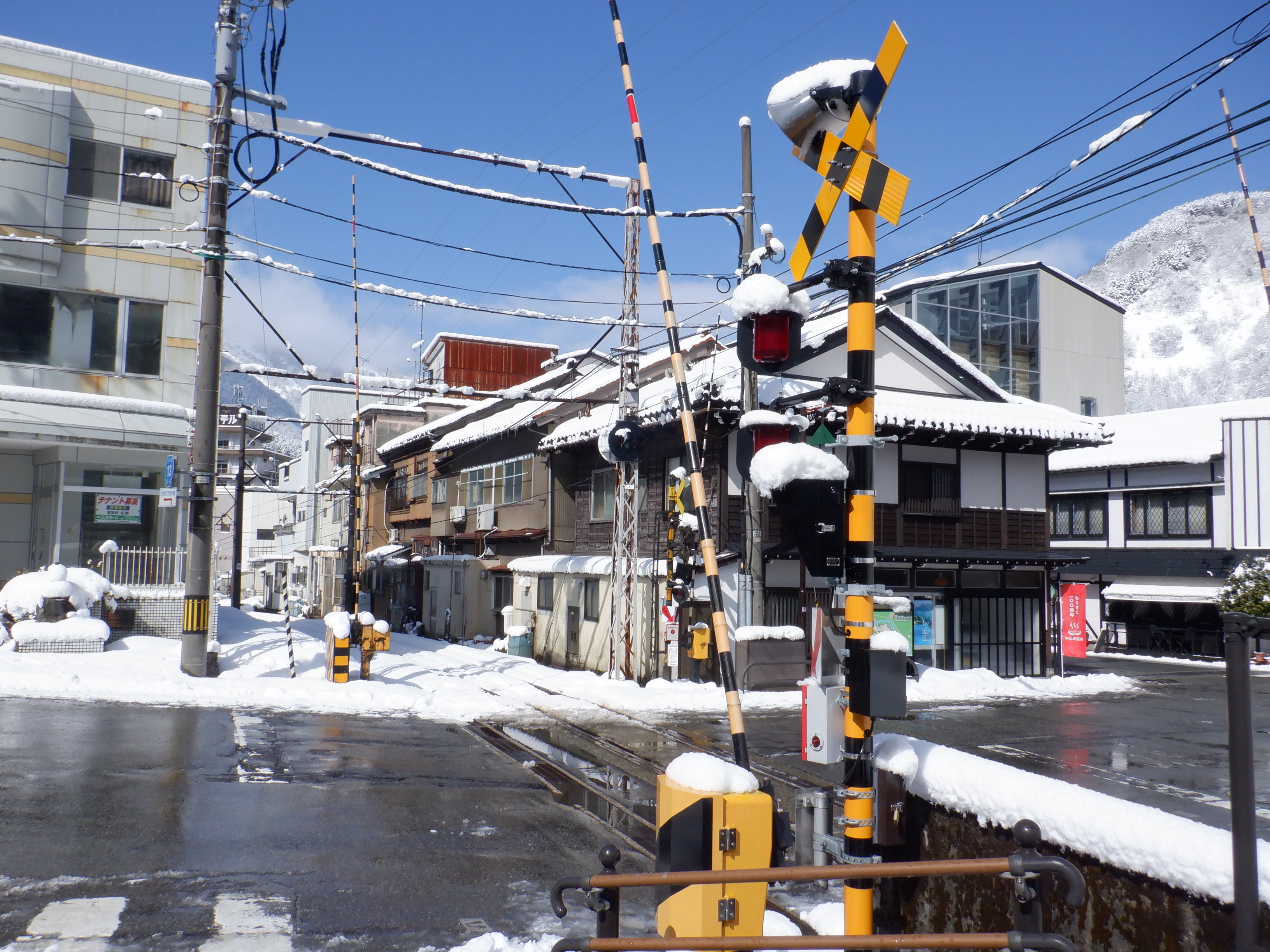 富山地方鉄道本線としては終点であり、この先黒部峡谷鉄道への乗り換えの駅です。駅は階段・エレベーターを上がって行ったところに改札等があり、橋上駅の構造です。駅前は温泉街としての趣があります。