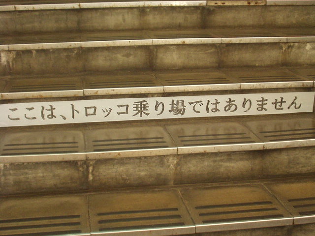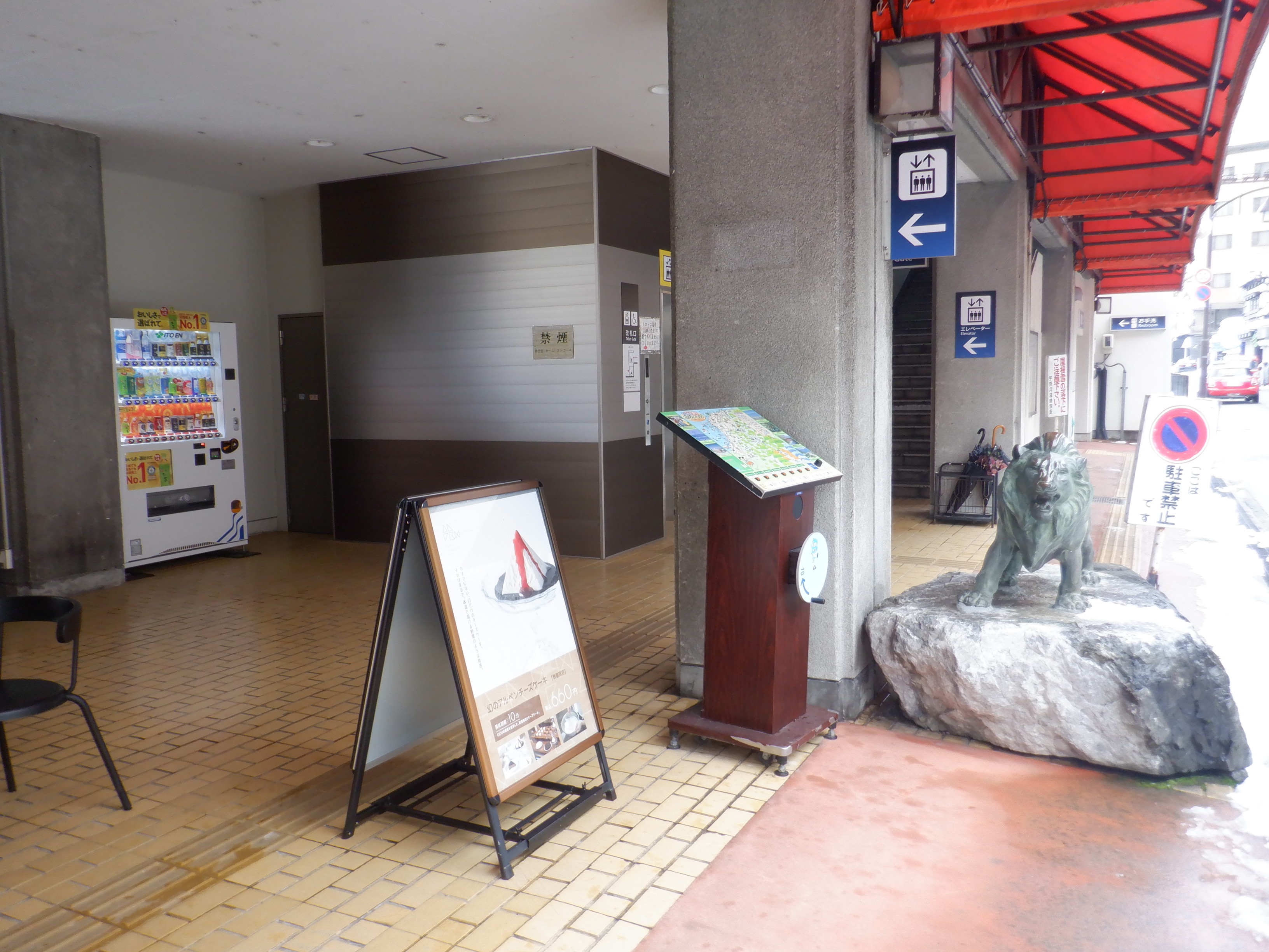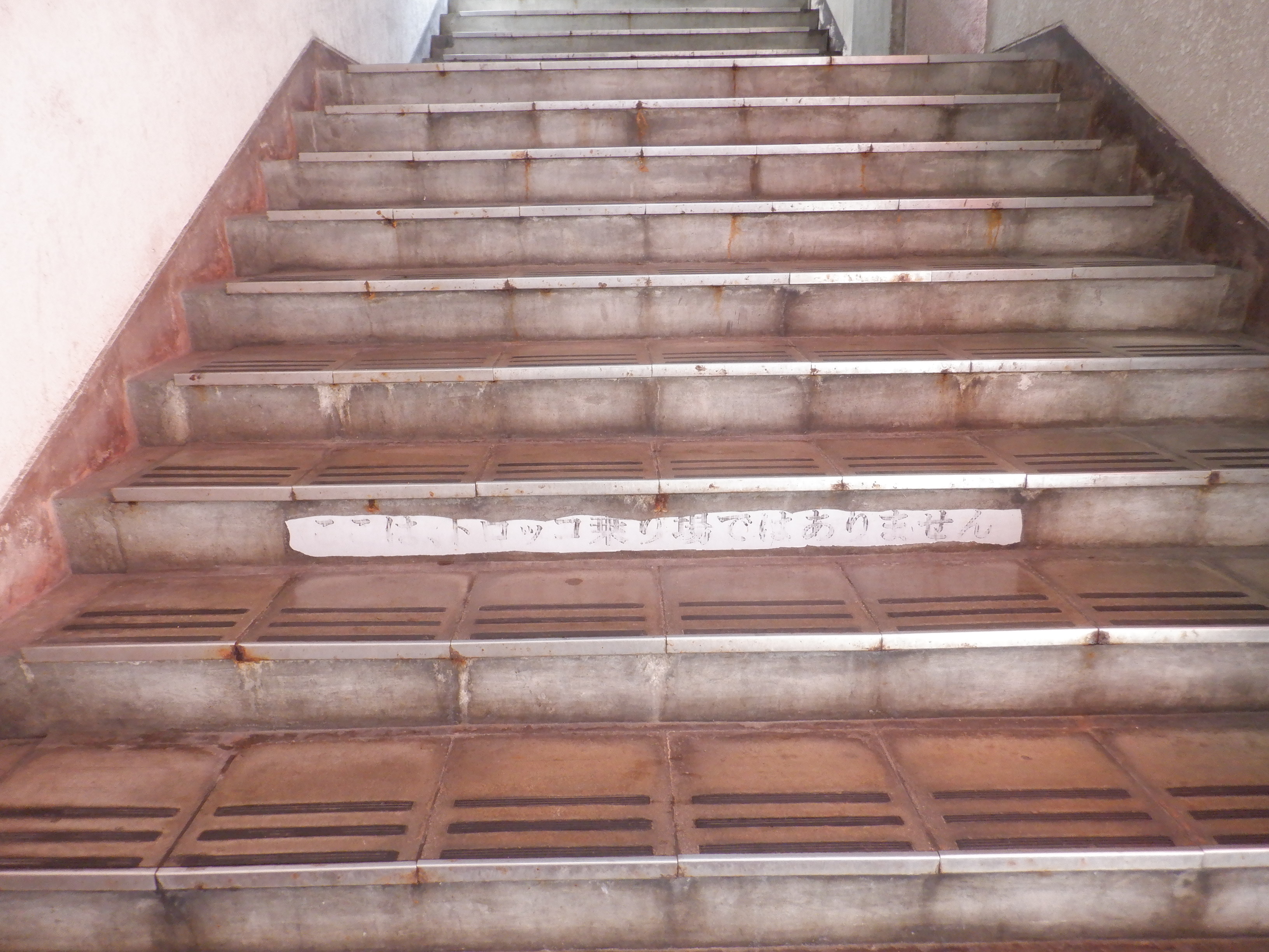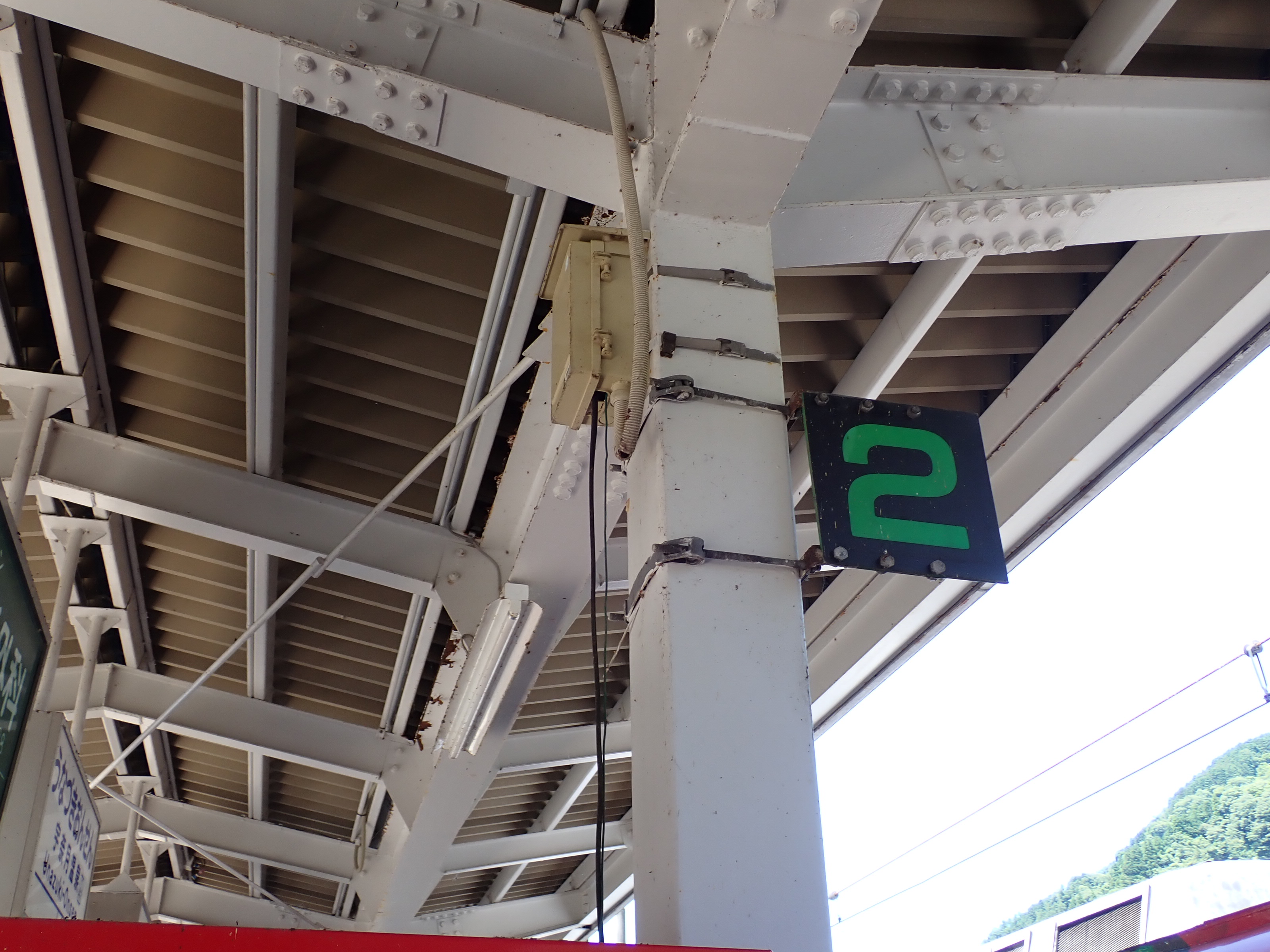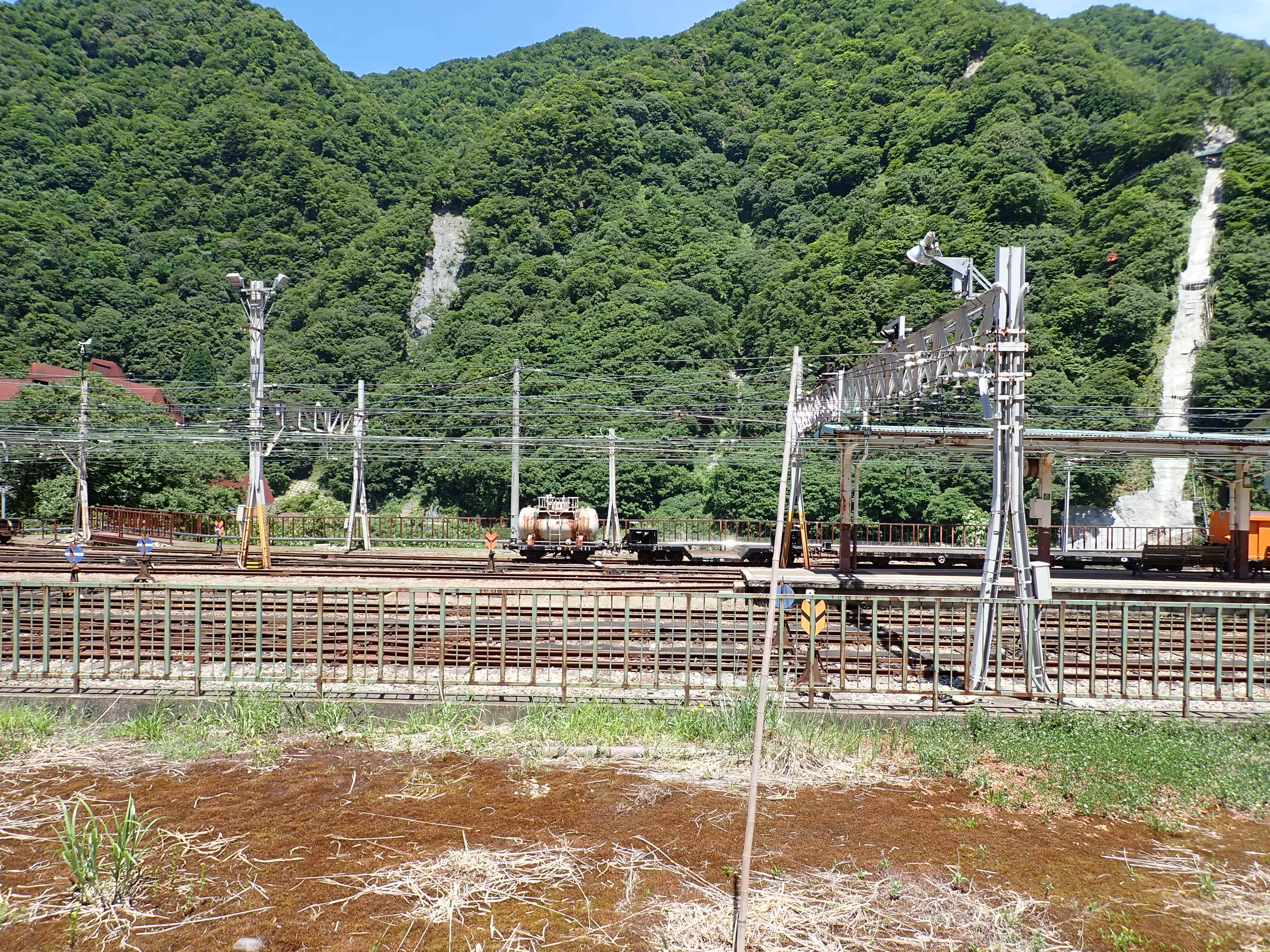 正面ではなく、駅の横側への階段。黒部峡谷鉄道の宇奈月駅はこちらの方が近くなります。