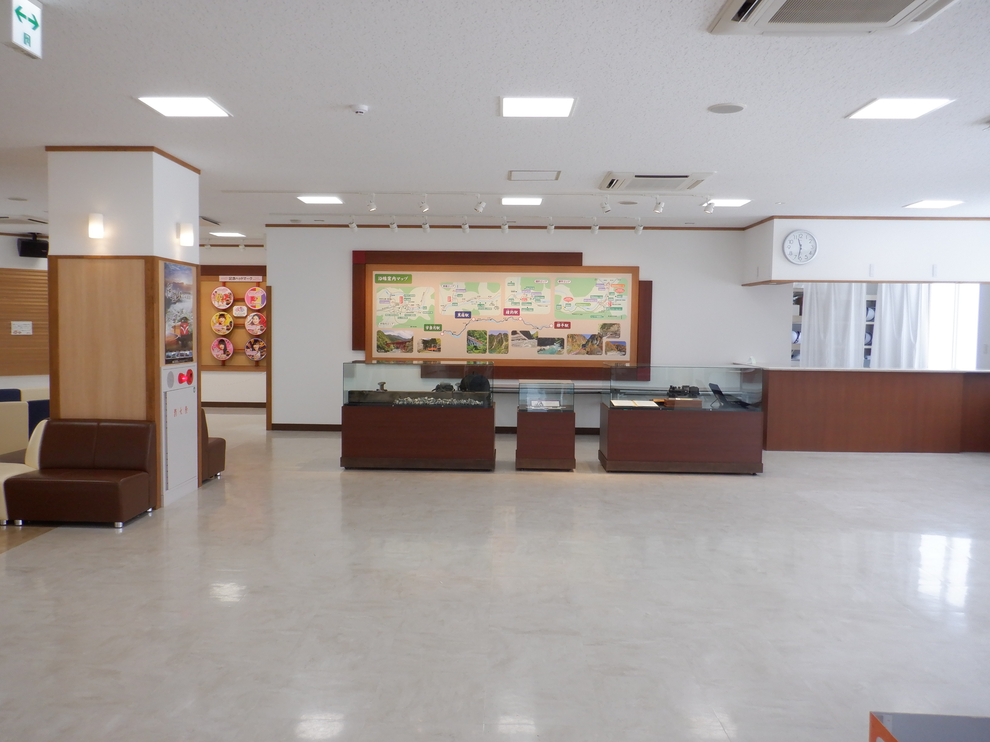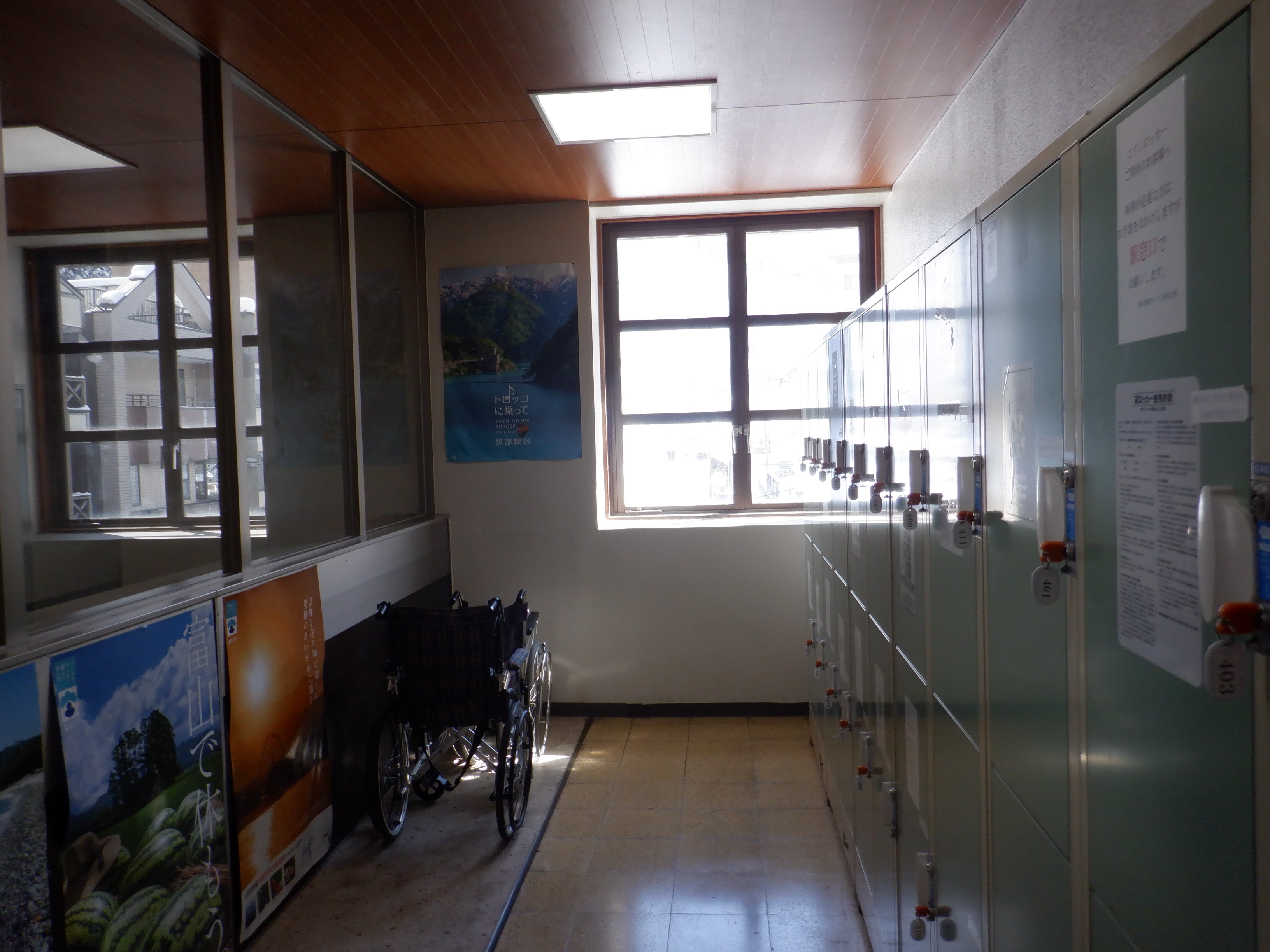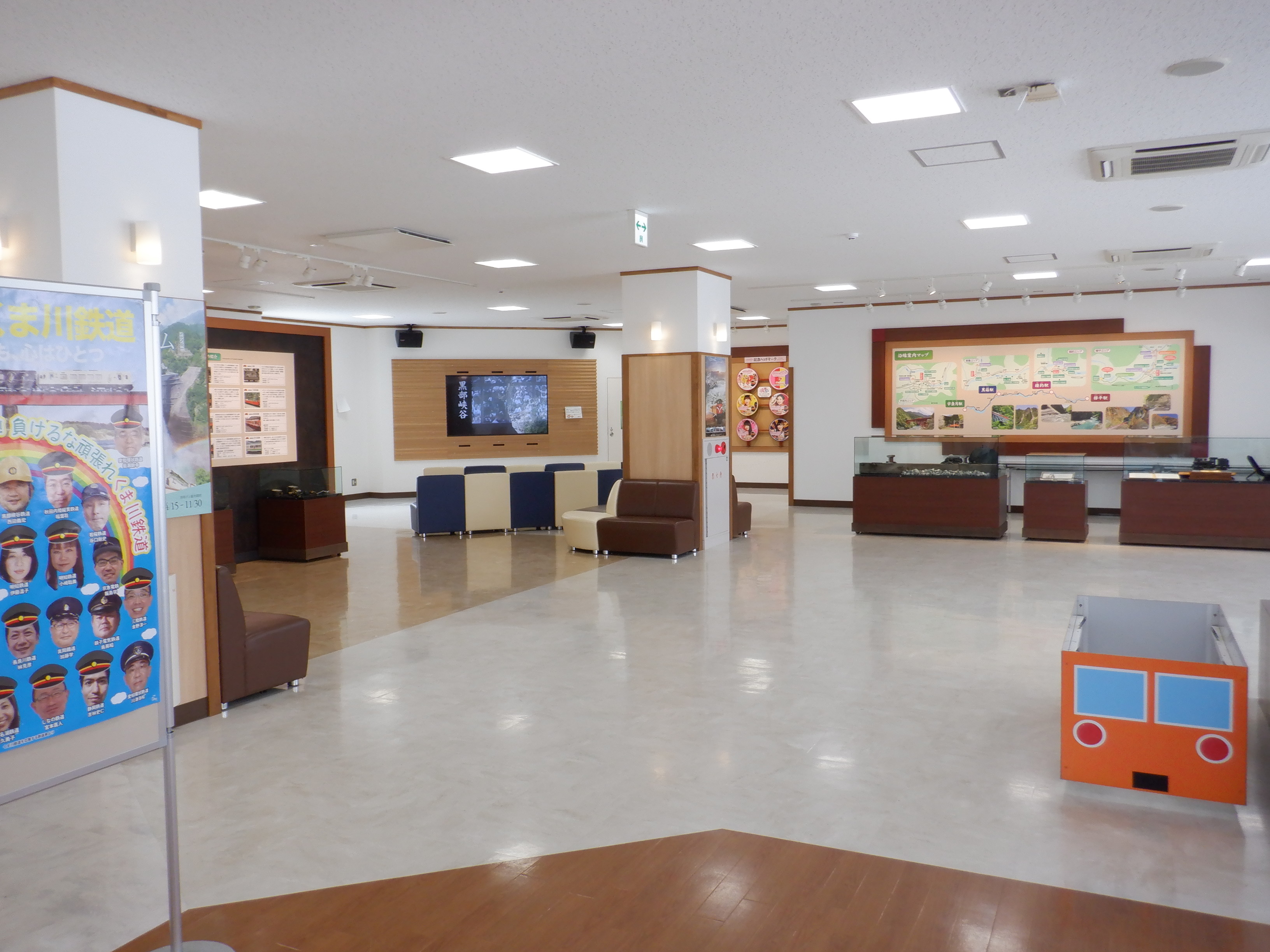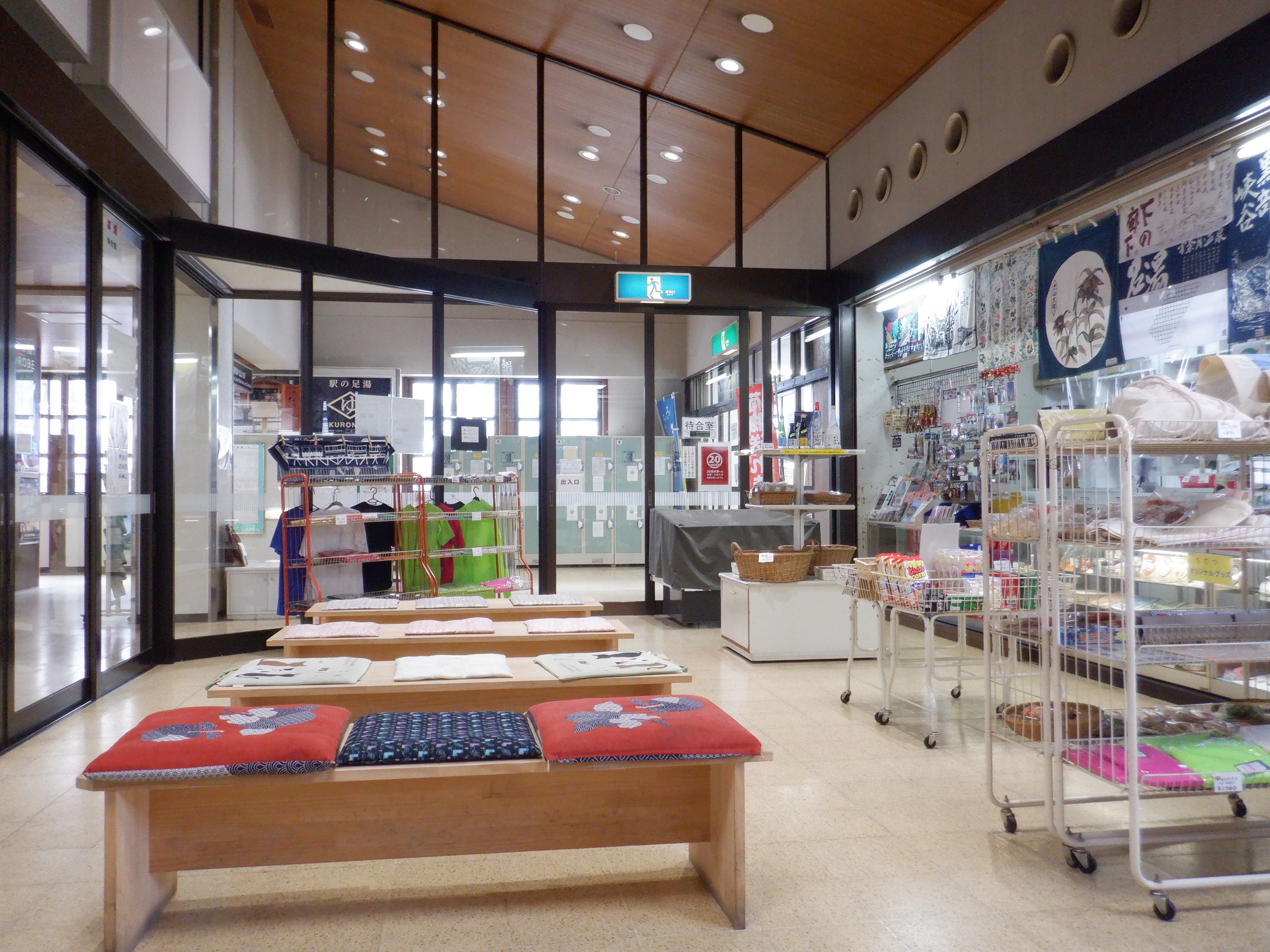 ホームの終端方向を見たところ。足湯があり、改札内外から利用が可能です。