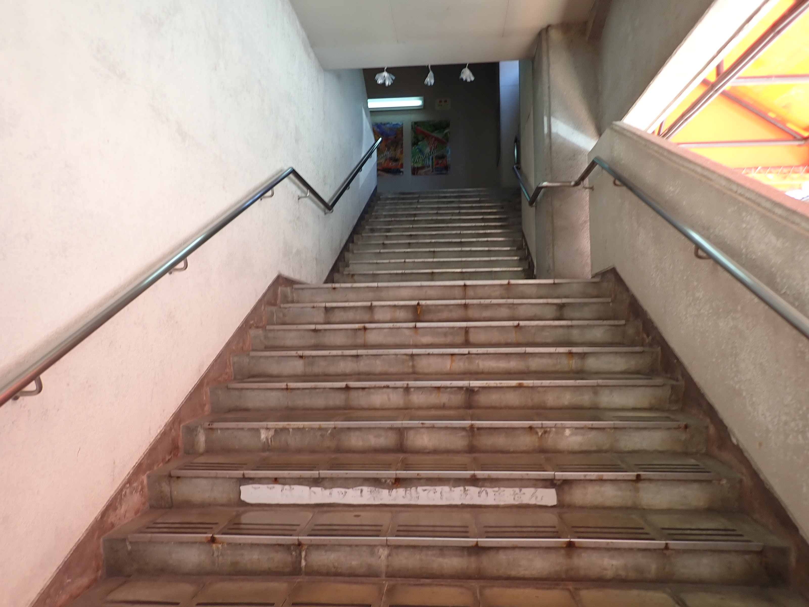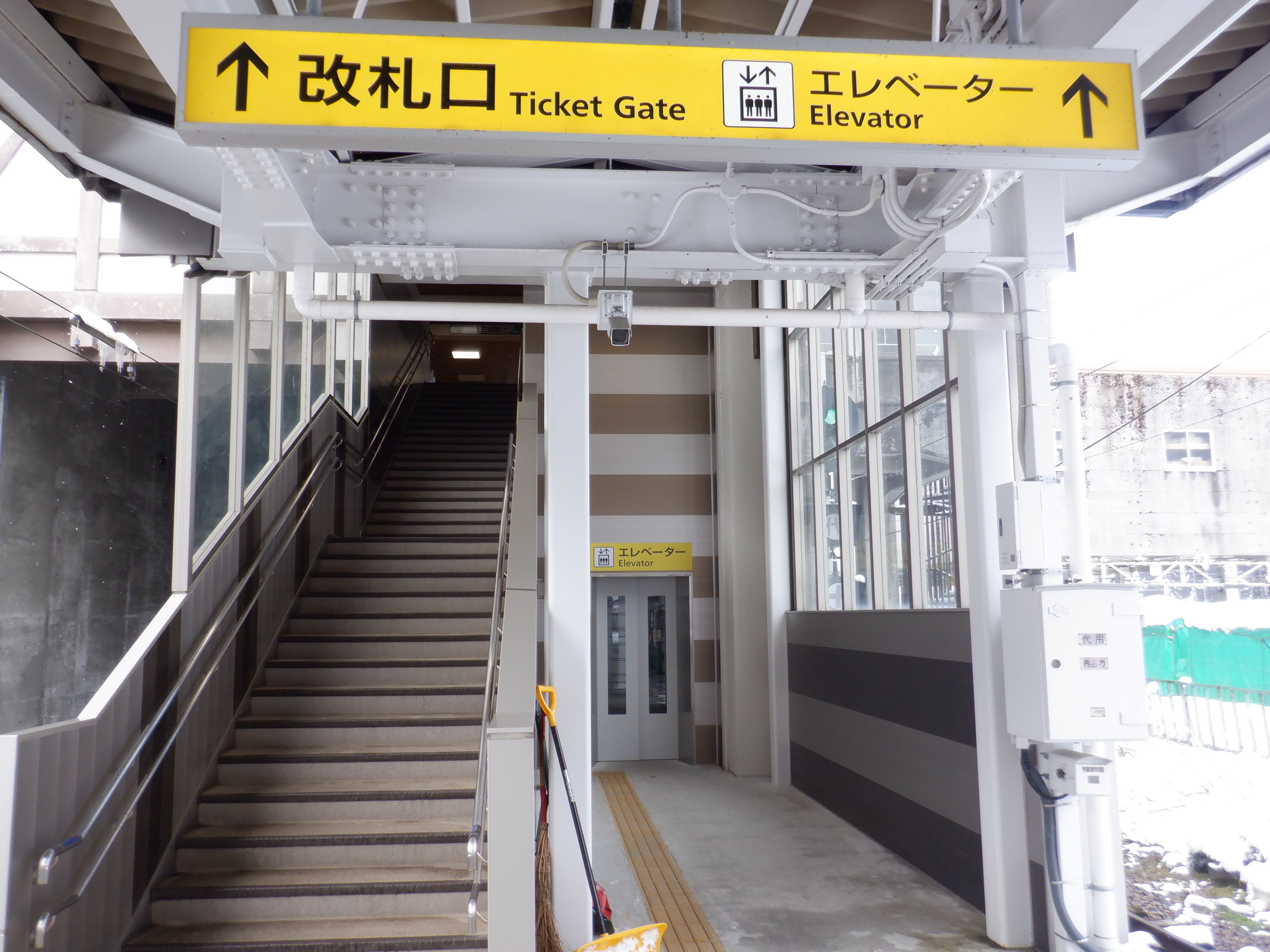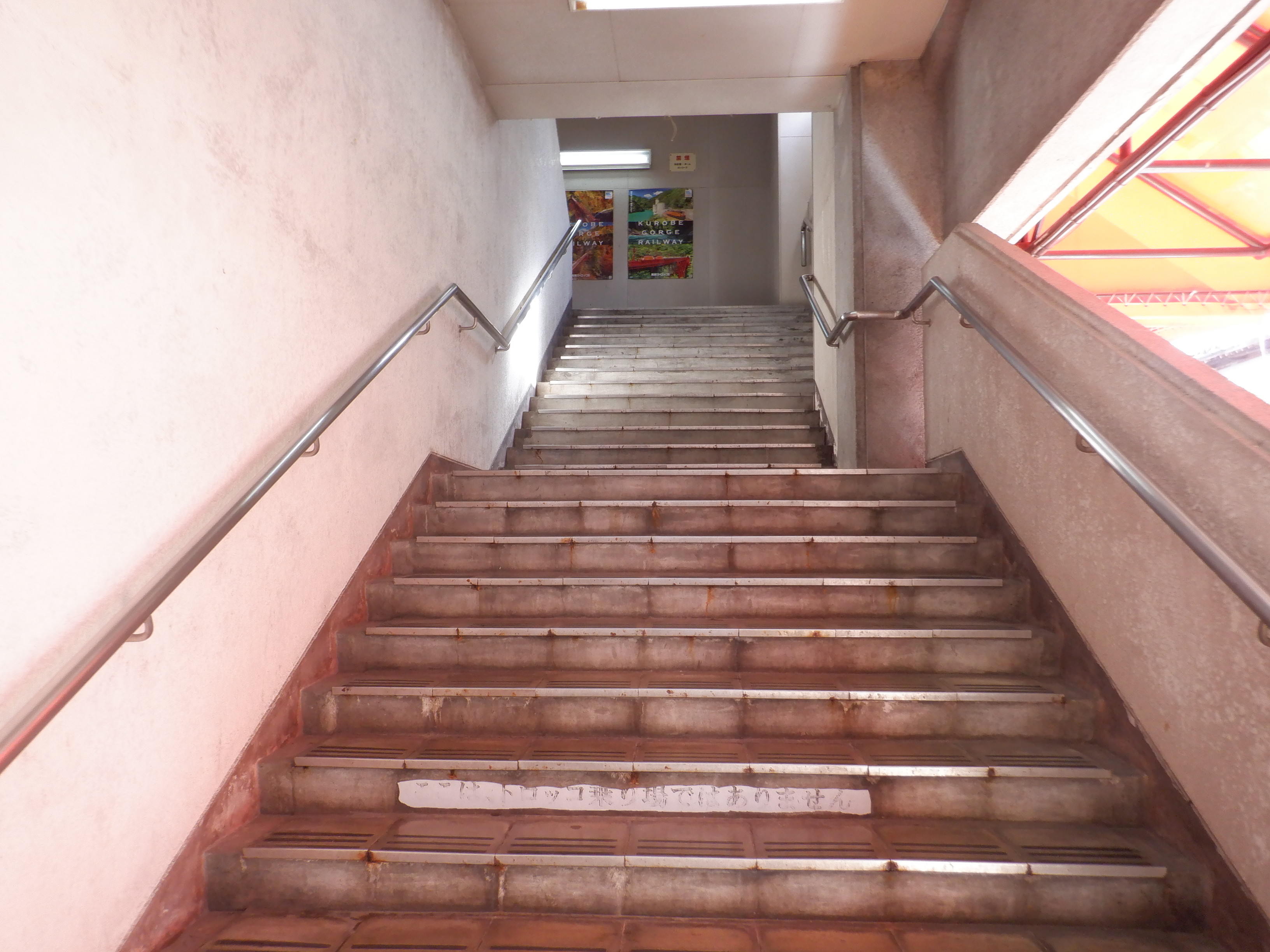 再び階段から改札口の方へ。階段横のスペースから改札とホームを見たところ。