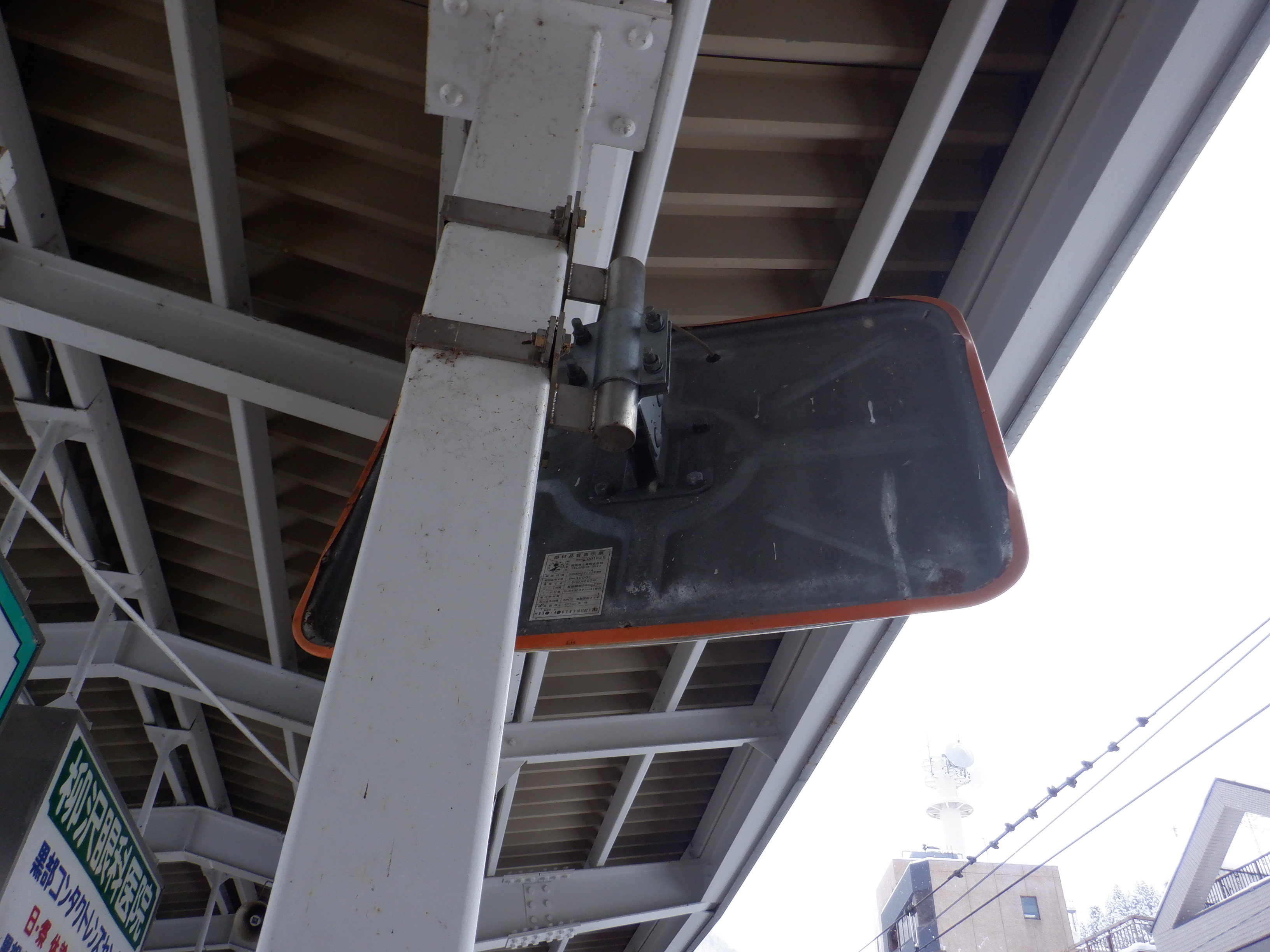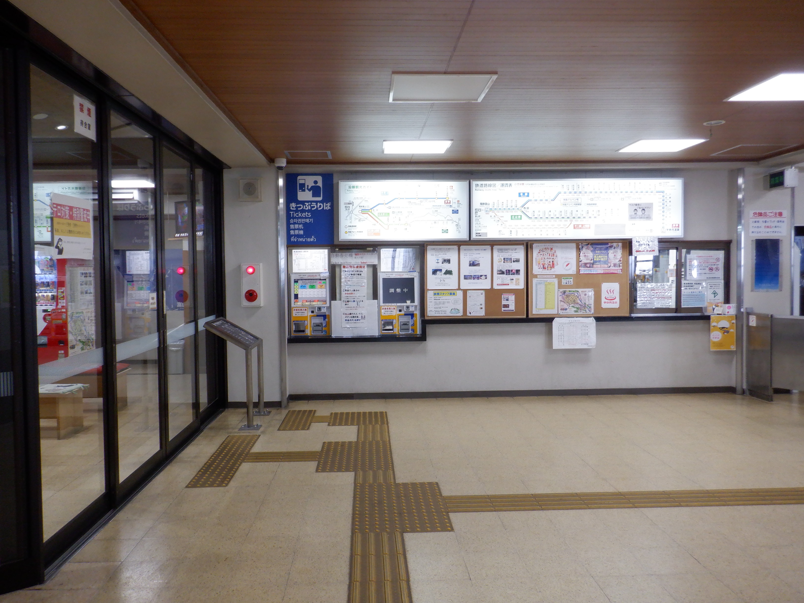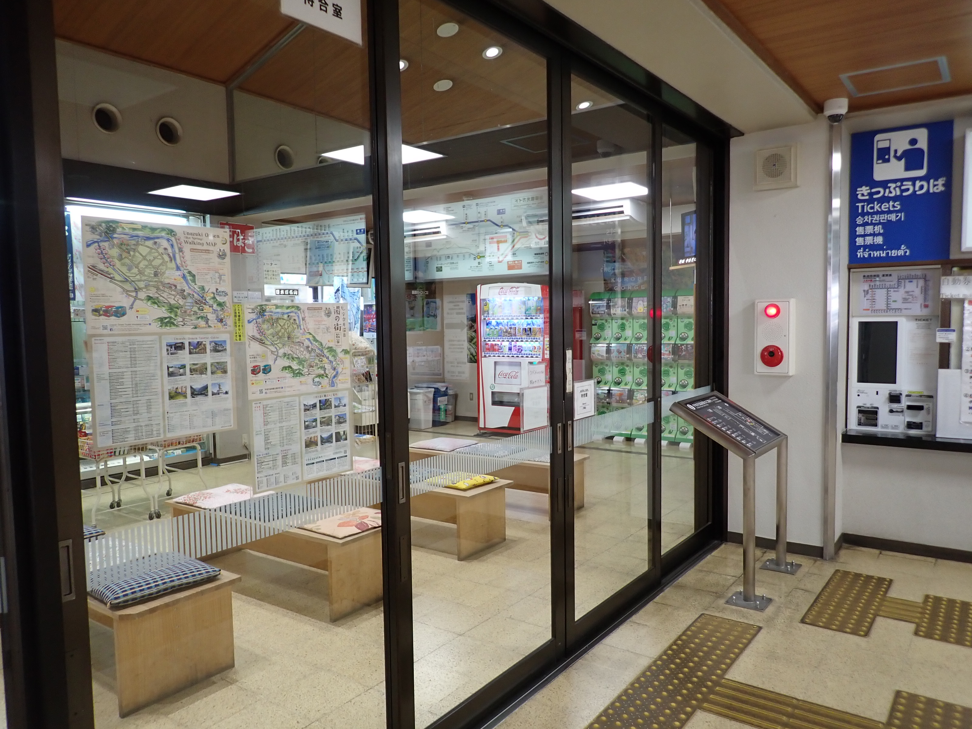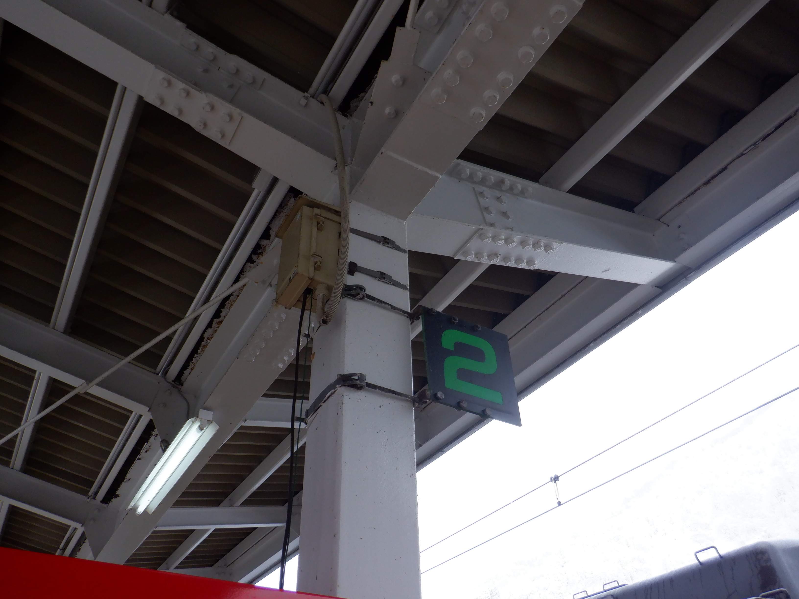 再び階段から改札口の方へ。階段横のスペースから改札とホームを見たところ。