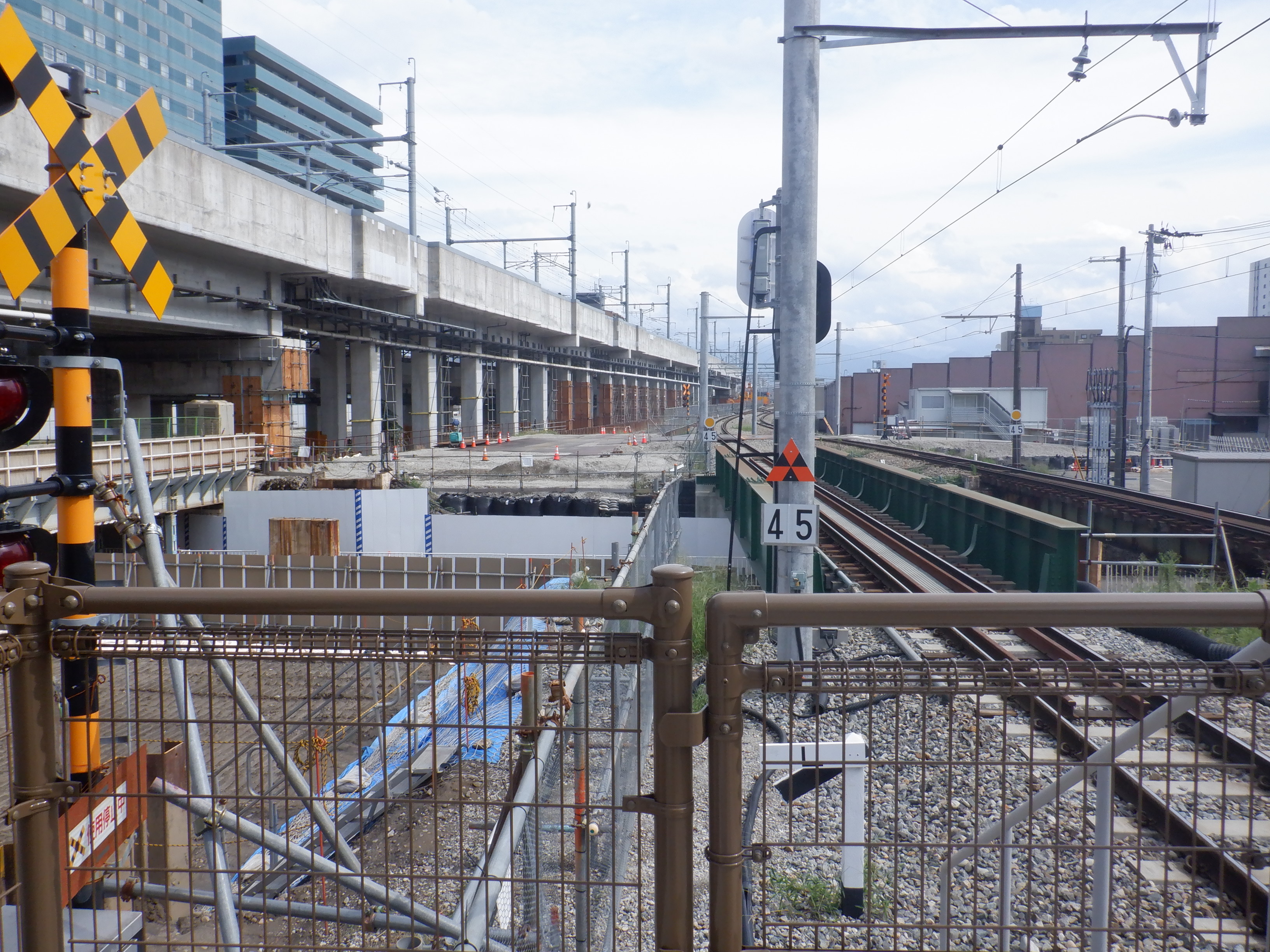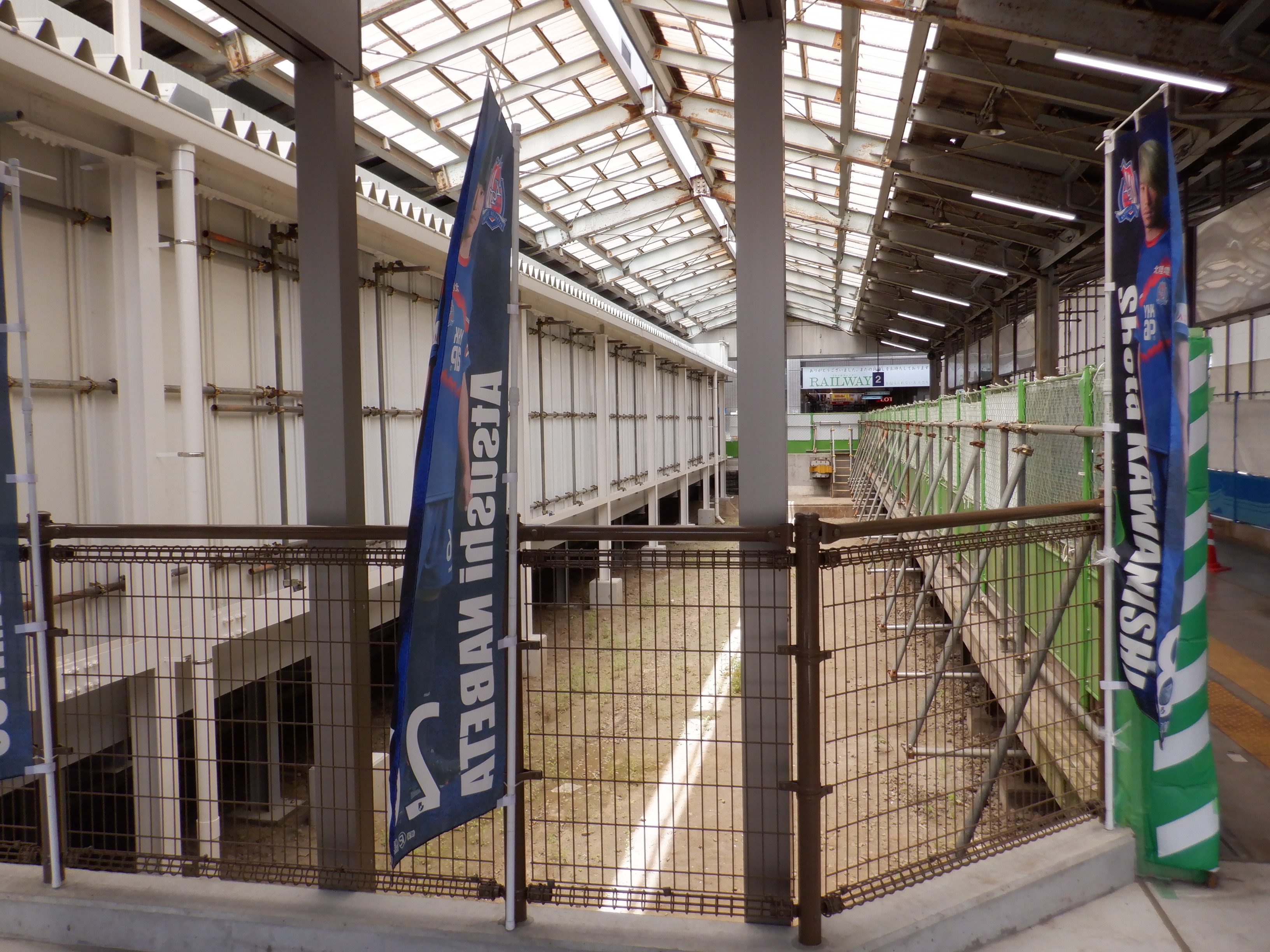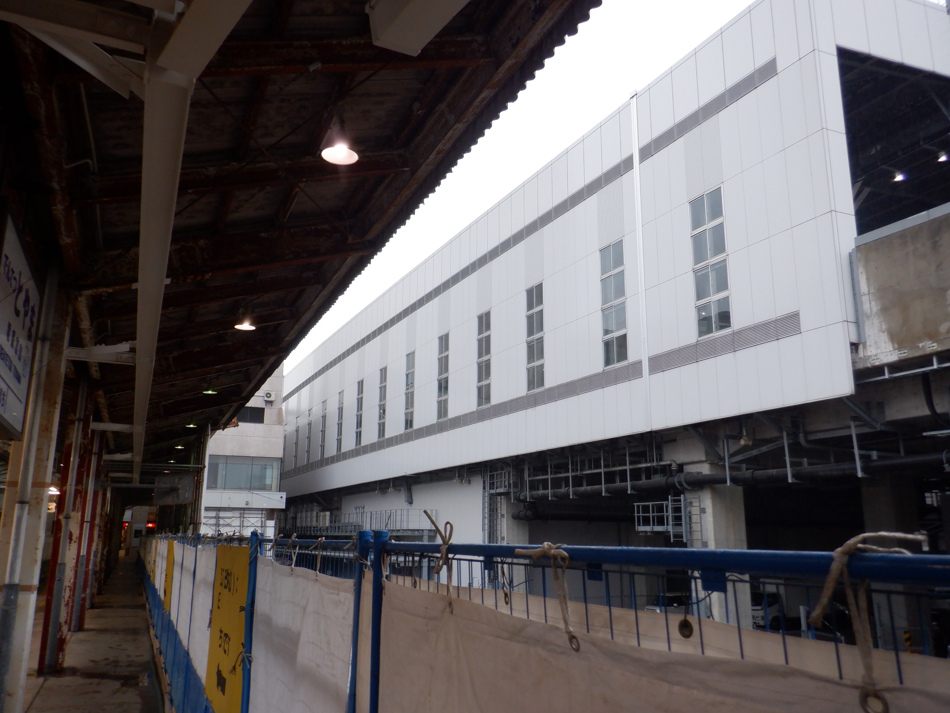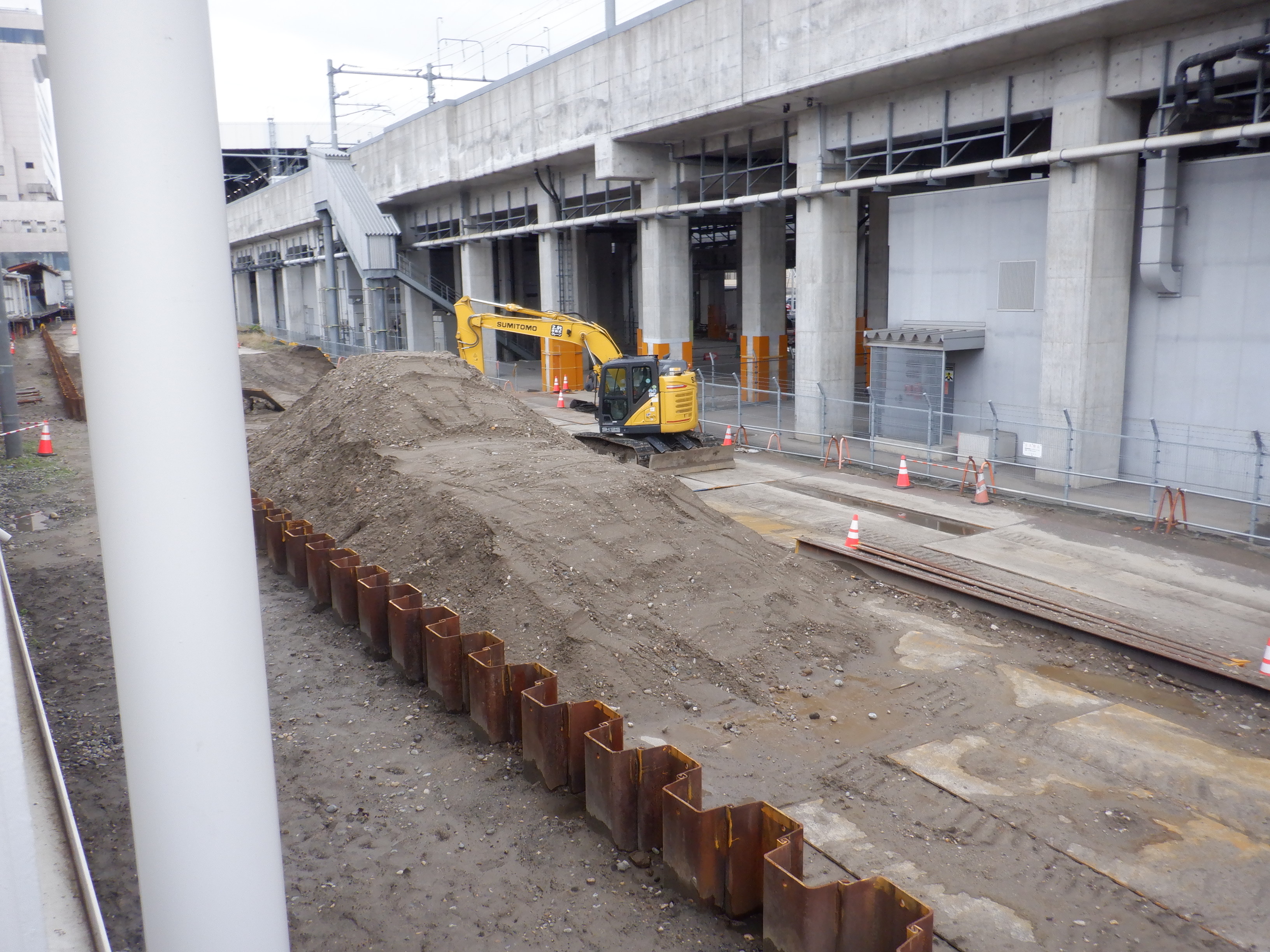 今回は改札内へ入らずに、外からこの先仮設改札口となるところを見ています。
