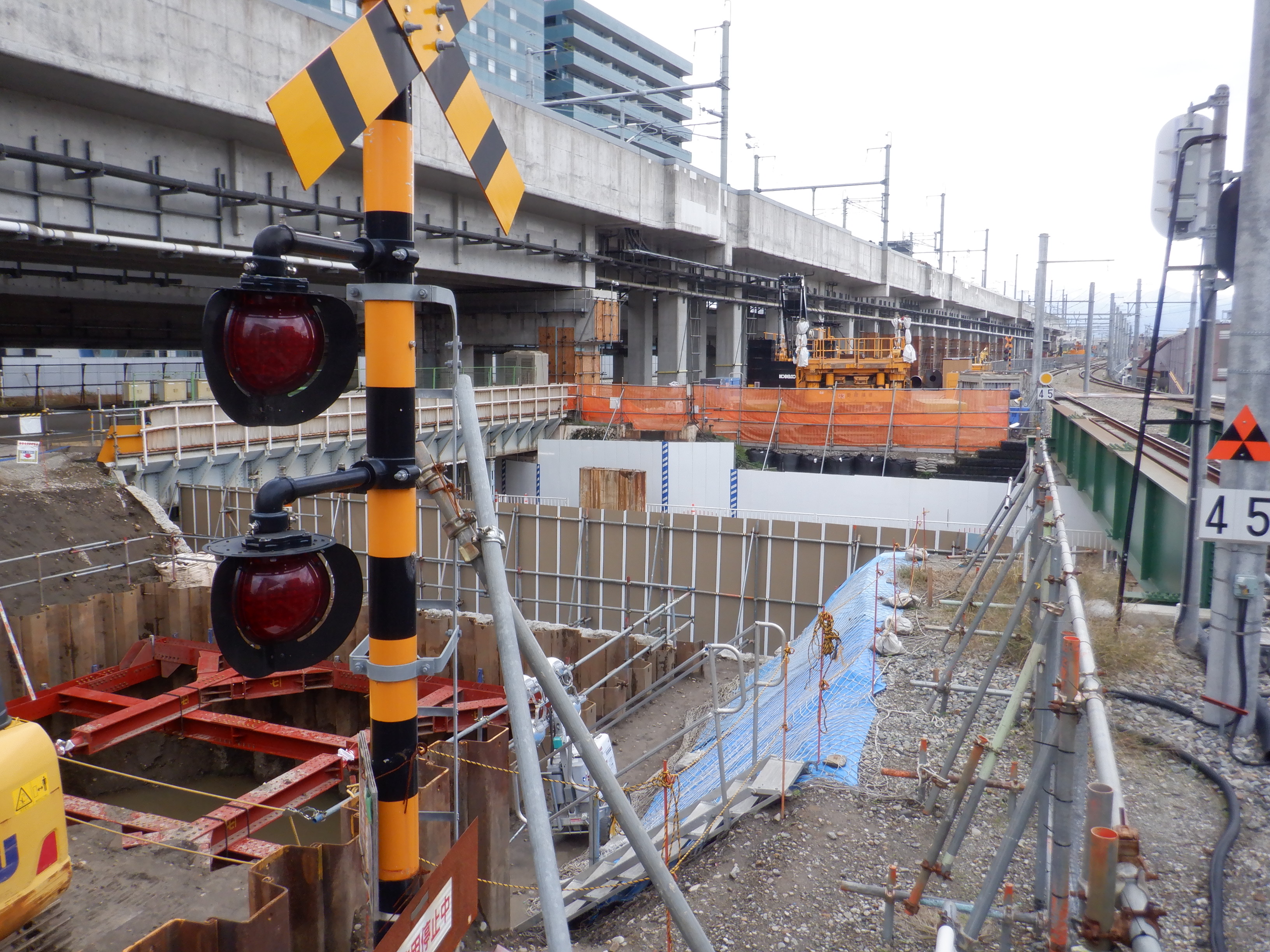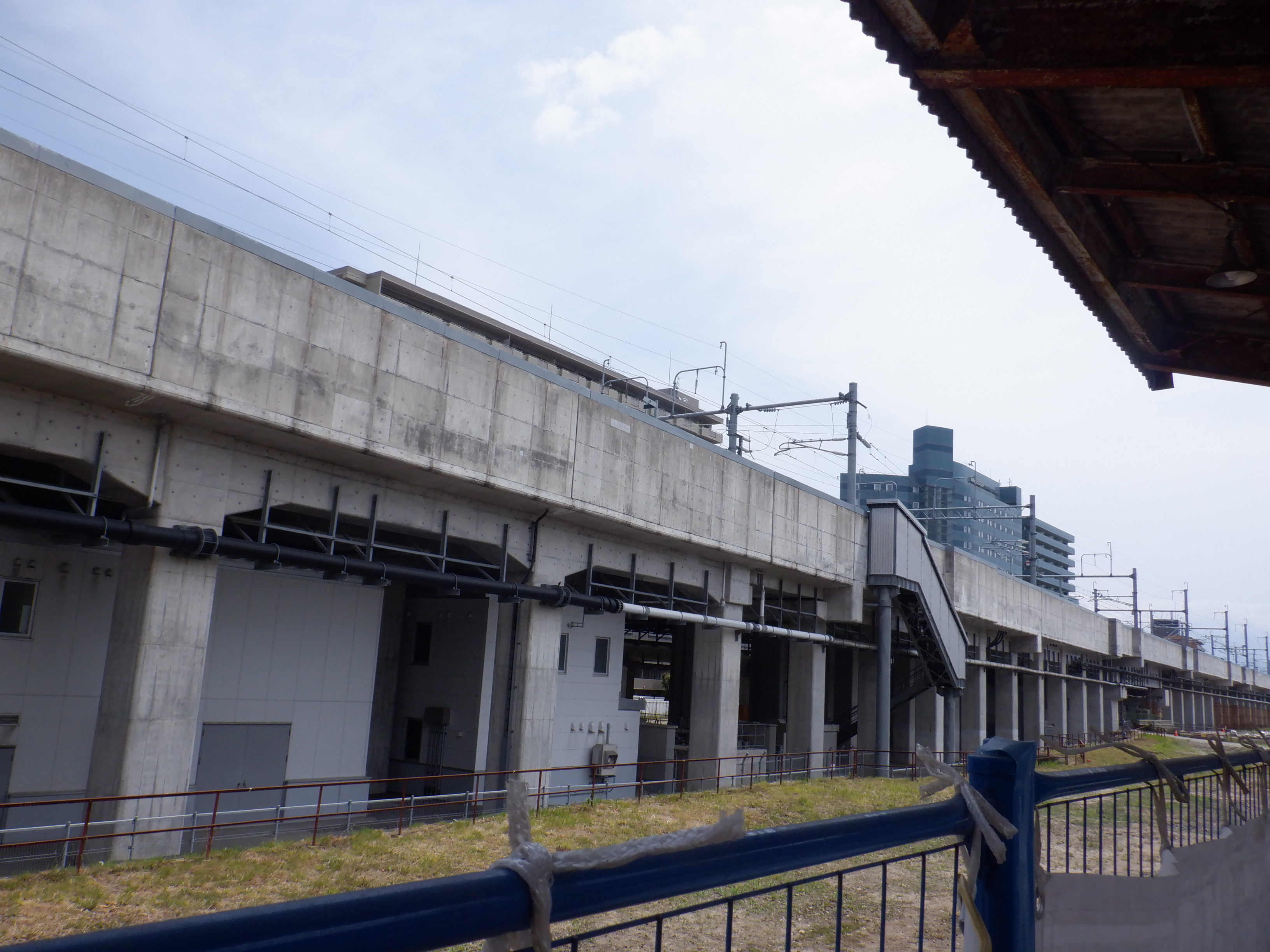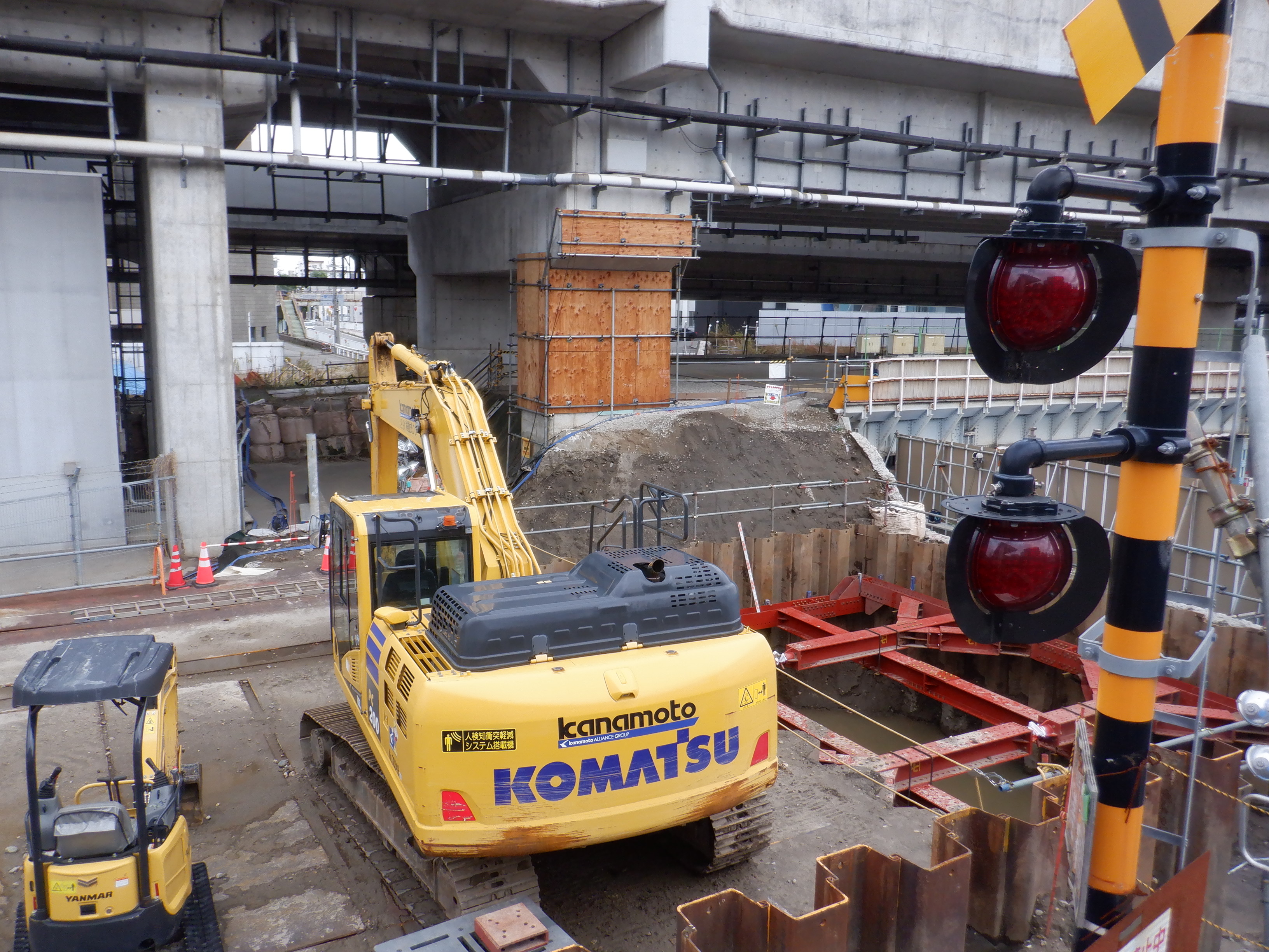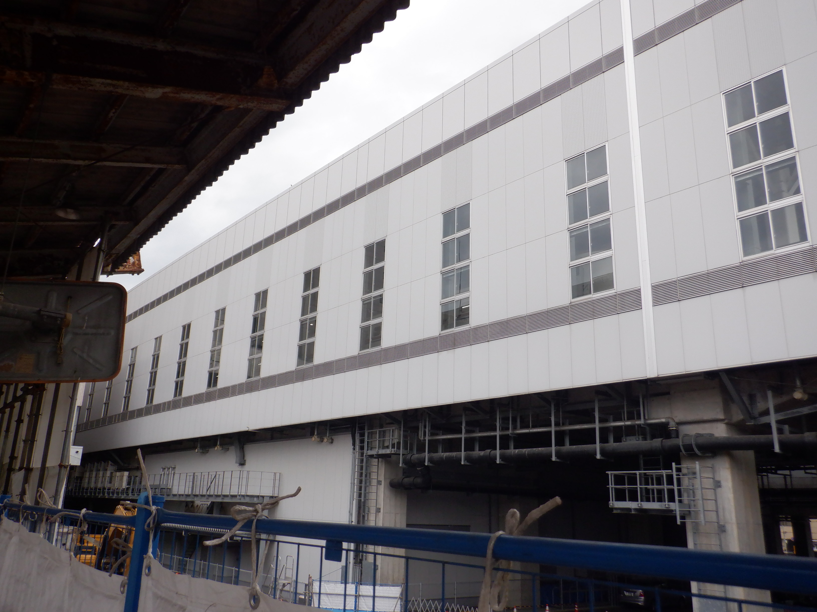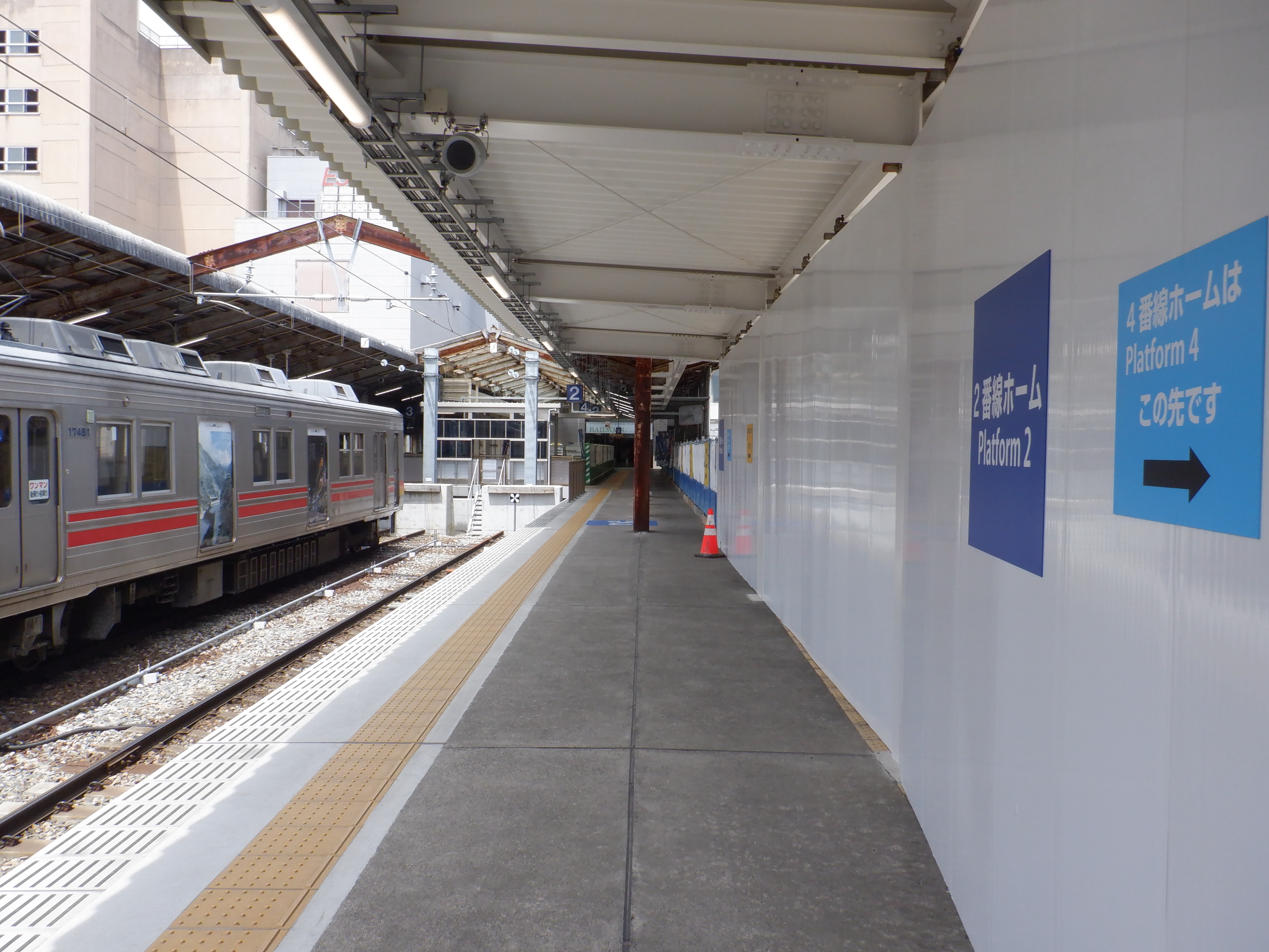 今回は改札内へ入らずに、外からこの先仮設改札口となるところを見ています。