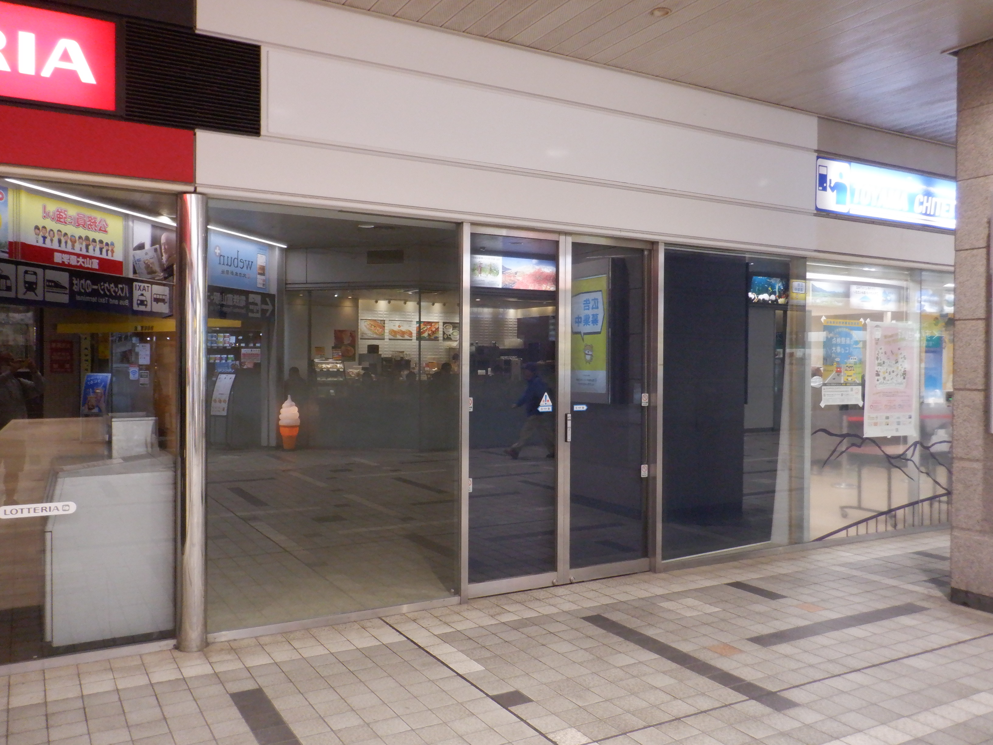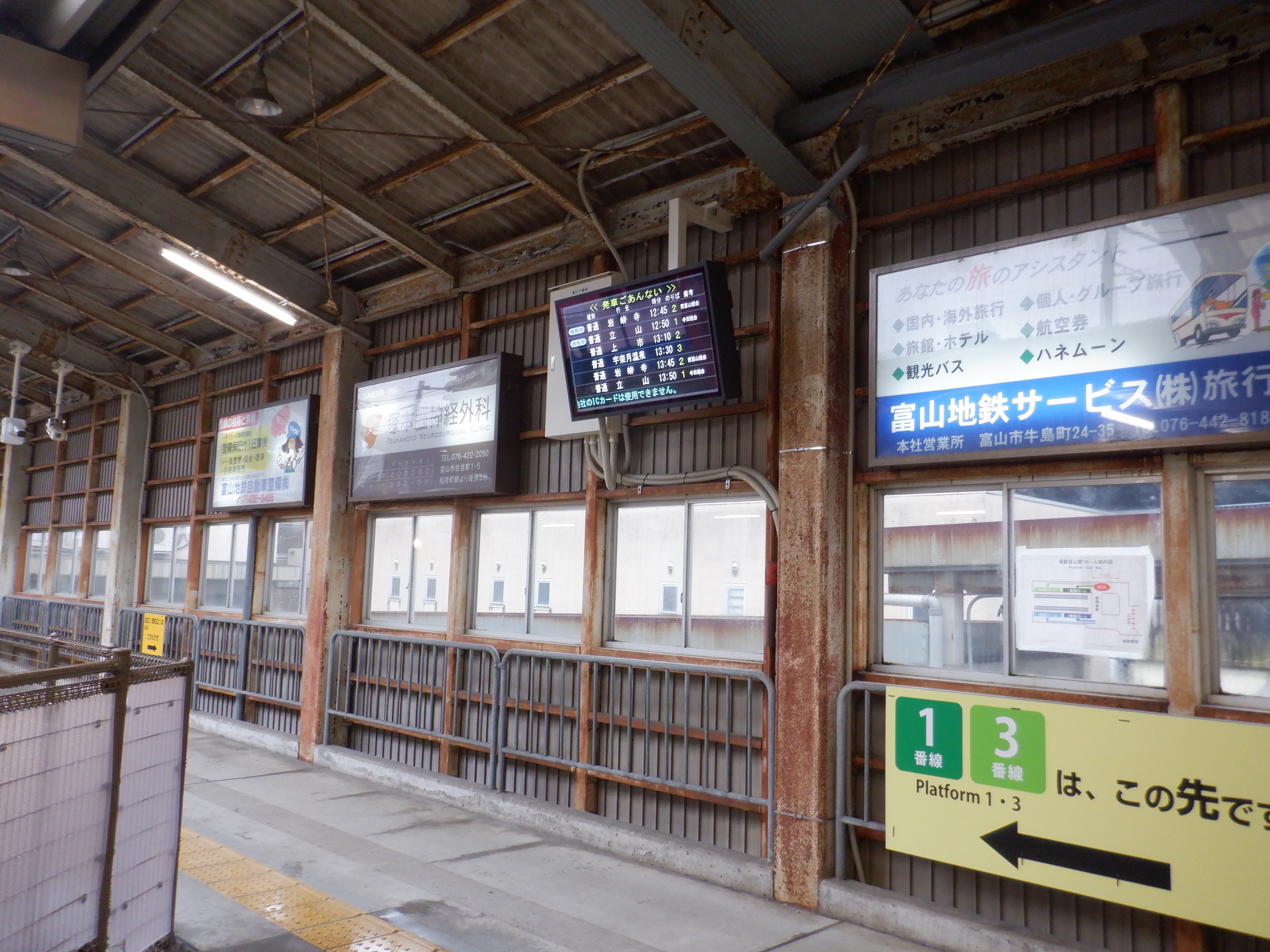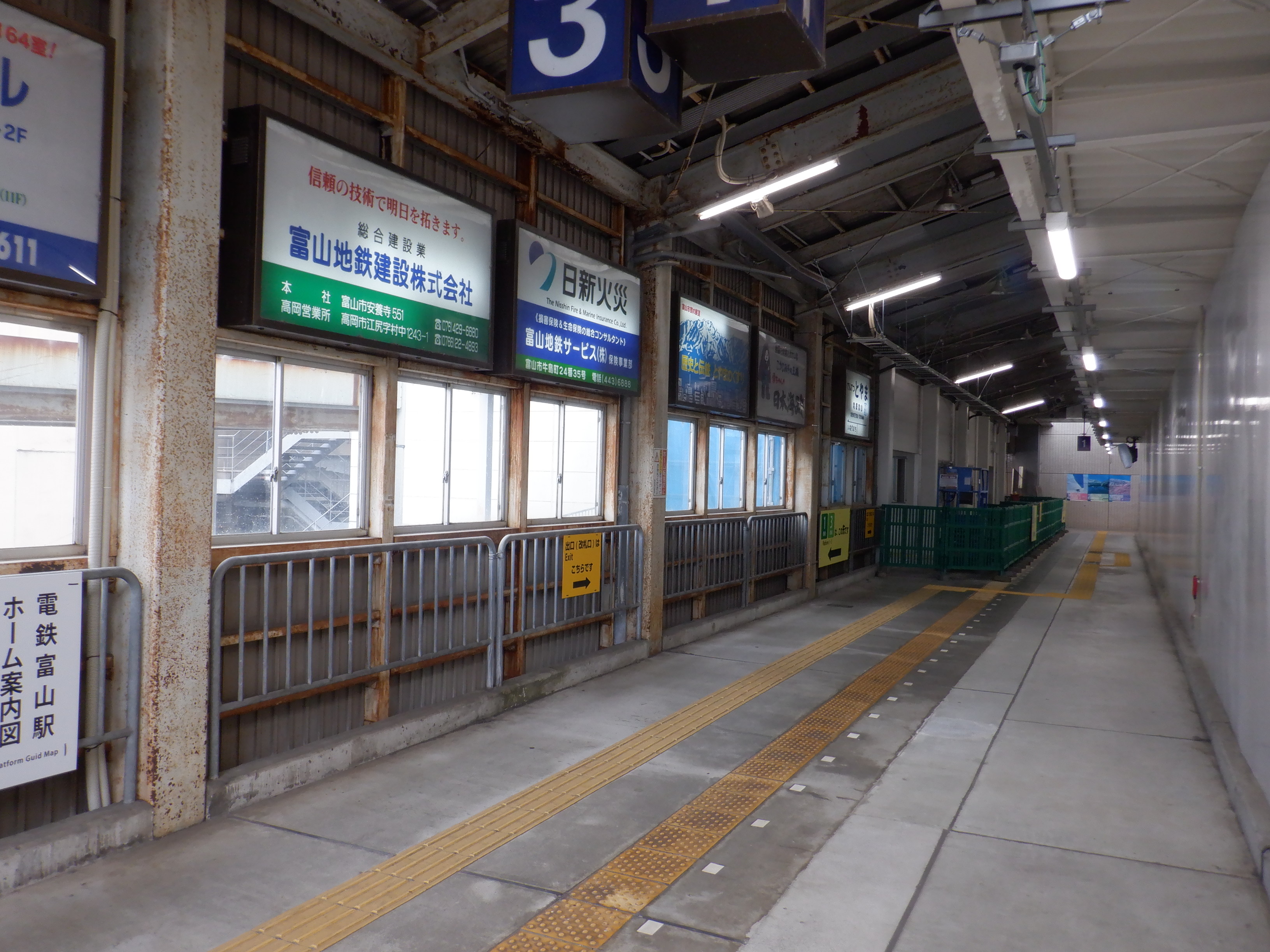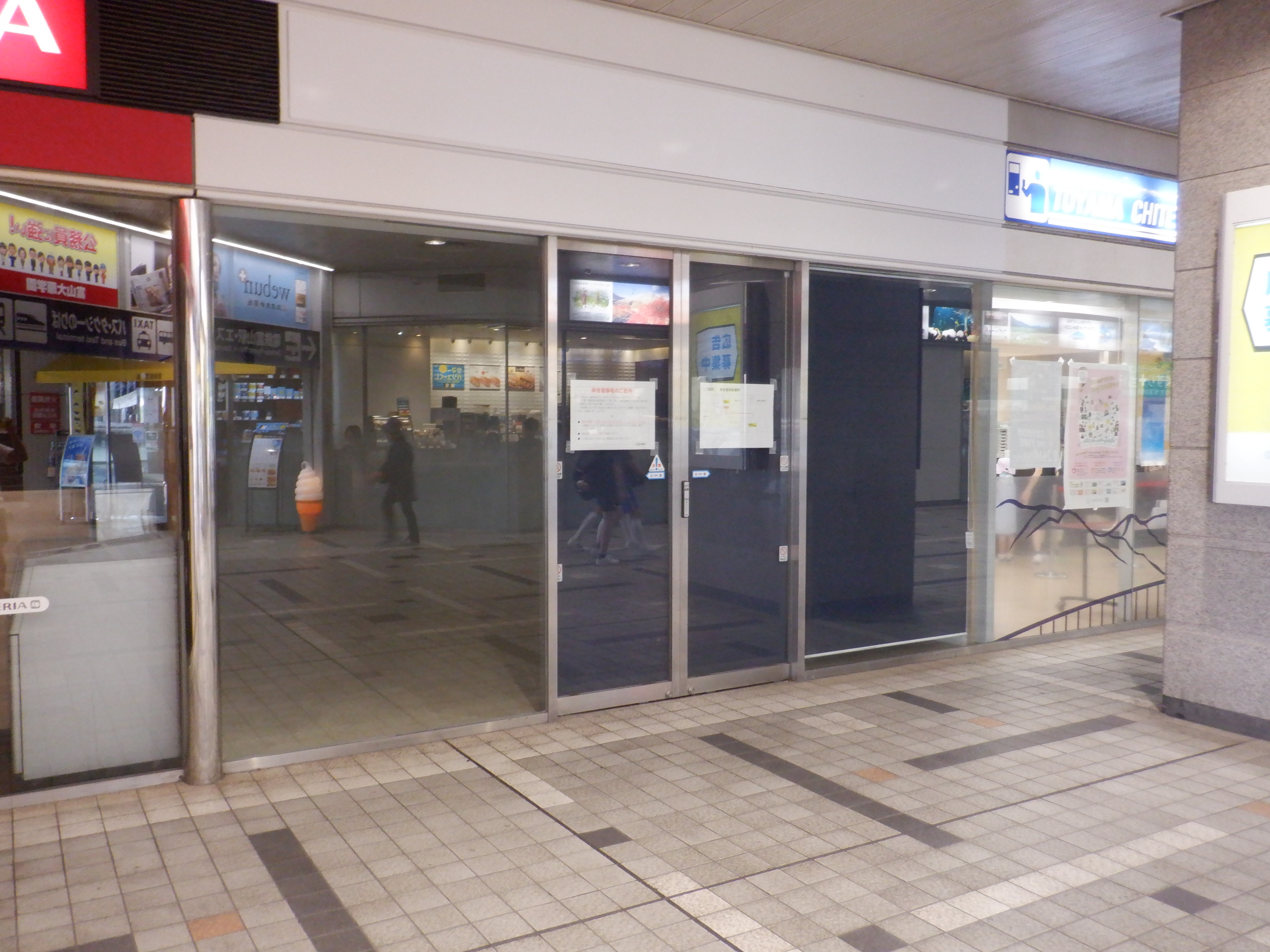 電鉄富山駅に入ってすぐのところの店舗跡が待合室になる旨の案内が貼られていました。