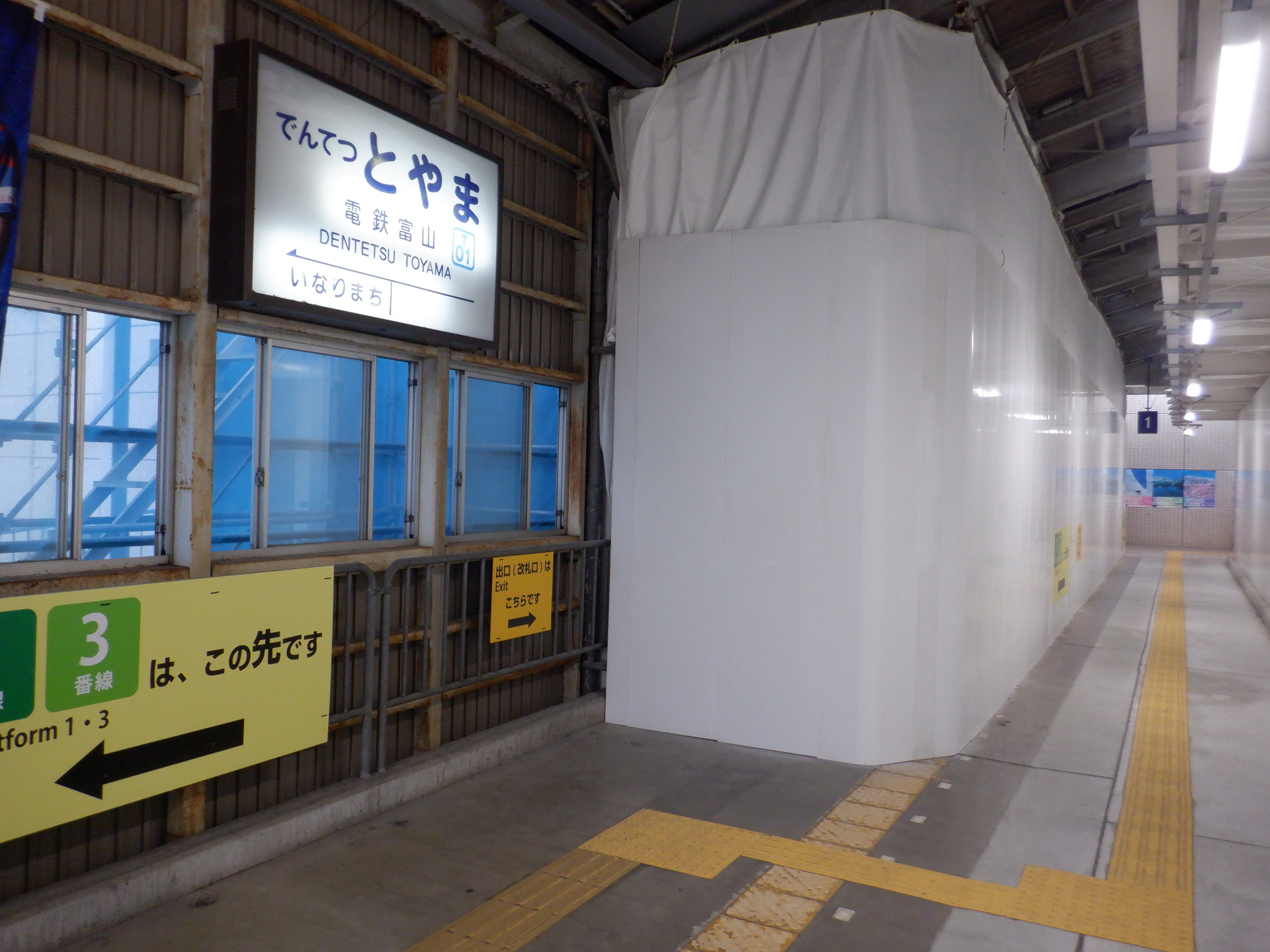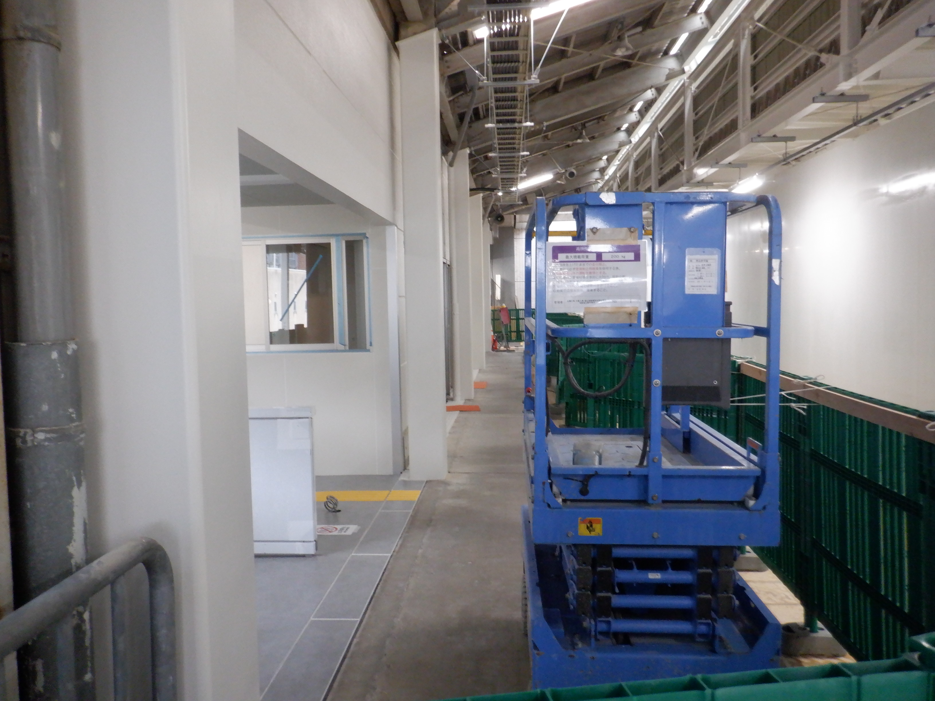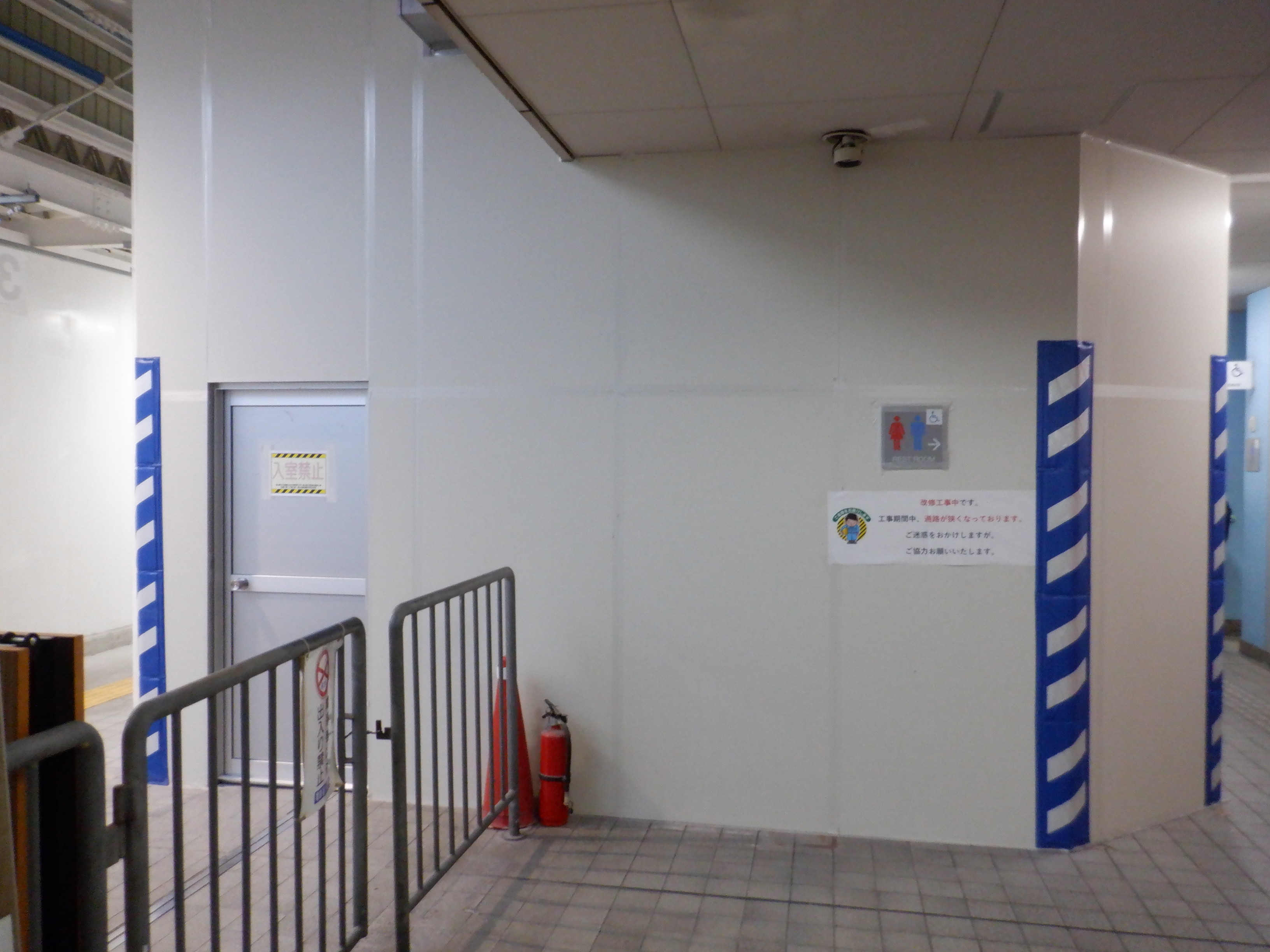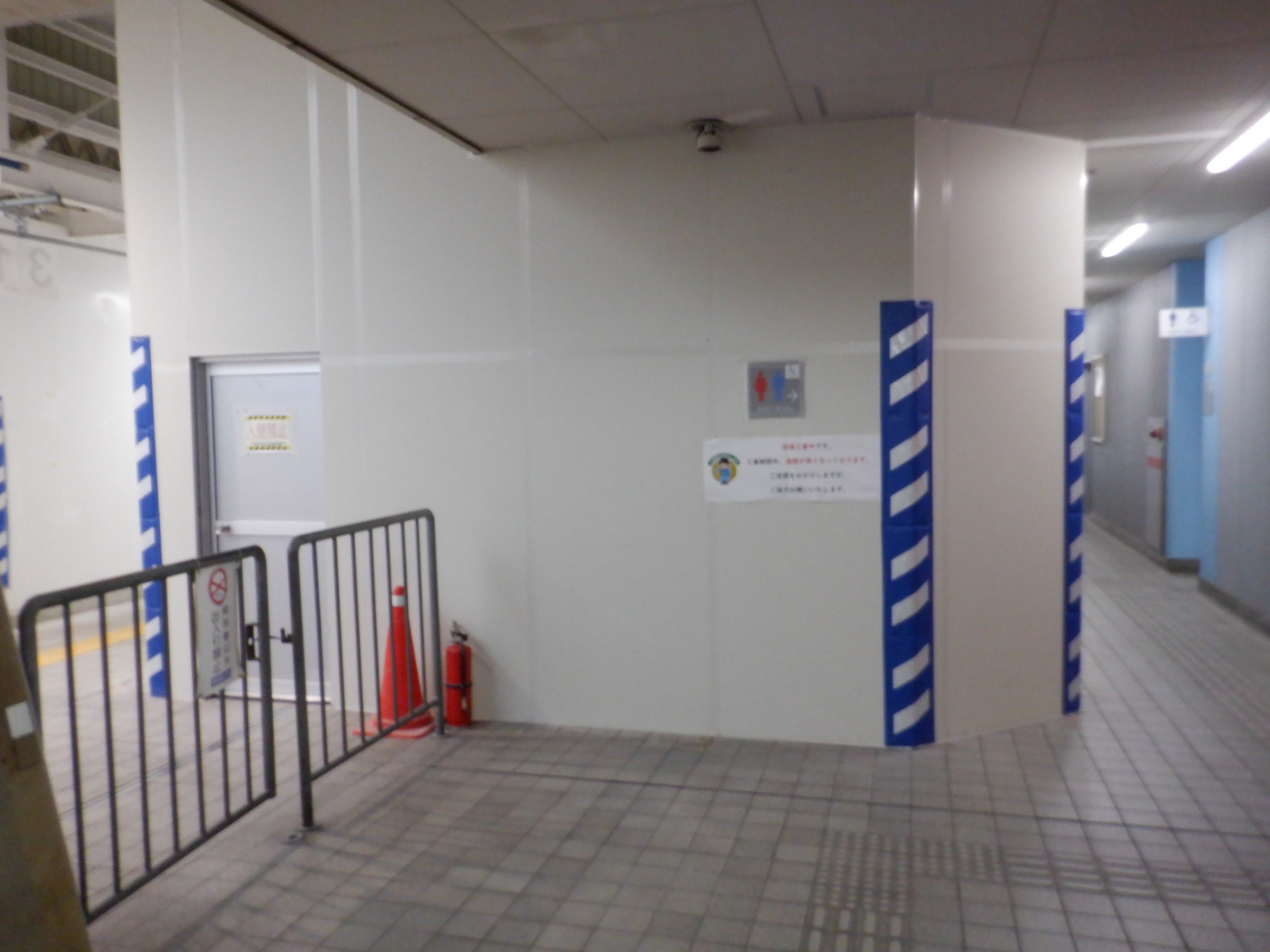 1番のりば側通路に、この後仮設改札口となるための囲いがされました。次の段階に向けて工事が進んでいます。