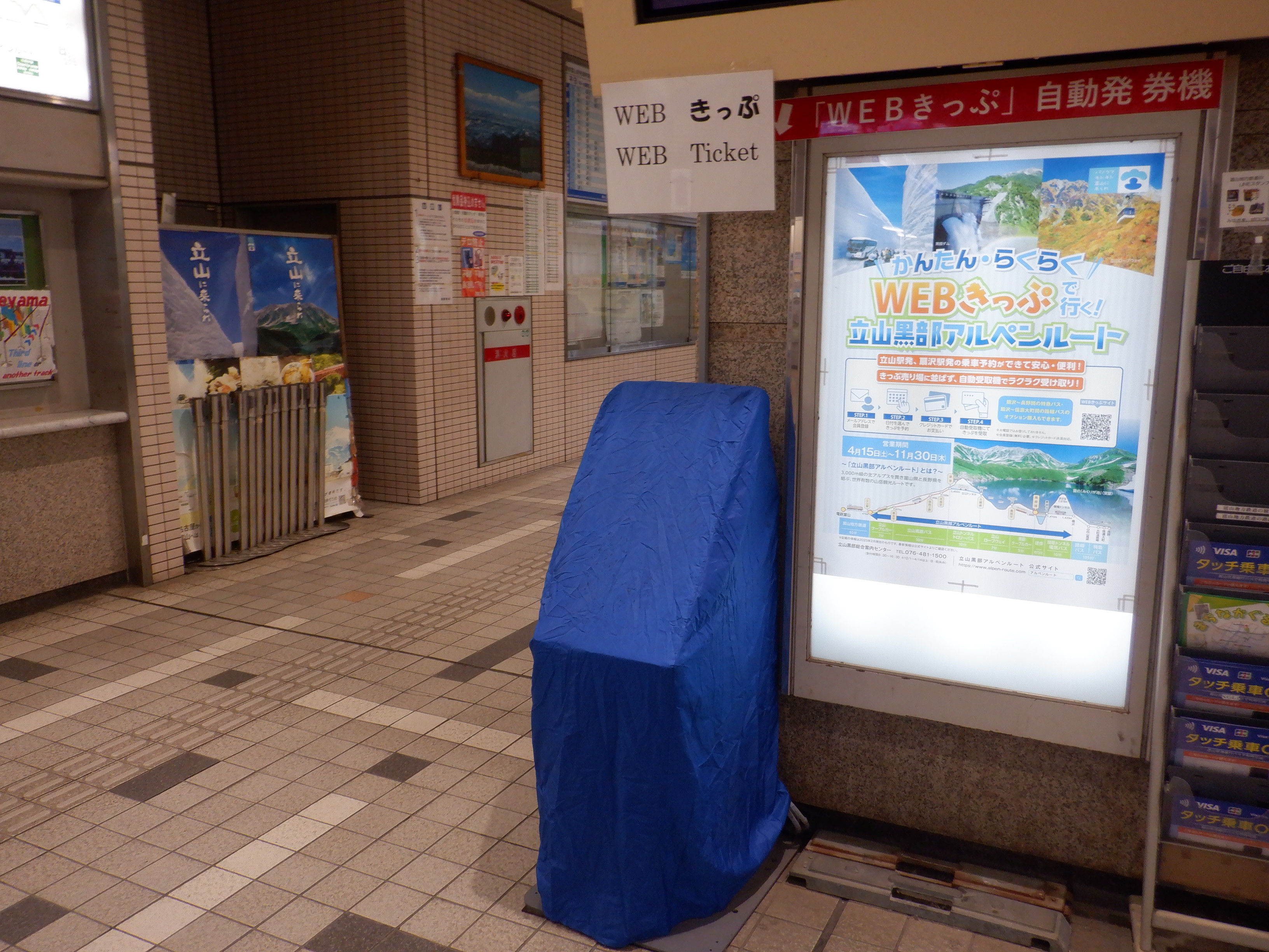 アルペンルートの発券機・窓口が冬季営業休止していました。
