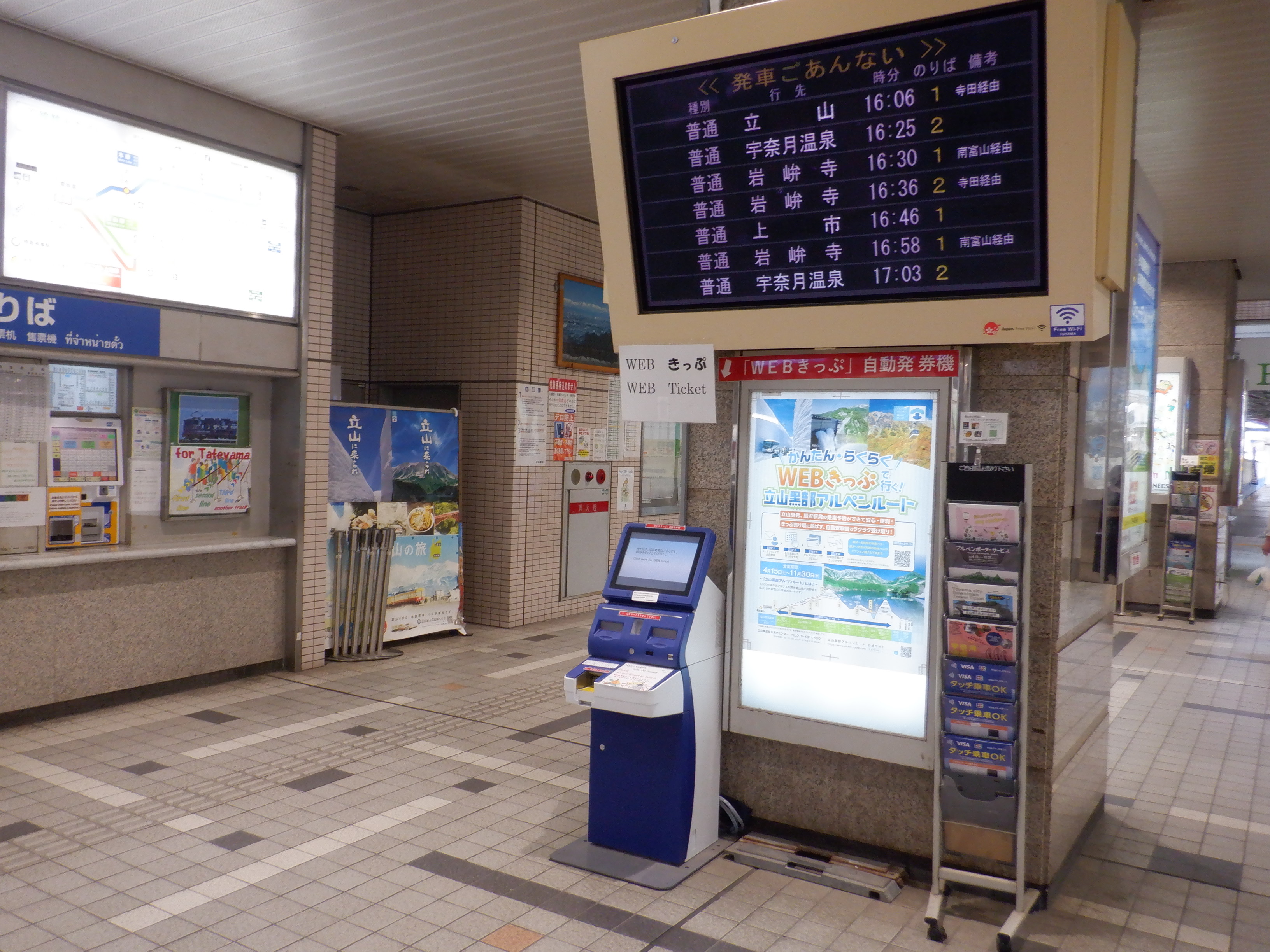 アルペンルートの券売機や窓口、手荷物回送サービスの案内から冬が近づいたことが分かります。