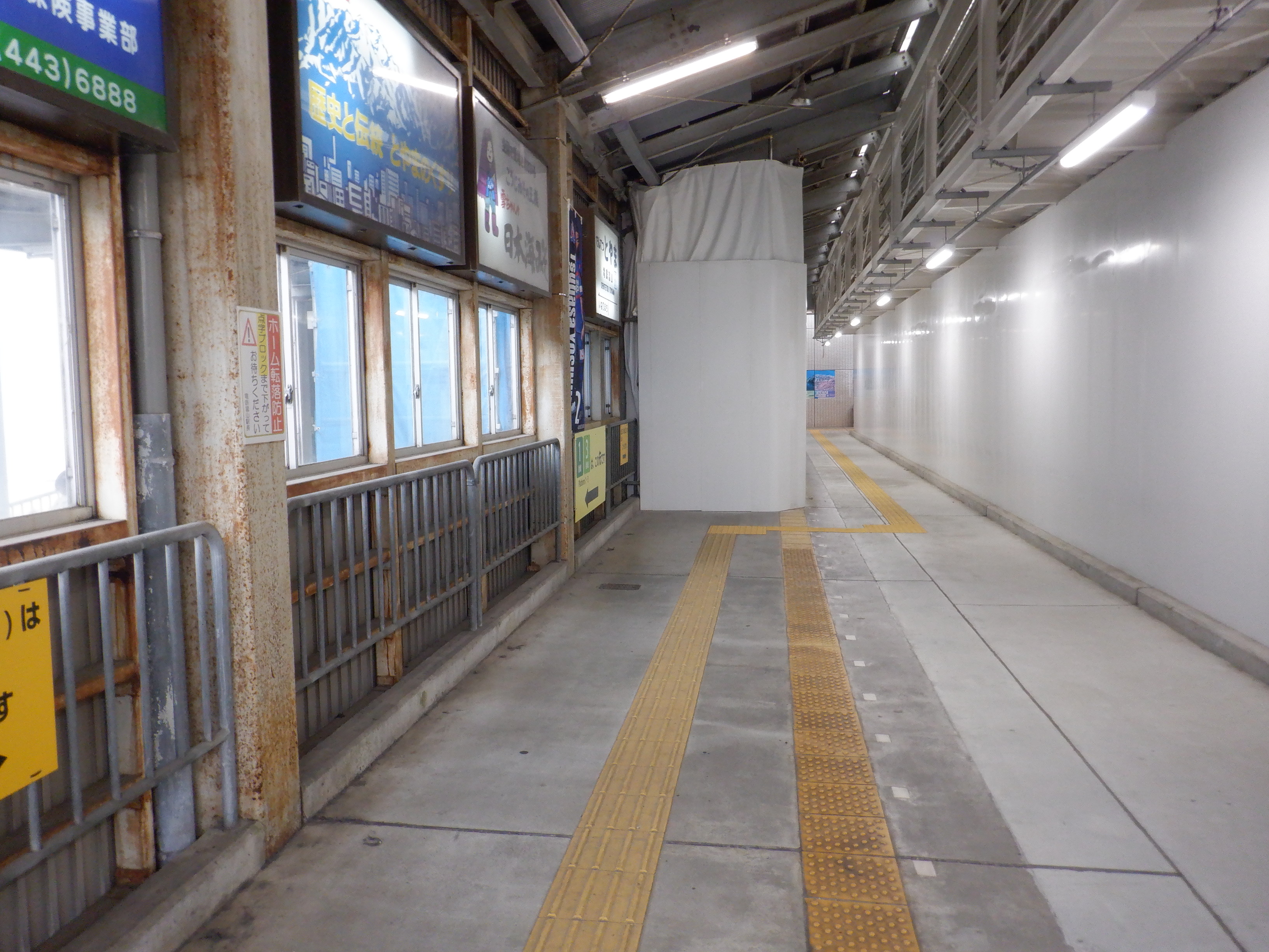 改札内に入って1番のりばへの通路から。この先、仮設改札口となるところを通っています。