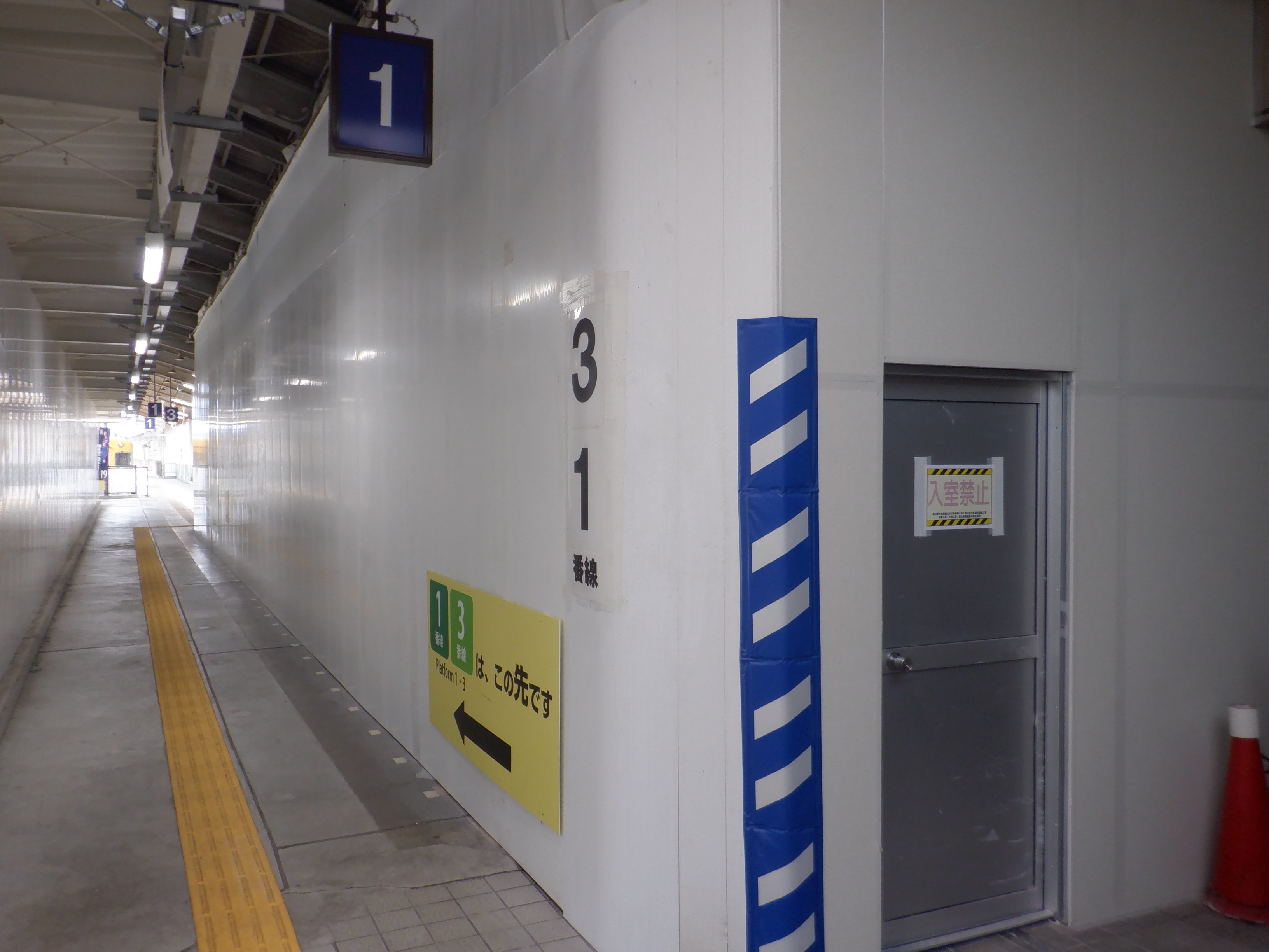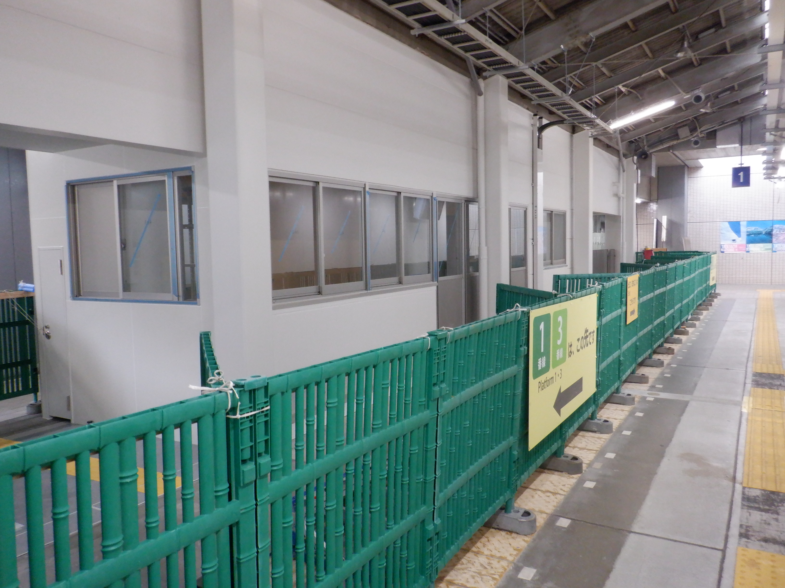 1番のりばの端に囲いがされました。ここがこの後仮設改札口になるところです。