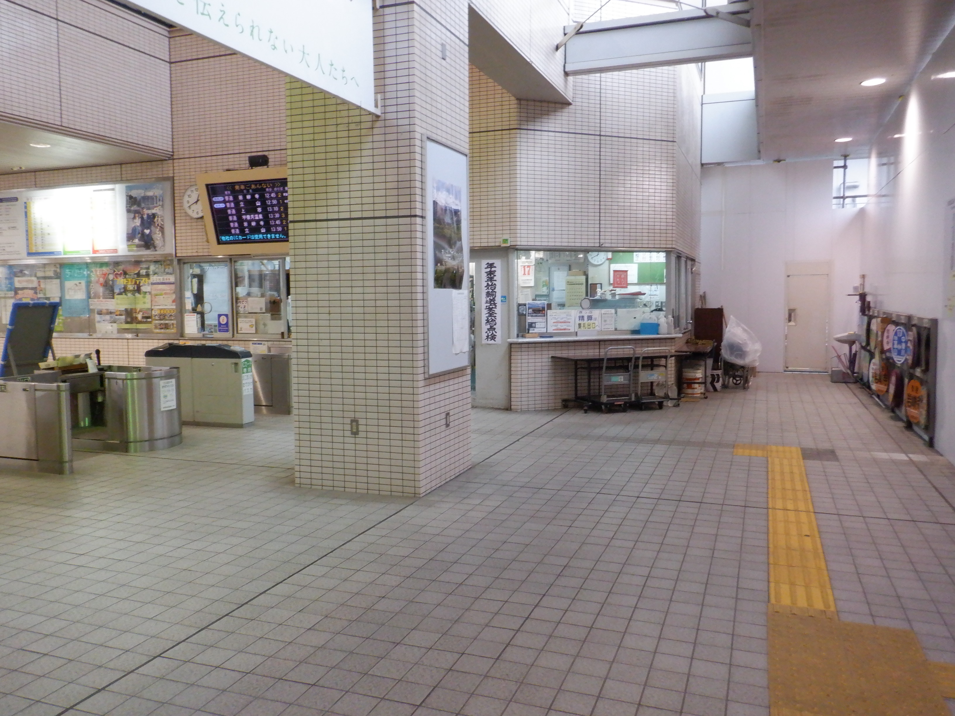 工事の流れで一旦待合室が使用中止になり、駅に入ってすぐの店舗跡が待合室となるようです。その直前(2日前)の様子です。