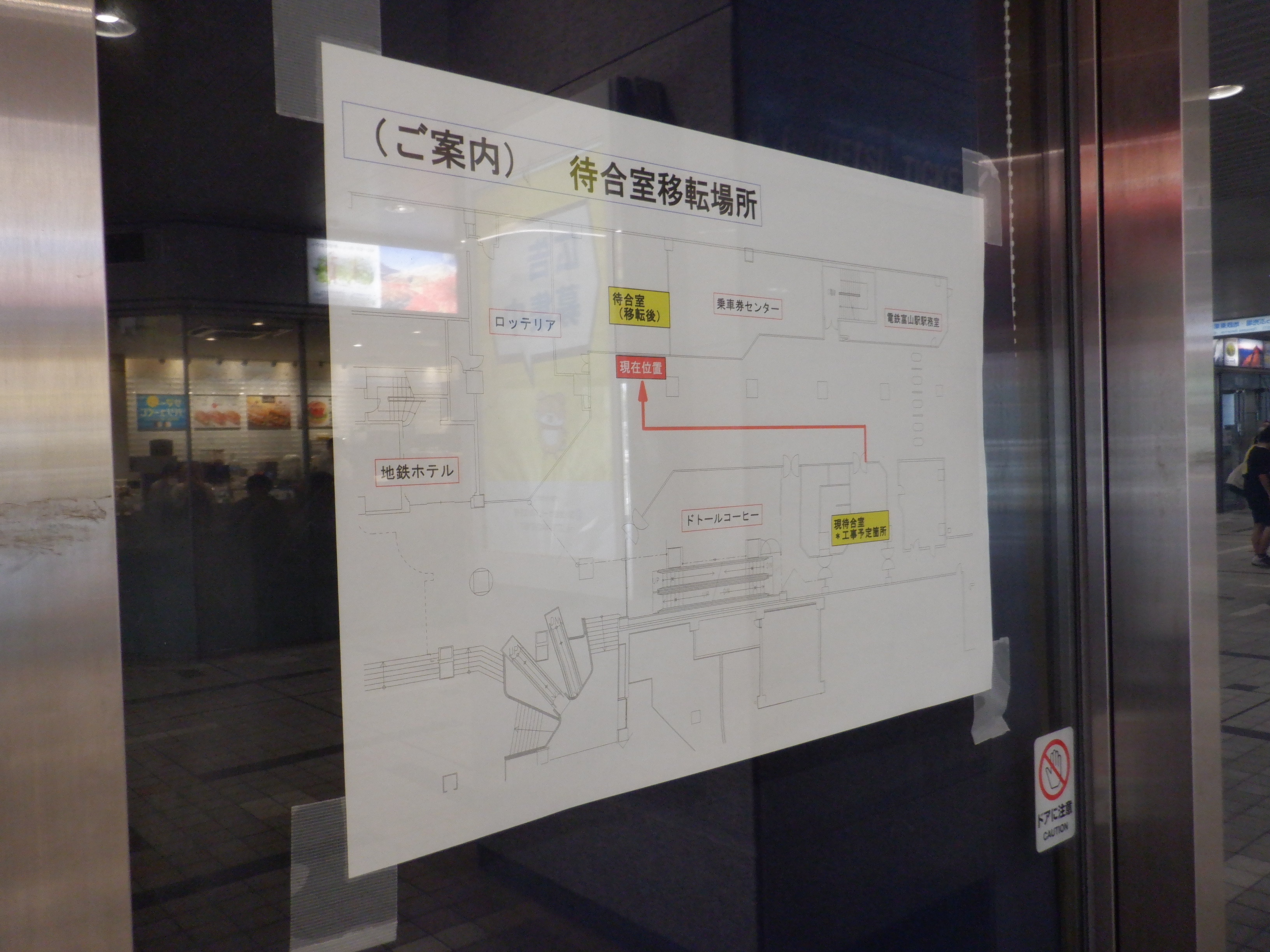 工事中だった待合室の囲いが取れていました。少し狭くなった待合室を見ることができました。
