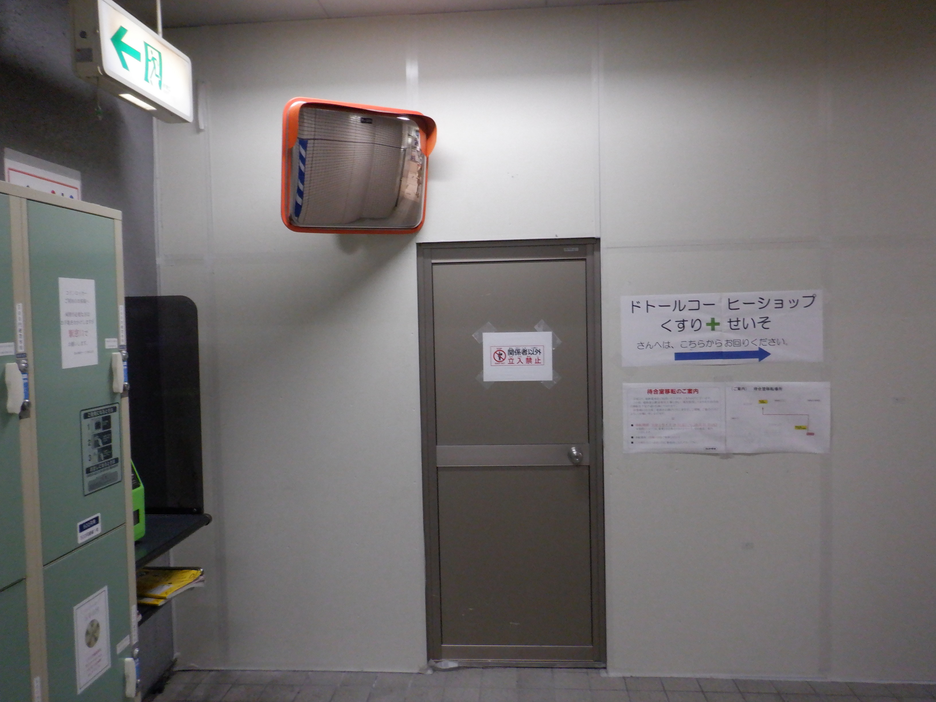 トイレへ向かう通路になり、狭くなったためミラーが付けられました。