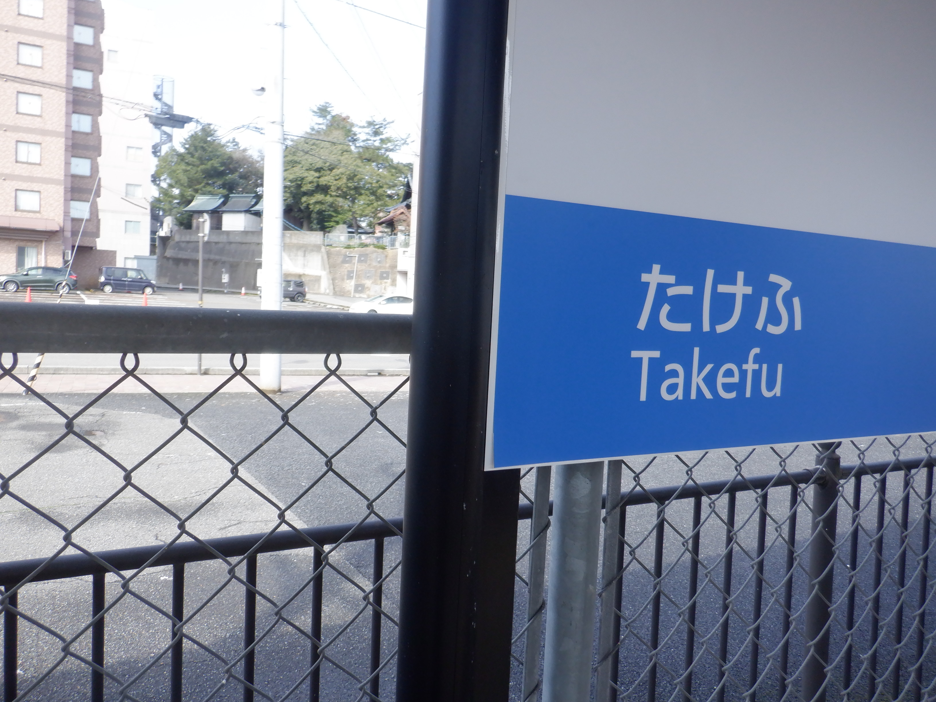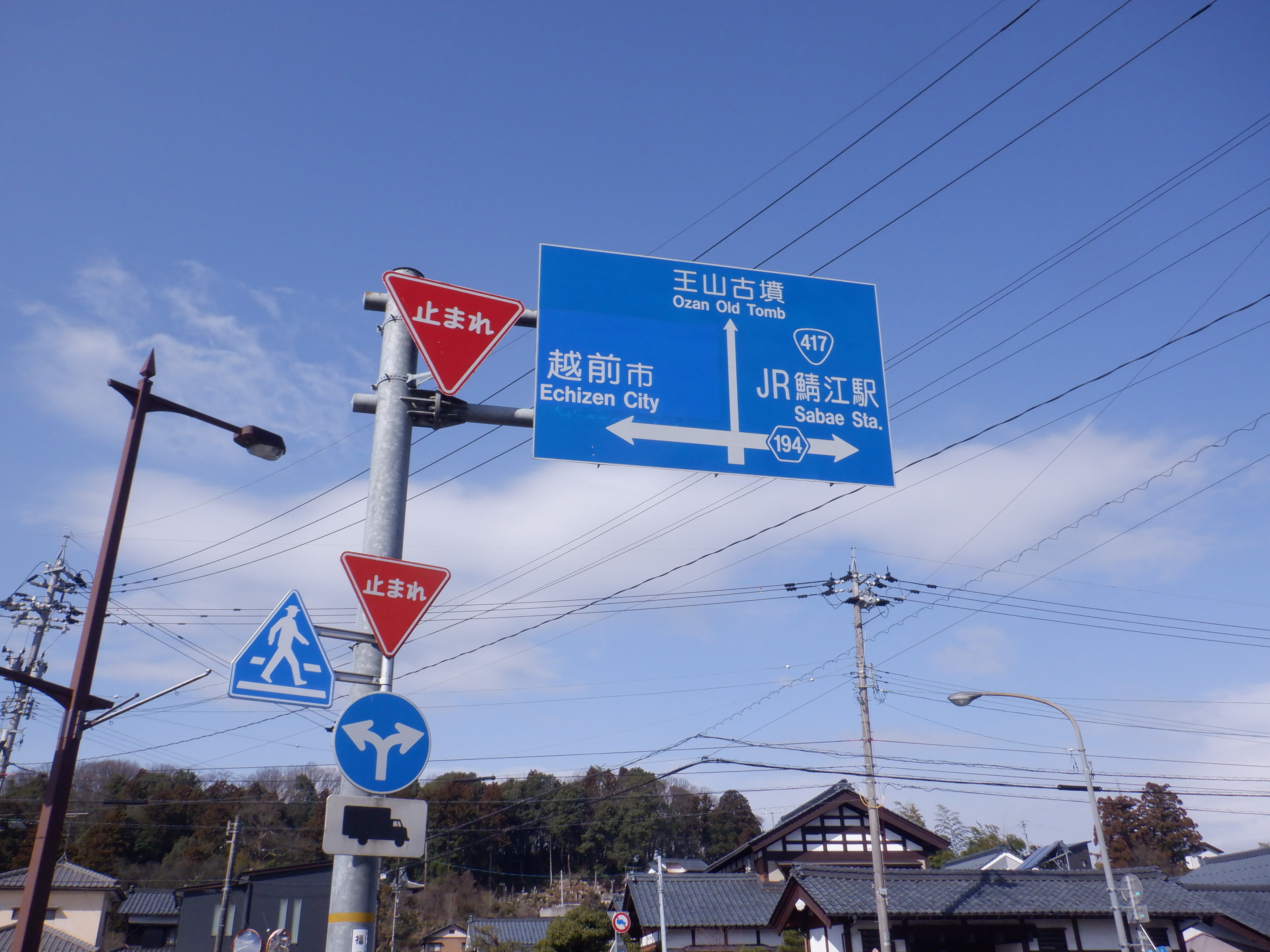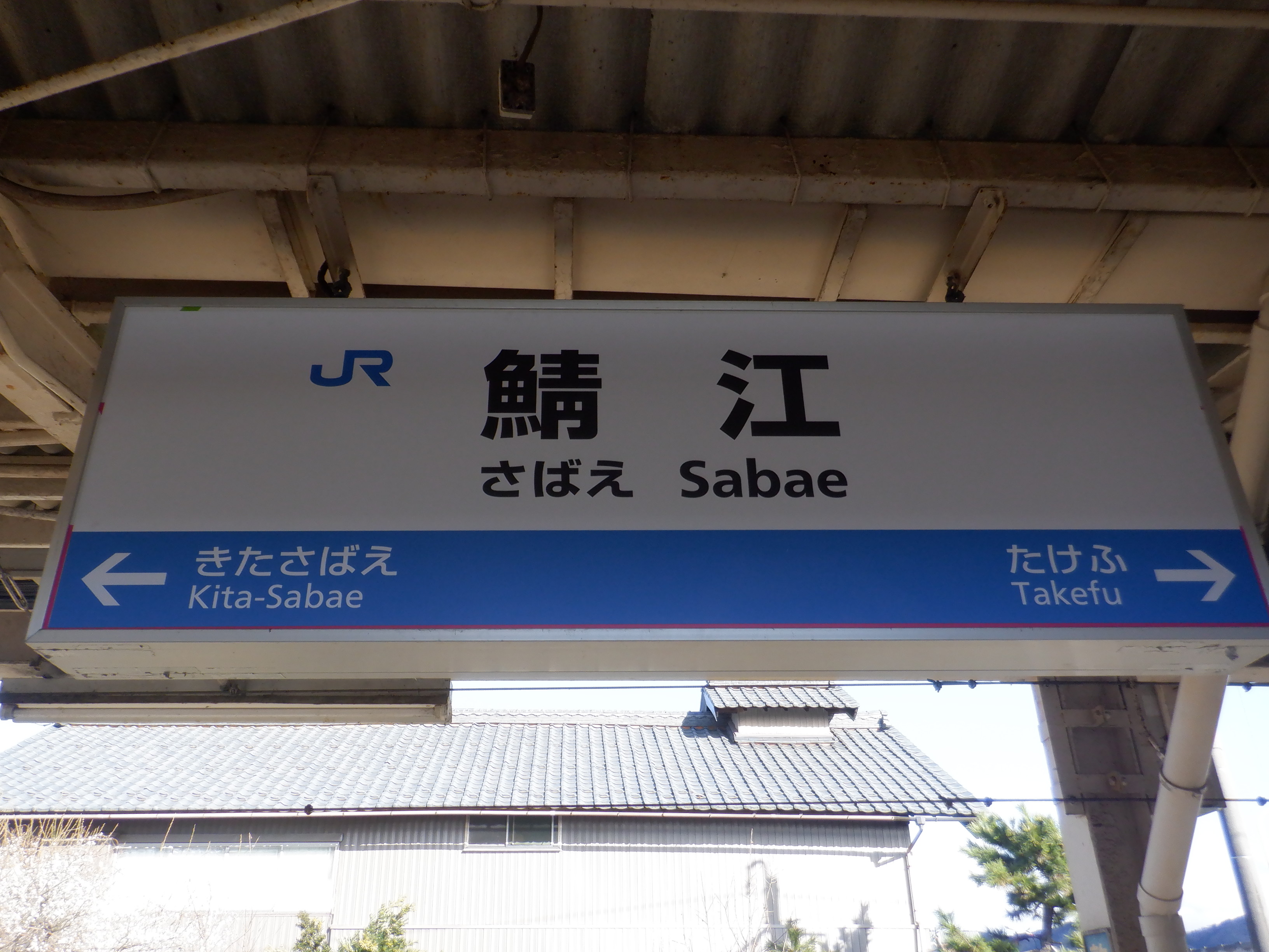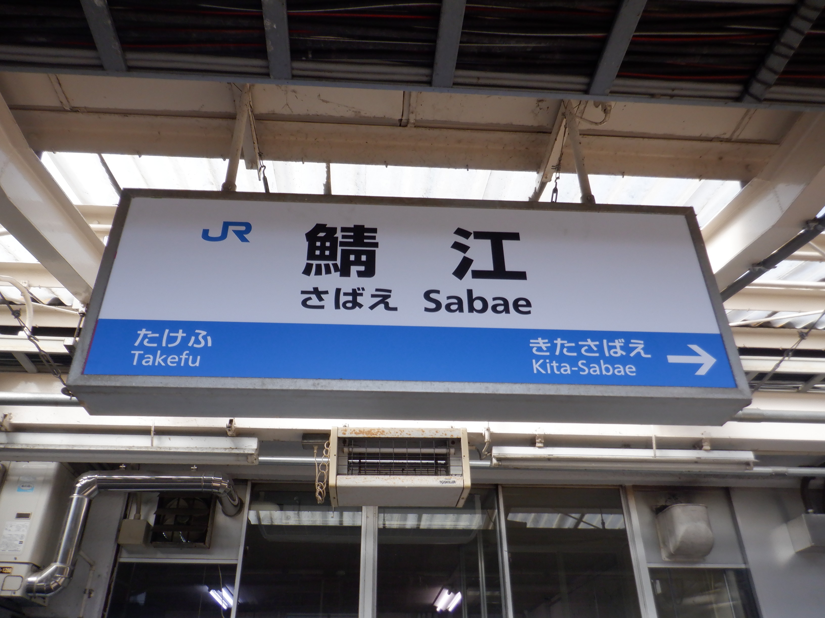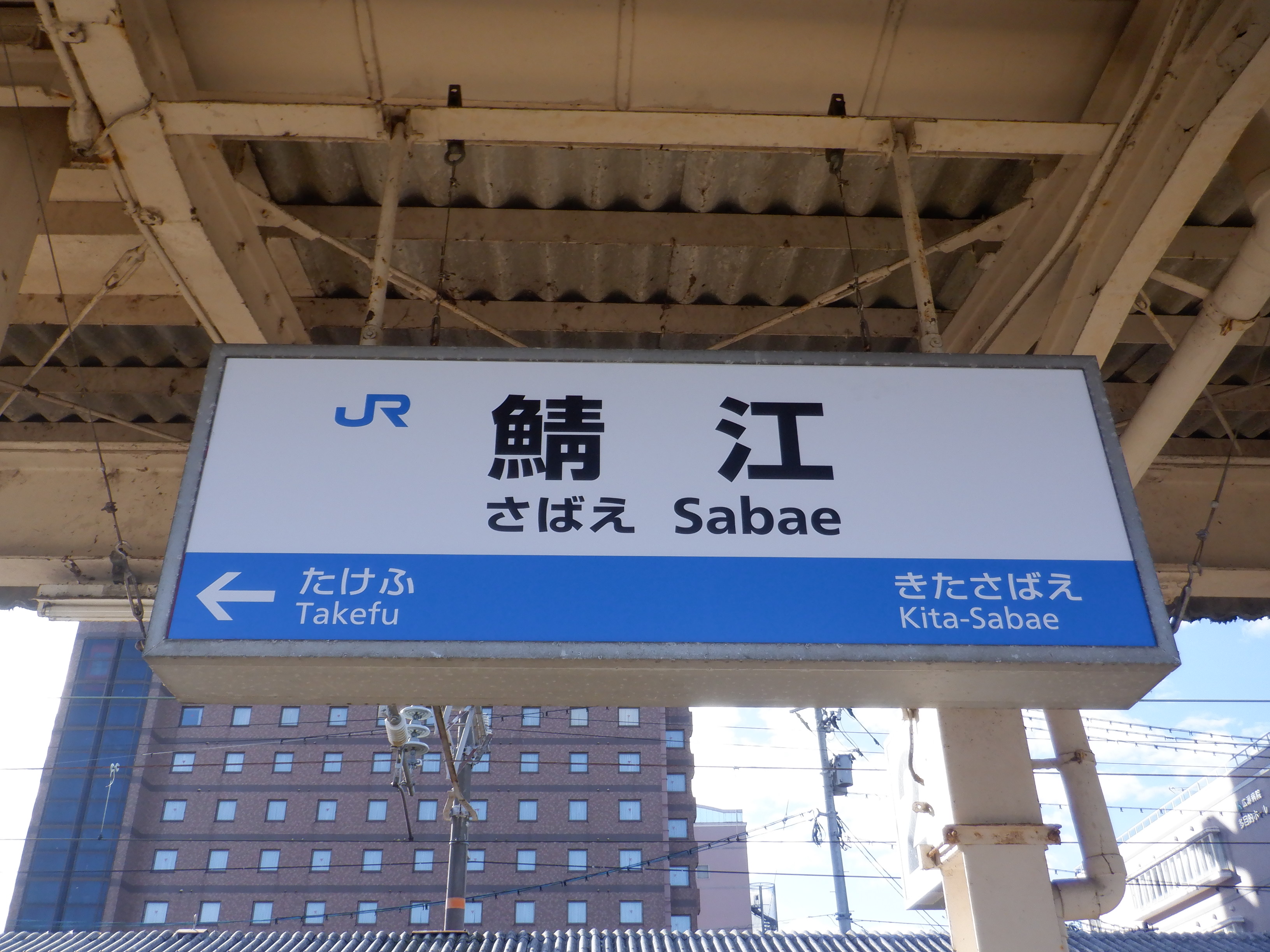武生駅側の踏切近くから。JR鯖江駅の案内になっています。