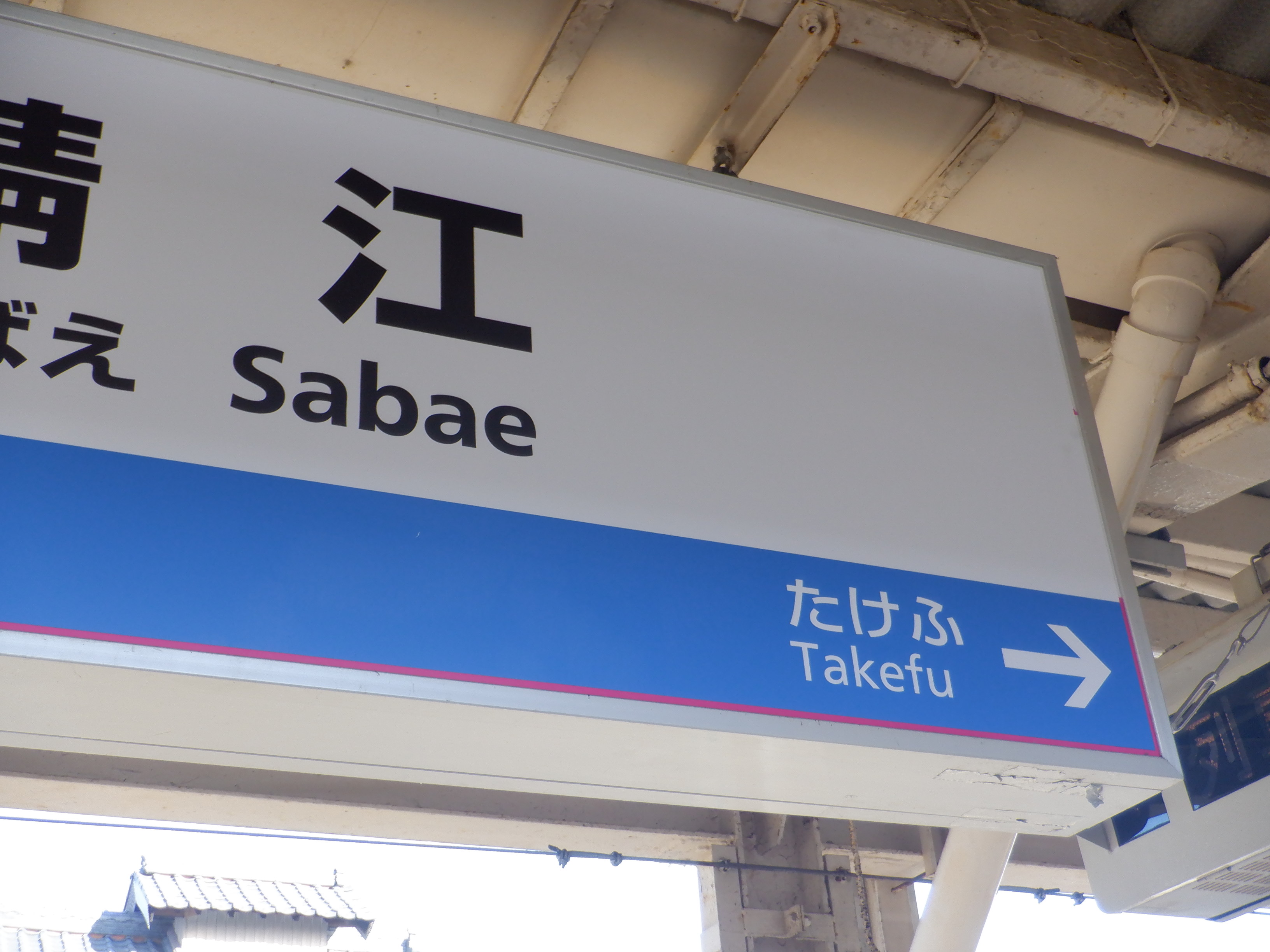武生駅側の上屋の駅名標。