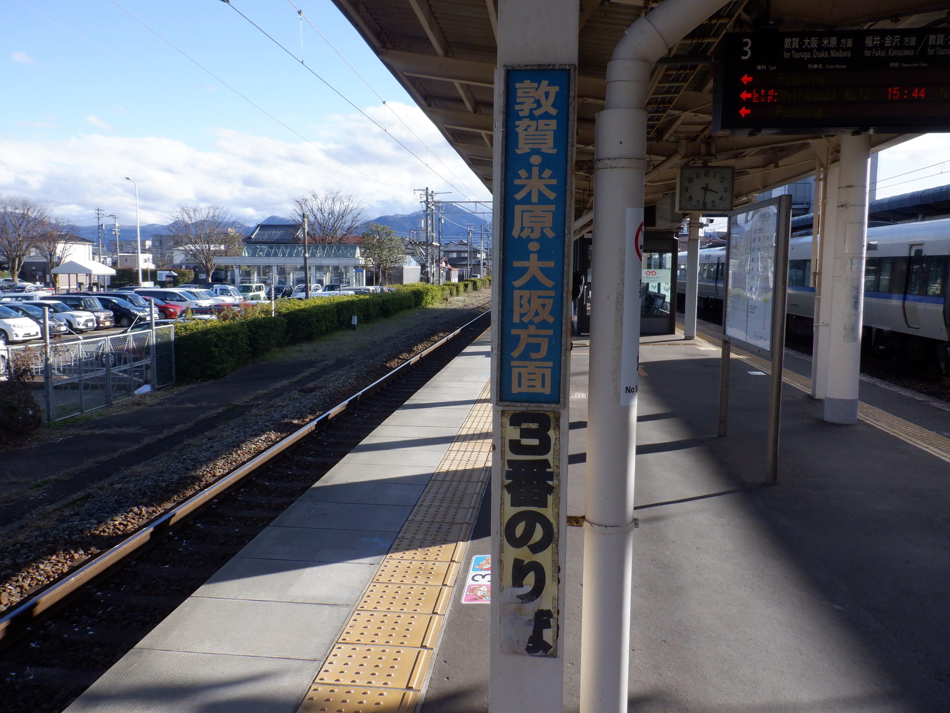 3番のりば武生駅側の特急列車の乗車位置案内。