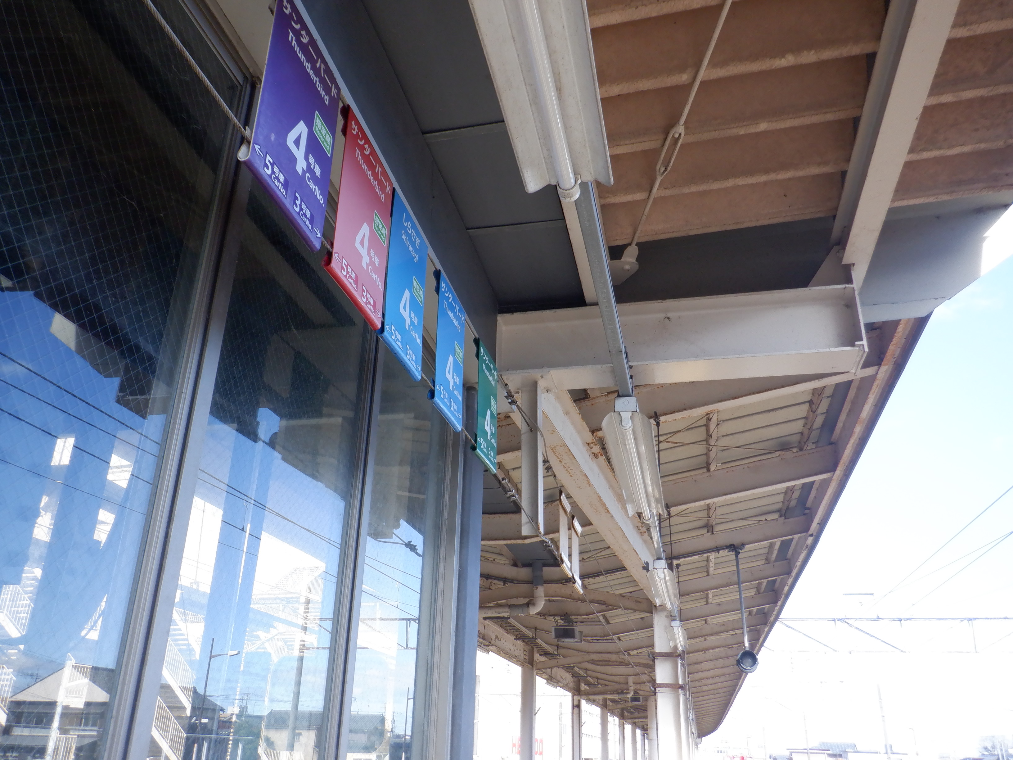 1番のりばから見た2・3番のりばの柱の番線標。