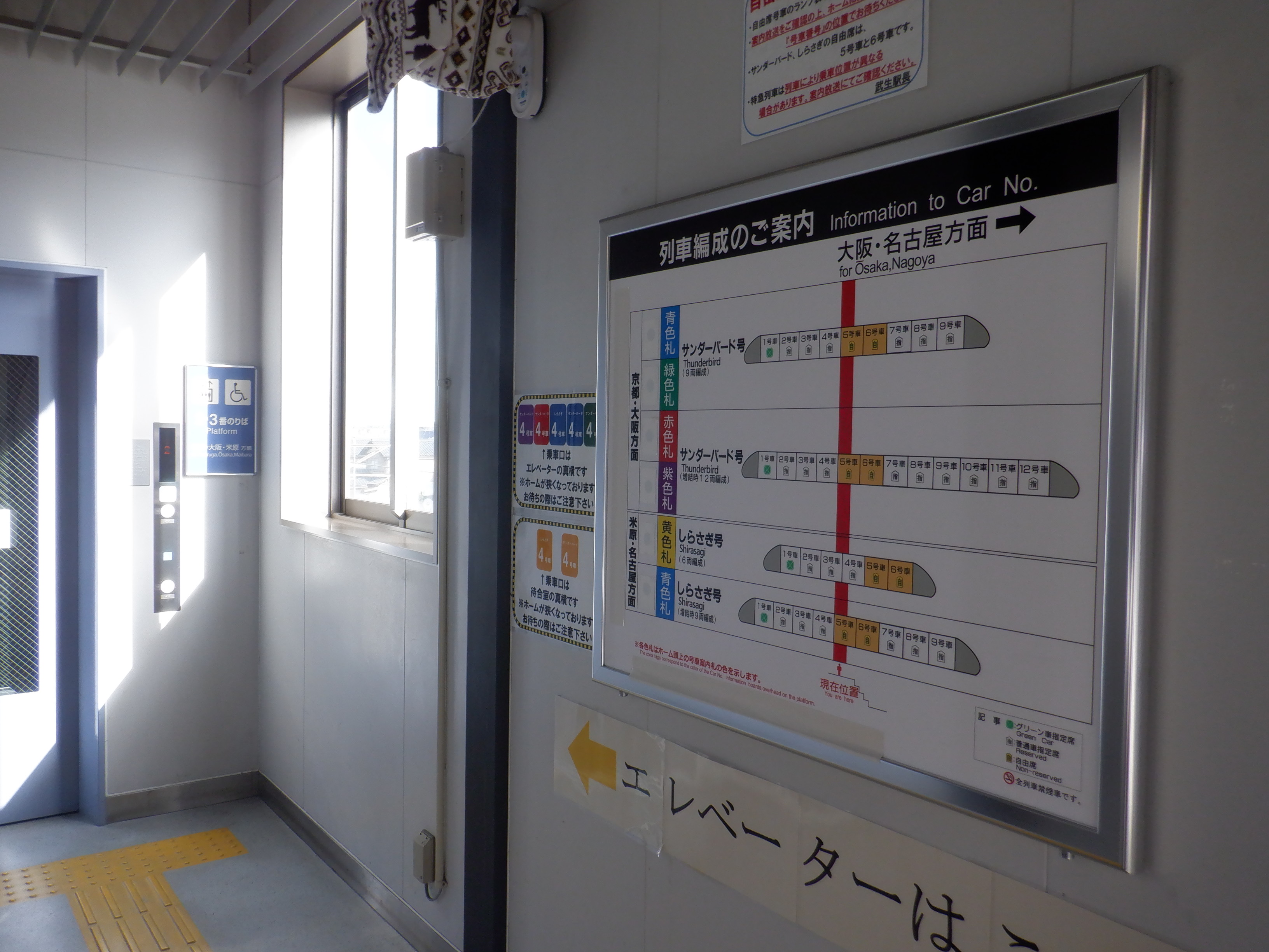 跨線橋内特急列車の乗車位置案内。