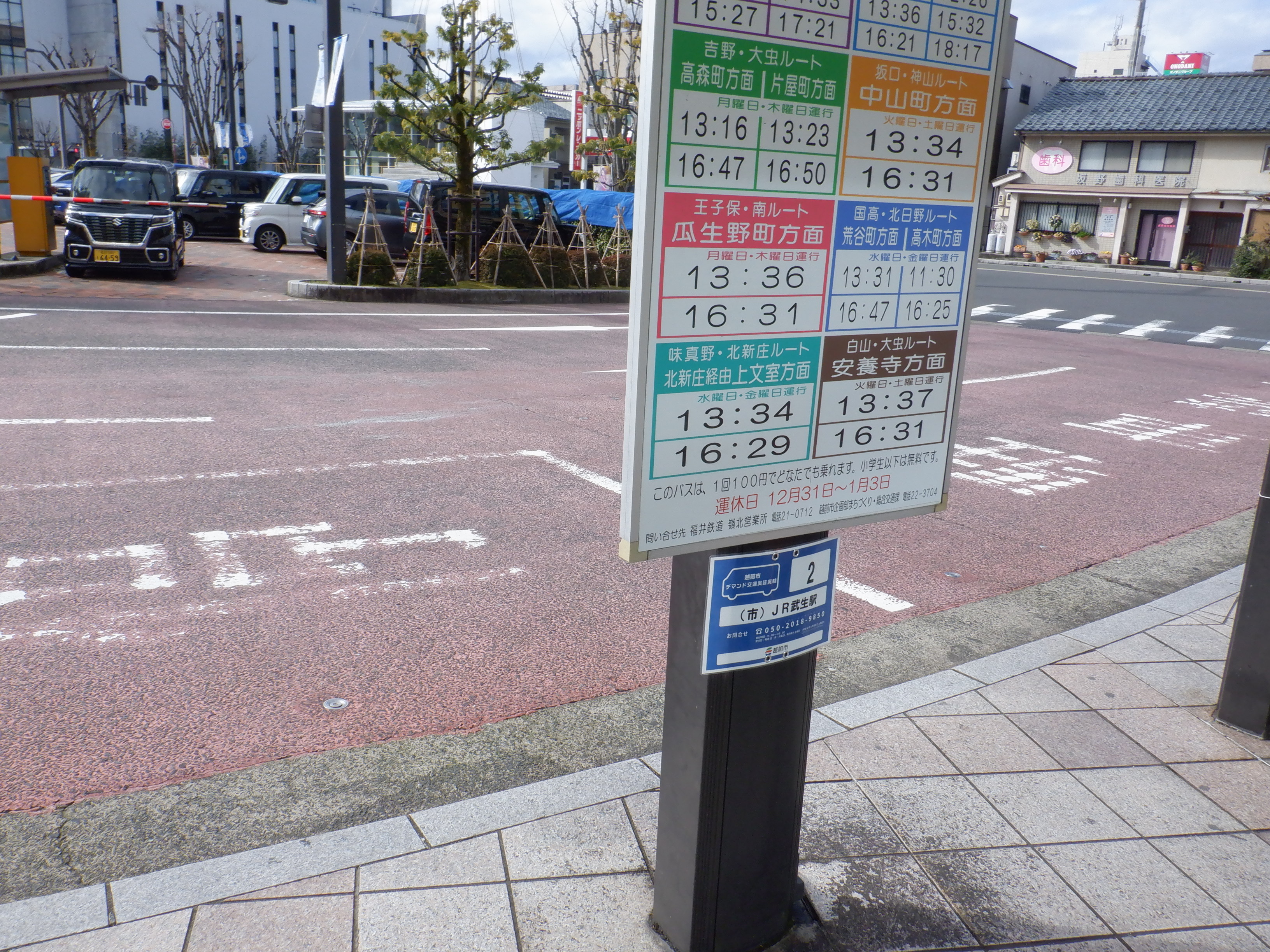 市民バスの他に乗合タクシーも「JR武生駅」の名前になっています。