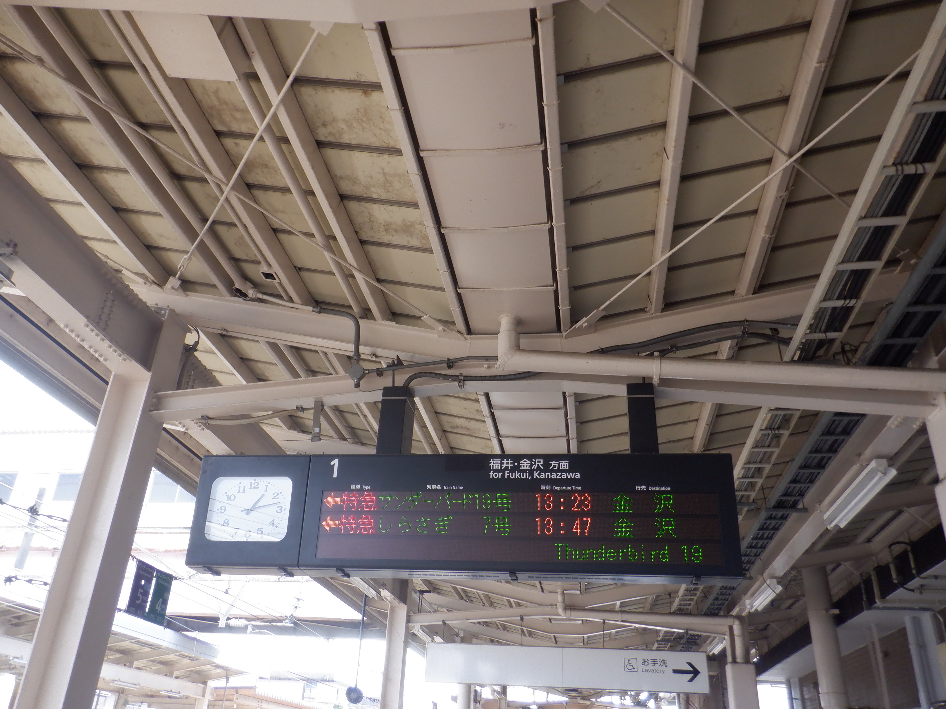 改札口の発車標も「北陸線」の部分が隠されていました。