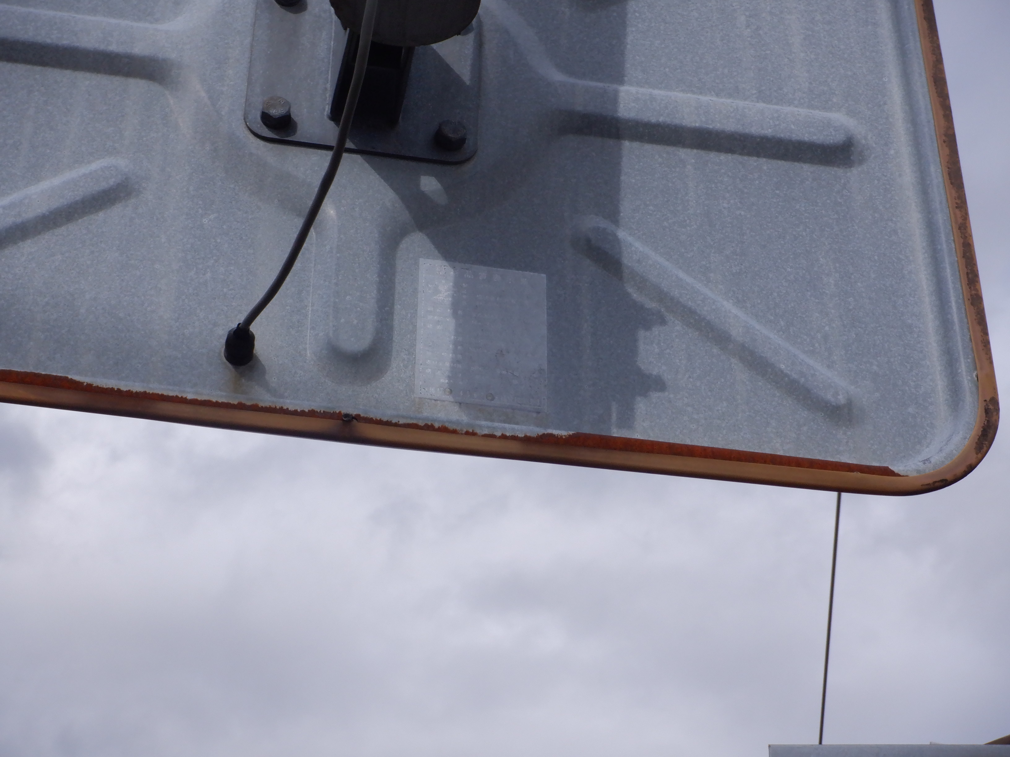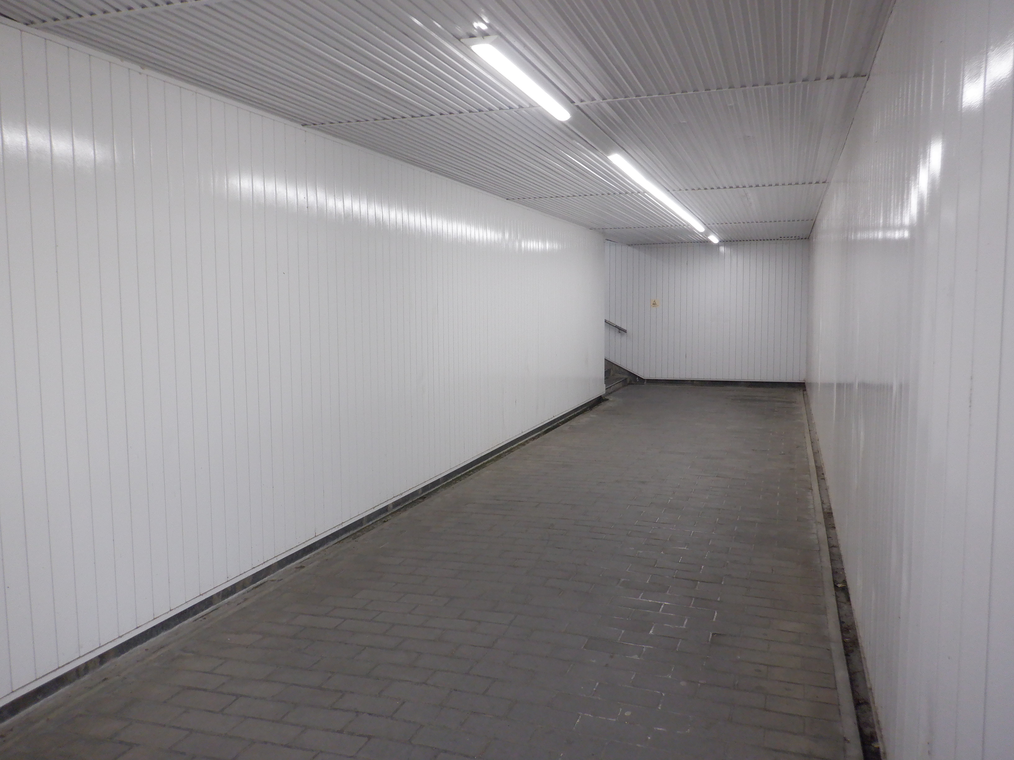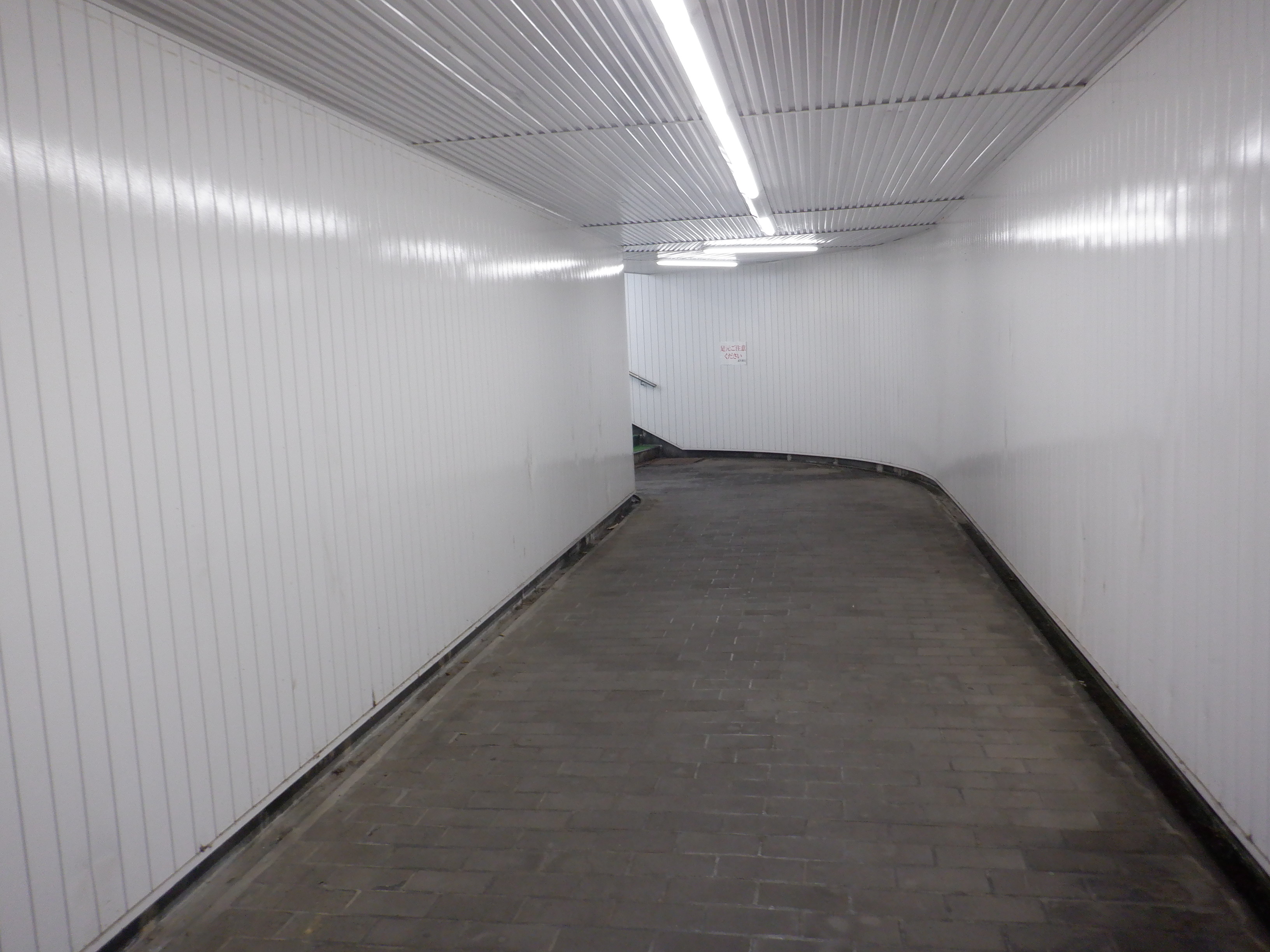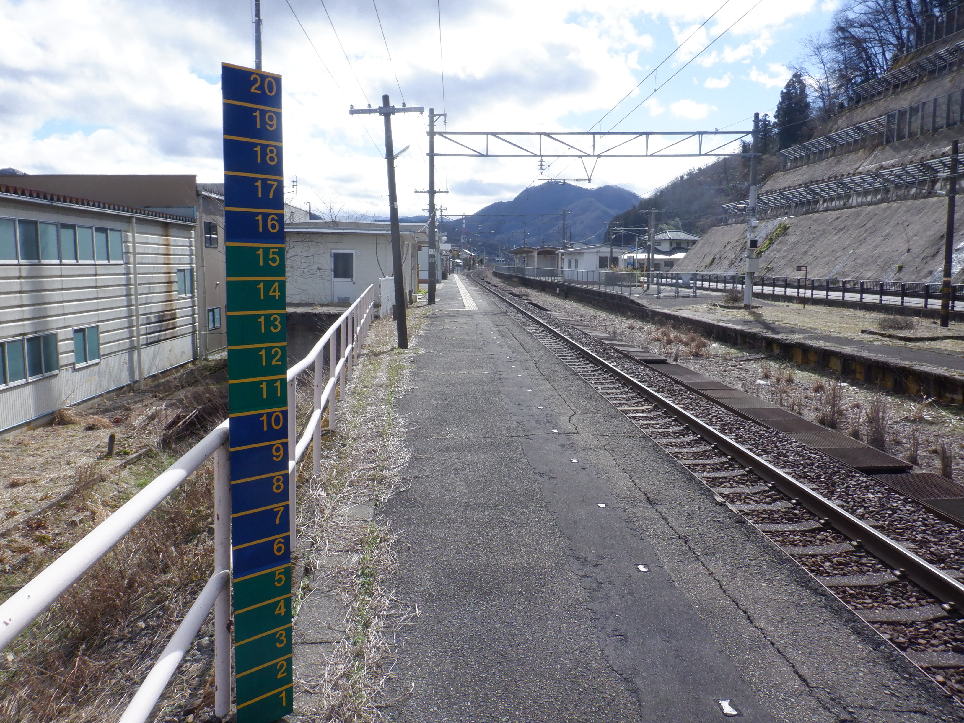 再び駅に入り、階段の横、通路上屋の資産標とそこにある温度計。