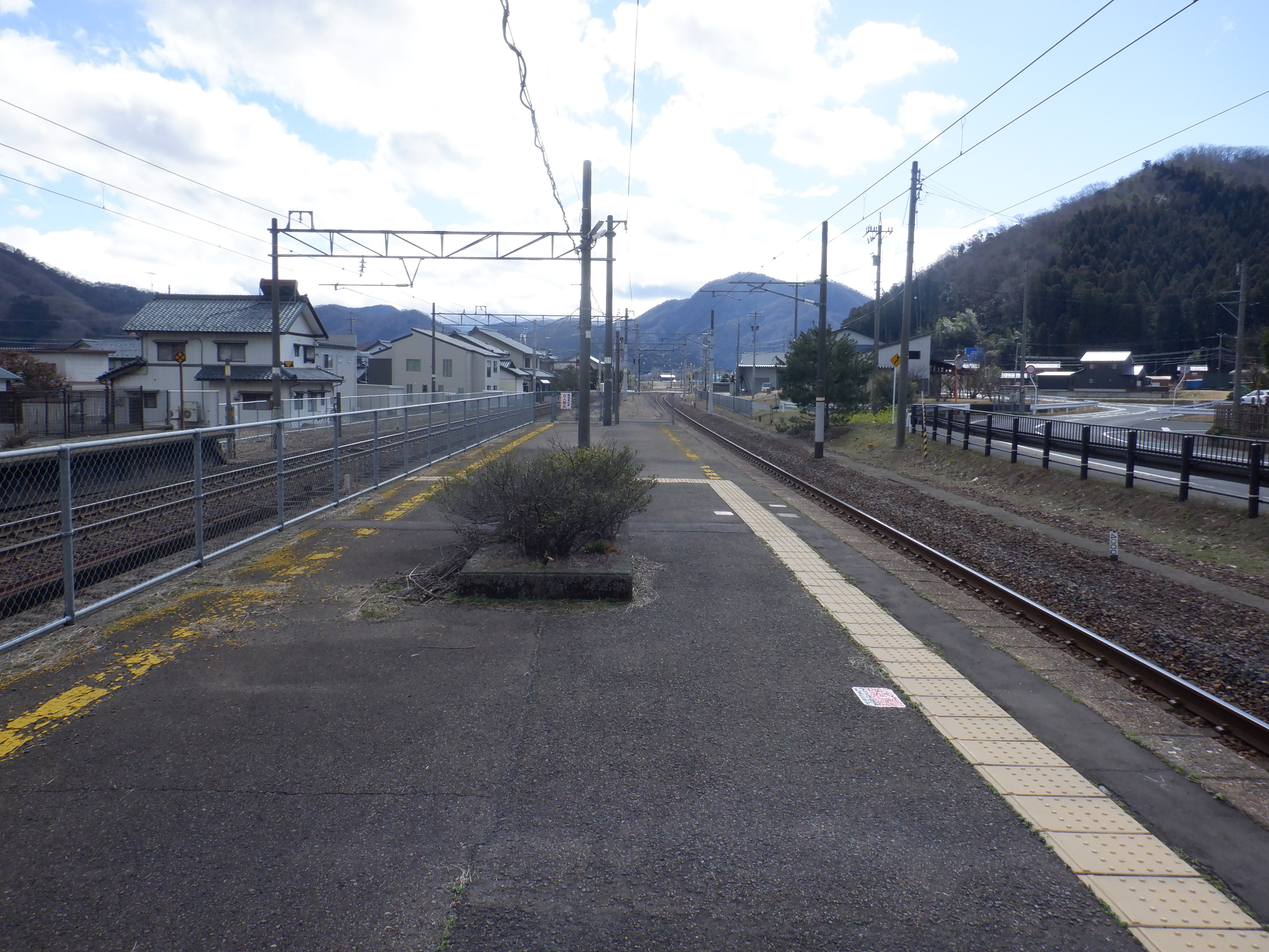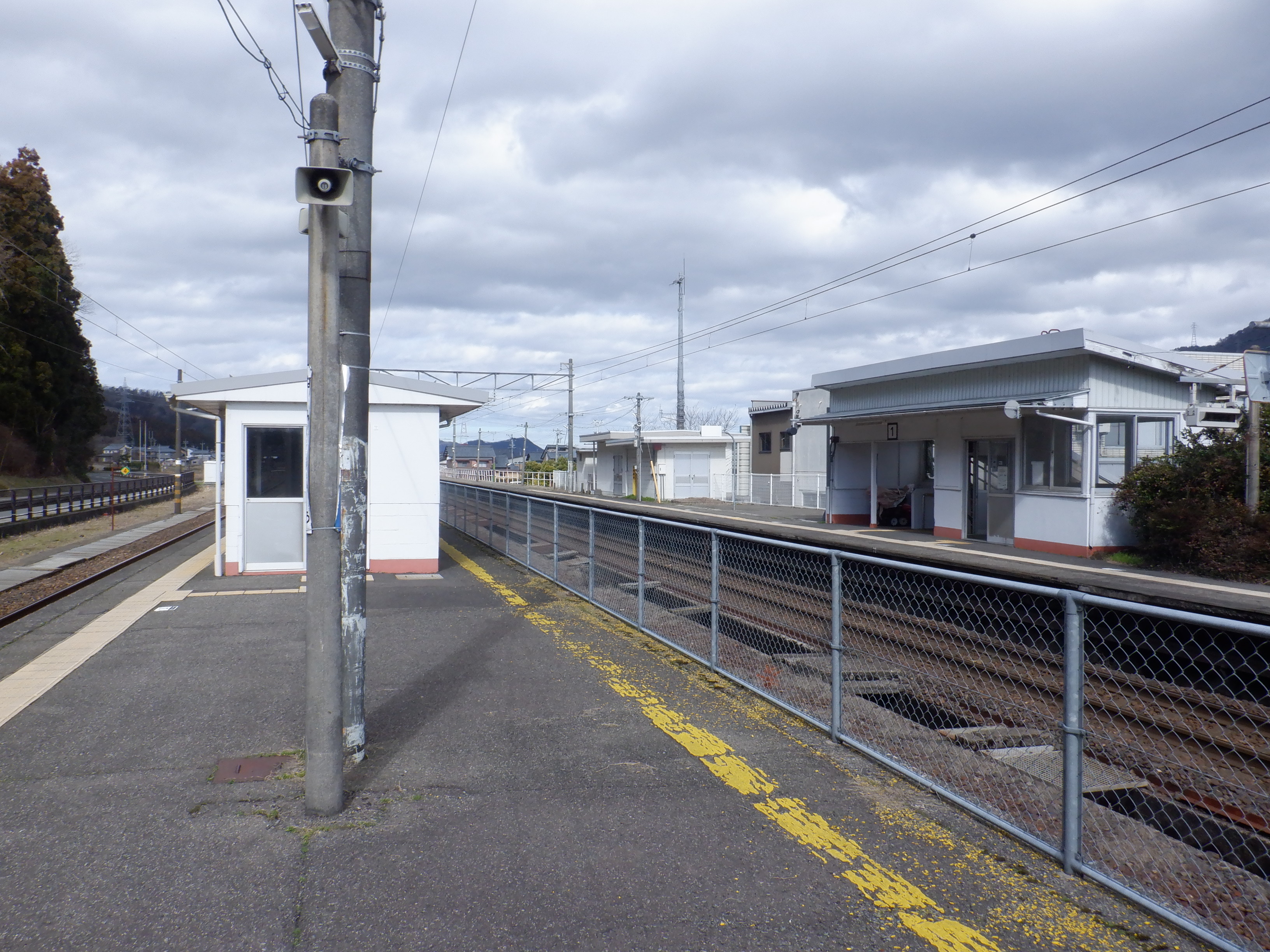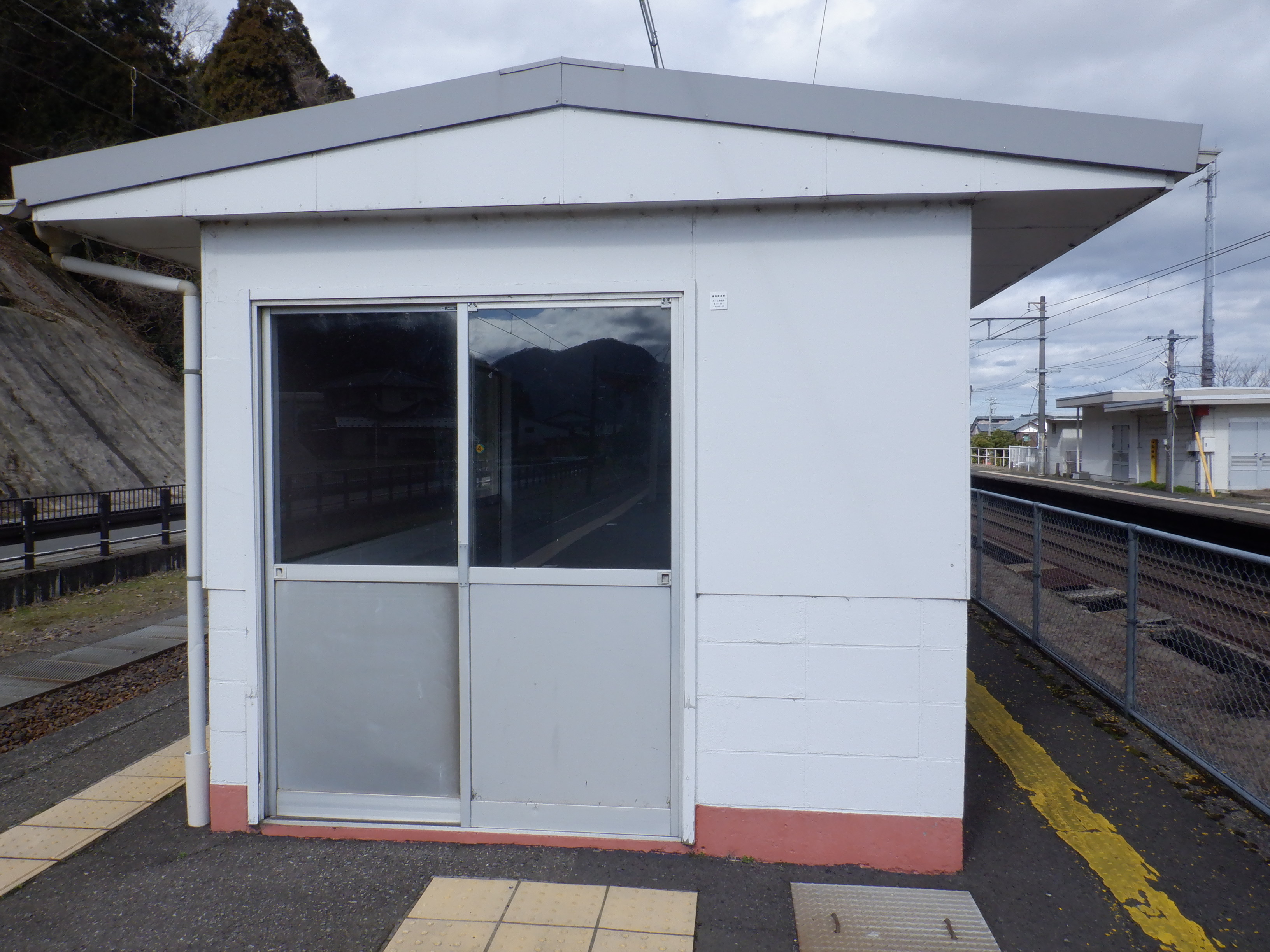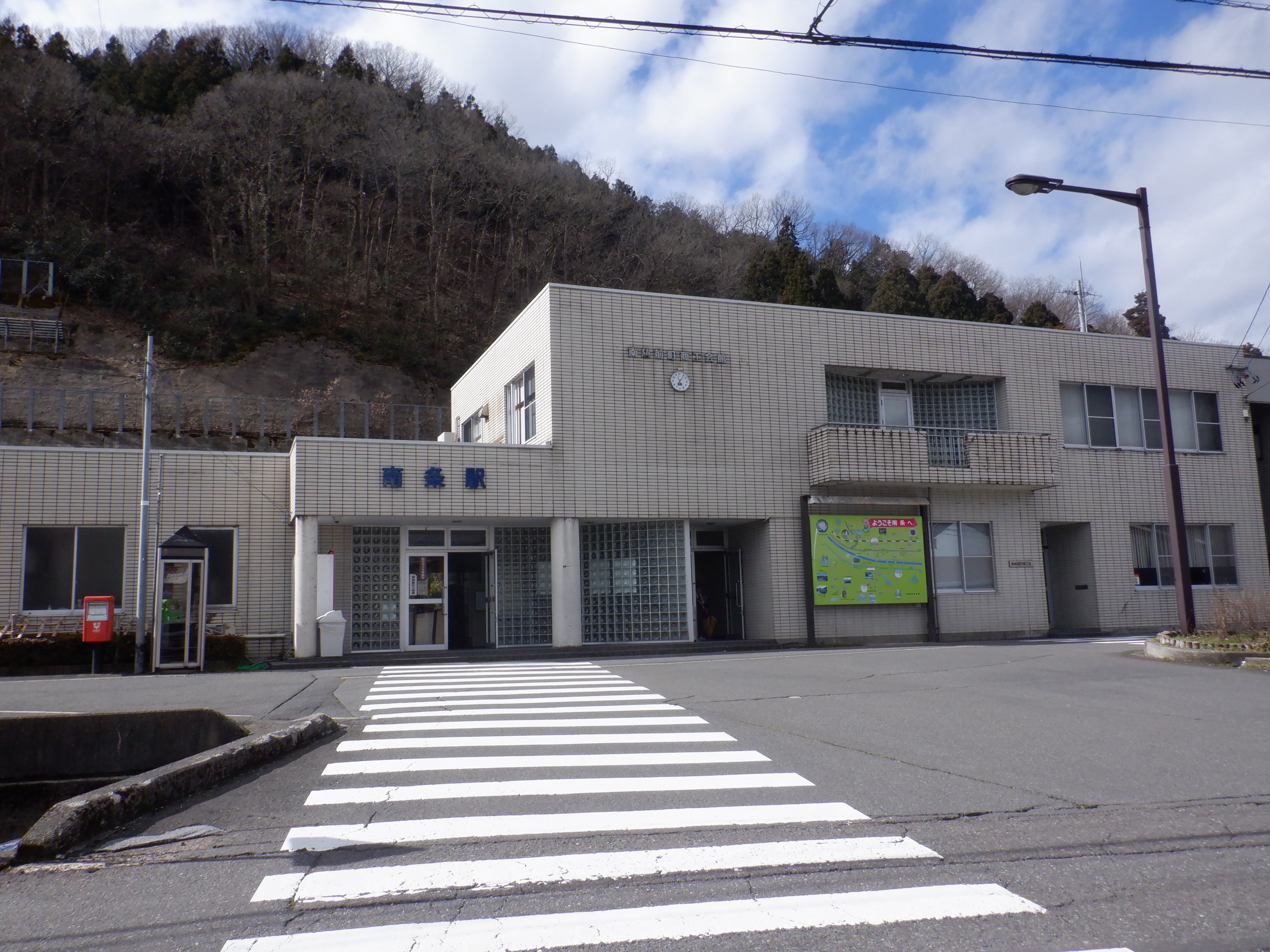 南条駅の2024年移管前2回分の様子です。移管後に使用される券売機が設置され、また、ハピラインふくいの駅名標の上に仮のJR駅名標が貼られた状態となりました。