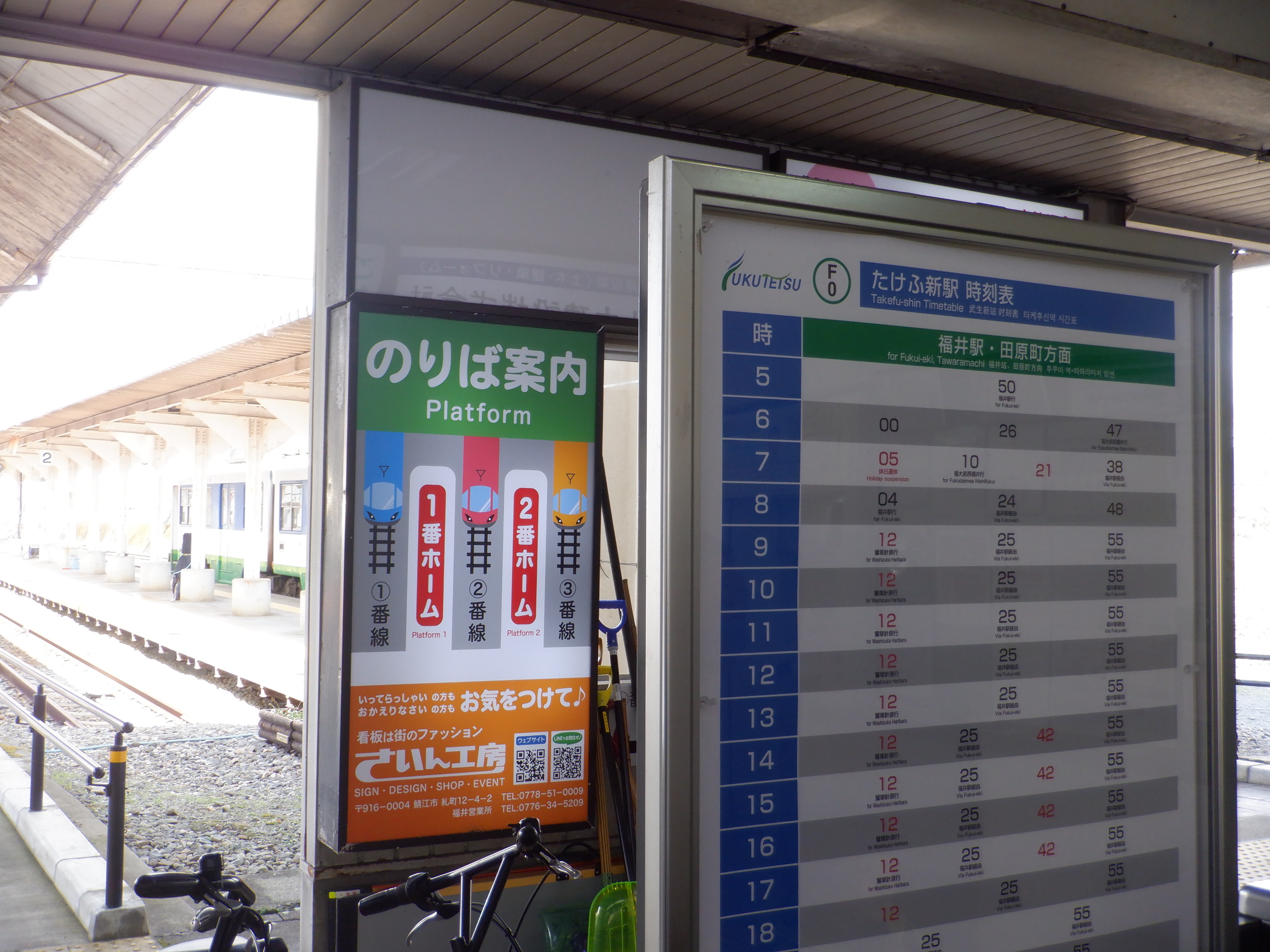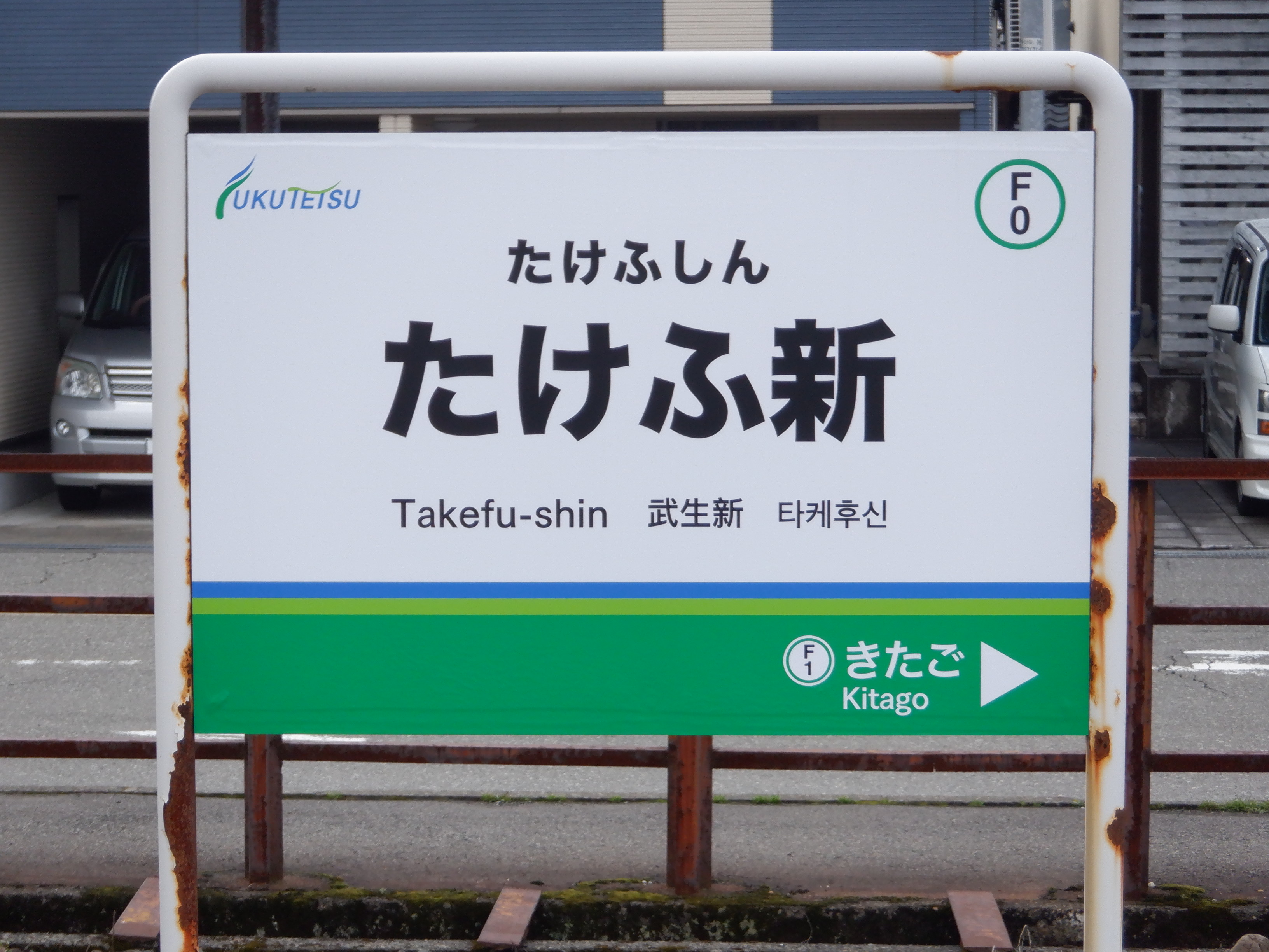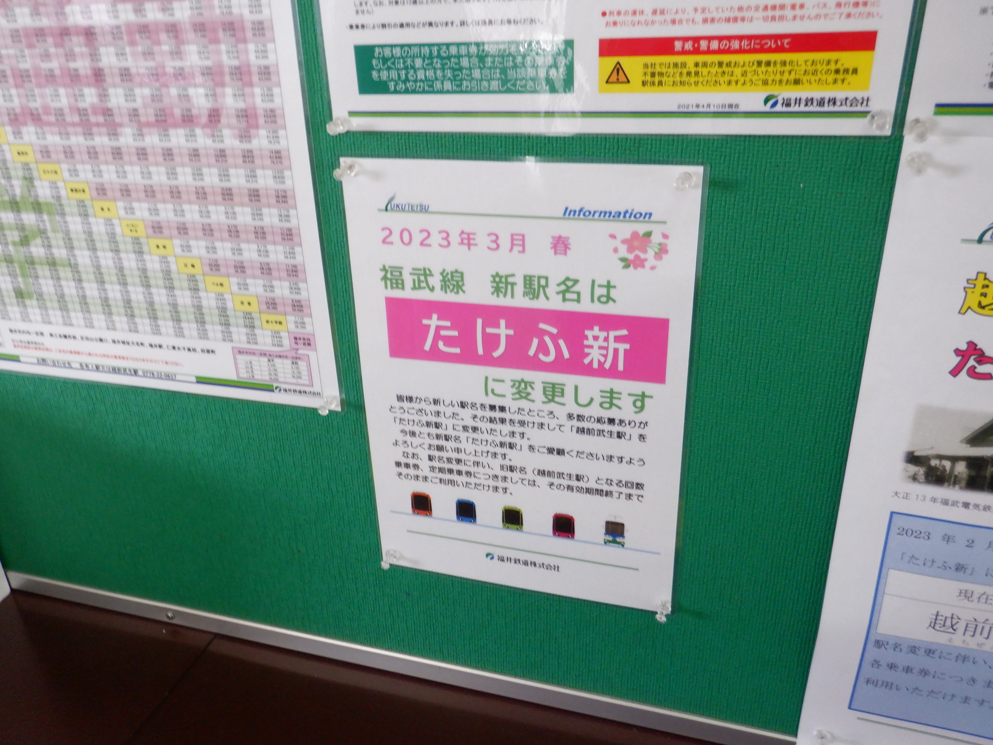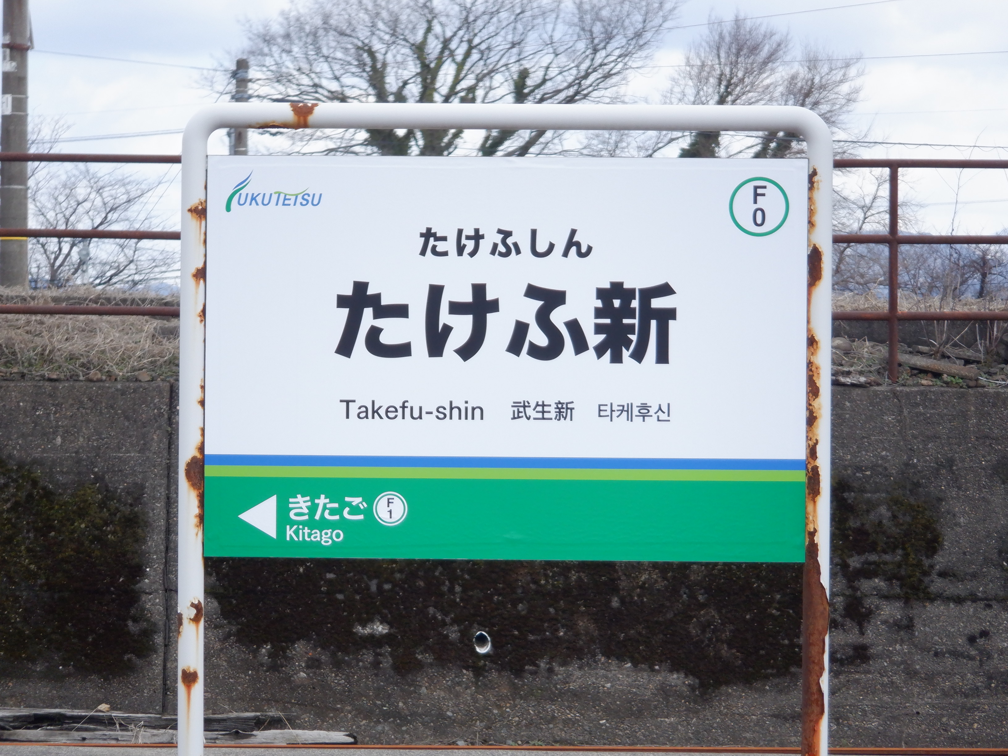 改称を2日前に控えていますが、駅名標は既に「たけふ新」に変わっていました。他は特に変わっていませんでした。