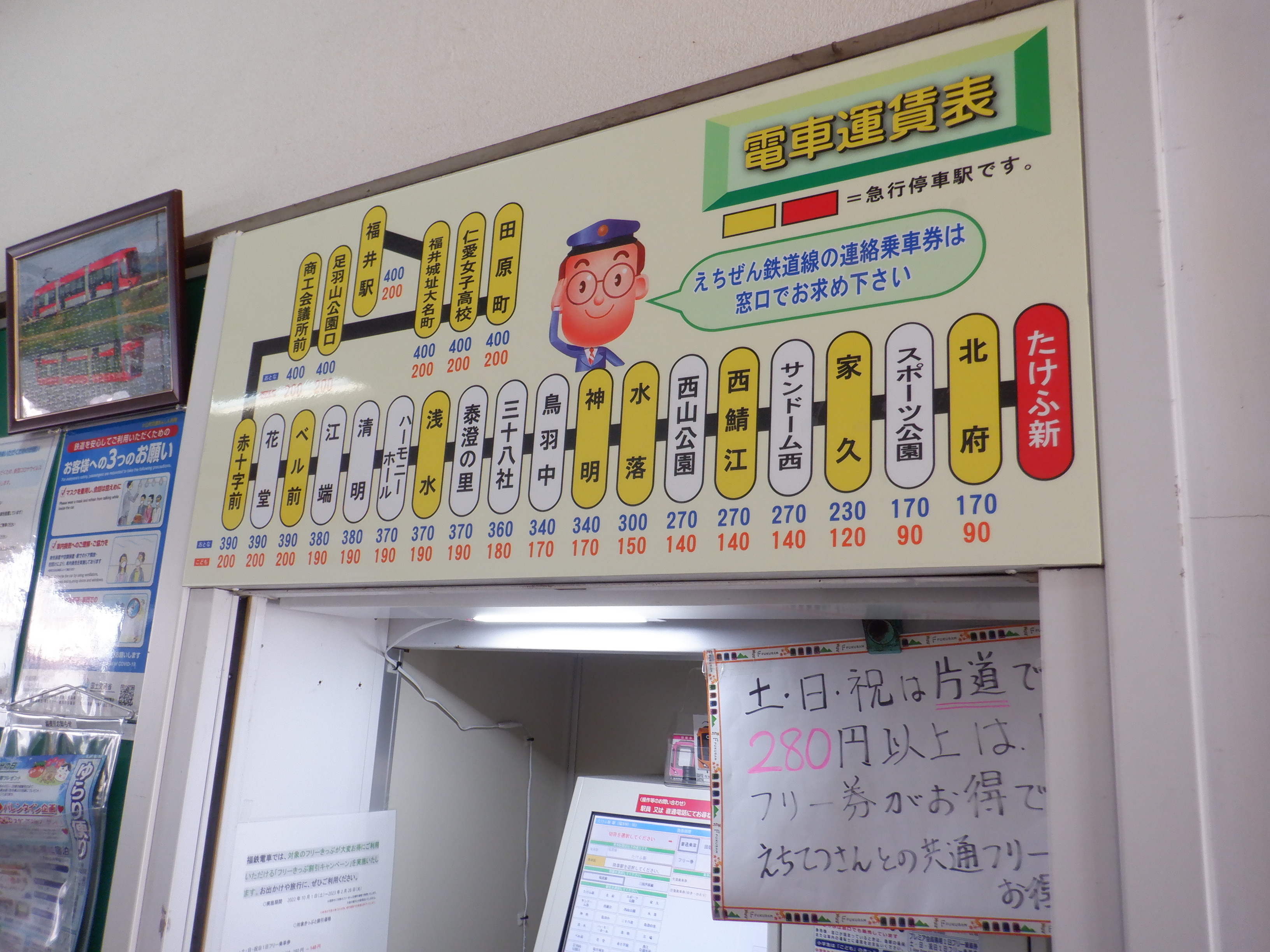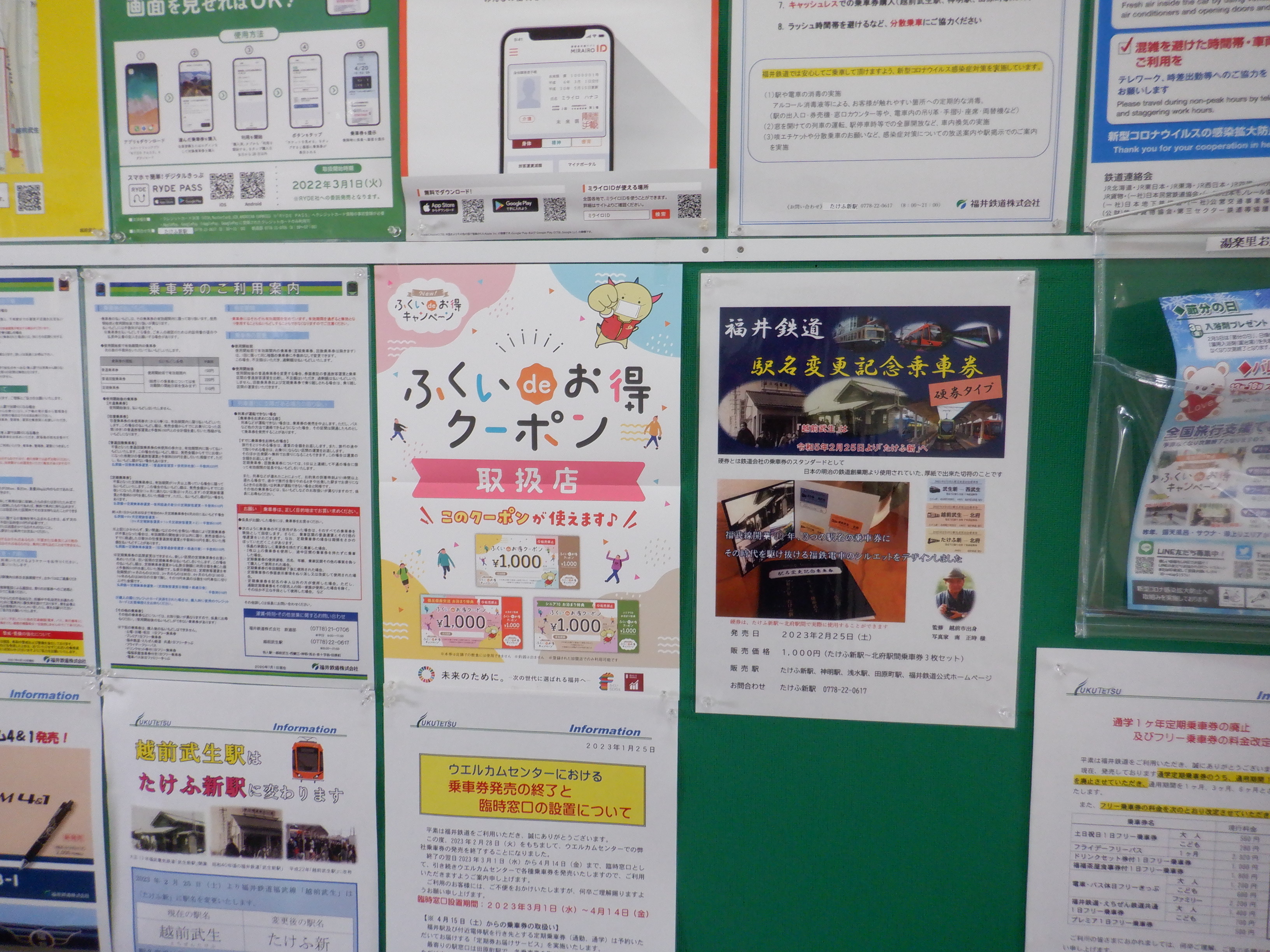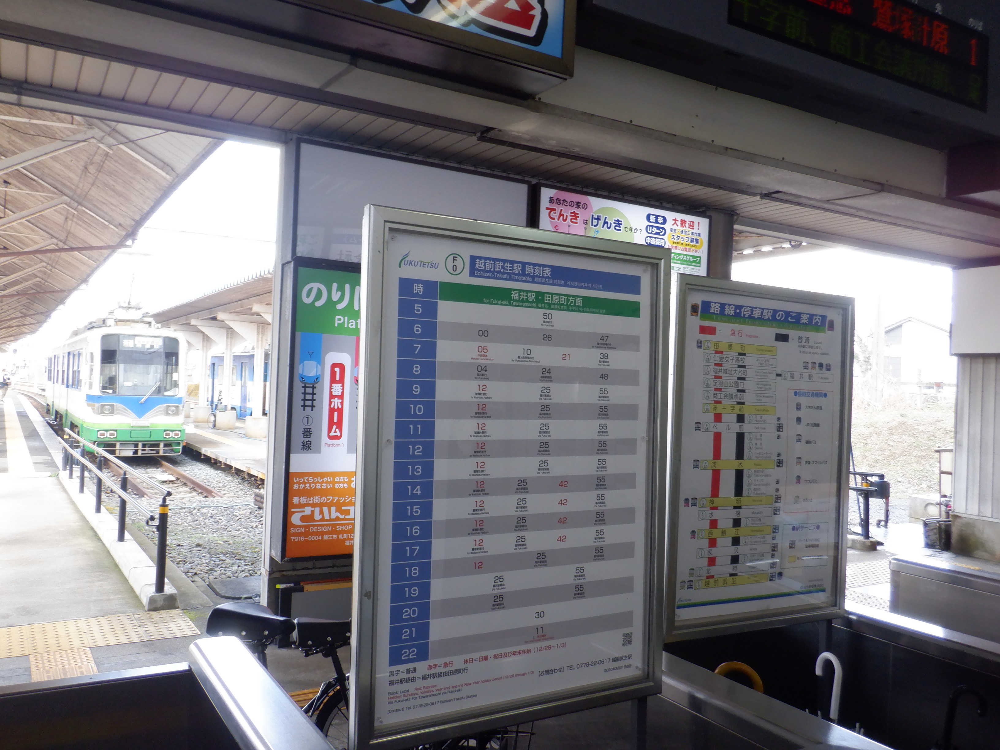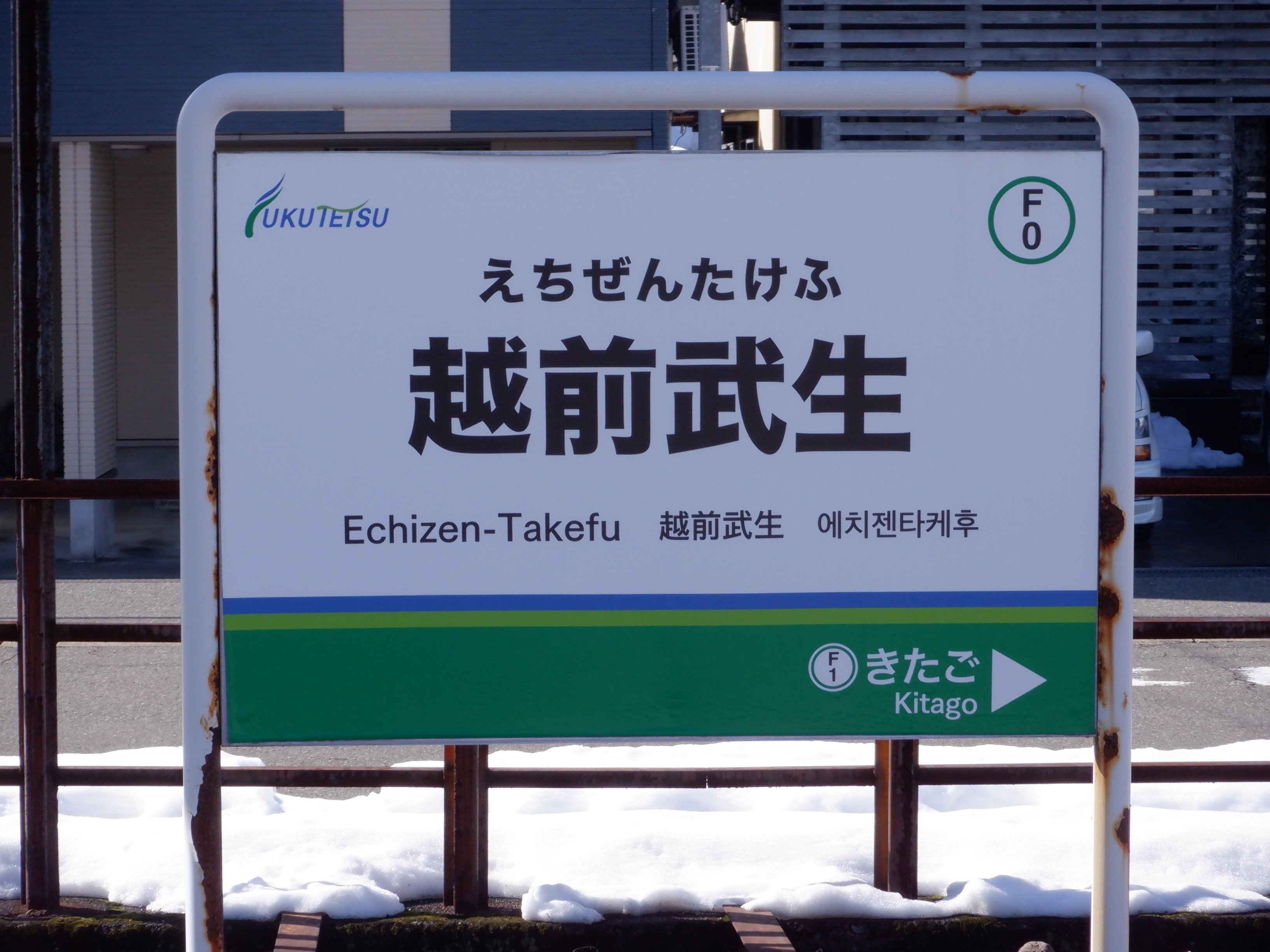 改称を2日前に控えていますが、駅名標は既に「たけふ新」に変わっていました。他は特に変わっていませんでした。