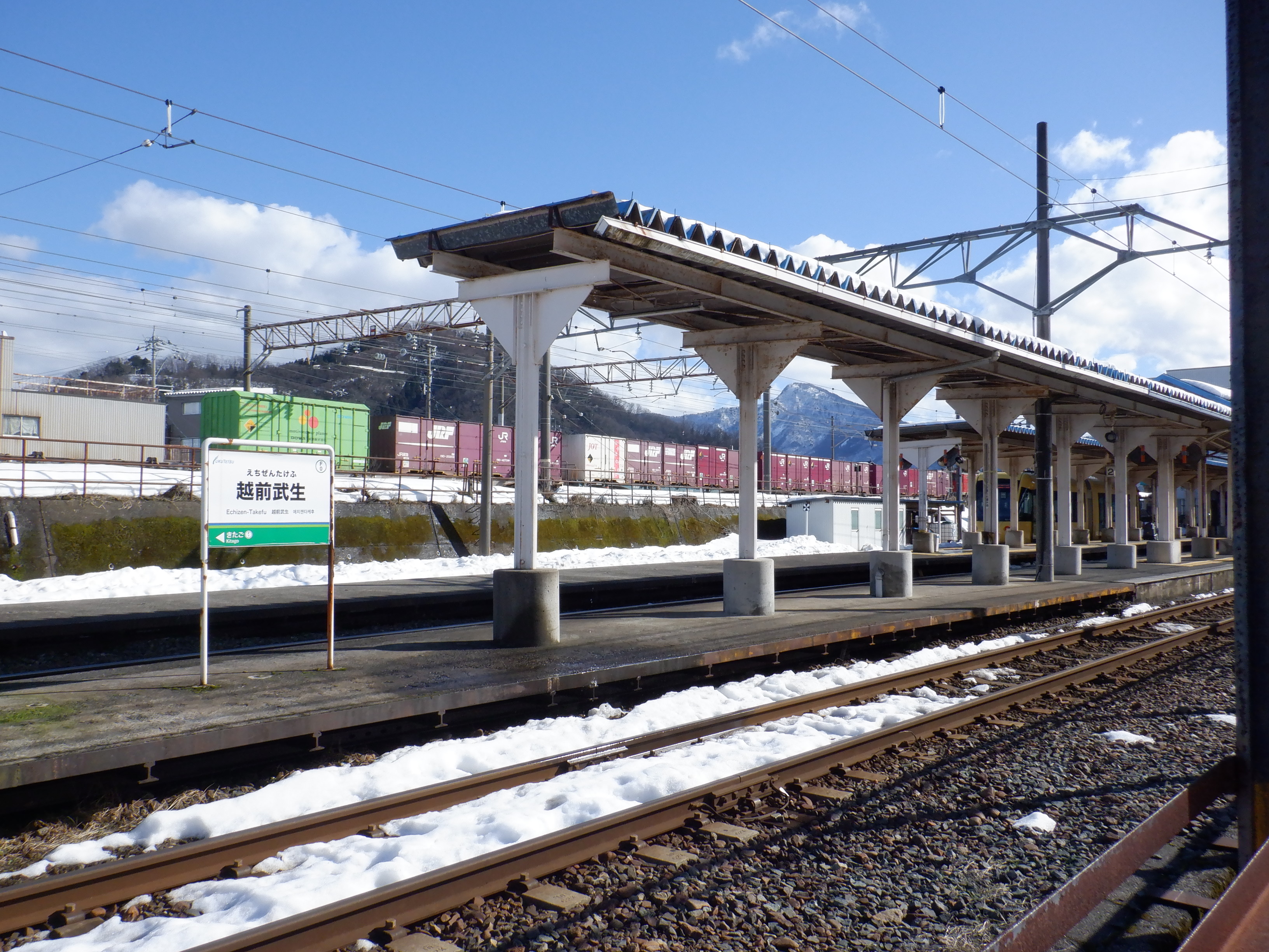 この時点では駅名標等はそのまま越前武生駅のままです。