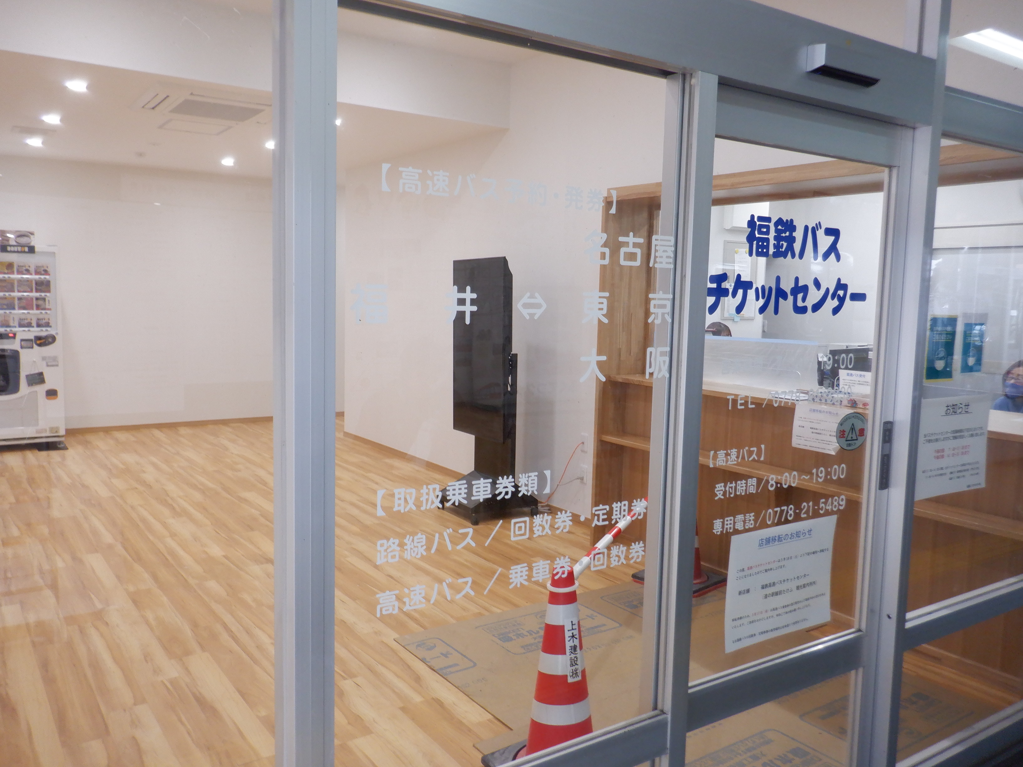 高速バスチケットセンターが越前たけふ駅の道の駅に移動するため観光交流プラザになるところ。