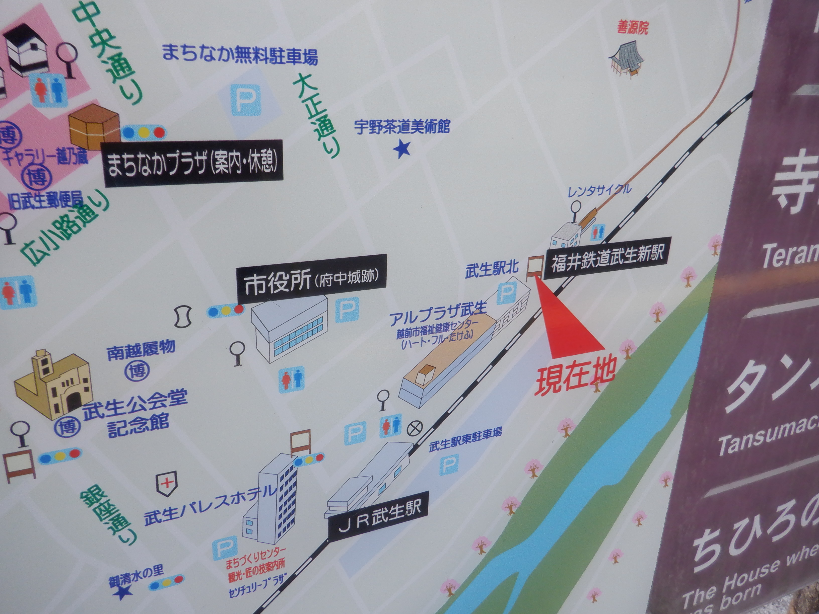 JRの武生駅の前にあるこちらは「越前武生」でした。