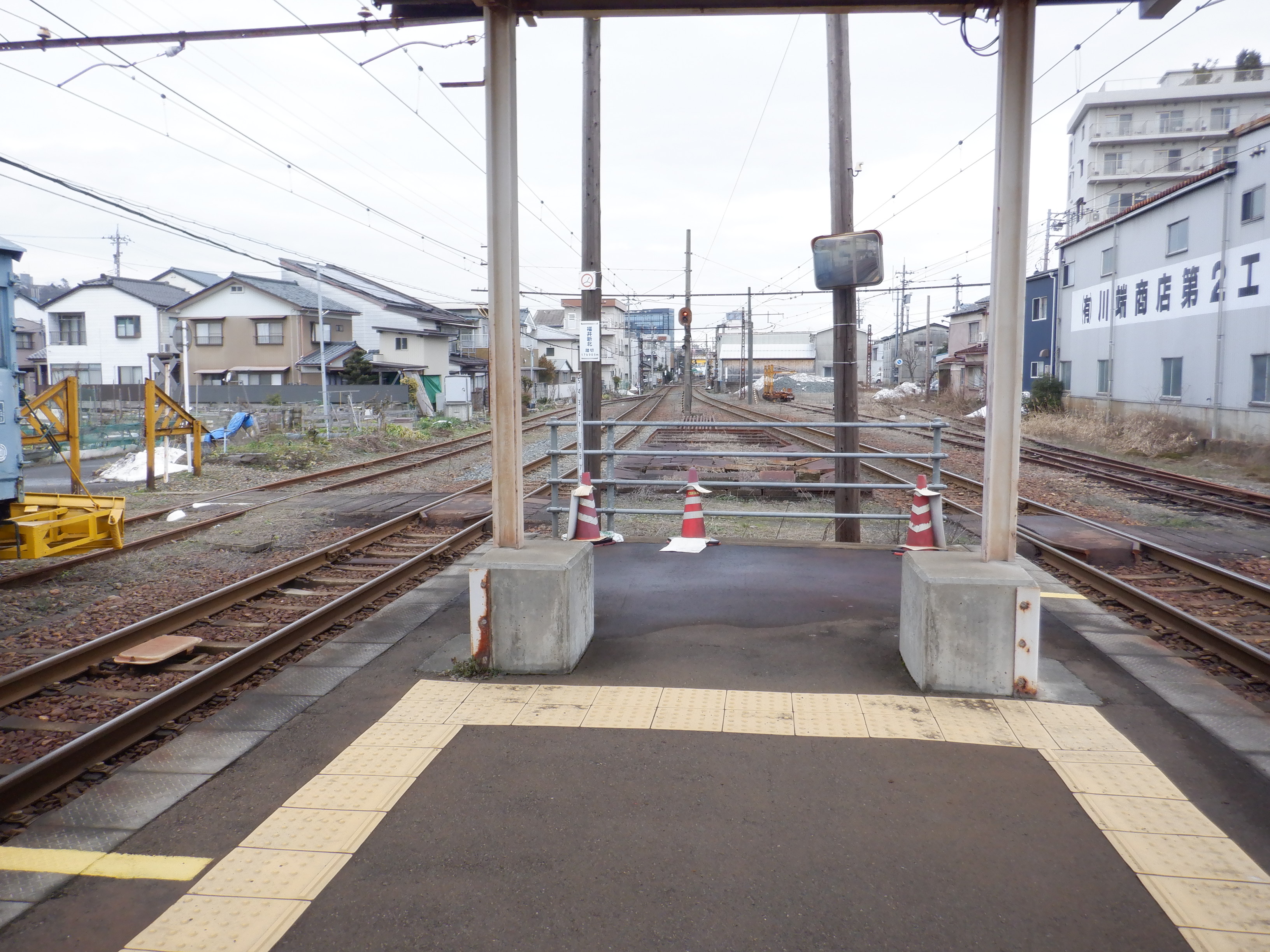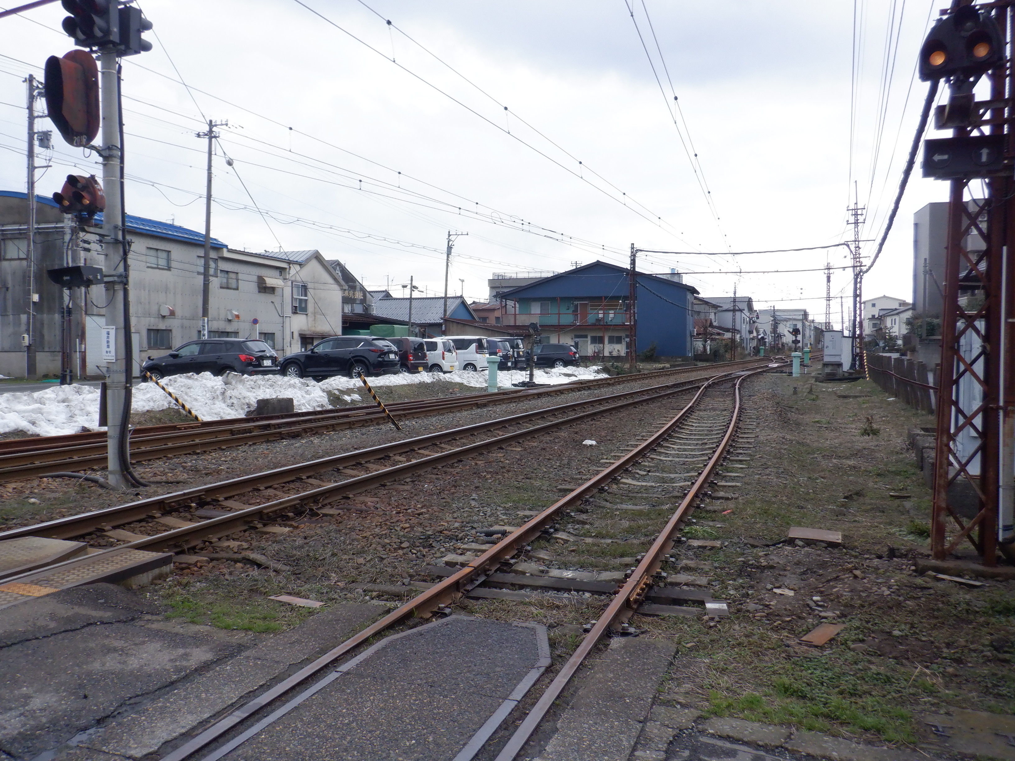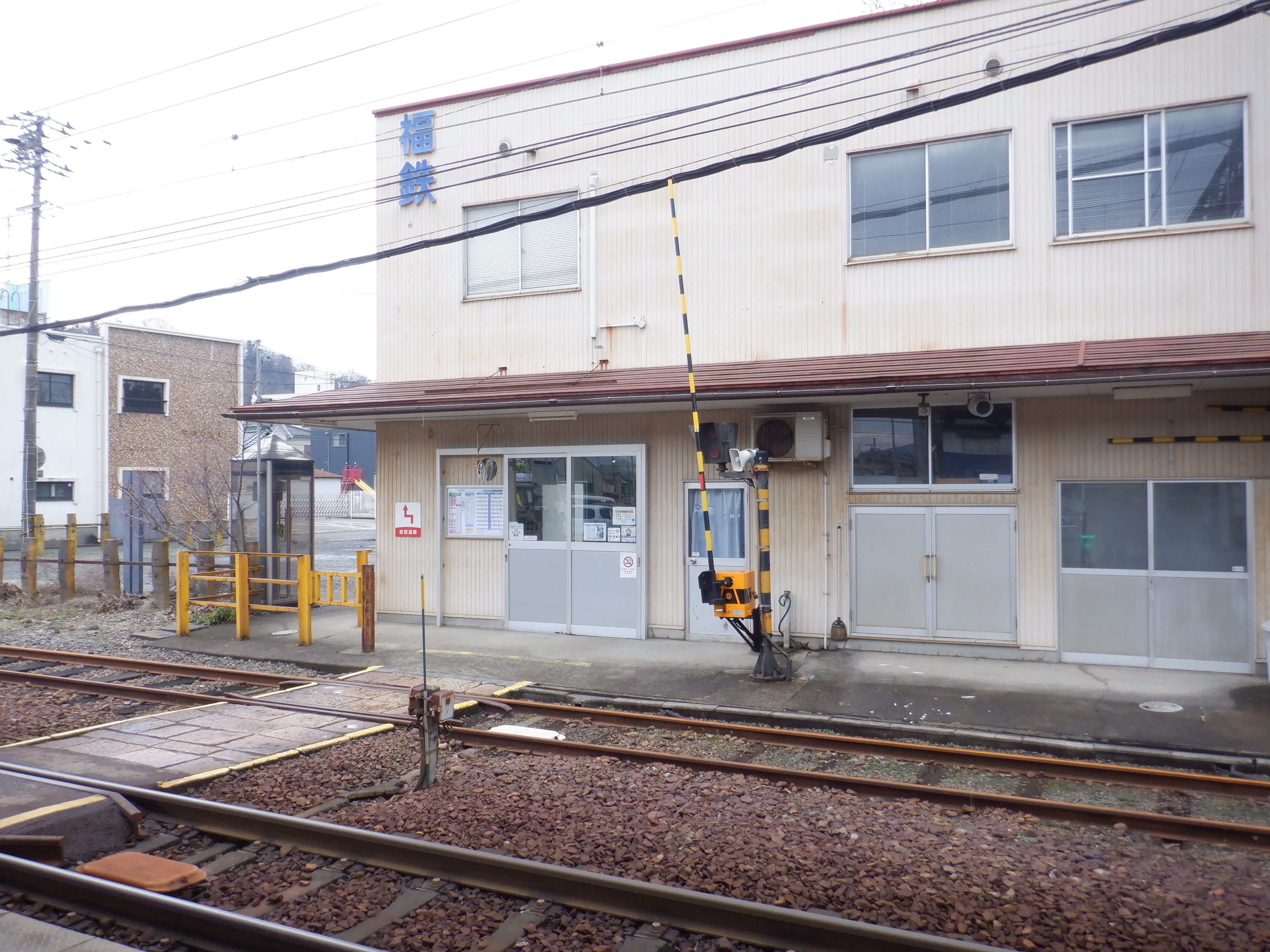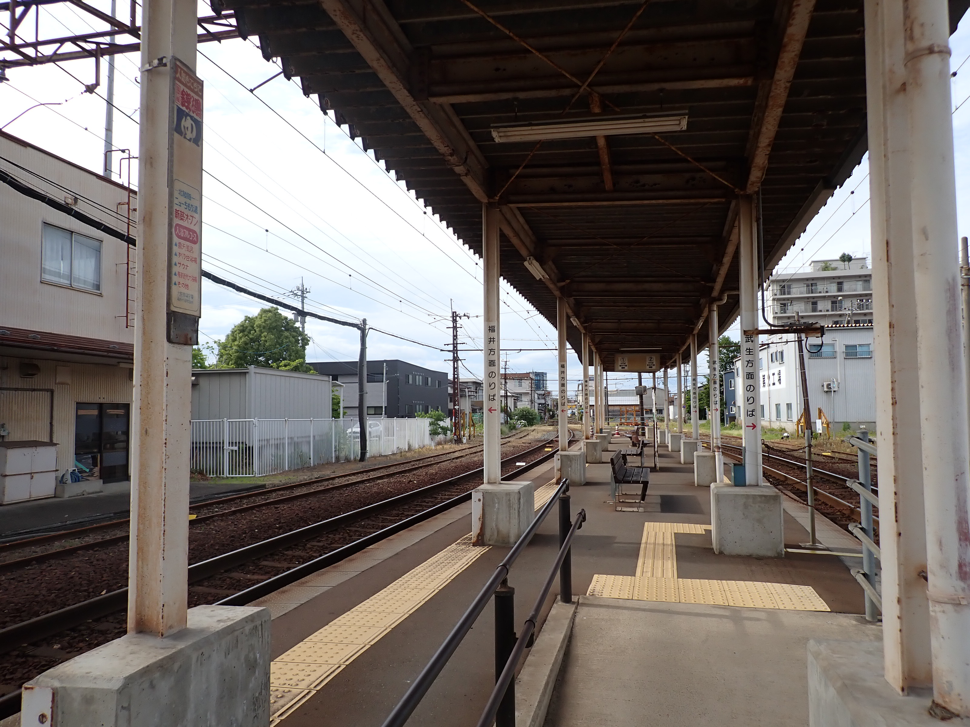 駅のそばの踏切とその付近から。こちらも「福井新」の名前が残っています。
