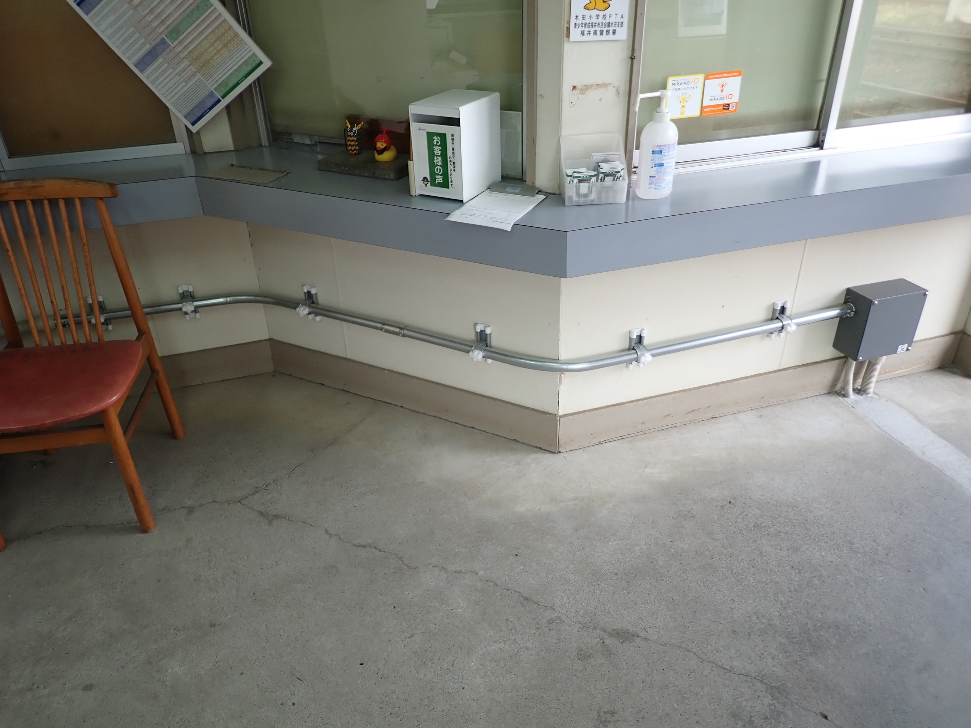 ICOCA改札機・チャージ機の電気工事がされたところ。