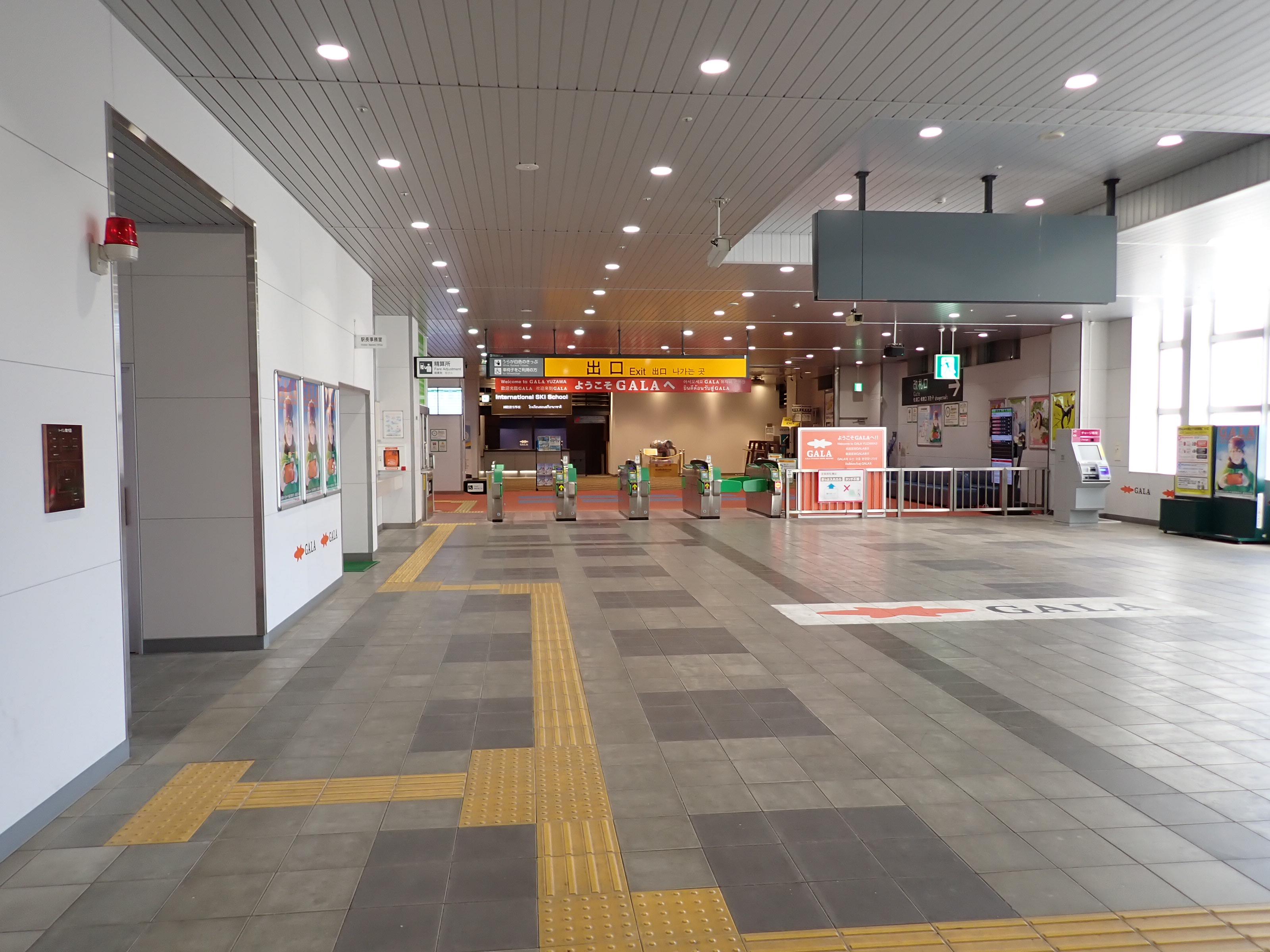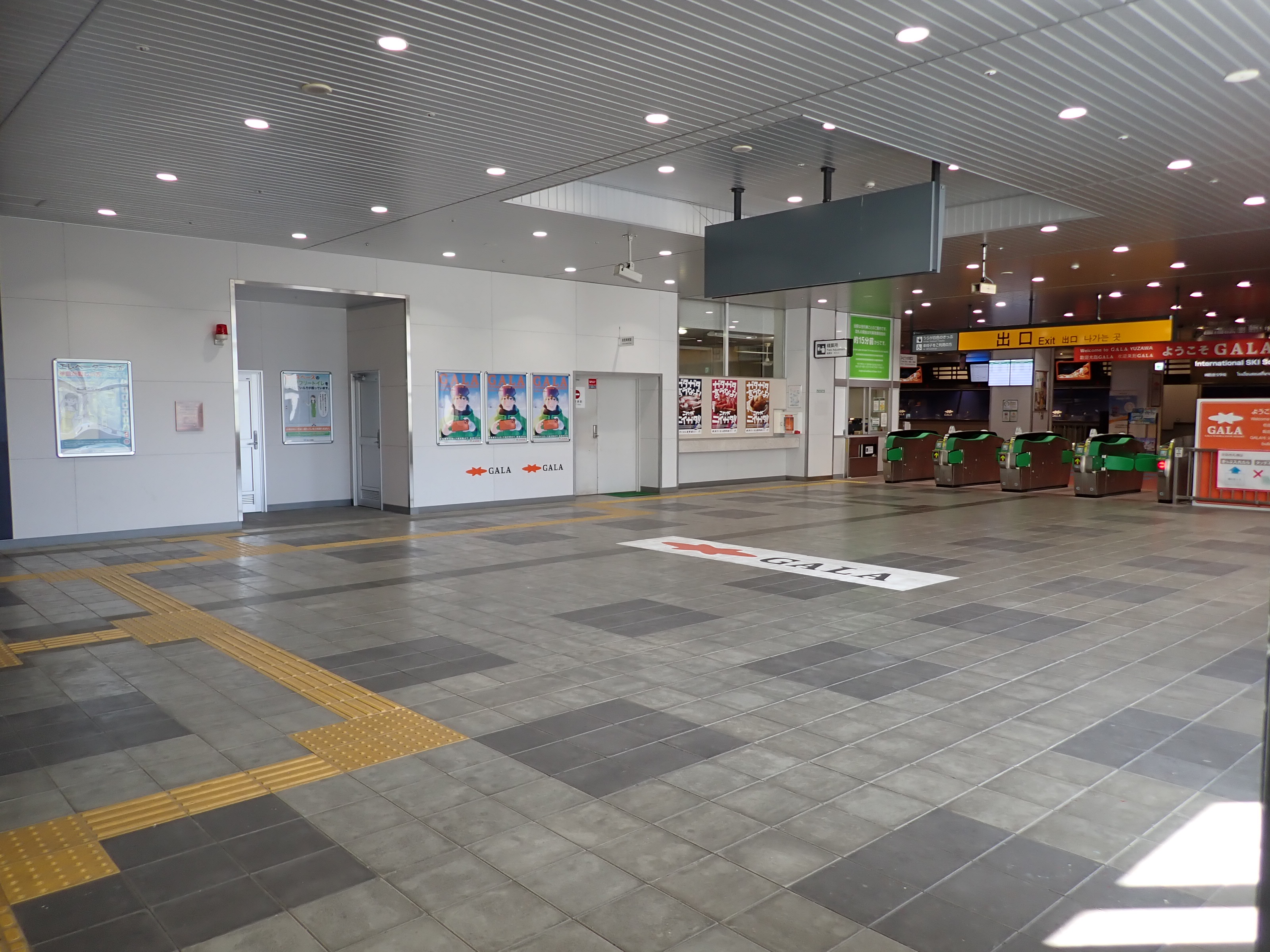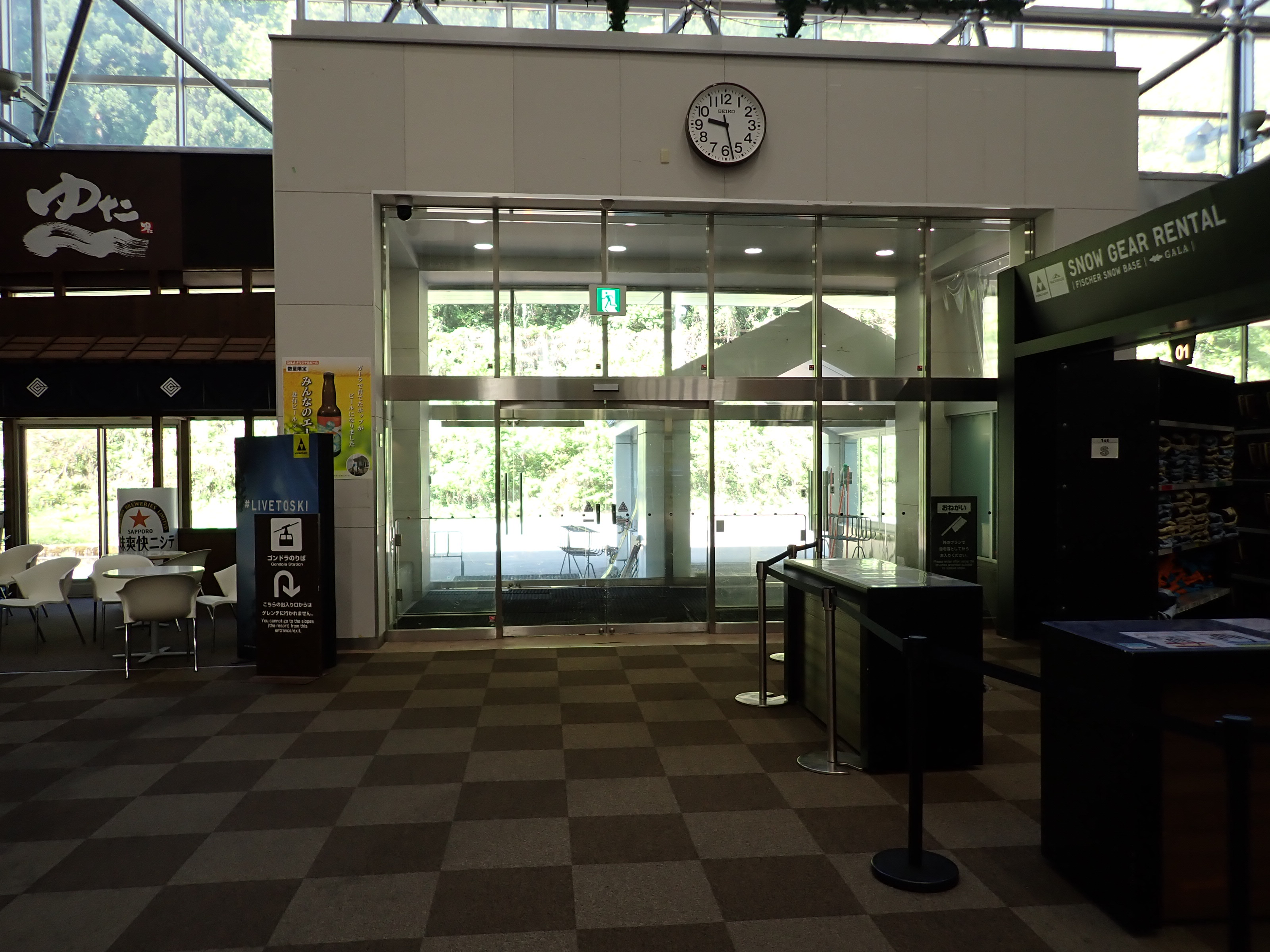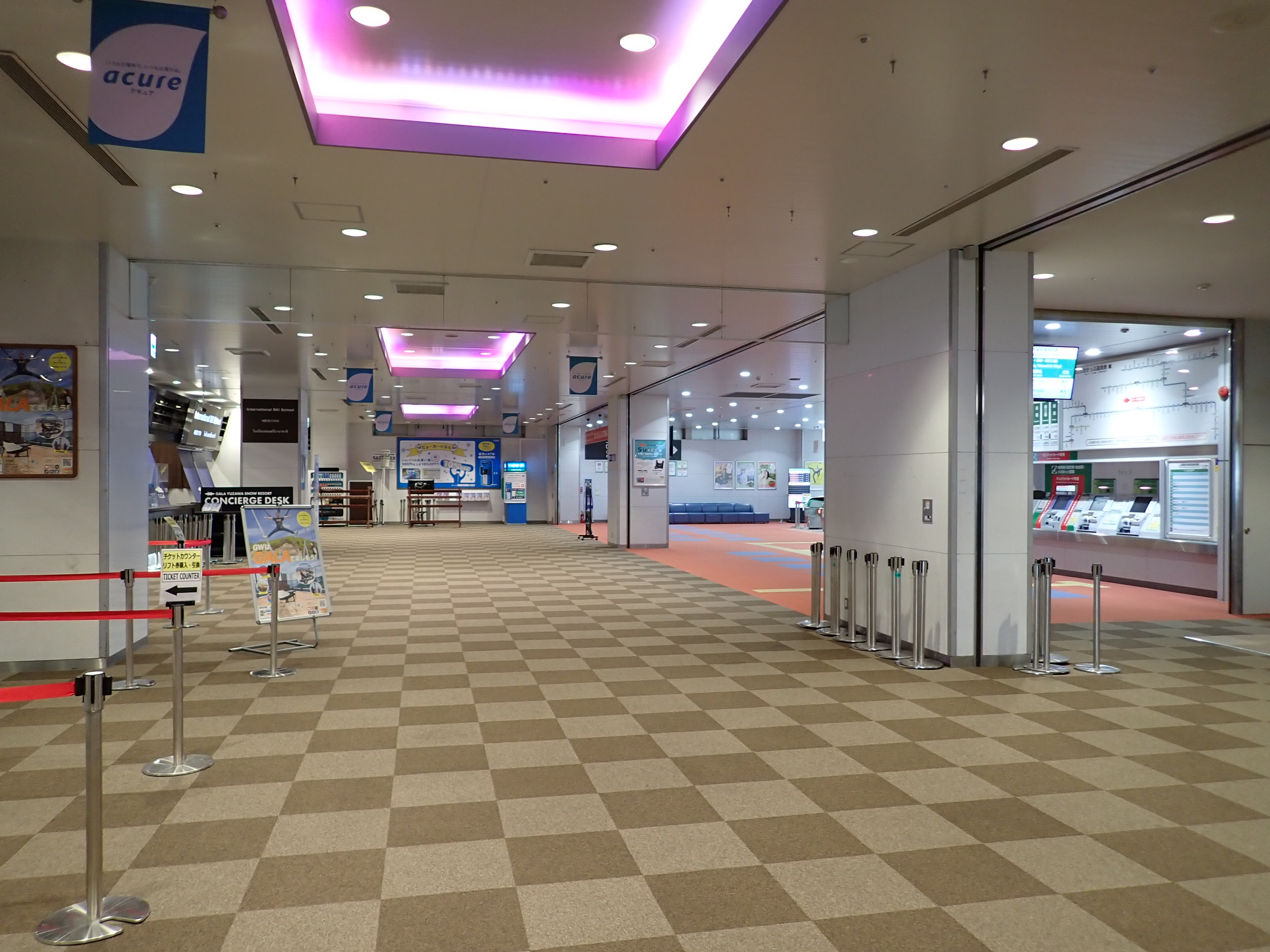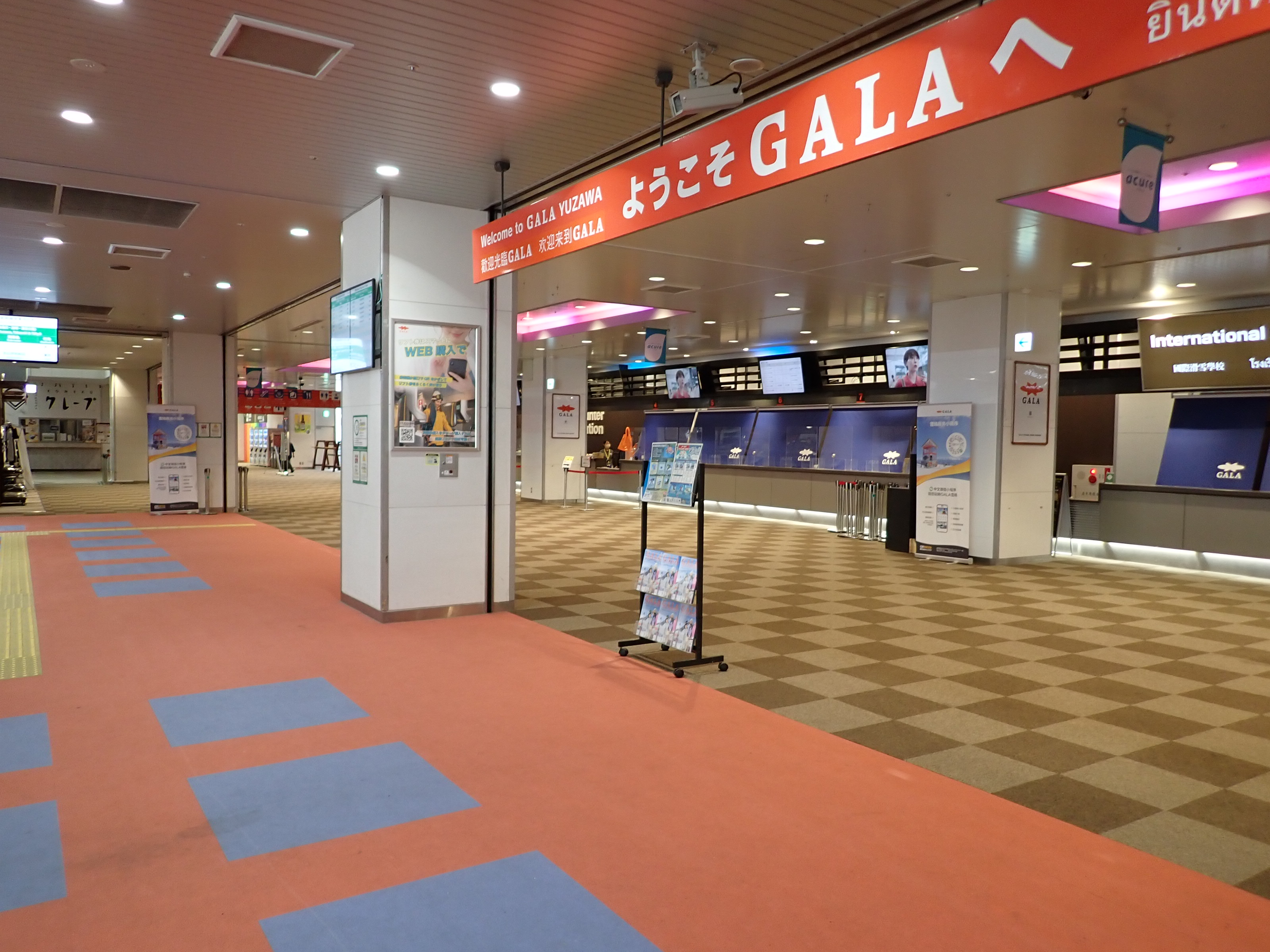 改札を抜けたところにあるスキー場の窓口。そのままスキー場施設である「カワバンガ」の2階になります。
